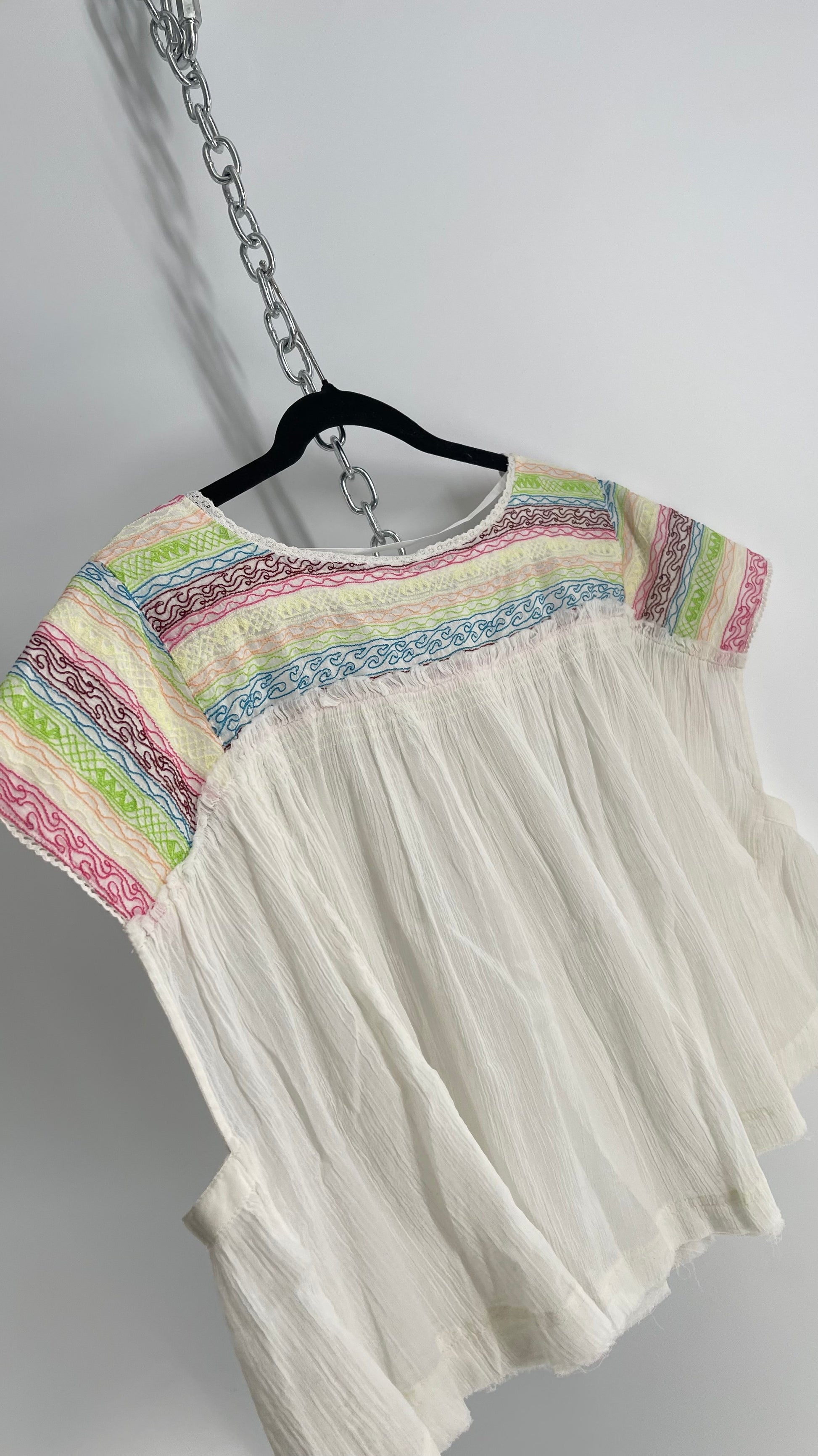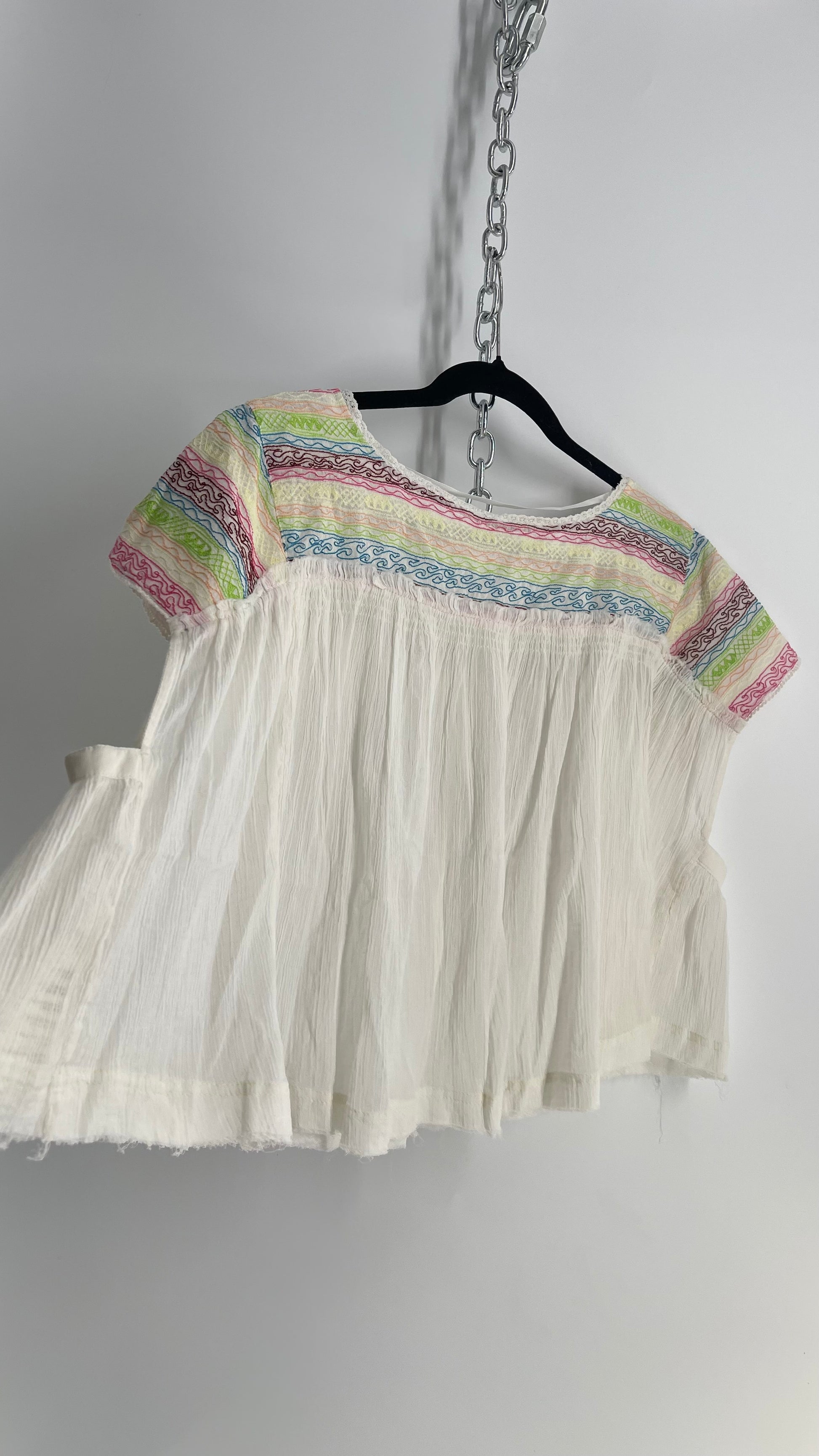 Free People Crimped White Colorful Embroidery with Tags Attached (XS)