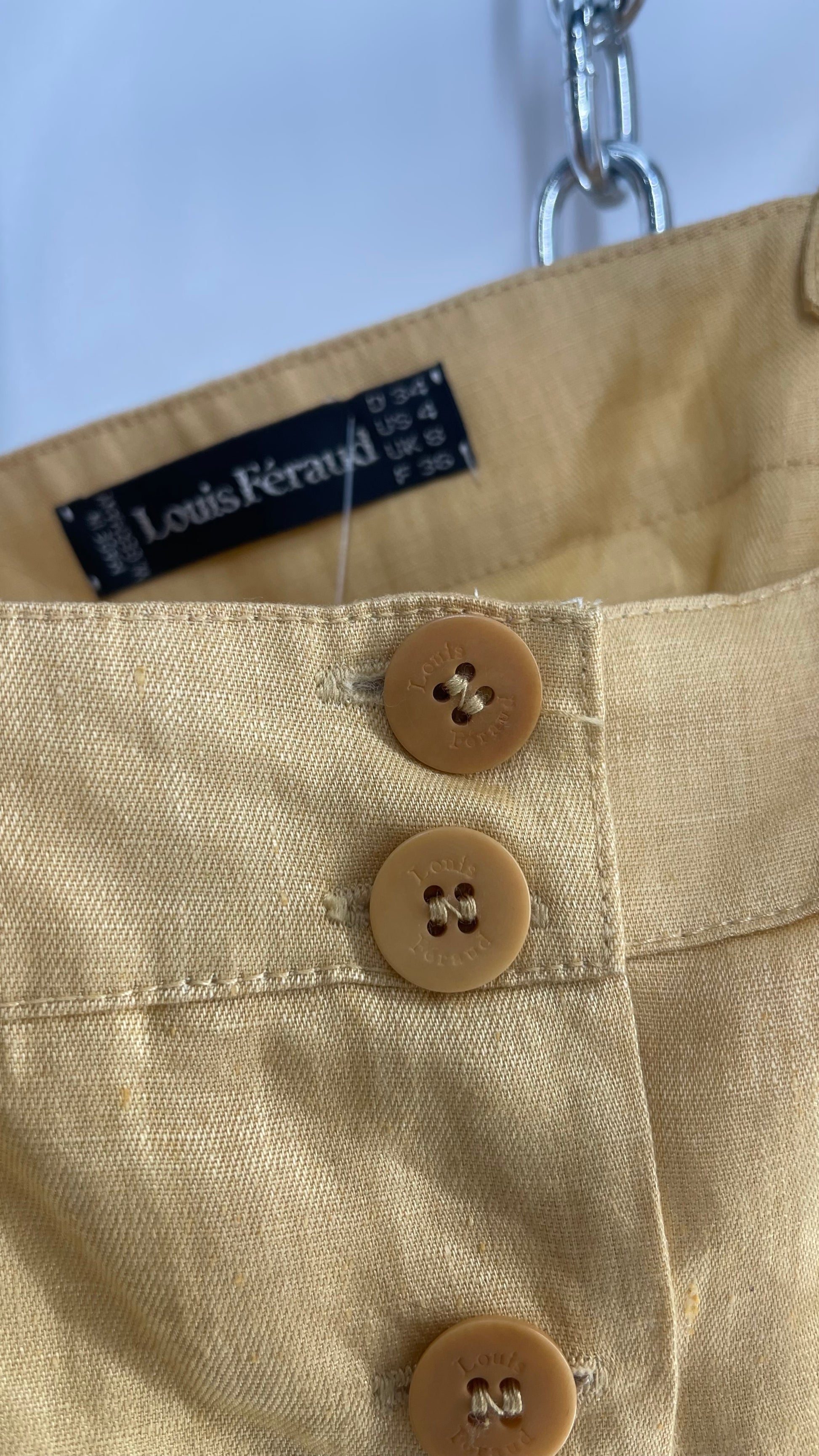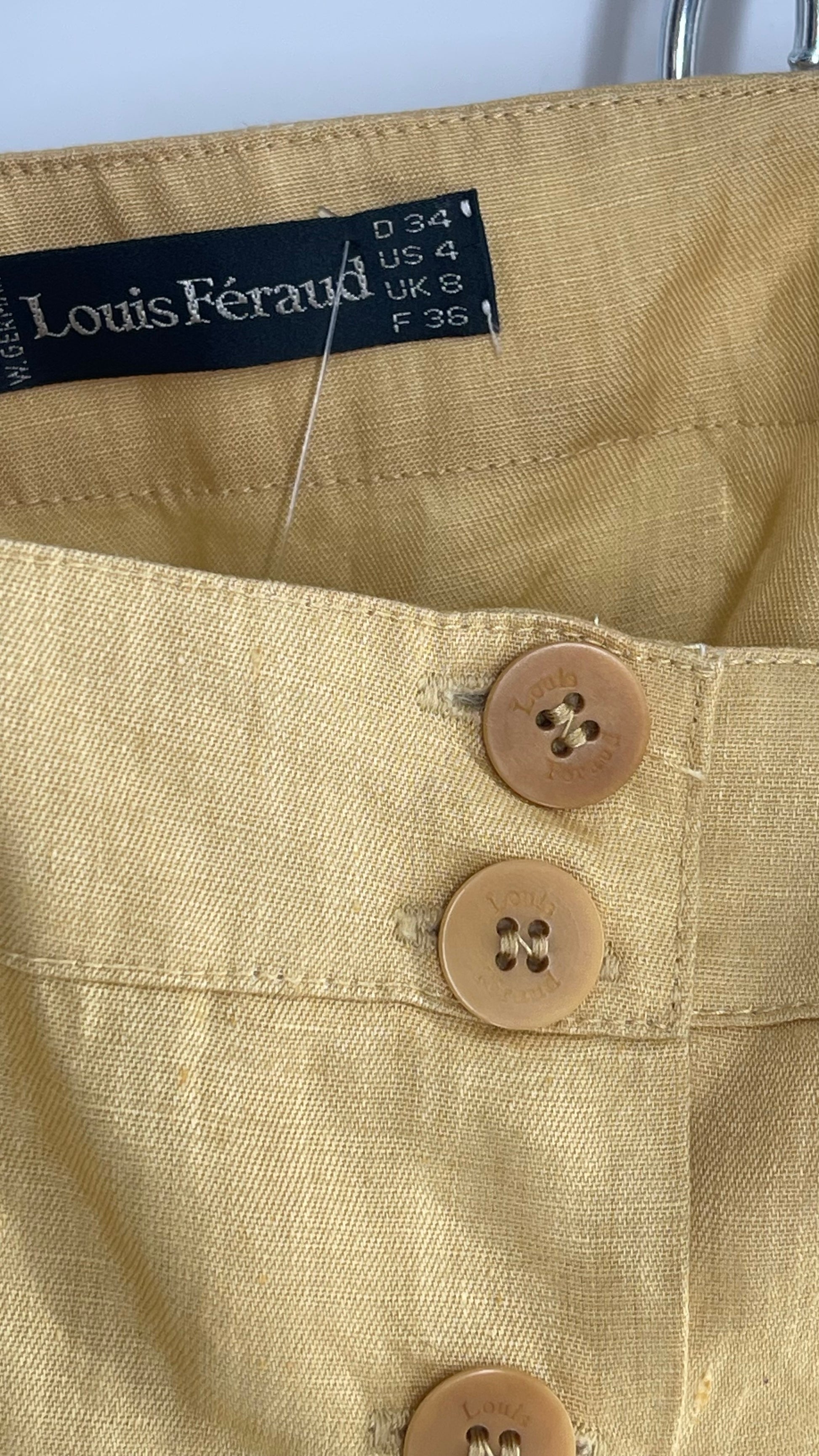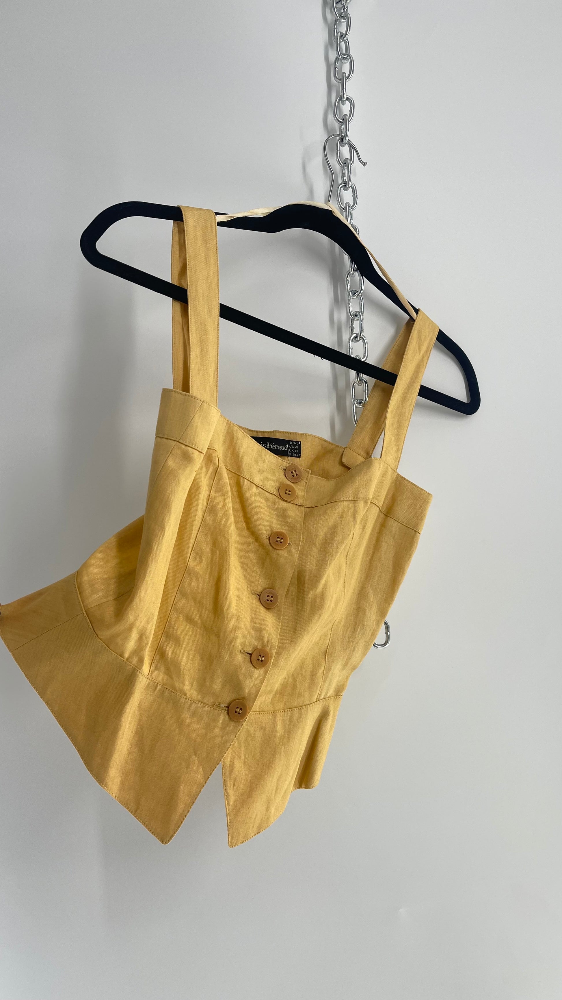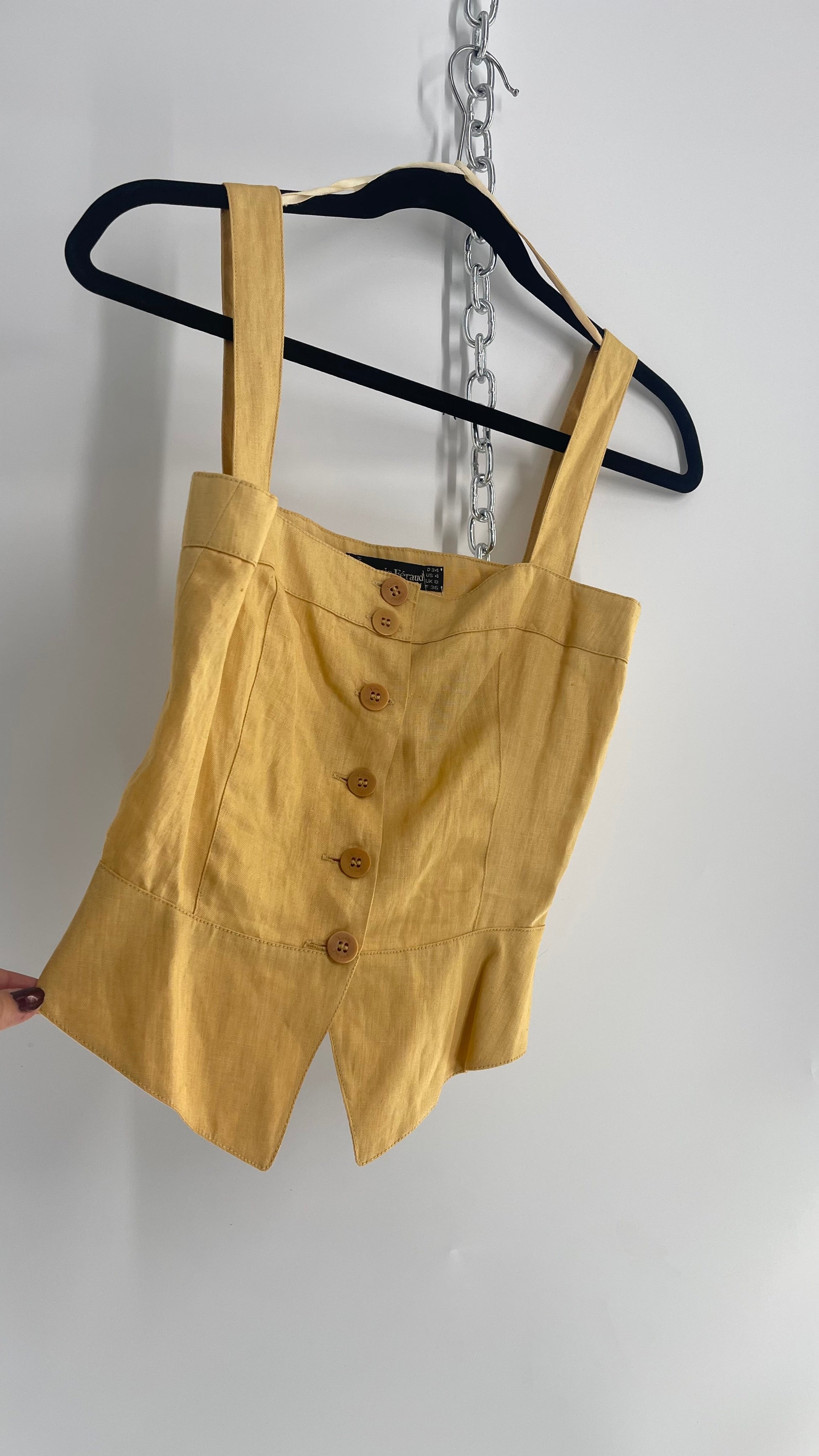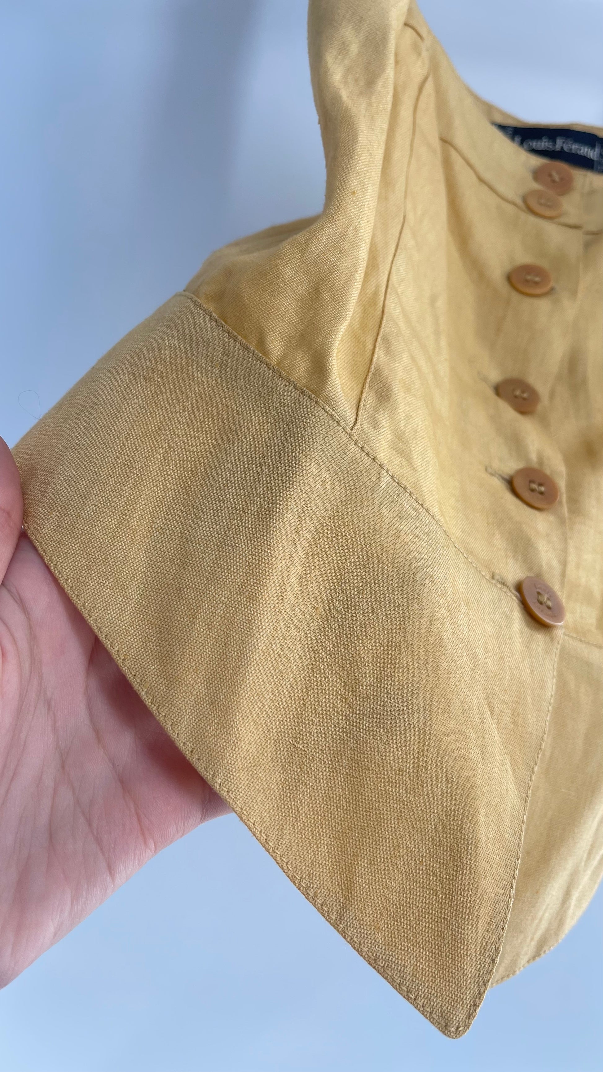 Vintage Louis Feraud 100% Linen Yellow Button Front Sleeveless Blouse and Embossed Buttons(4)
