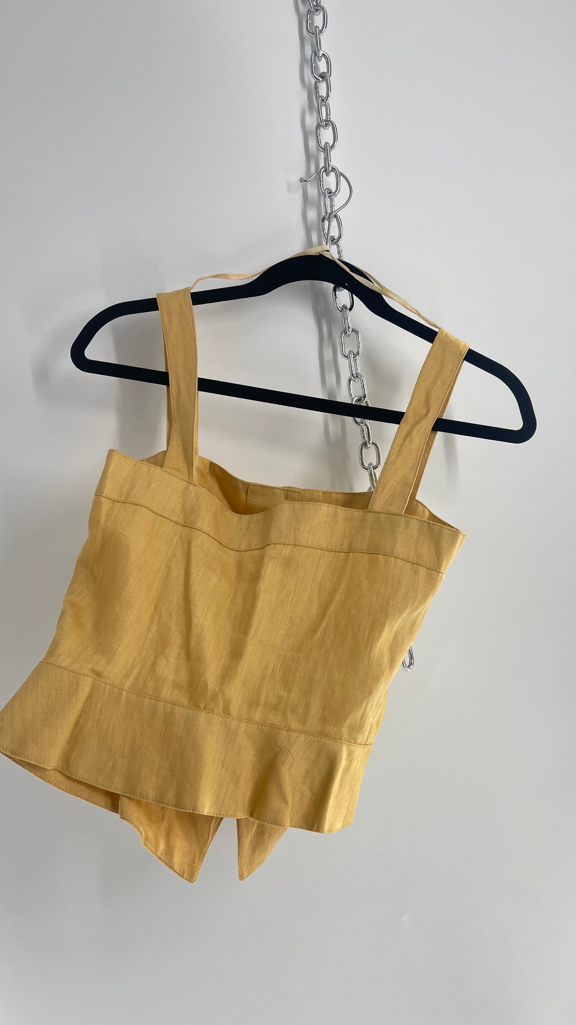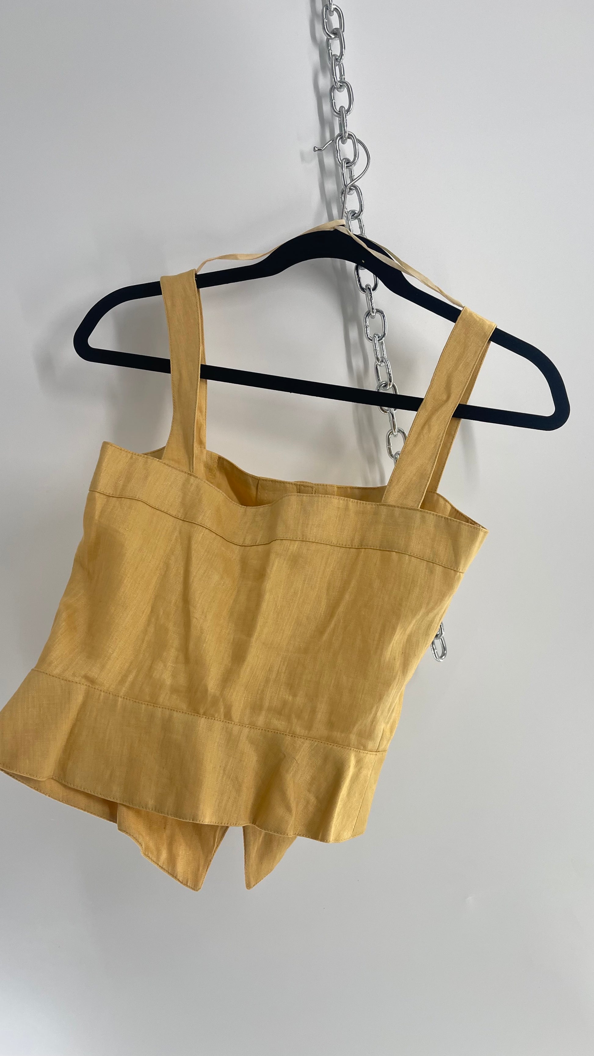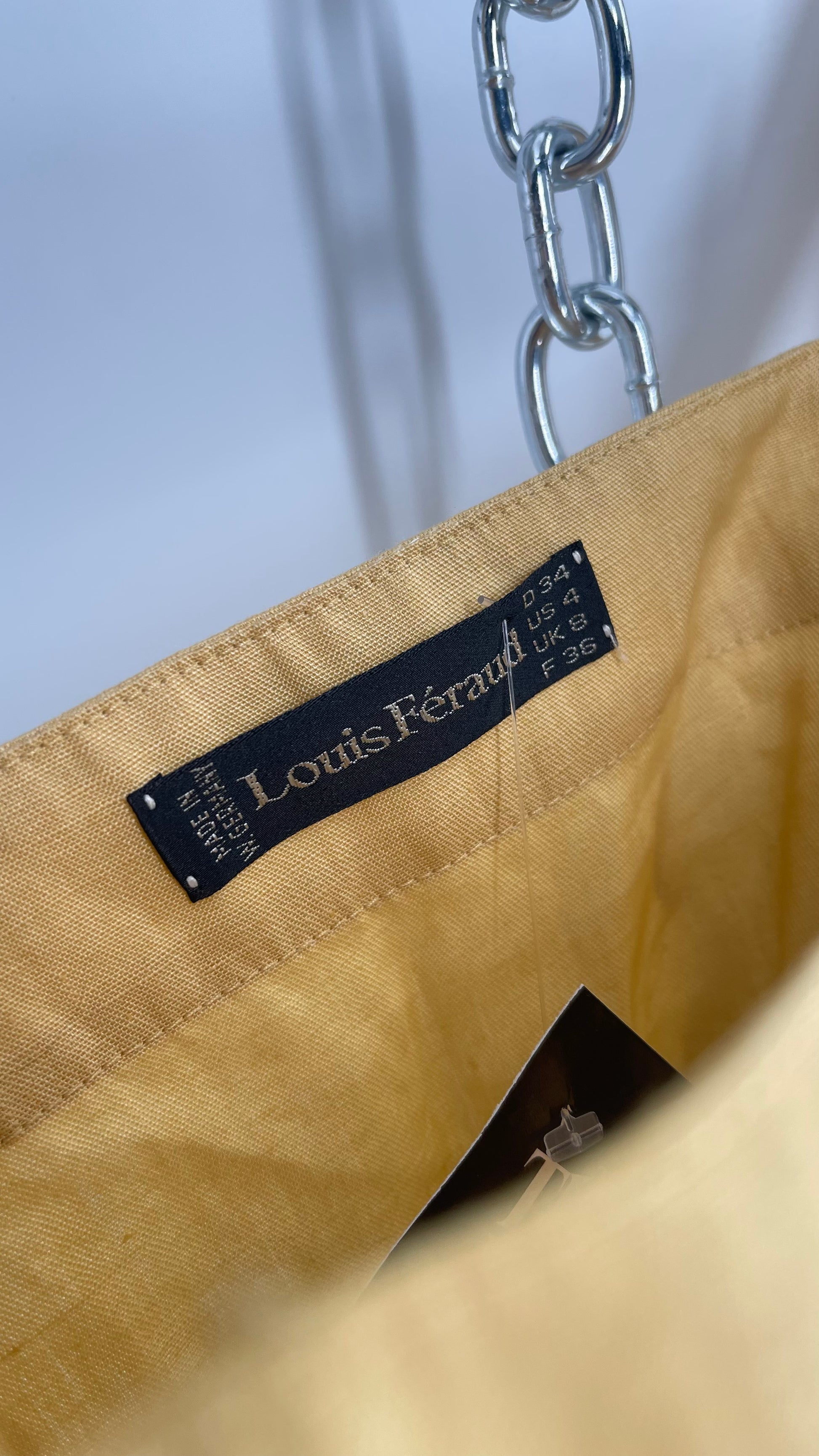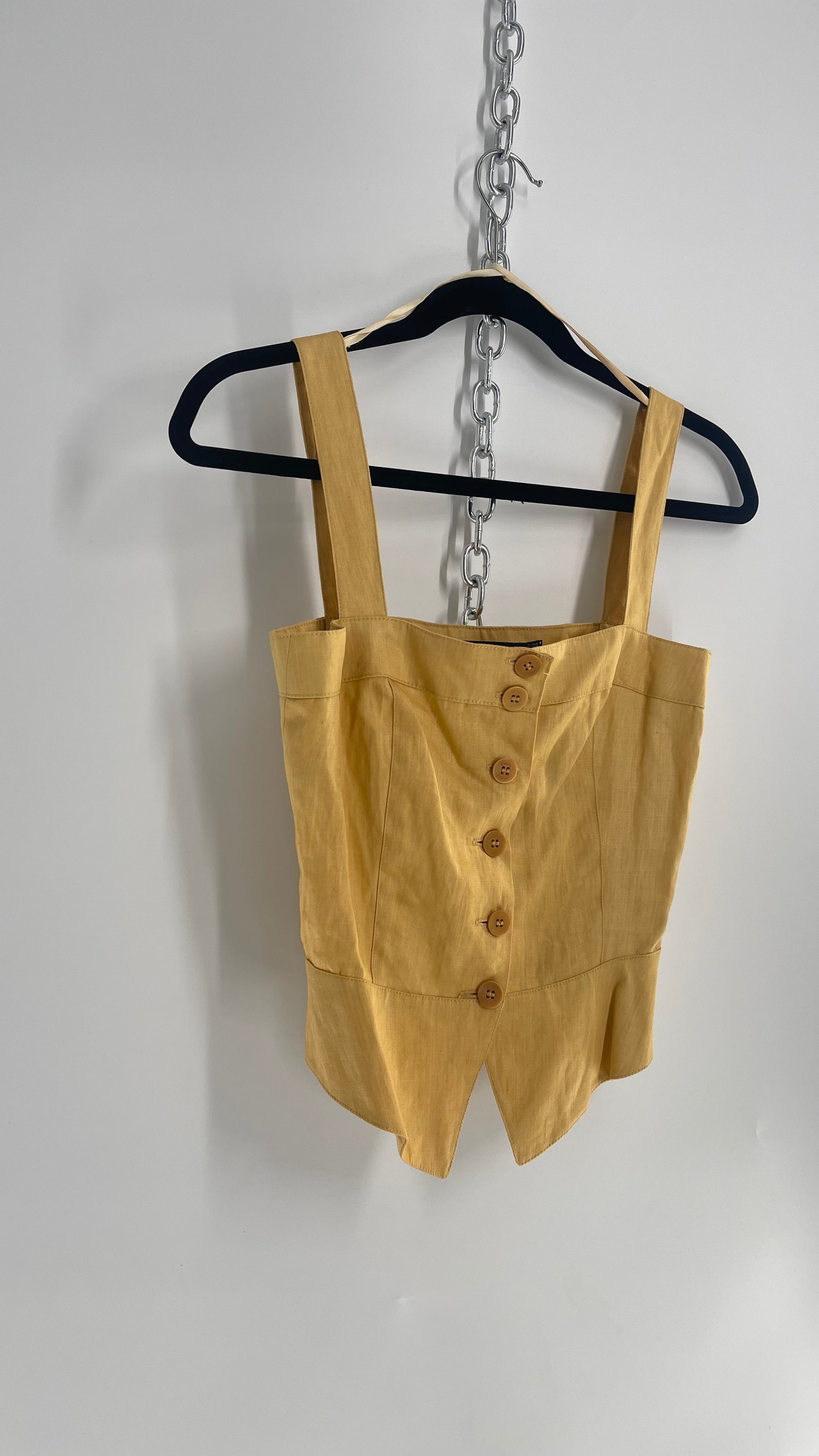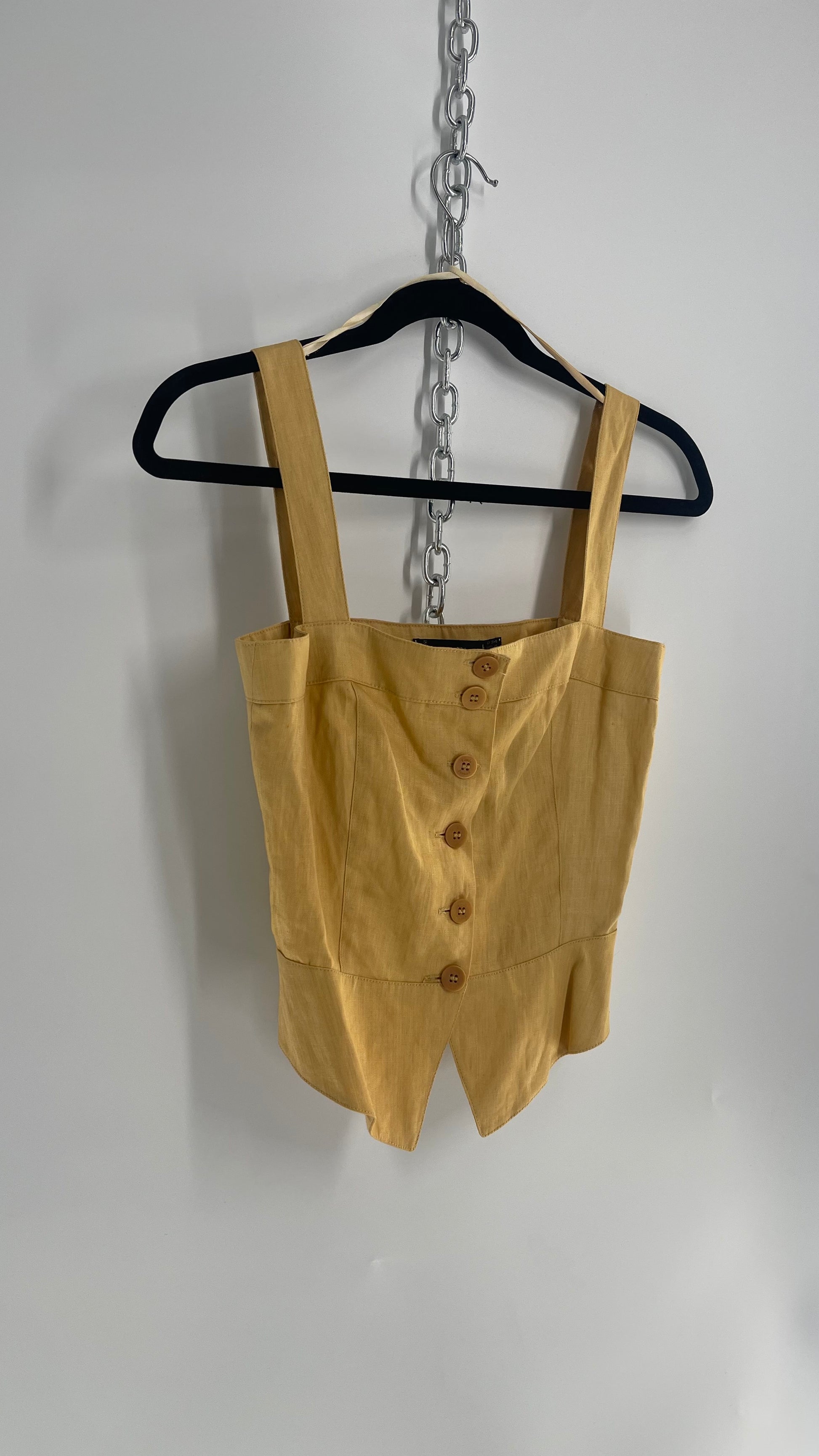 Vintage Louis Feraud 100% Linen Yellow Button Front Sleeveless Blouse and Embossed Buttons(4)