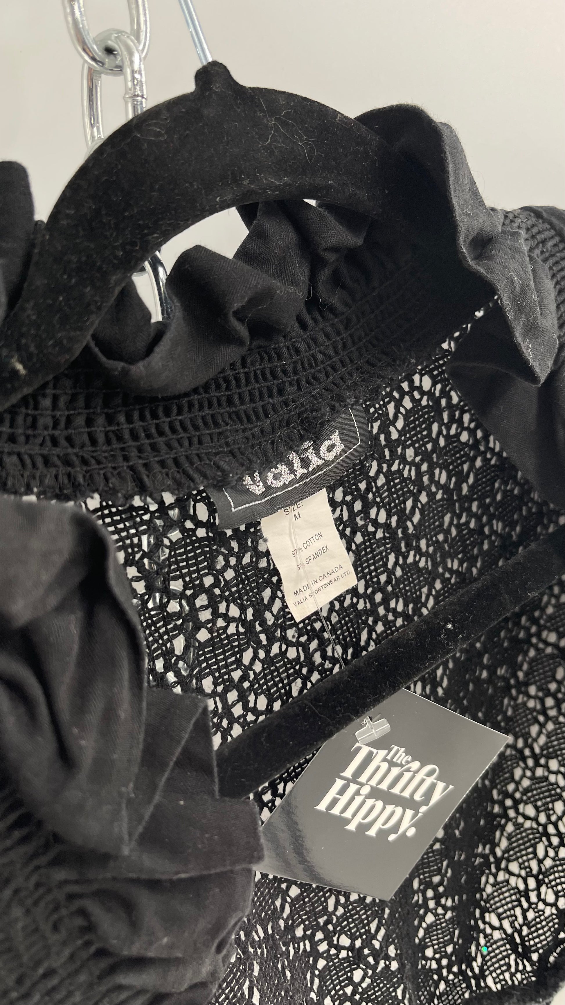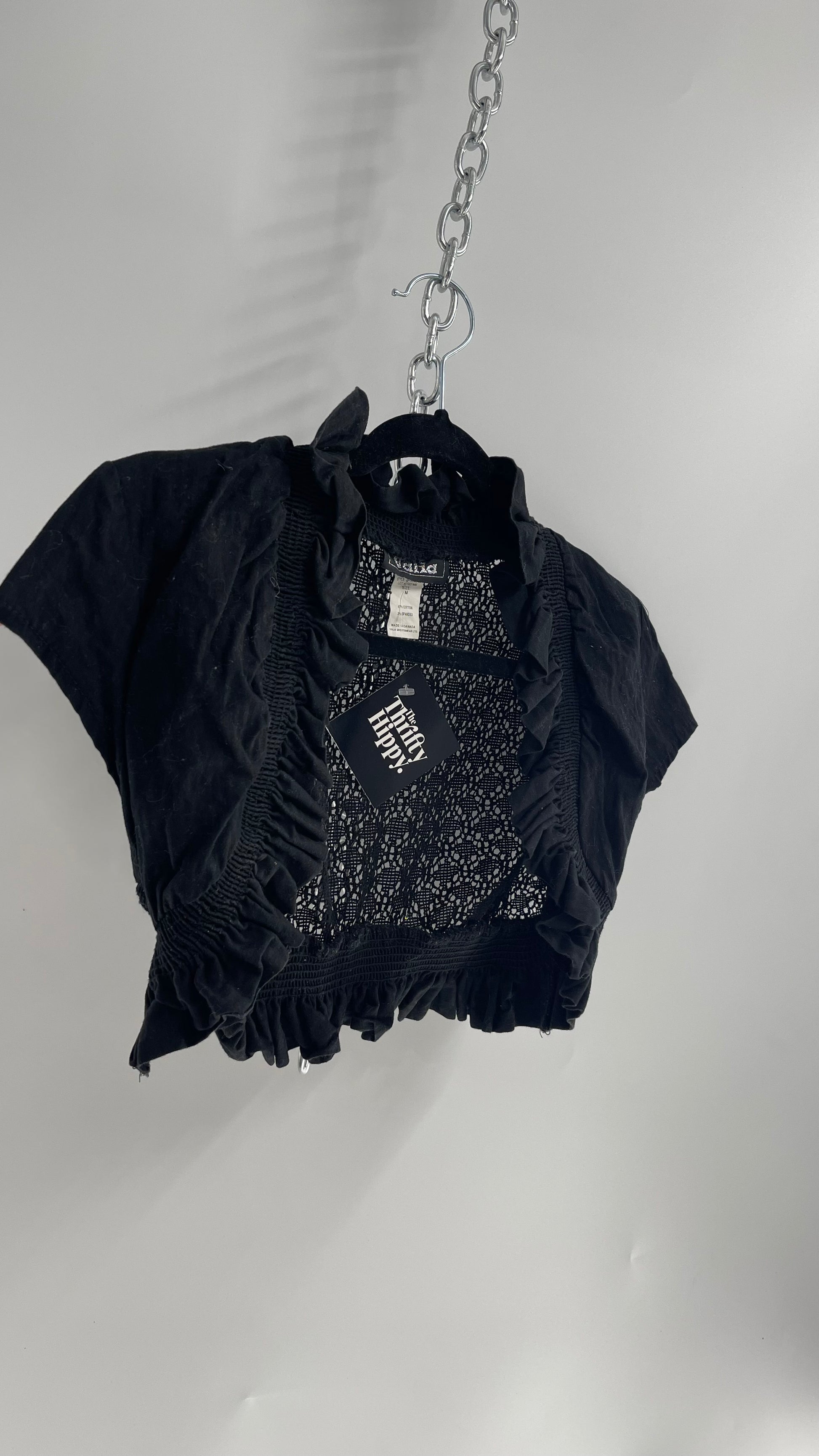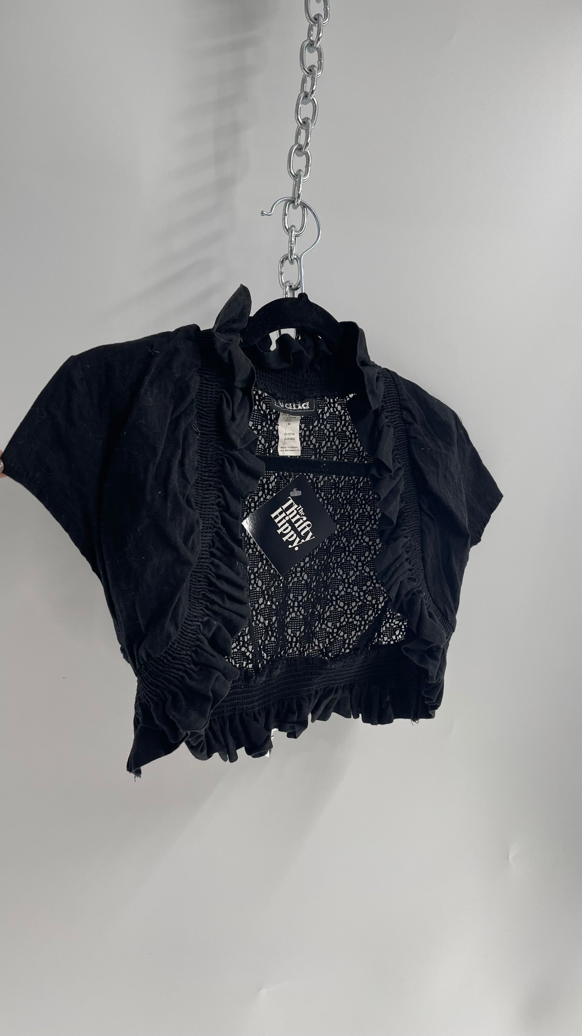 Vintage Valid 1990s Black Lace Crochet Shrug (Medium)
