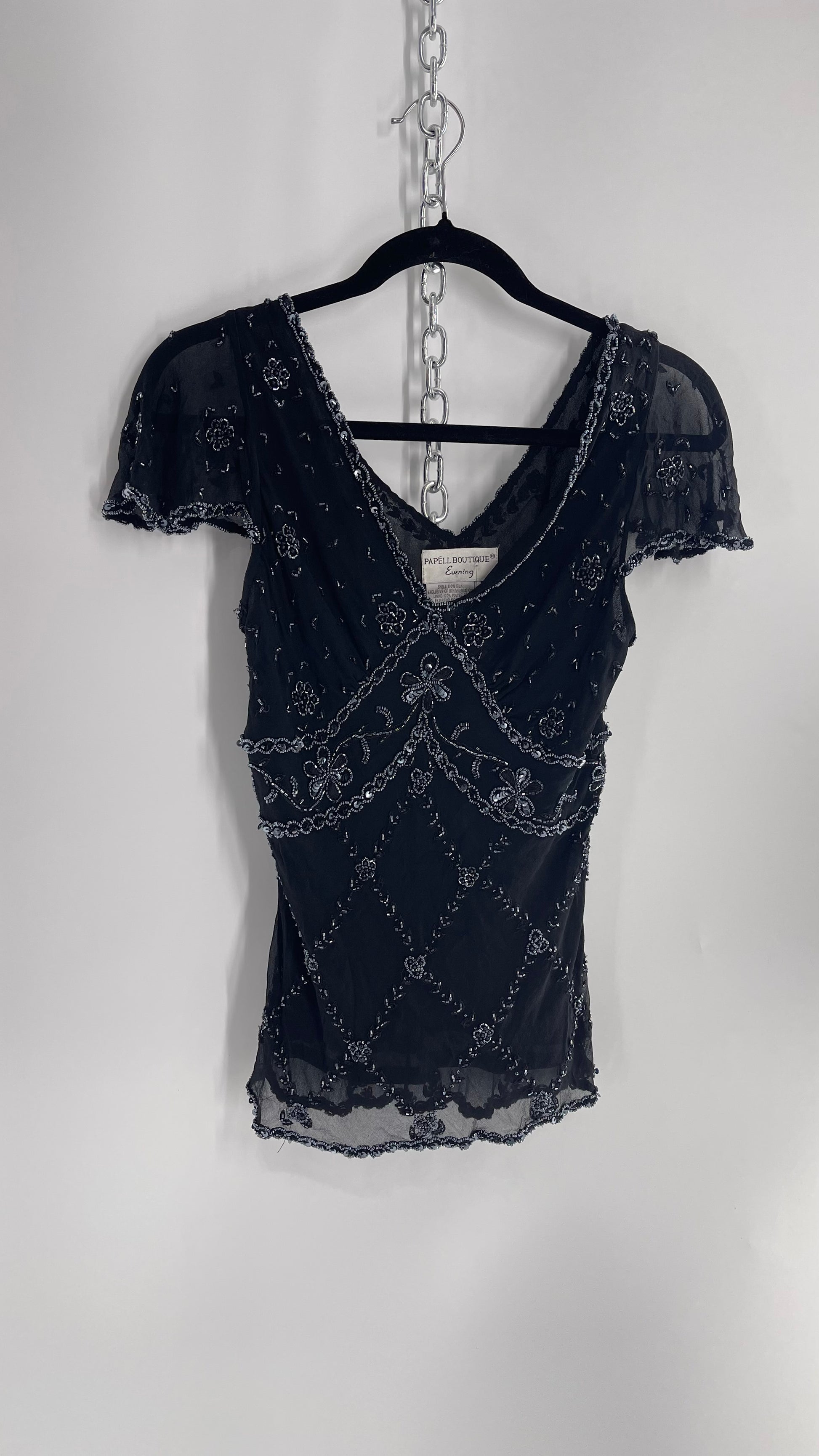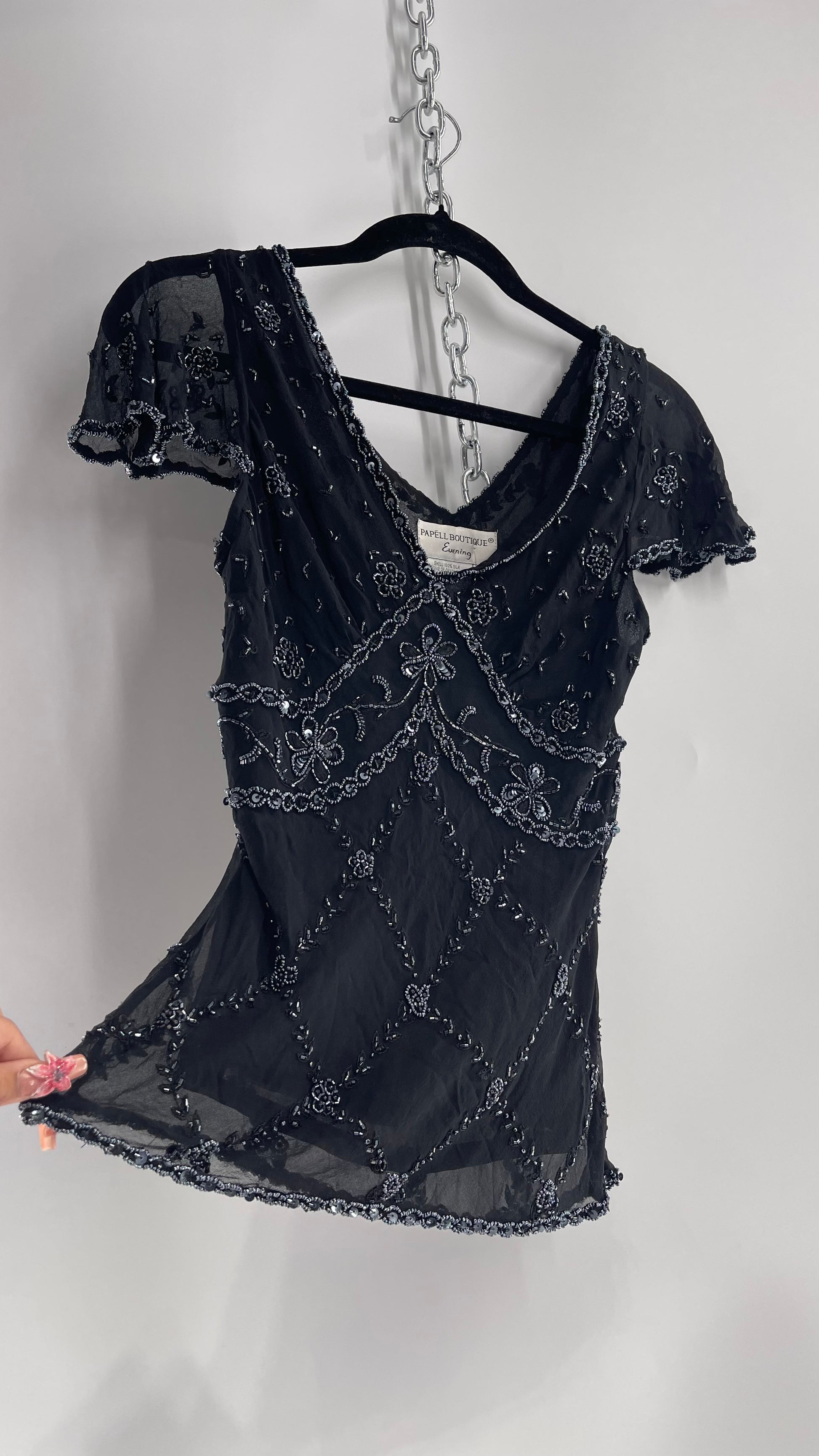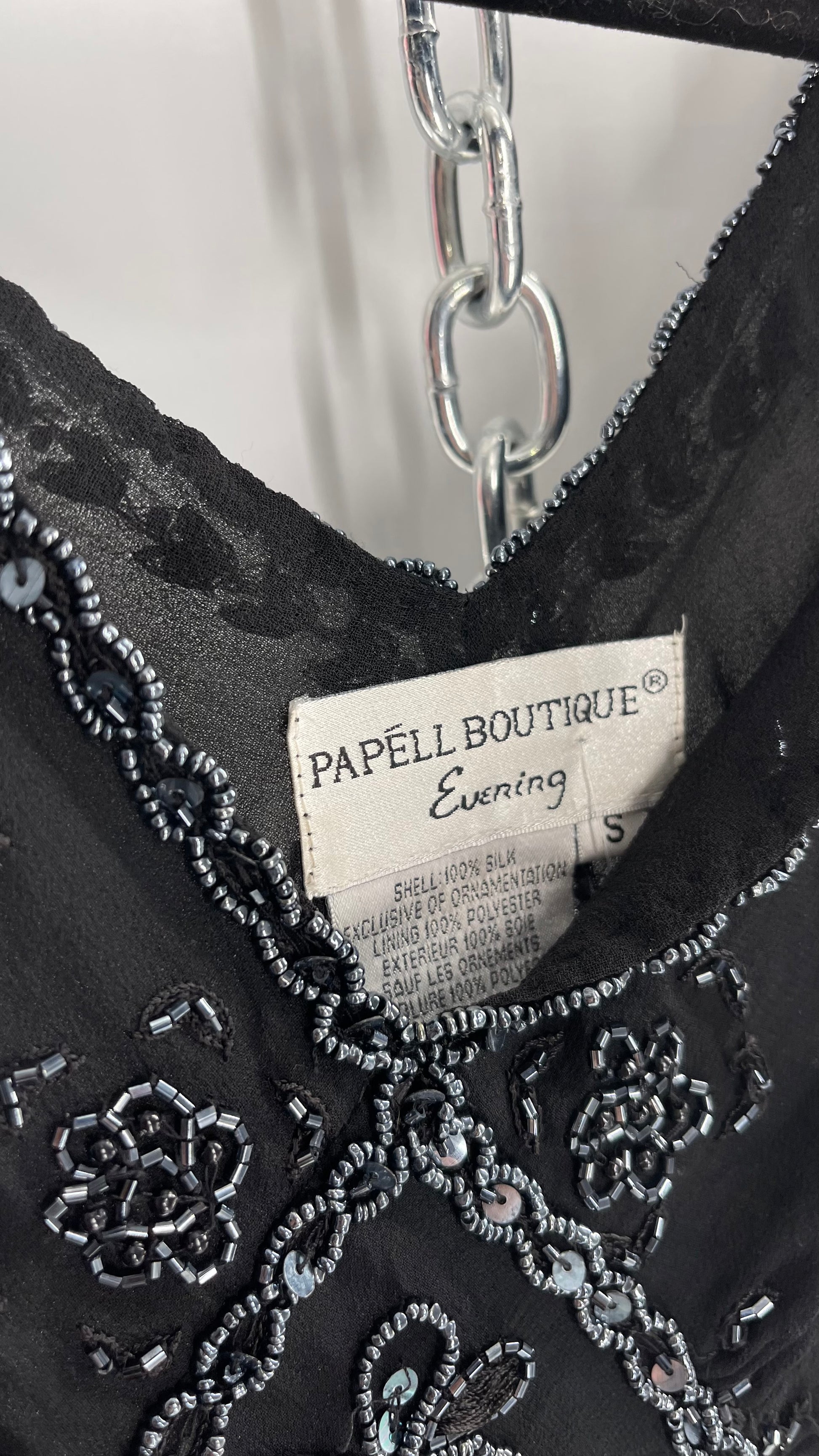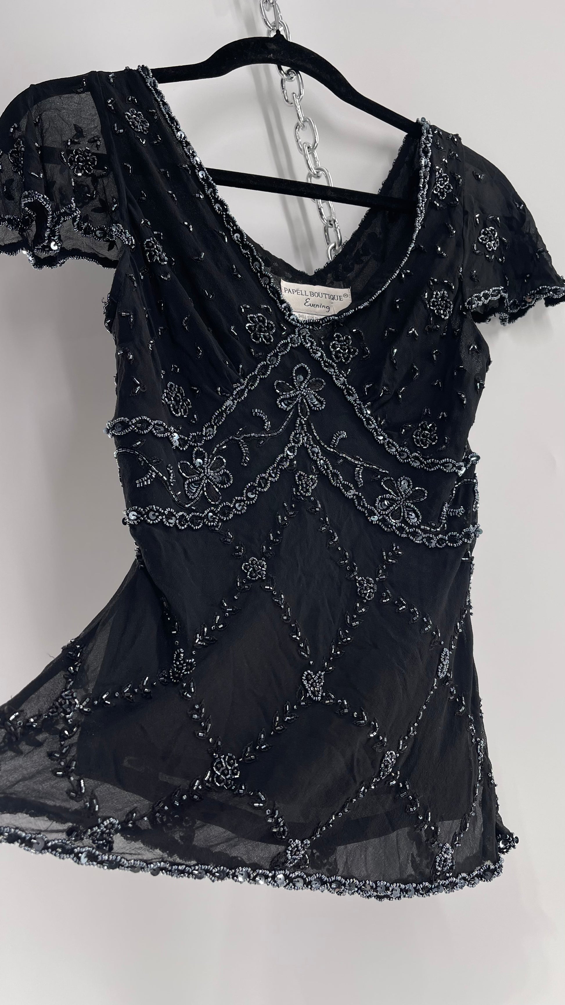Vintage 100% Silk Papell Boutique Black Beaded Blouse (Small)