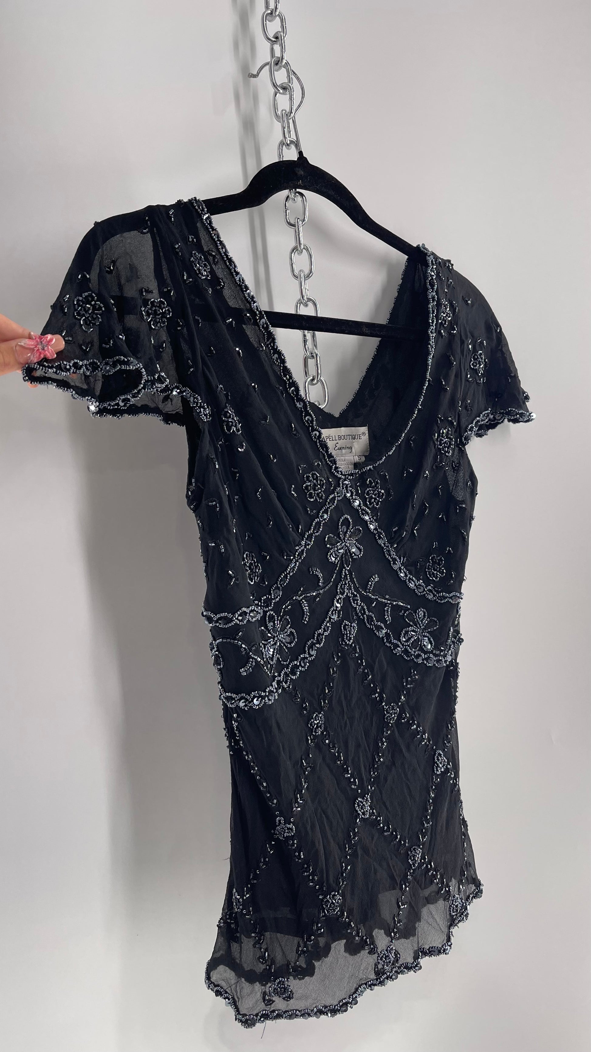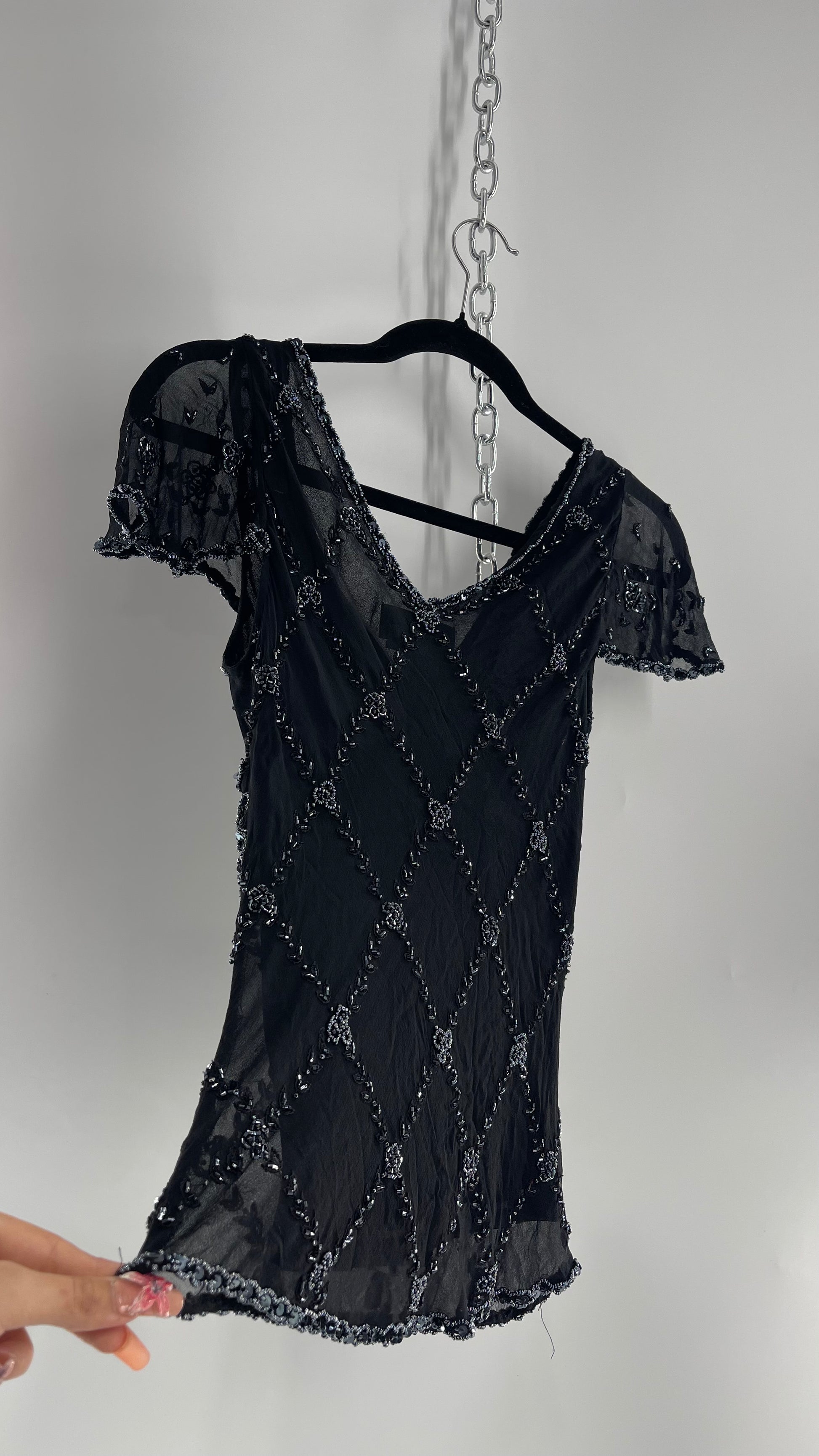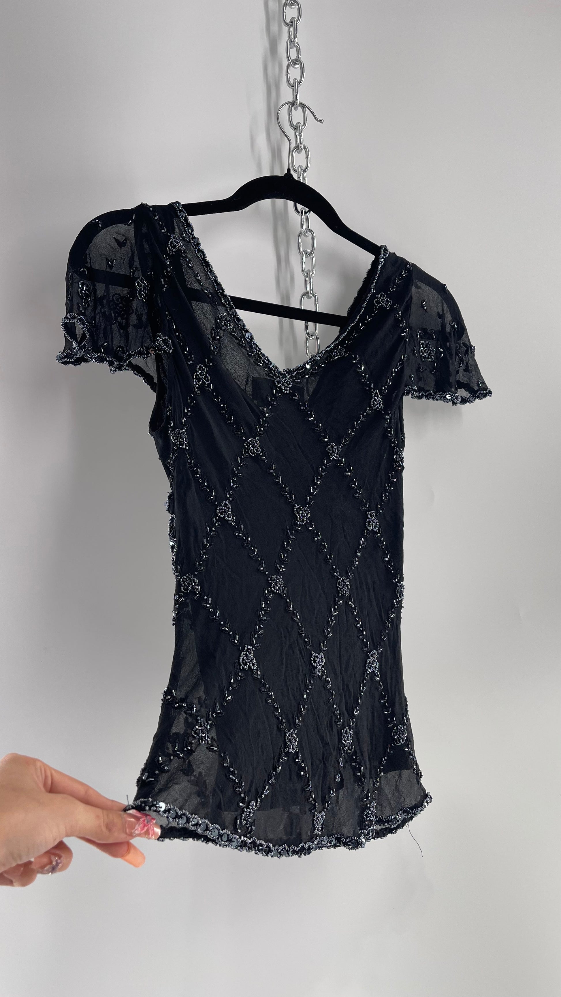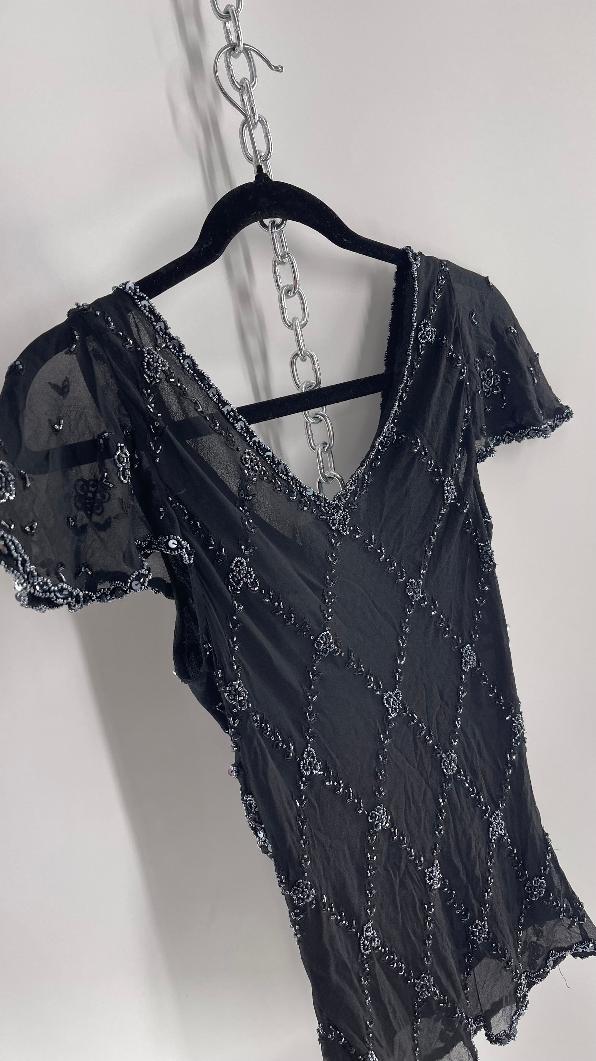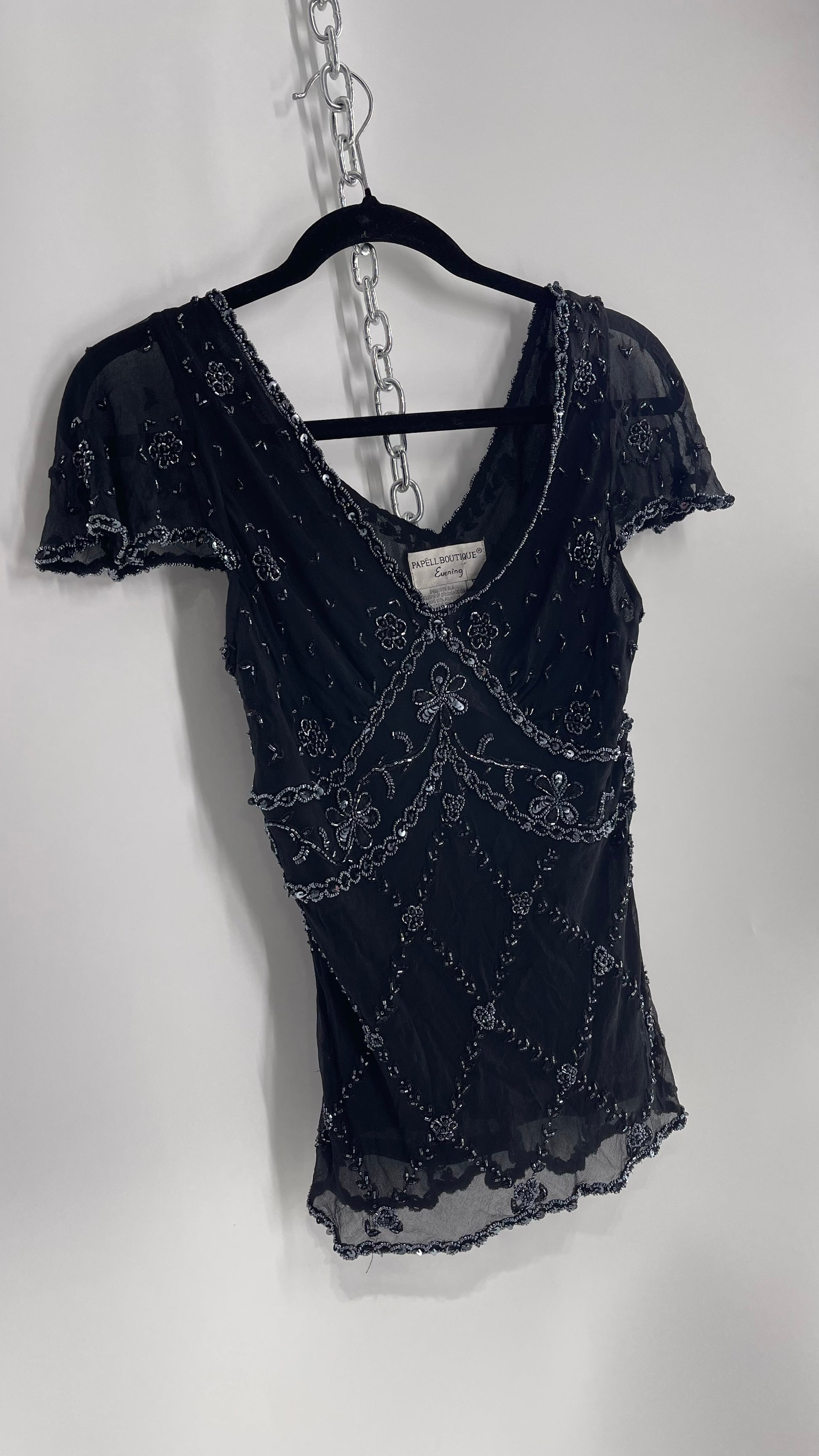 Vintage 100% Silk Papell Boutique Black Beaded Blouse (Small)