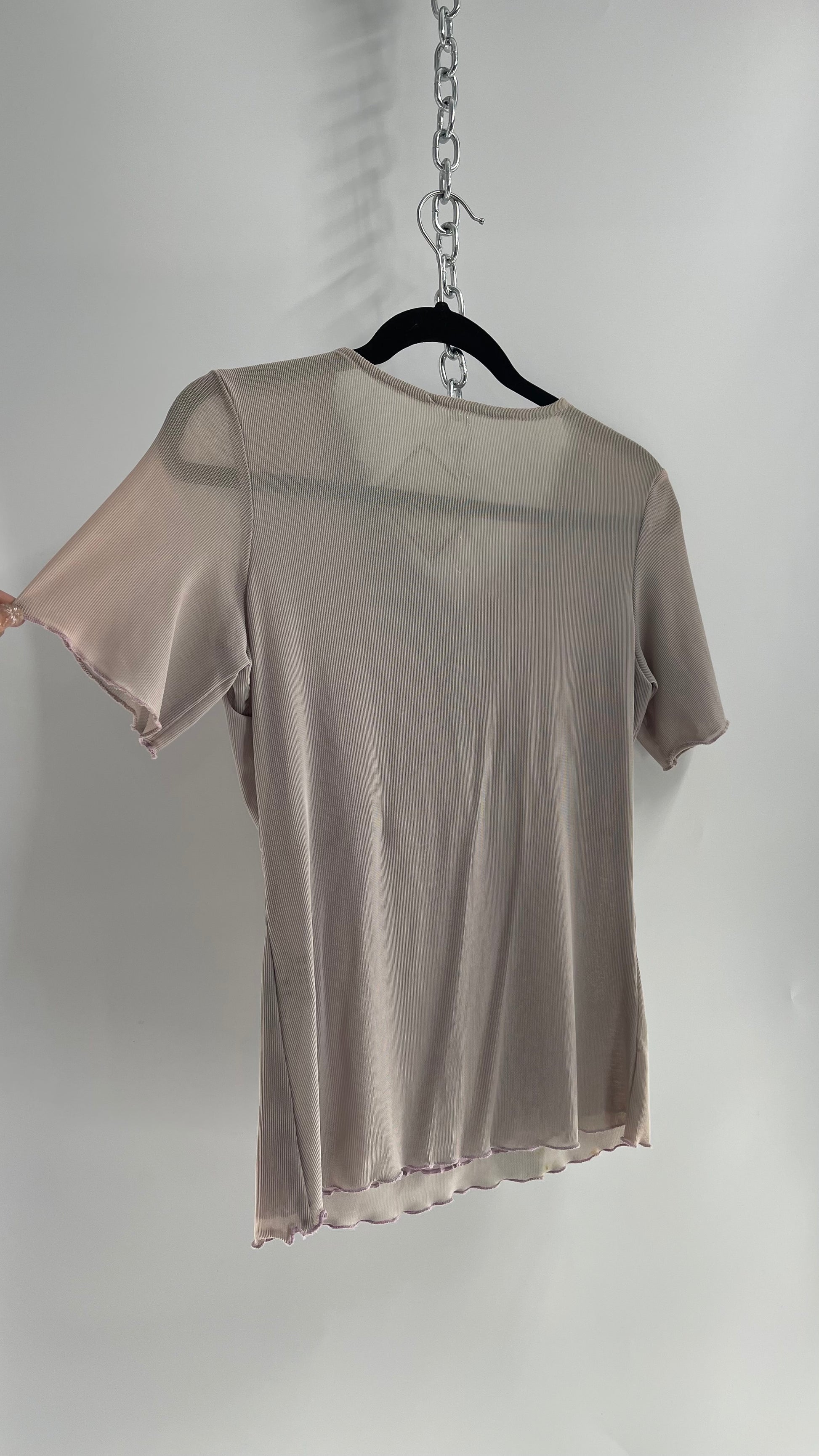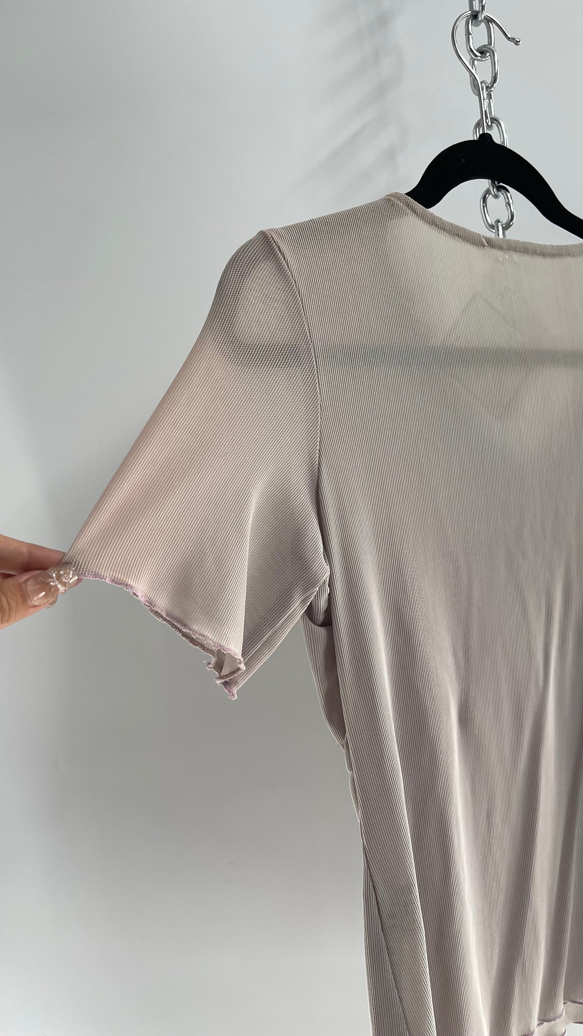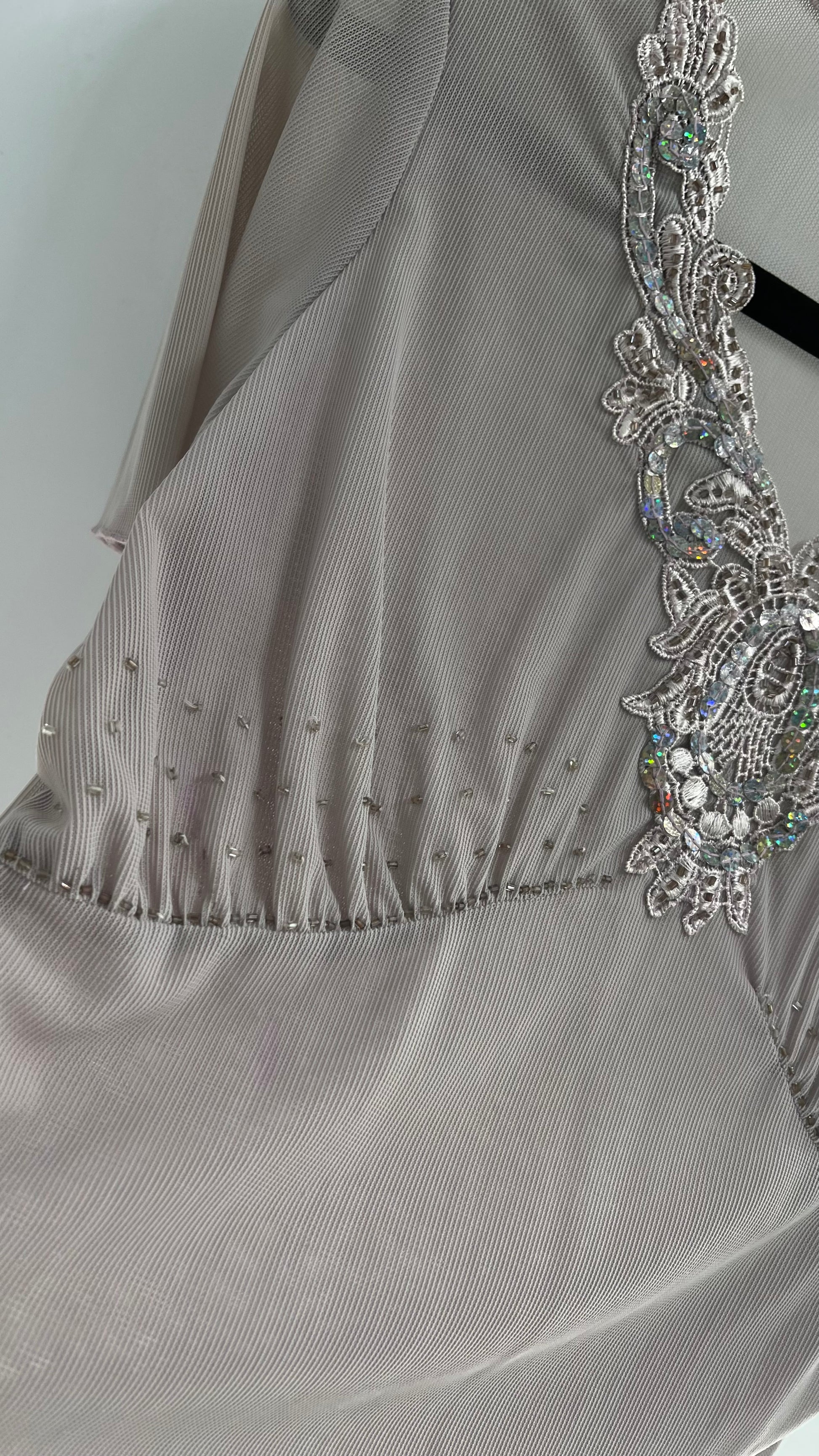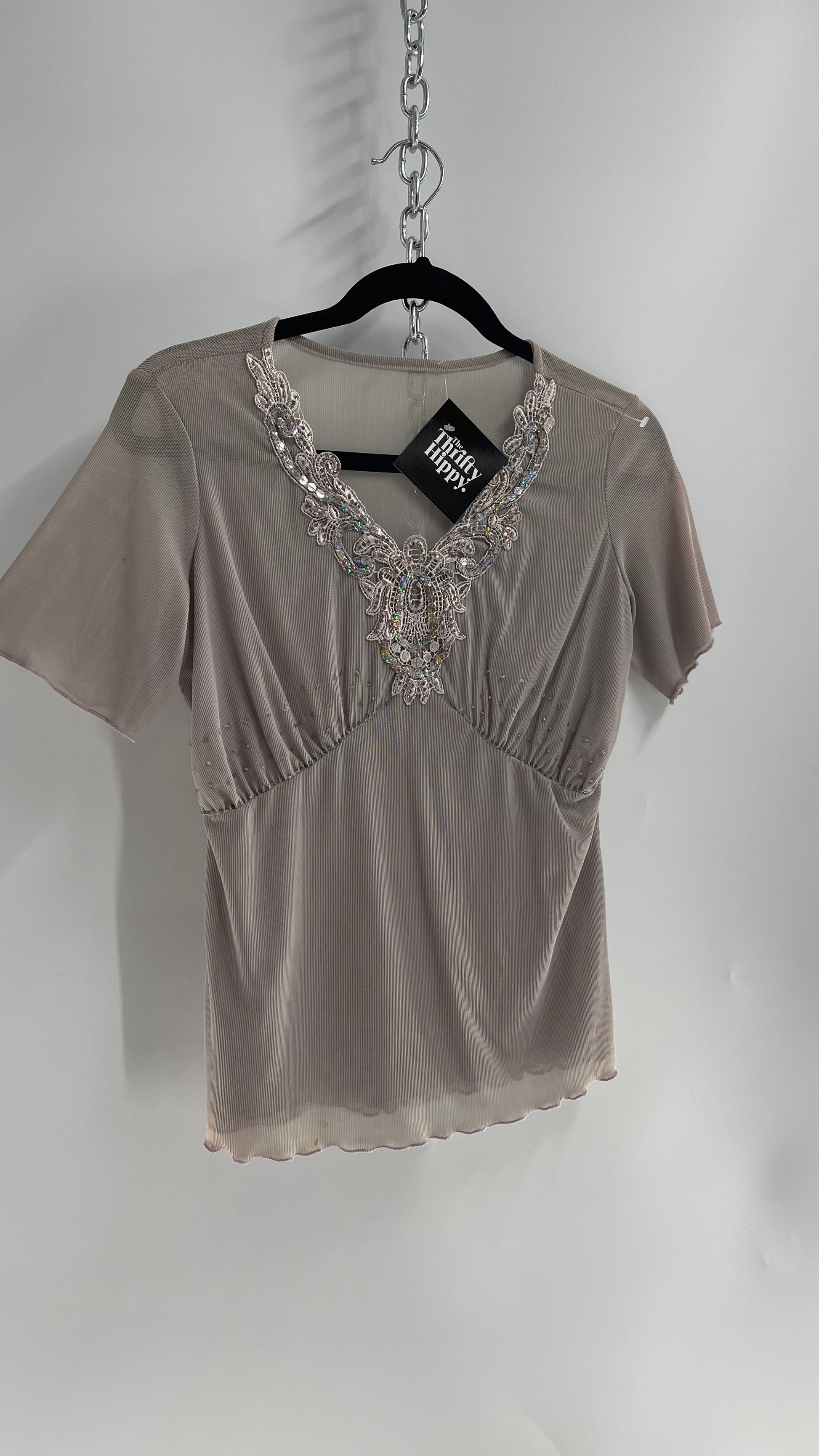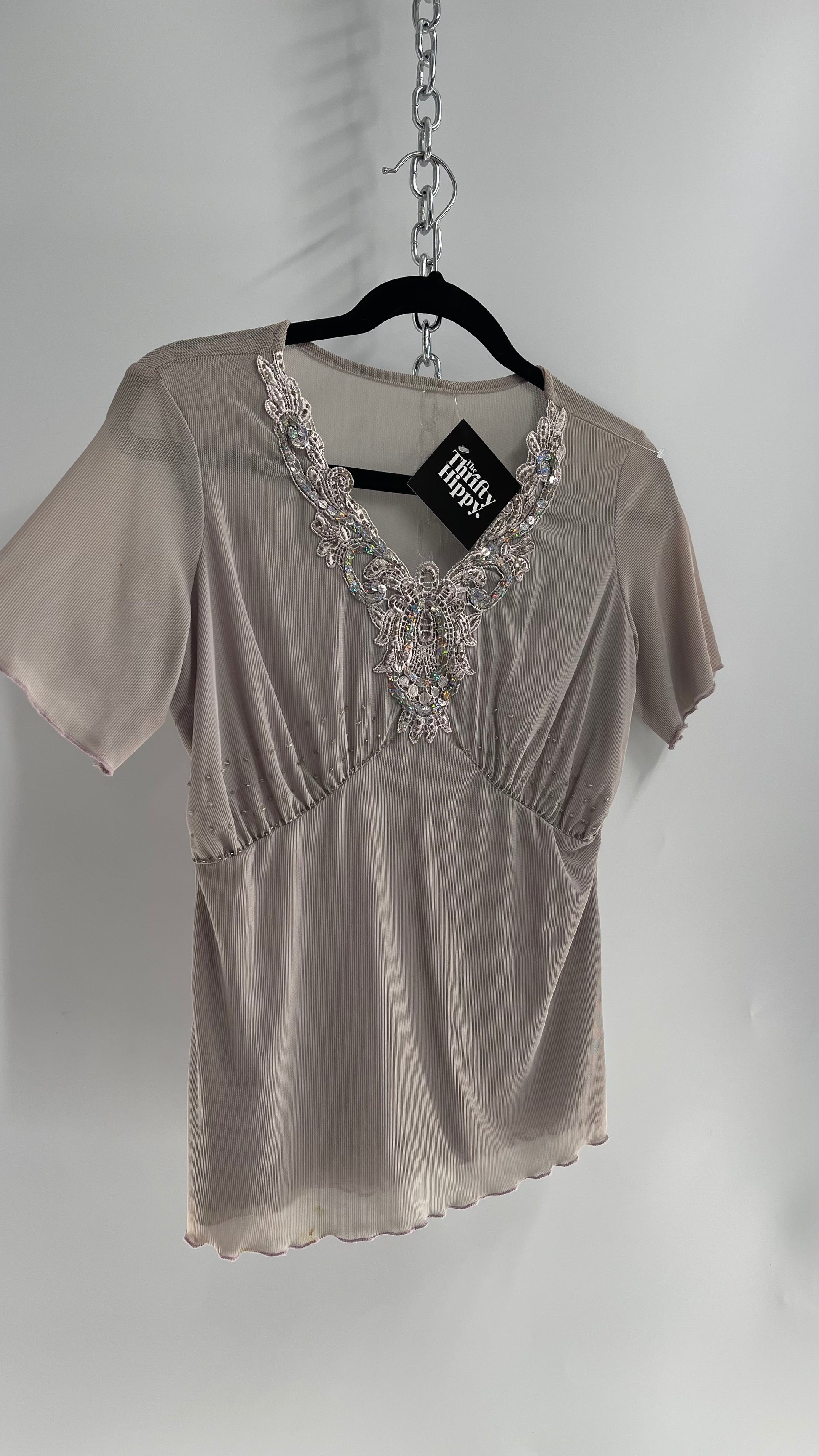 Vintage 1990s Gray Mesh V Neck with Lace, Beading and Sequin Details (Medium)