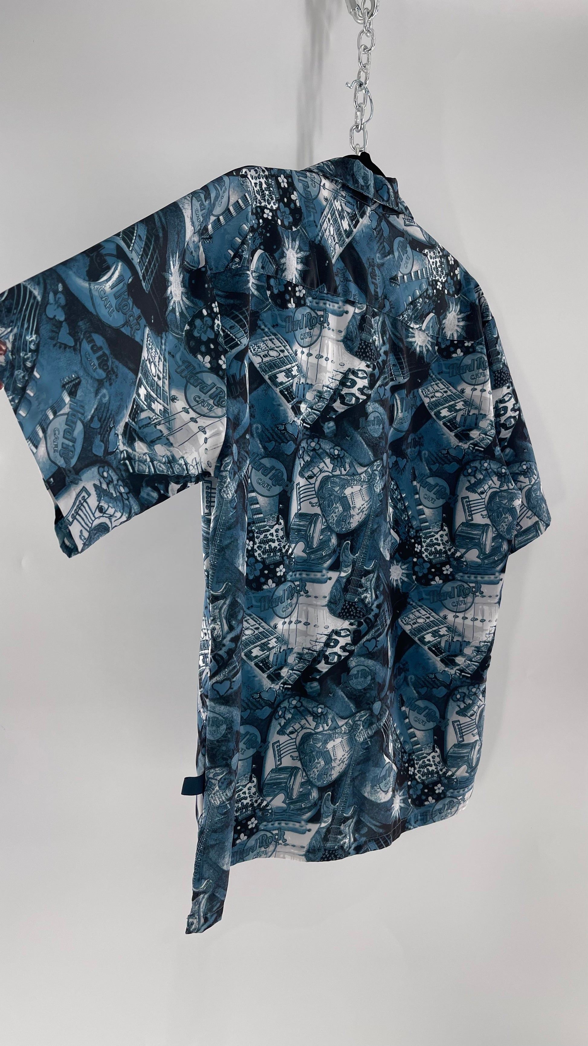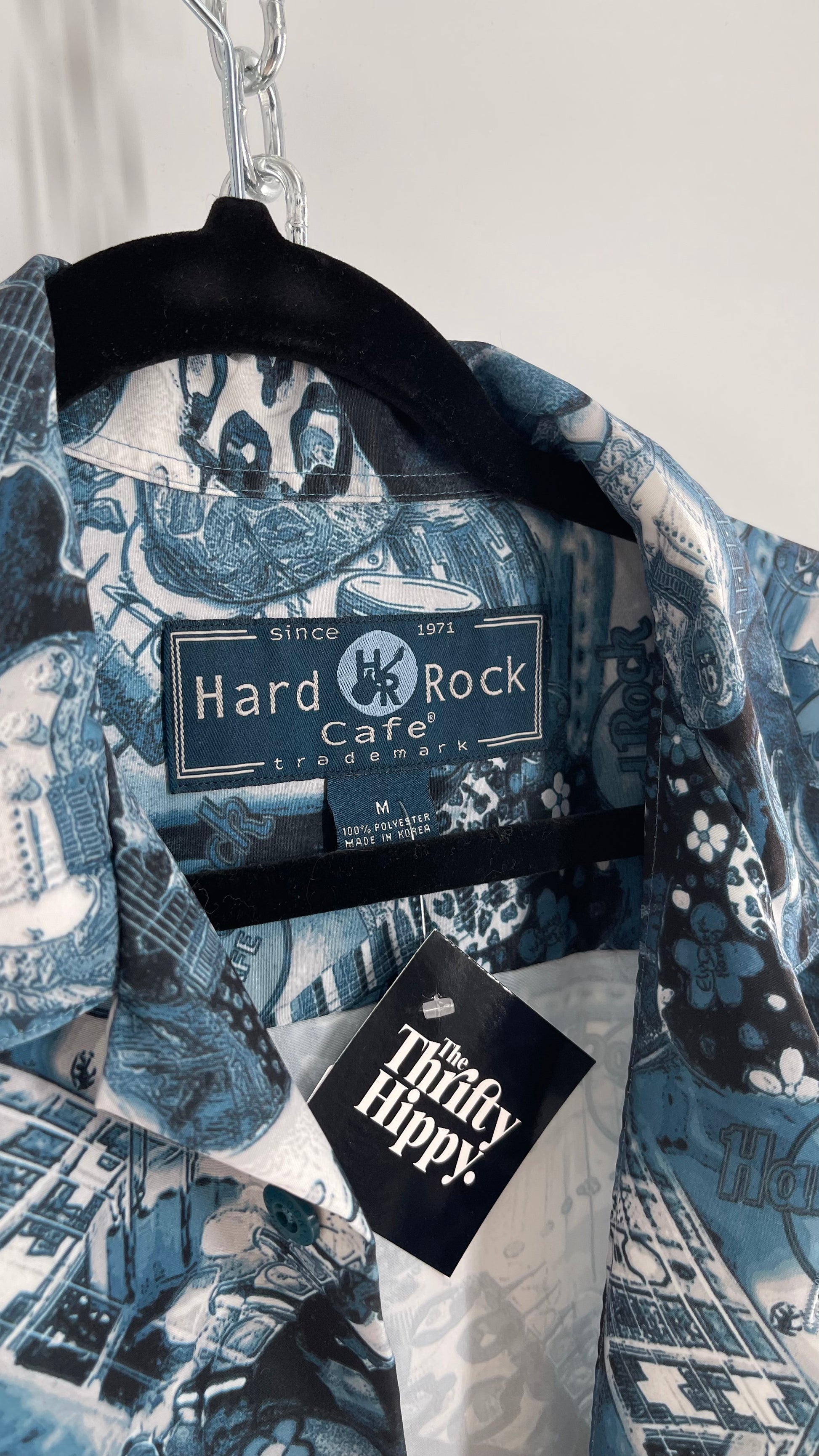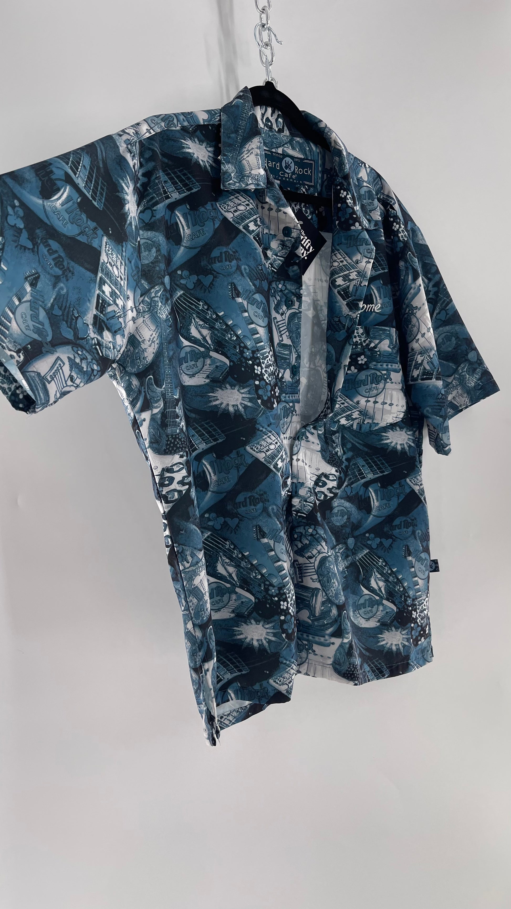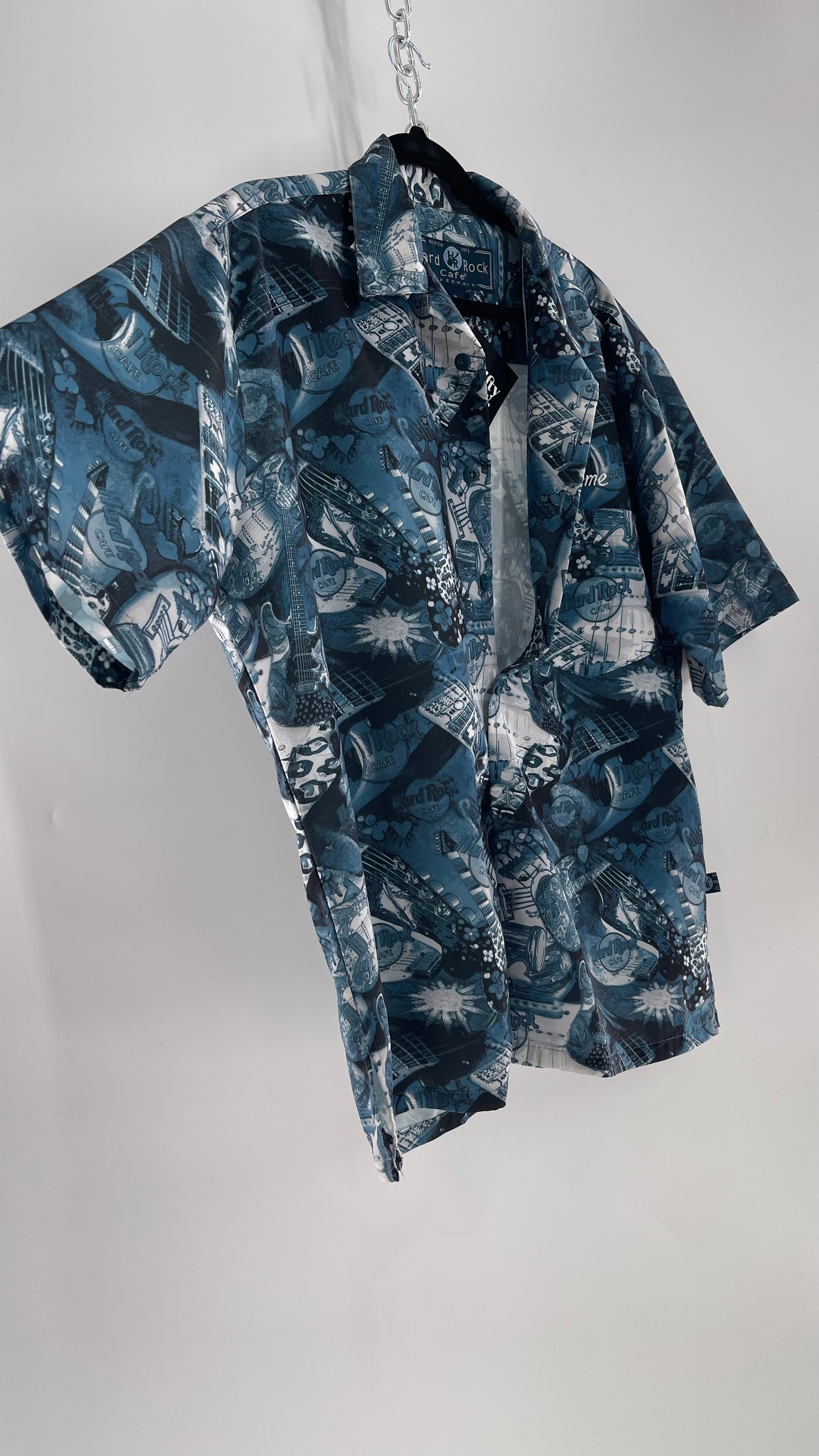 Vintage Hard Rock All Over Graphic Button Up Short Sleeve (Medium)