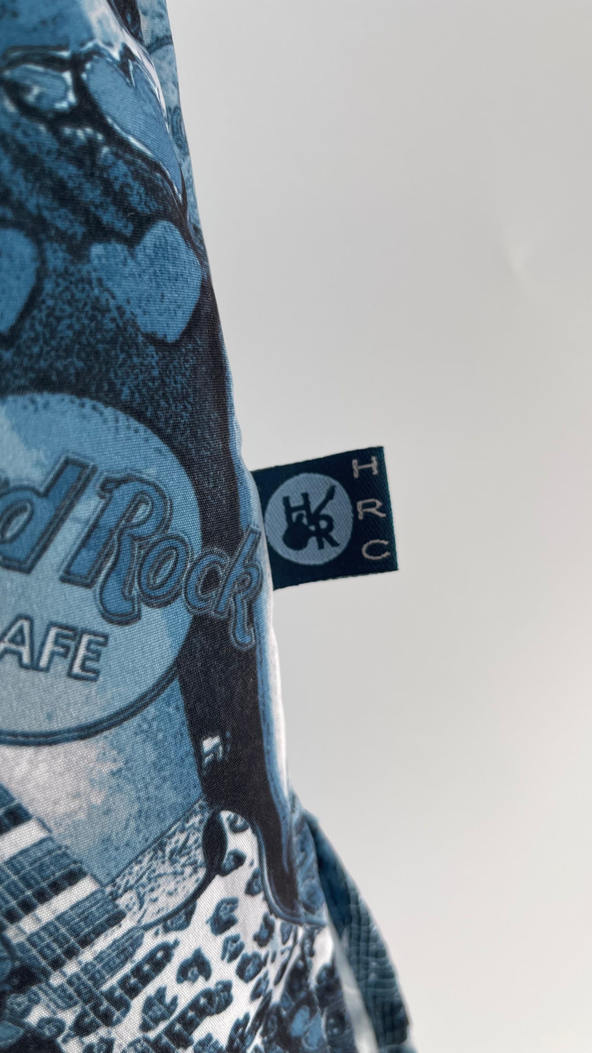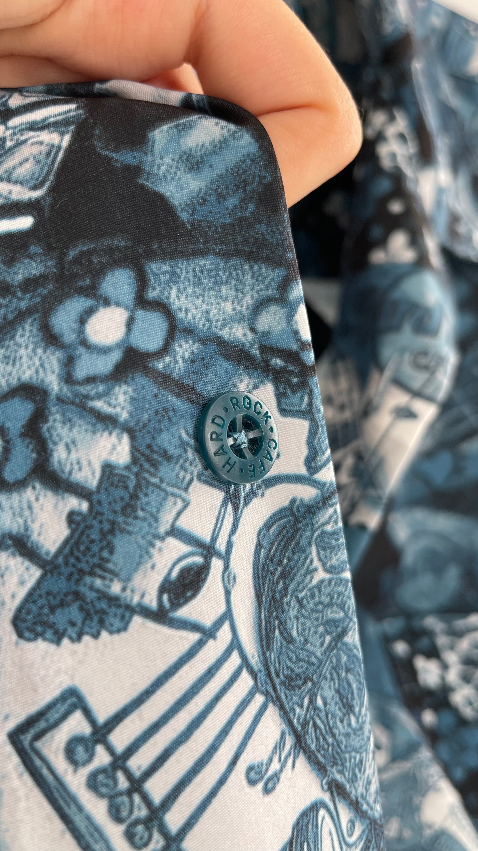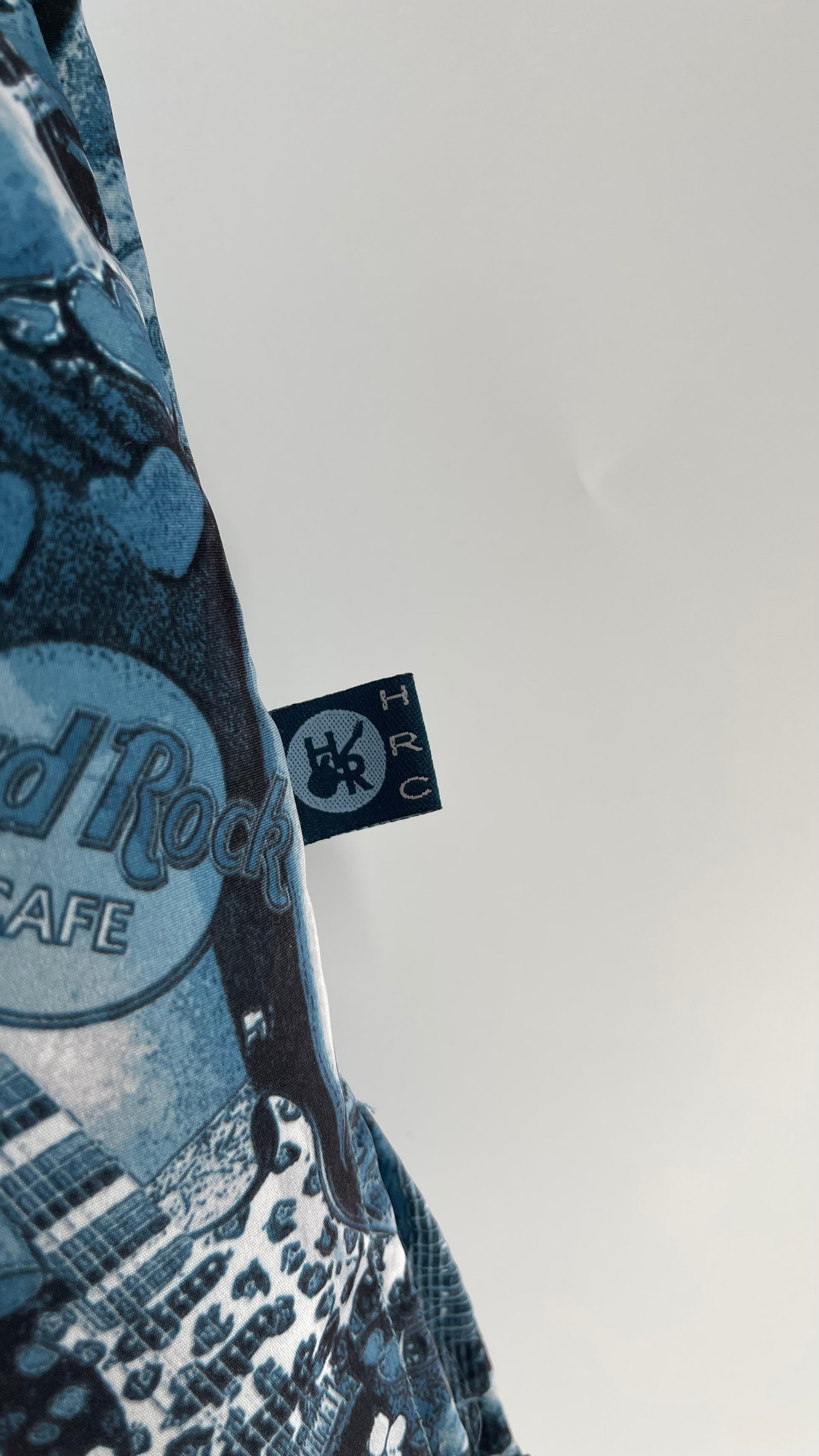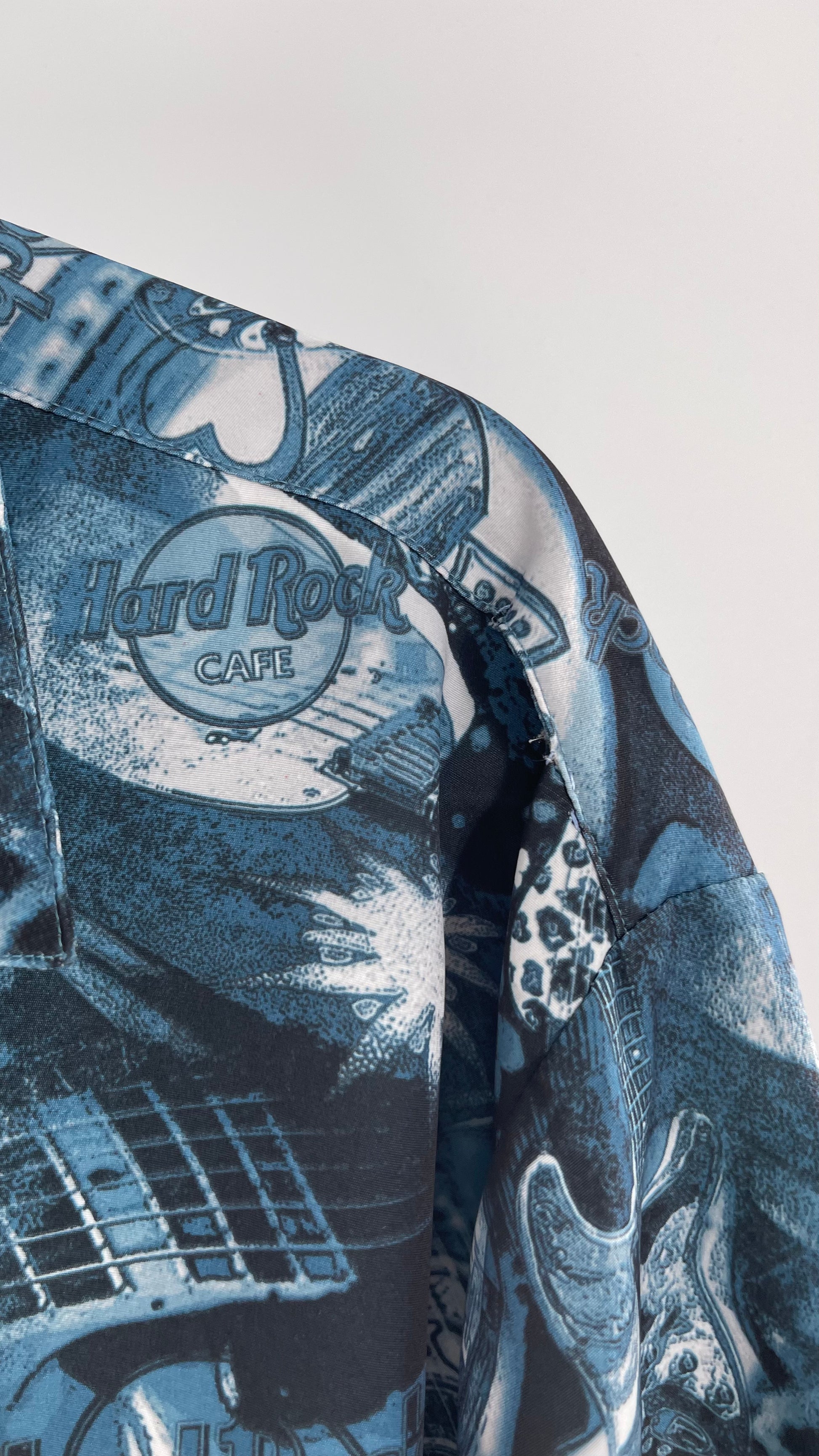 Vintage Hard Rock All Over Graphic Button Up Short Sleeve (Medium)