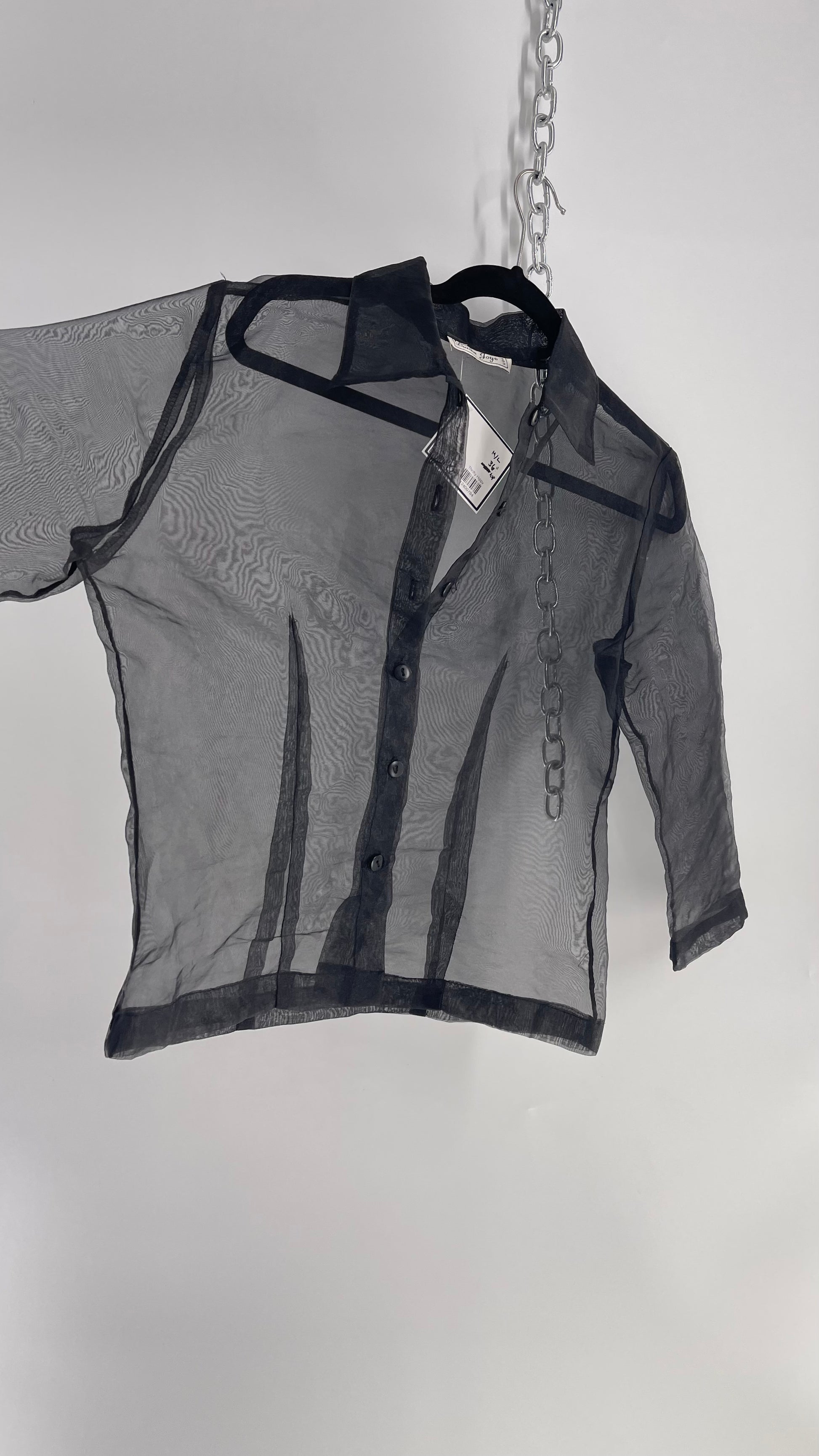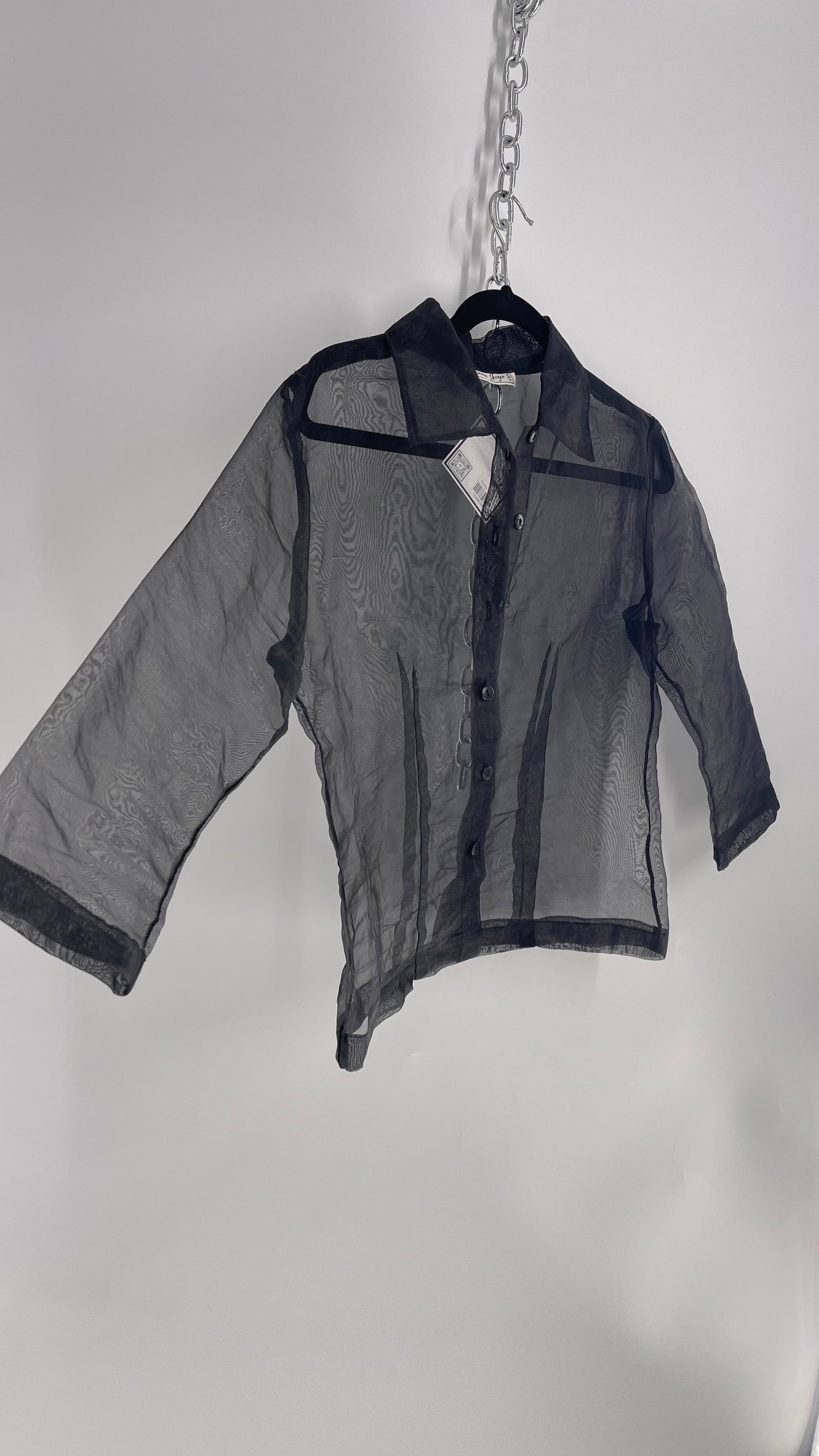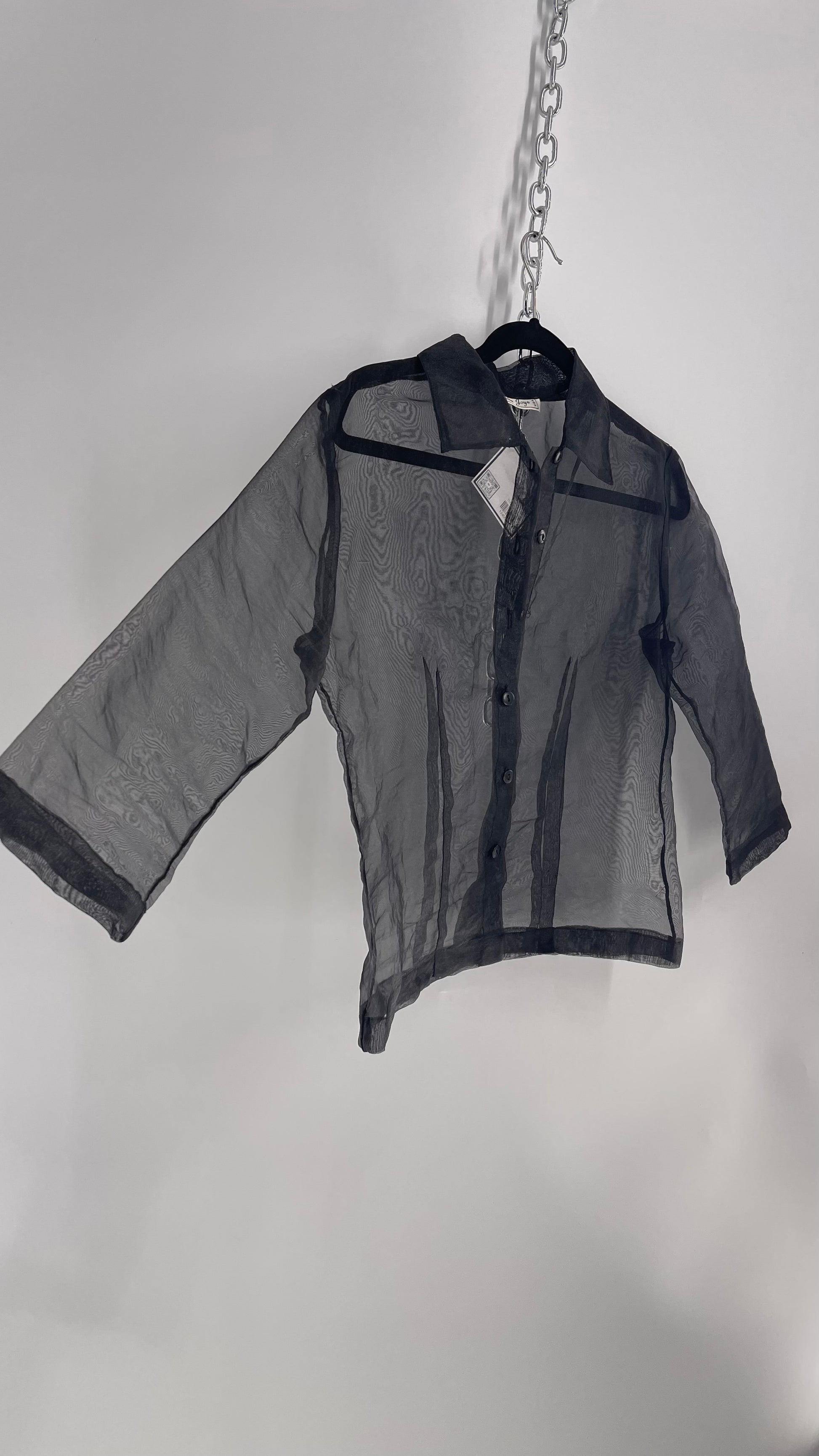 Vintage Organza Black Sheer Button Up Top (Medium) waist 34”