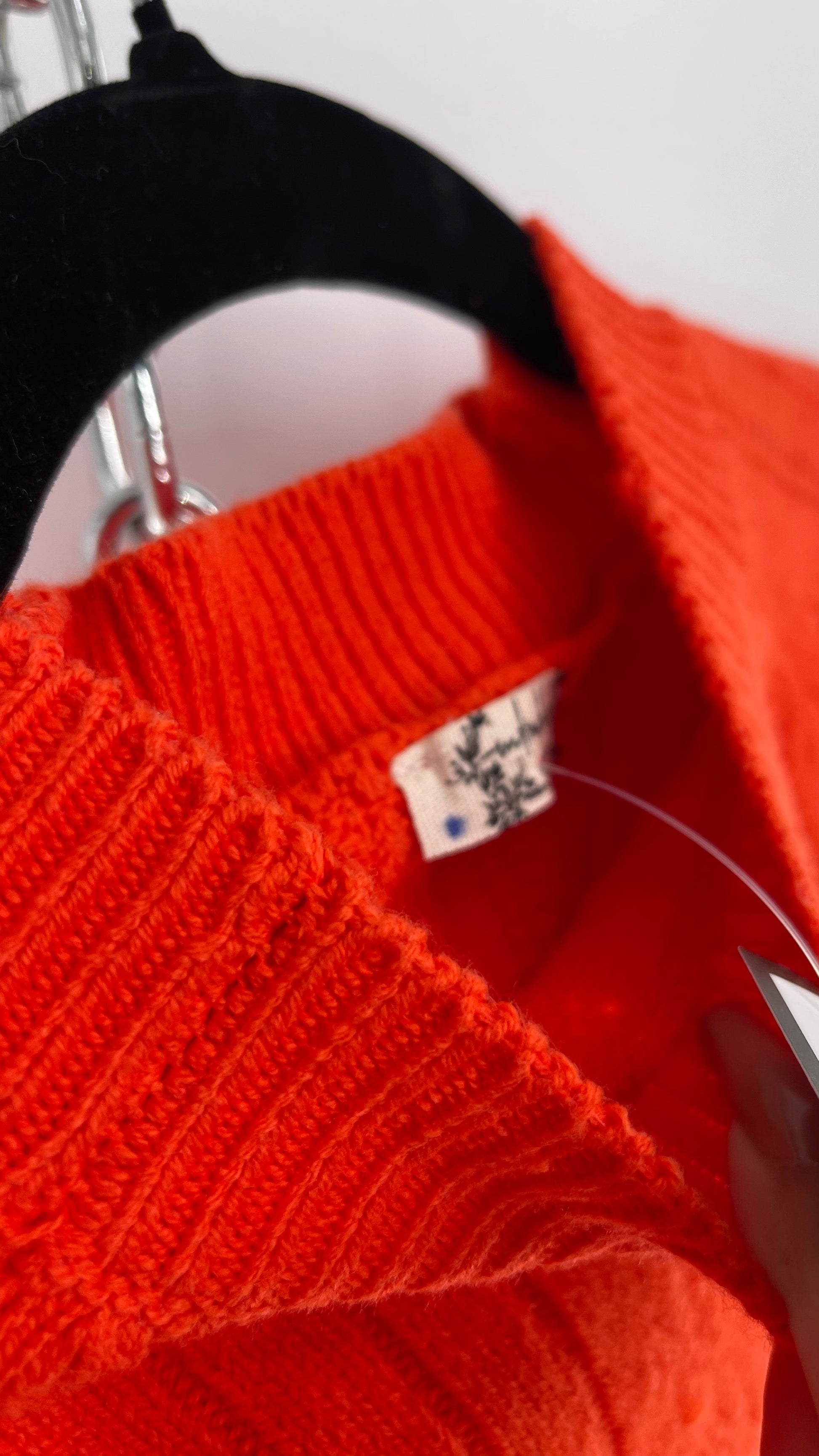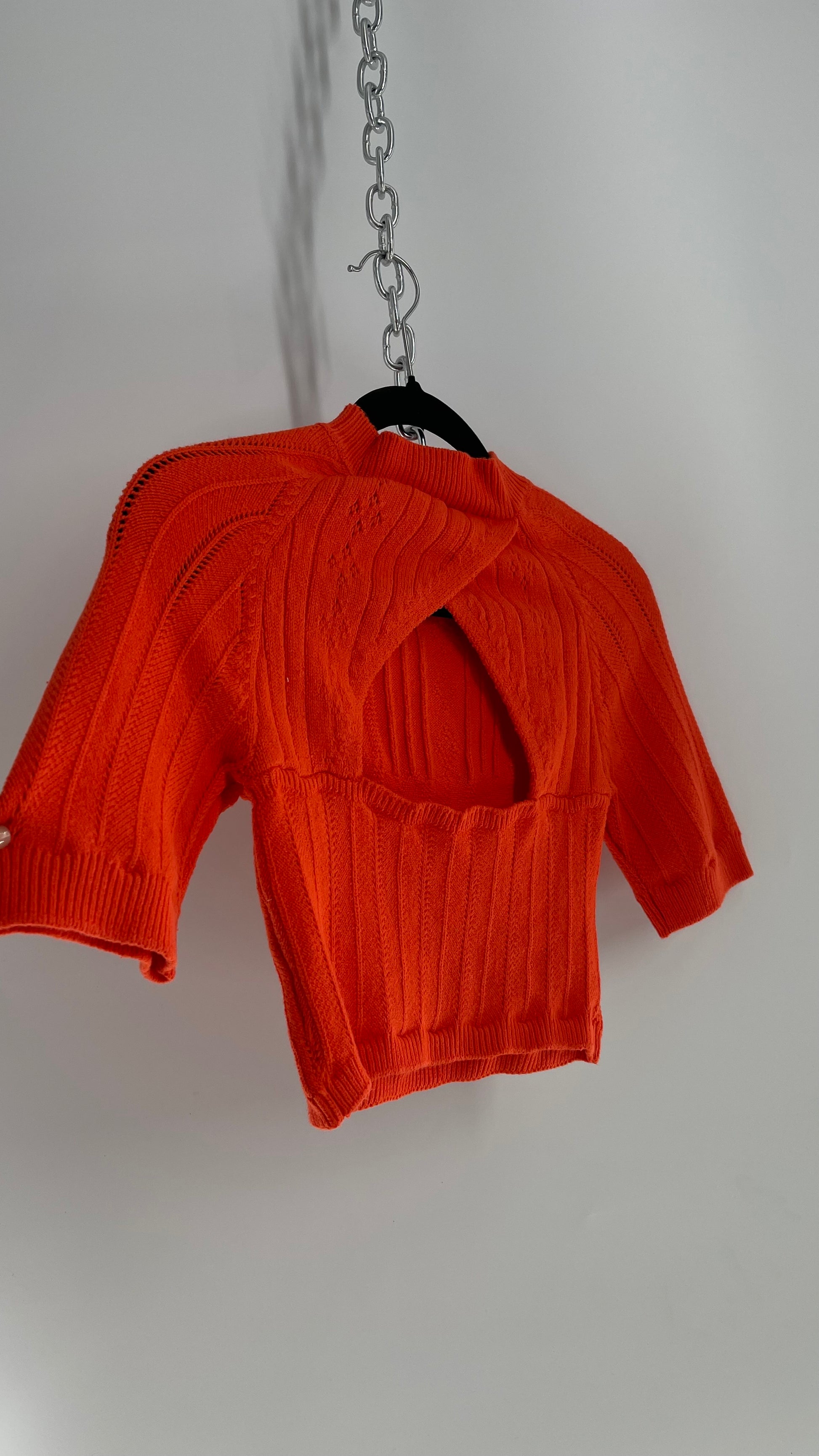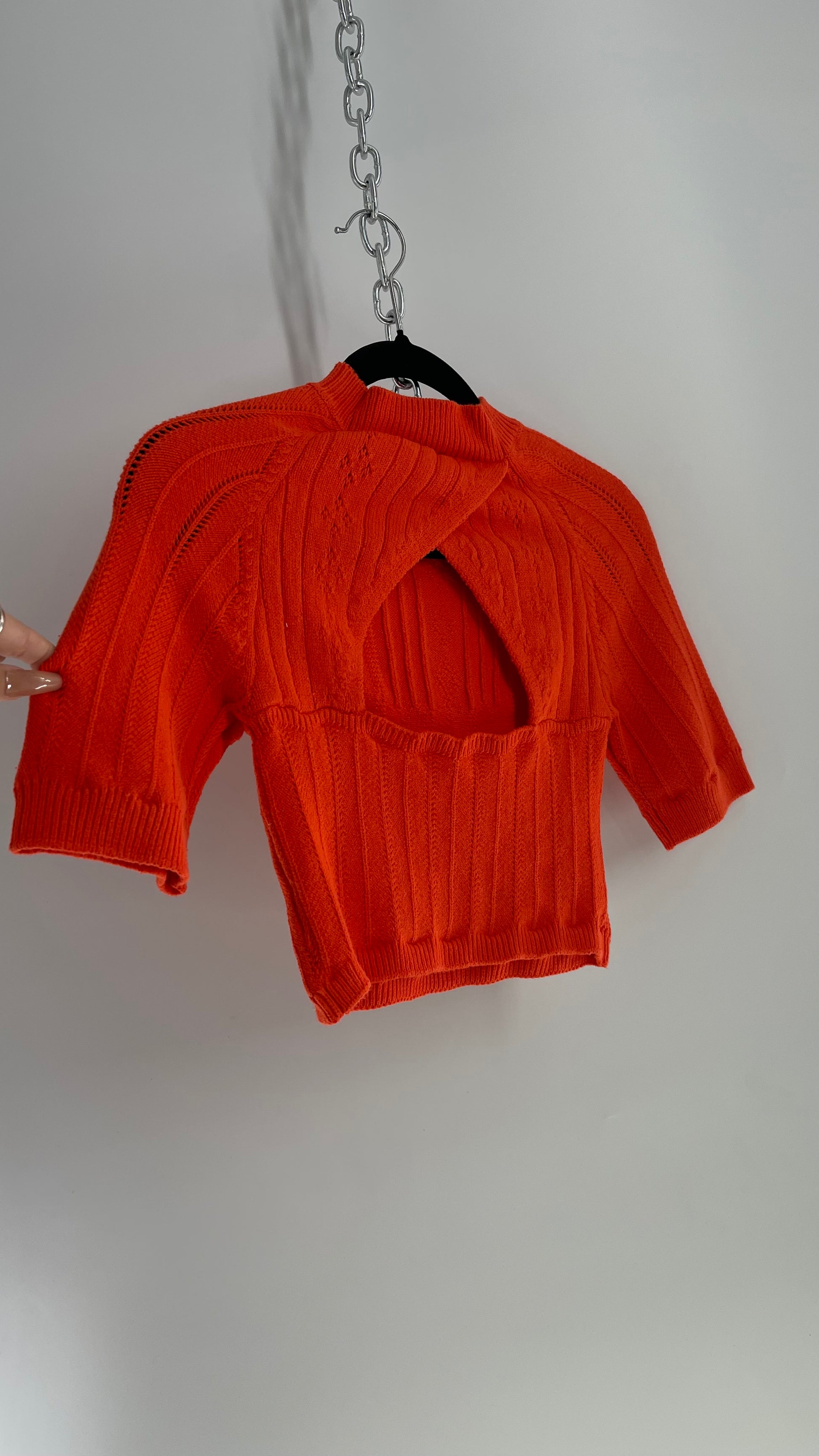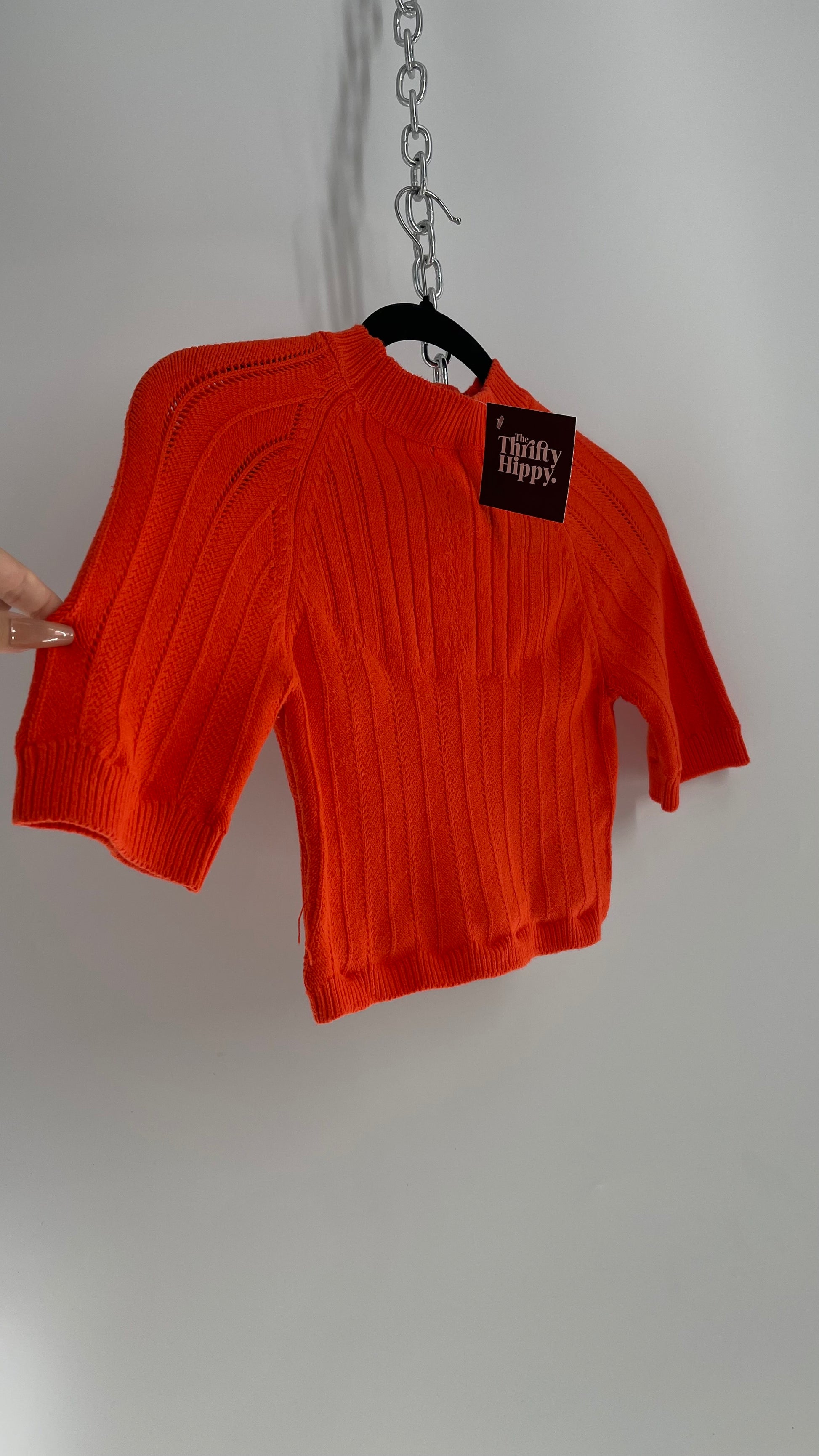 Free People Orange Knit Mock Neck Sweater with Keyhole Open Back (Medium)