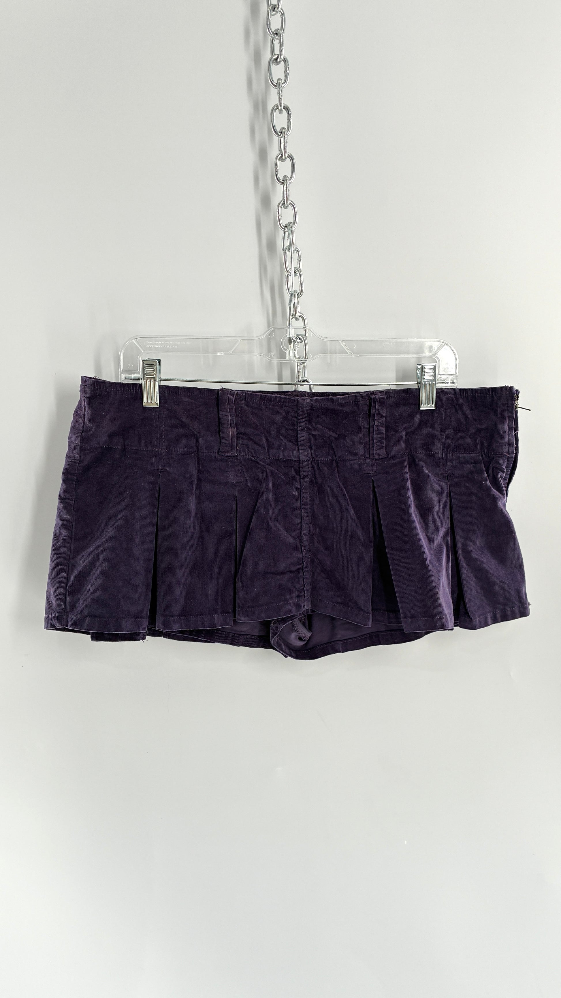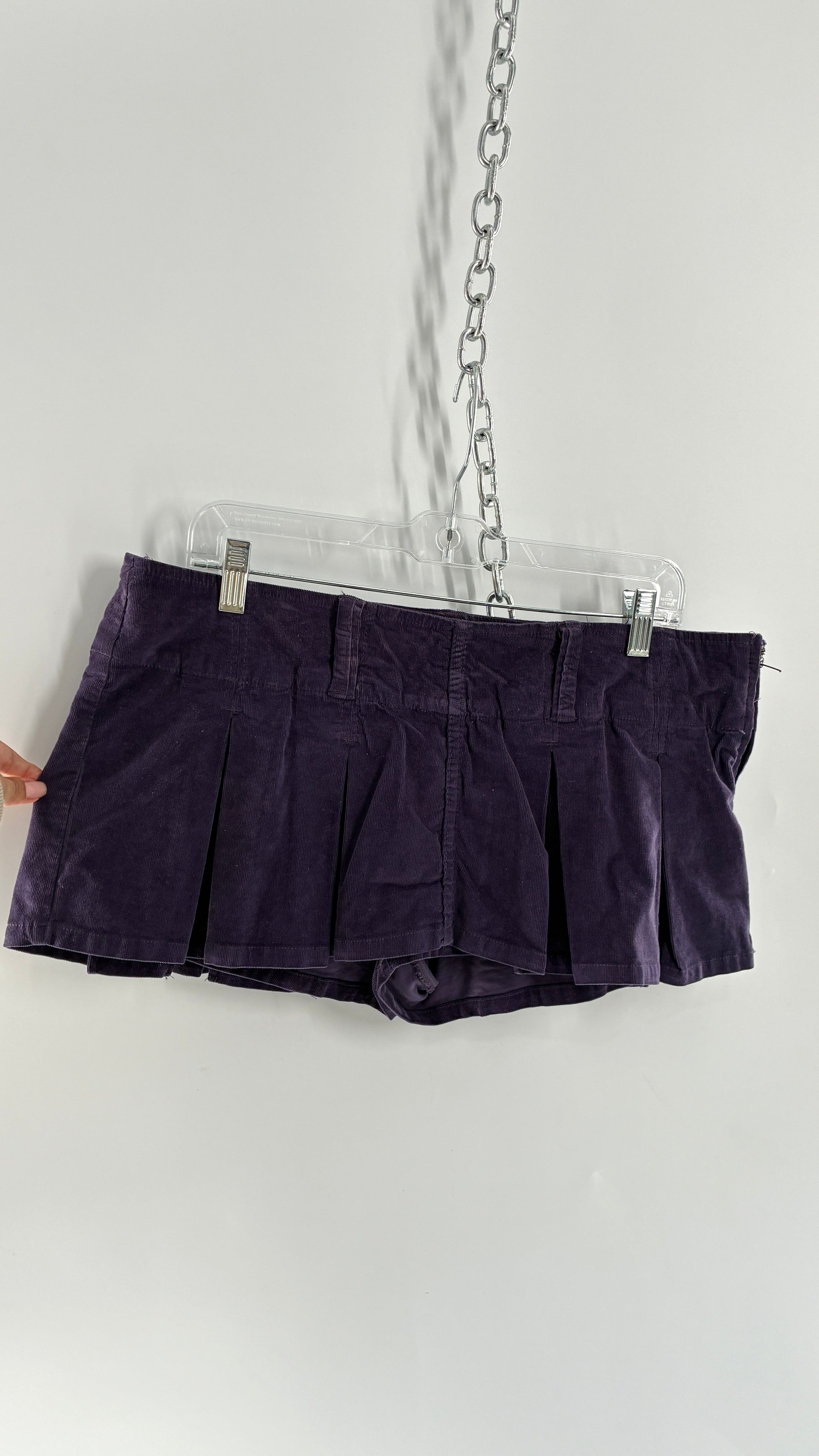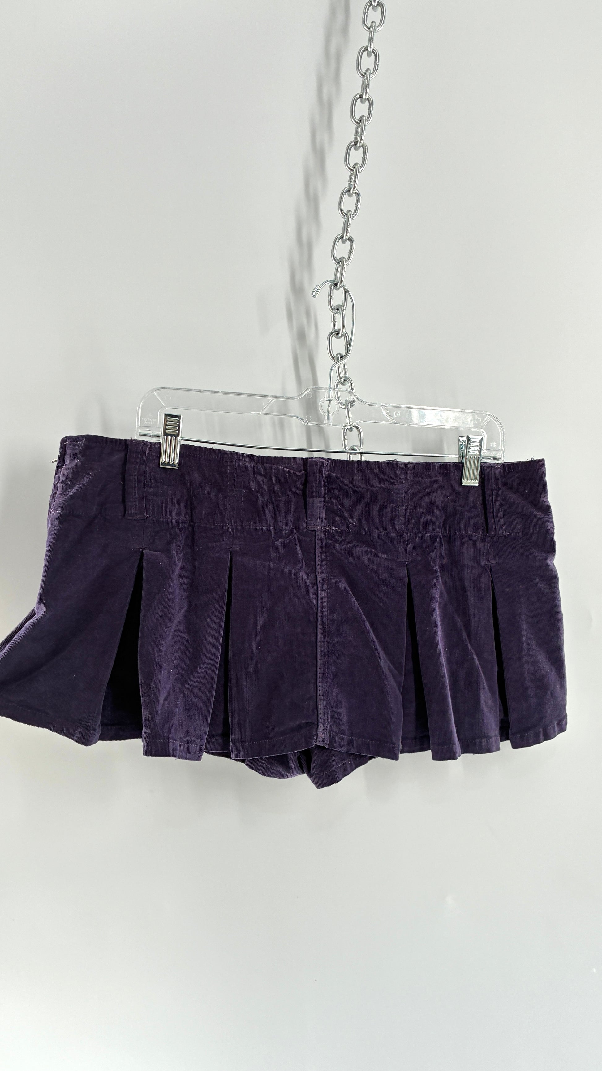 Free People Purple Corduroy Pleated Micro Mini Skirt with Built in Shorts