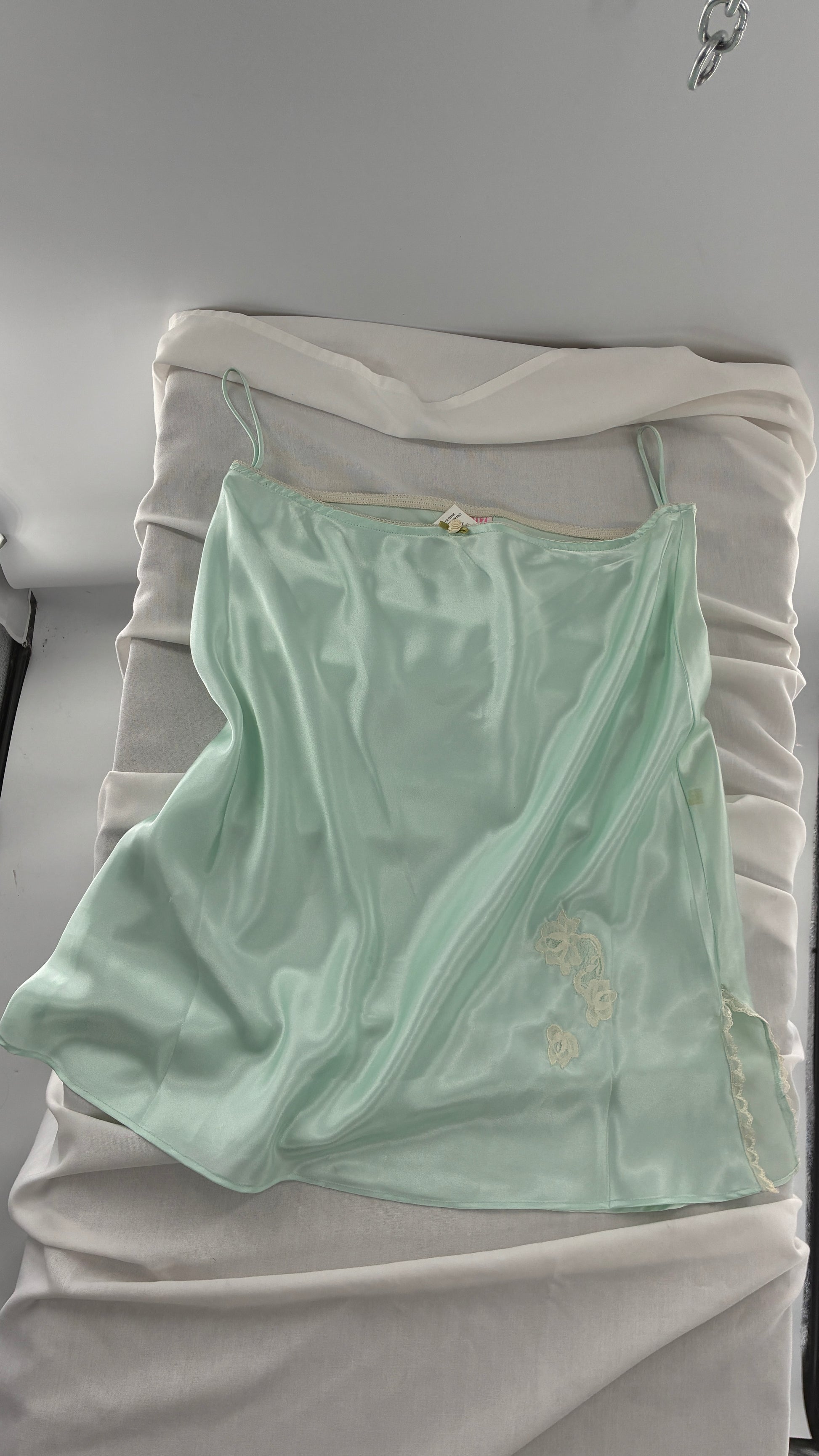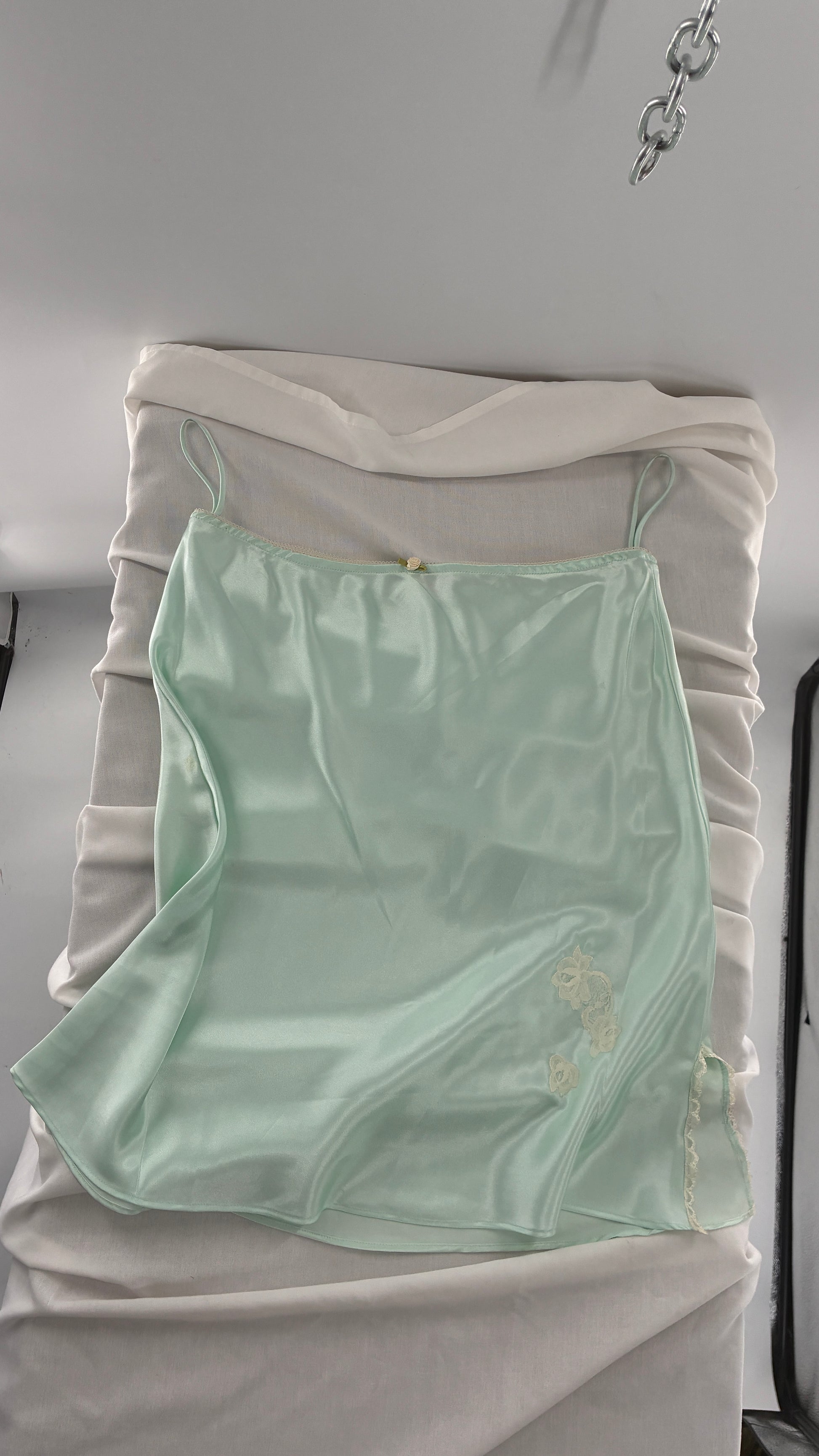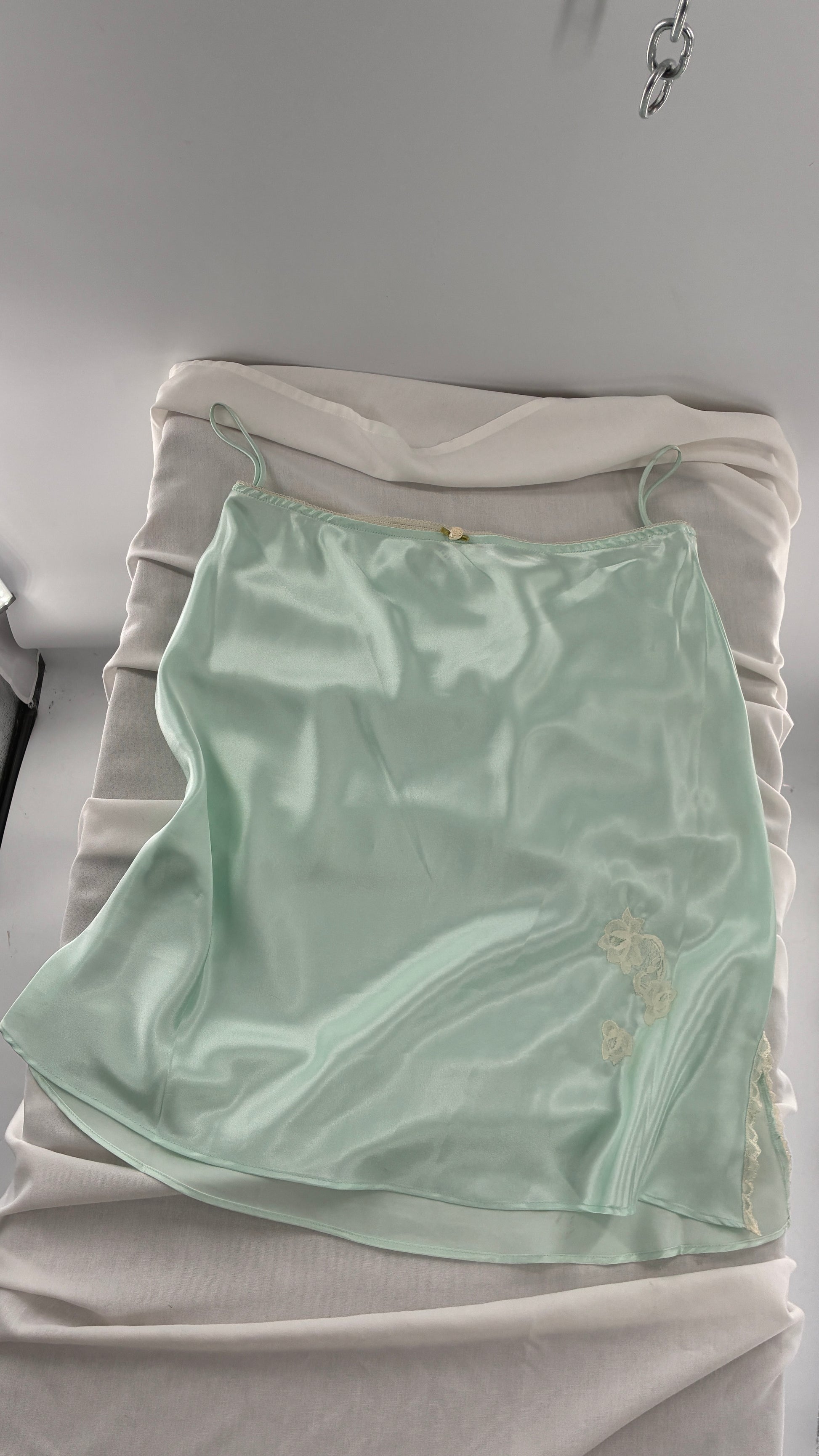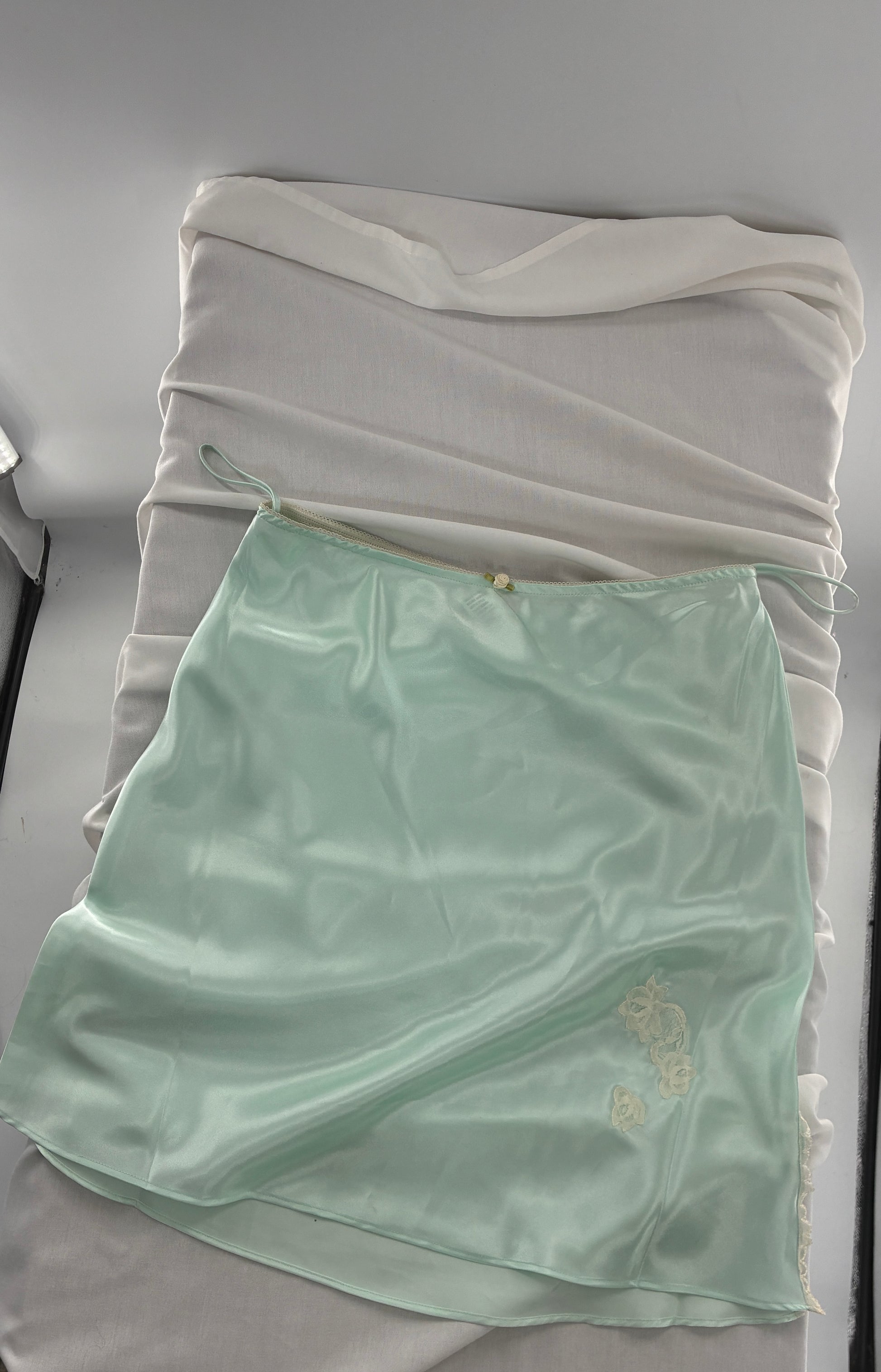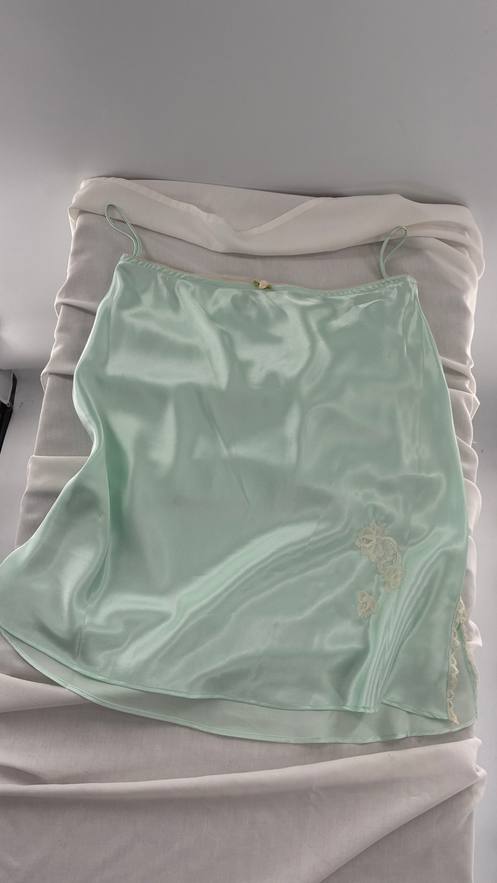 Vintage CRUZ Mint Slip Skirt with Lace Appliqués and Rosette Waistline (Large)