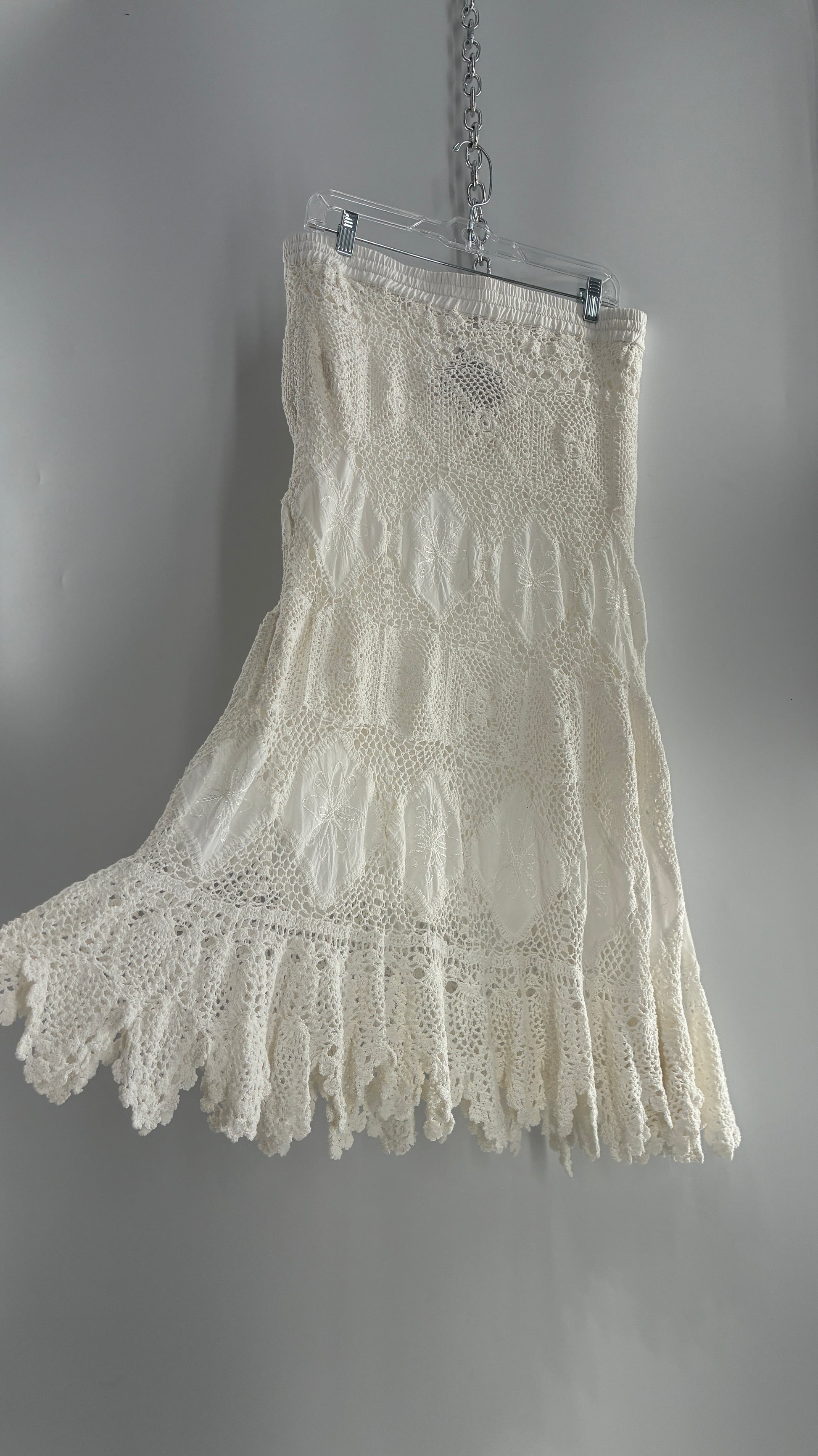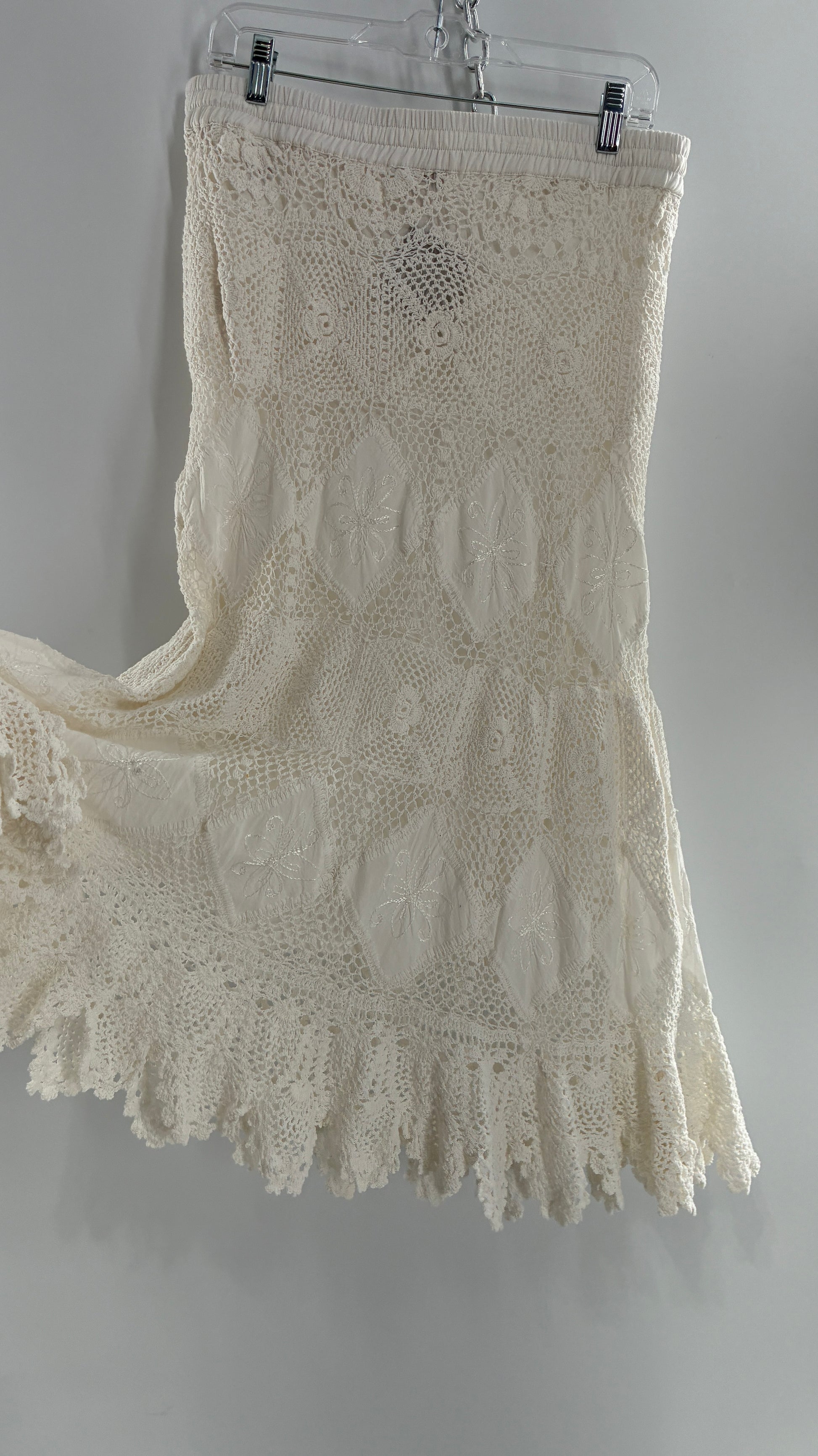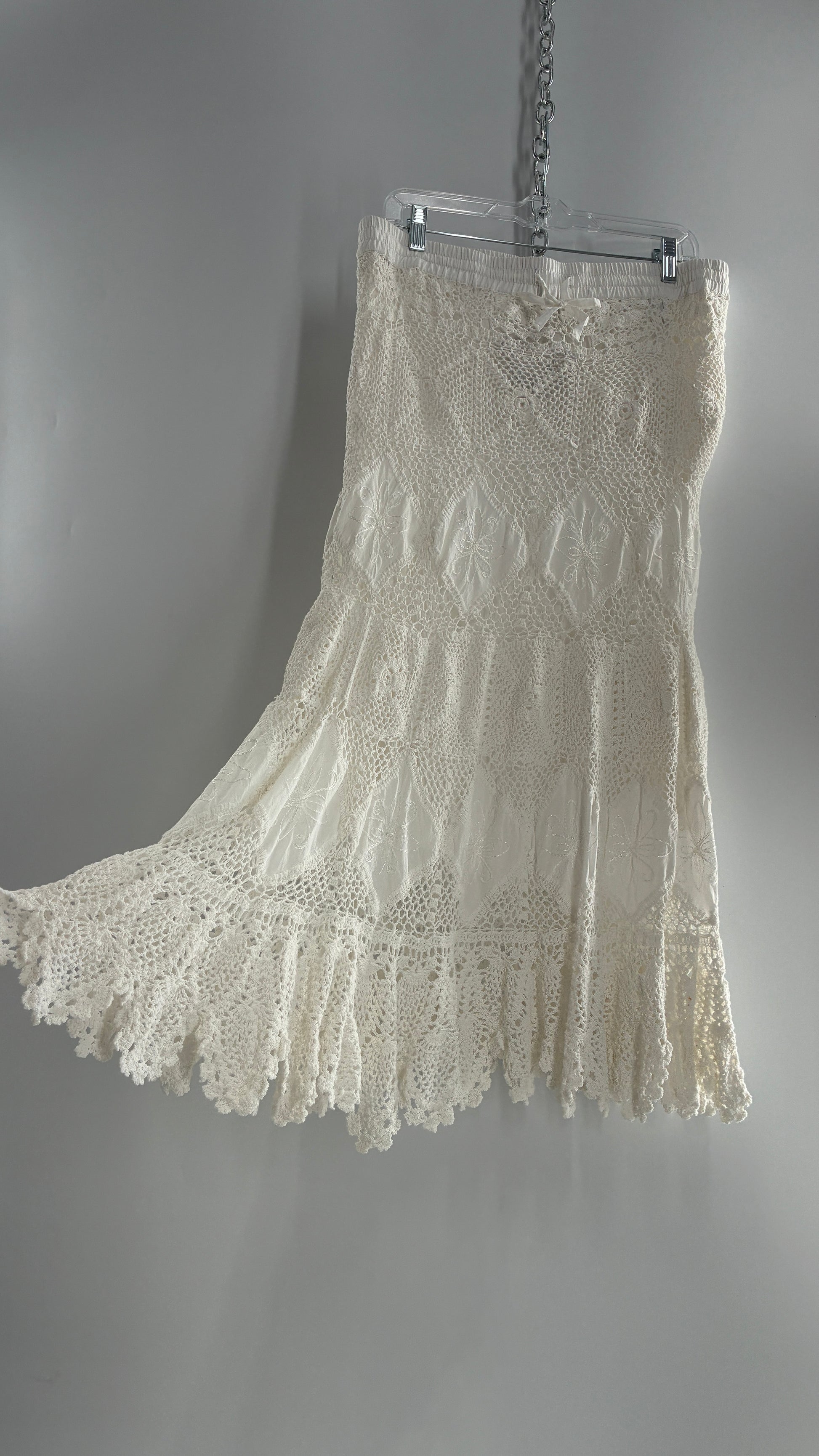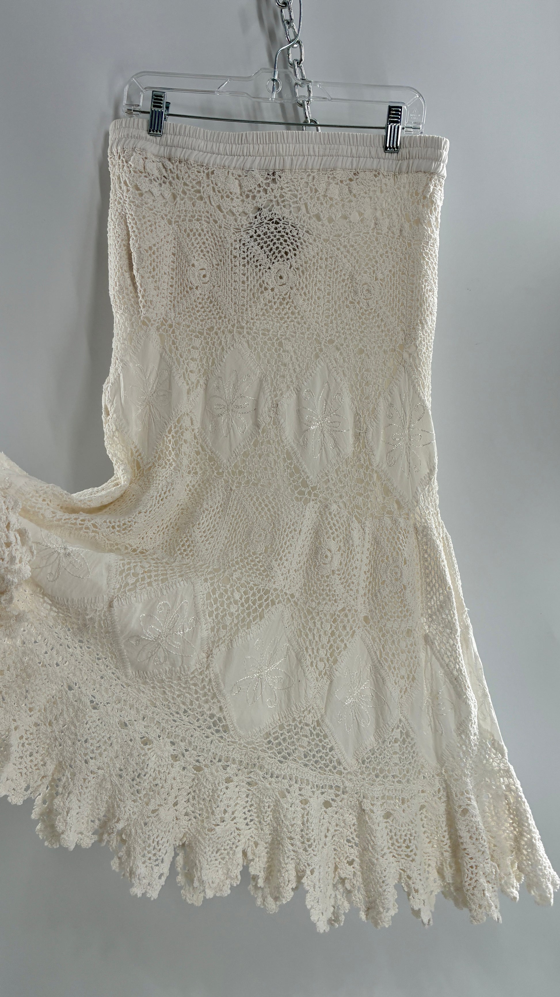Vintage Full Length White Crochet and Appliqué Skirt (Petite Medium)