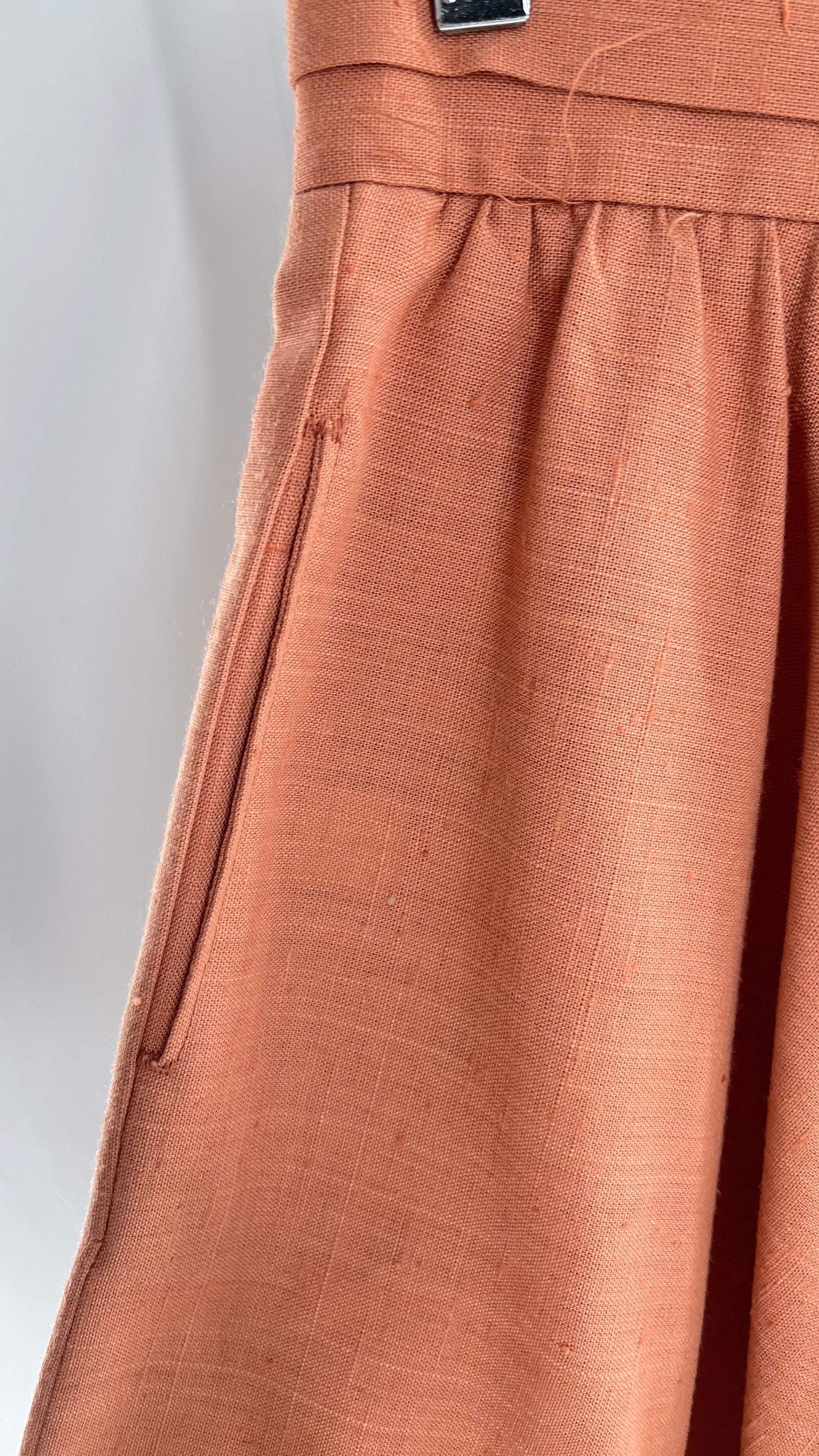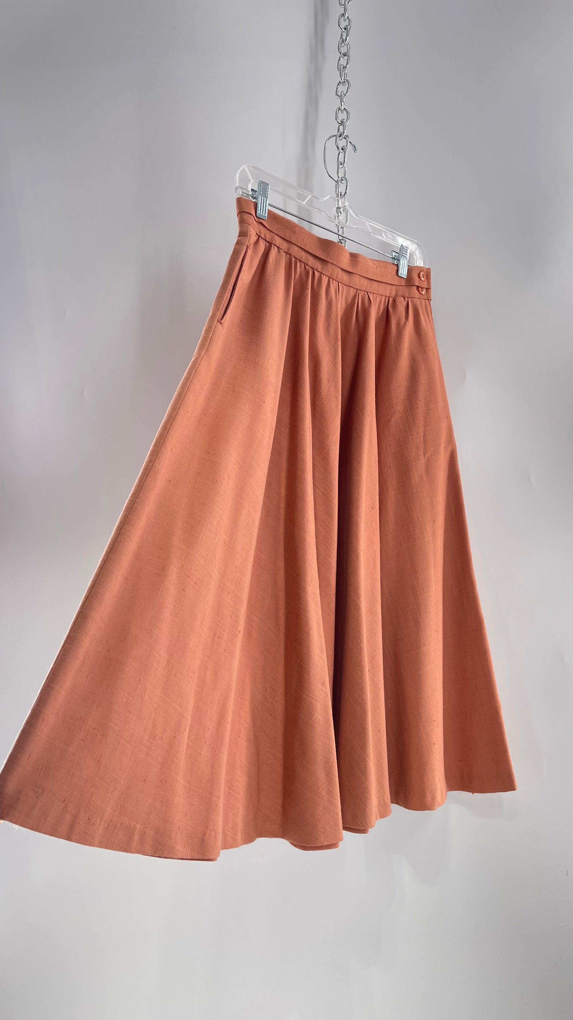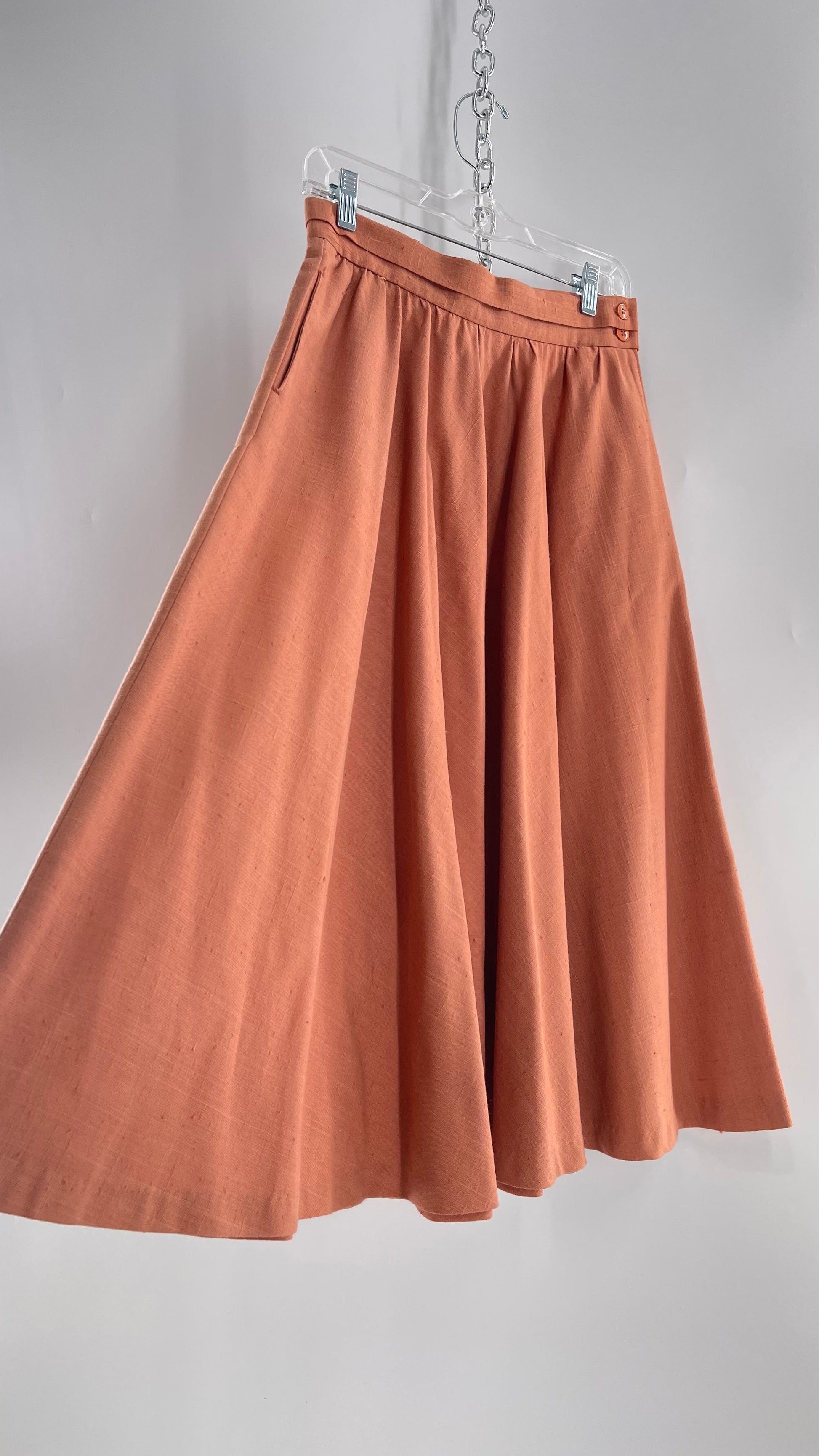 Vintage David N Linen Look Apricot Pink/Orange Circle Skirt with Pockets (9/10)