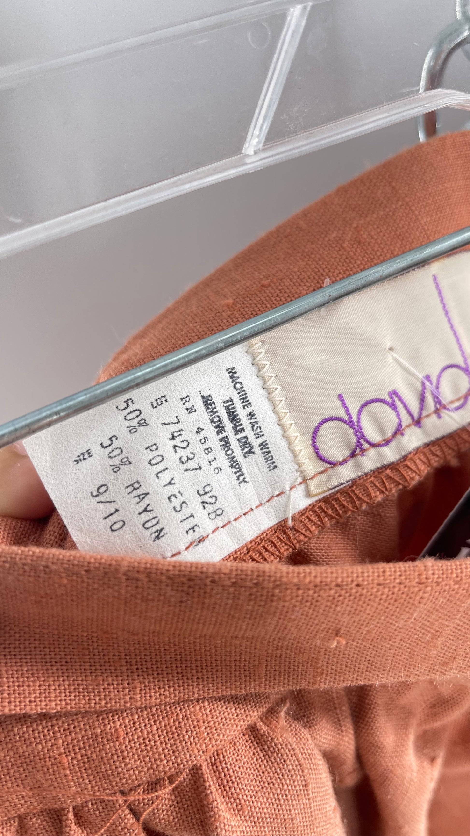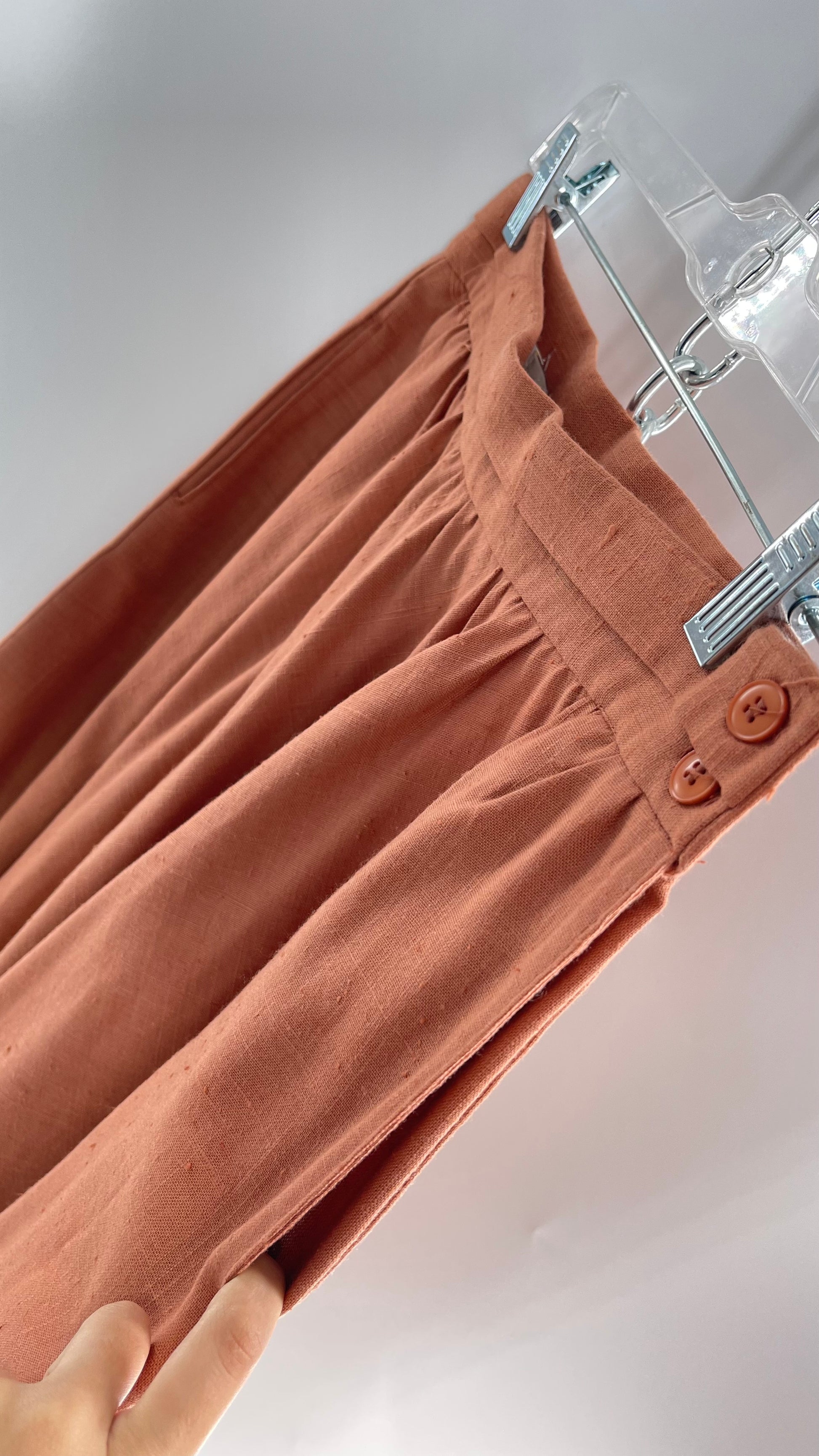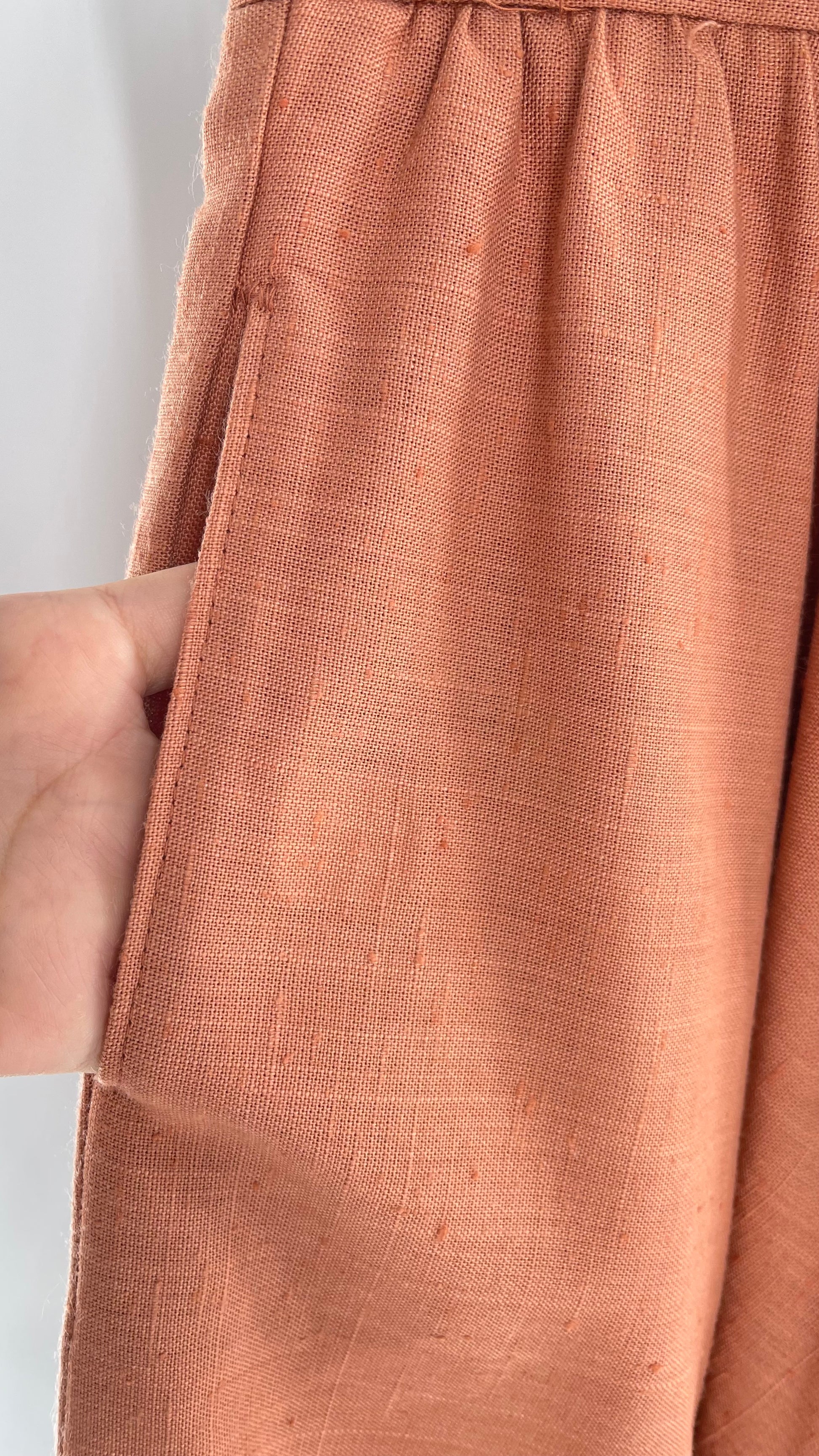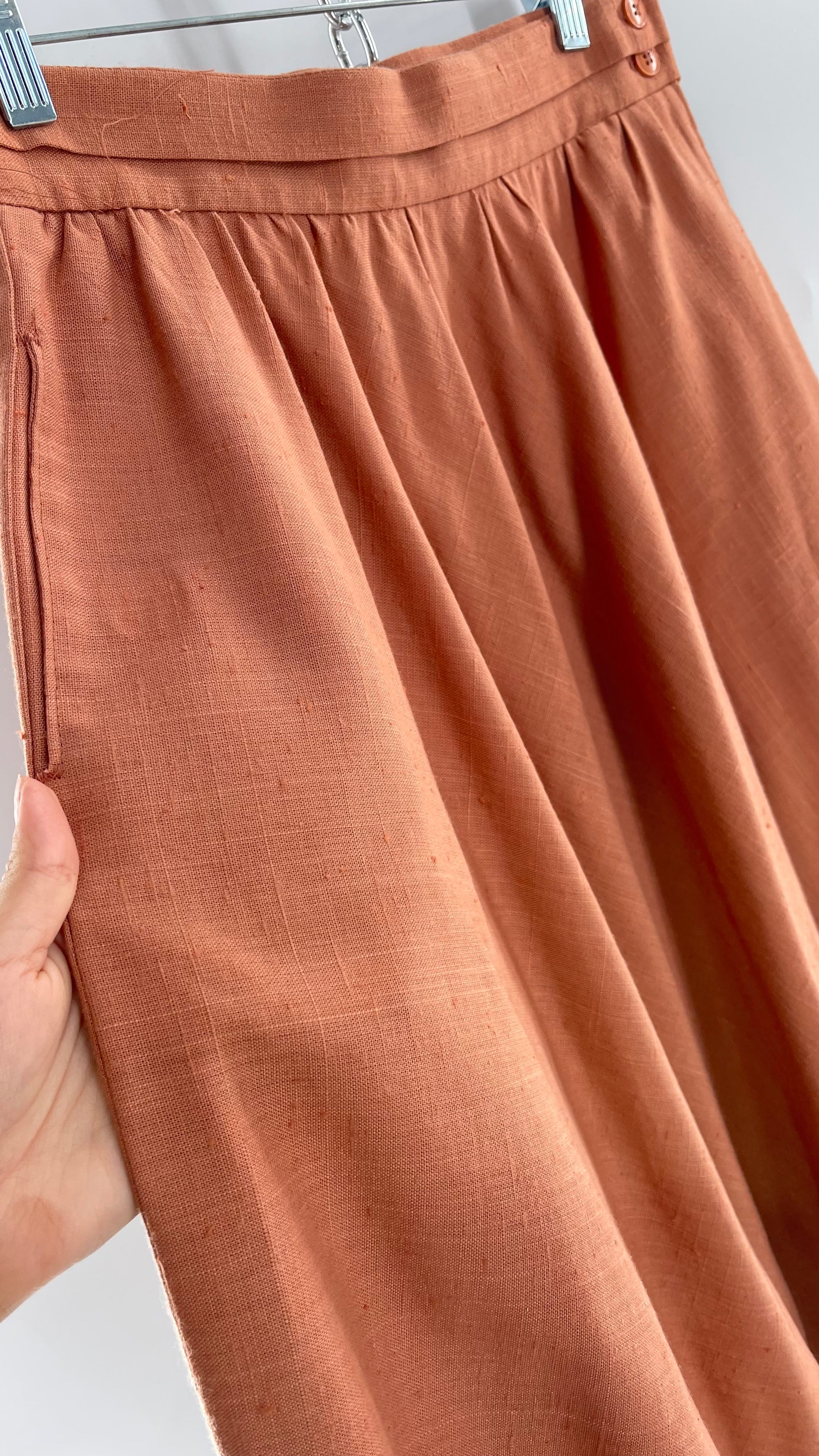 Vintage David N Linen Look Apricot Pink/Orange Circle Skirt with Pockets (9/10)