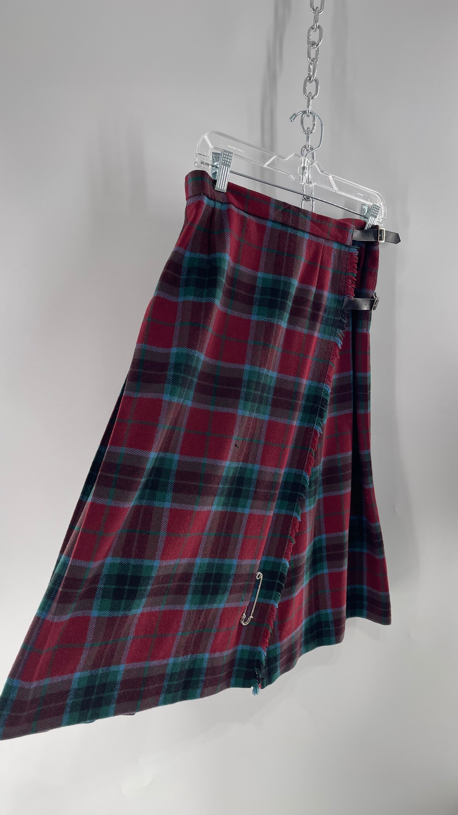 Vintage Clan Crest Pure New Wool Tartan Plaid Skirt with Oversized Pin Made in Scotland (36)