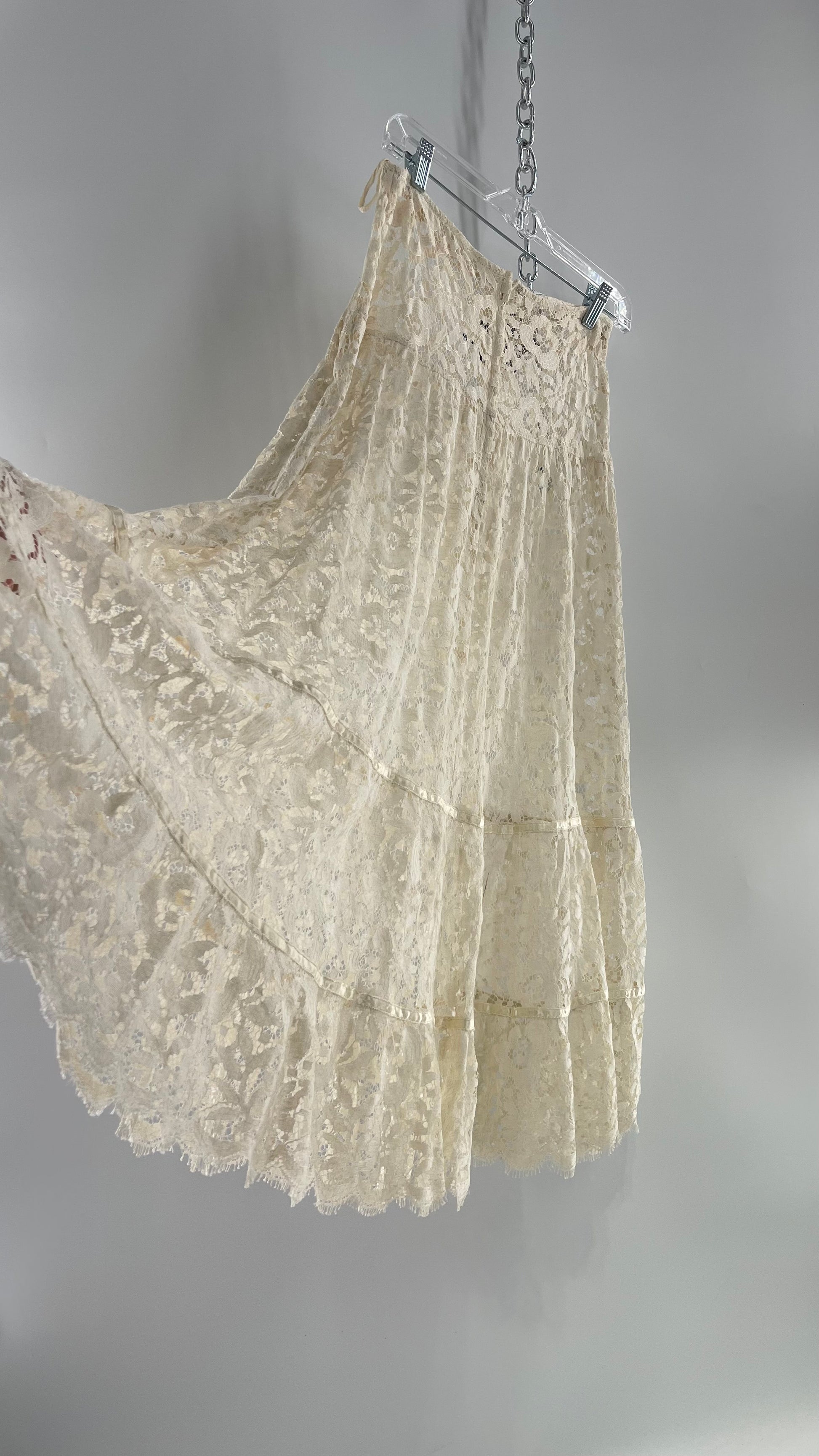 Vintage Jessica McClintock Delicate Off White Lace Skirt