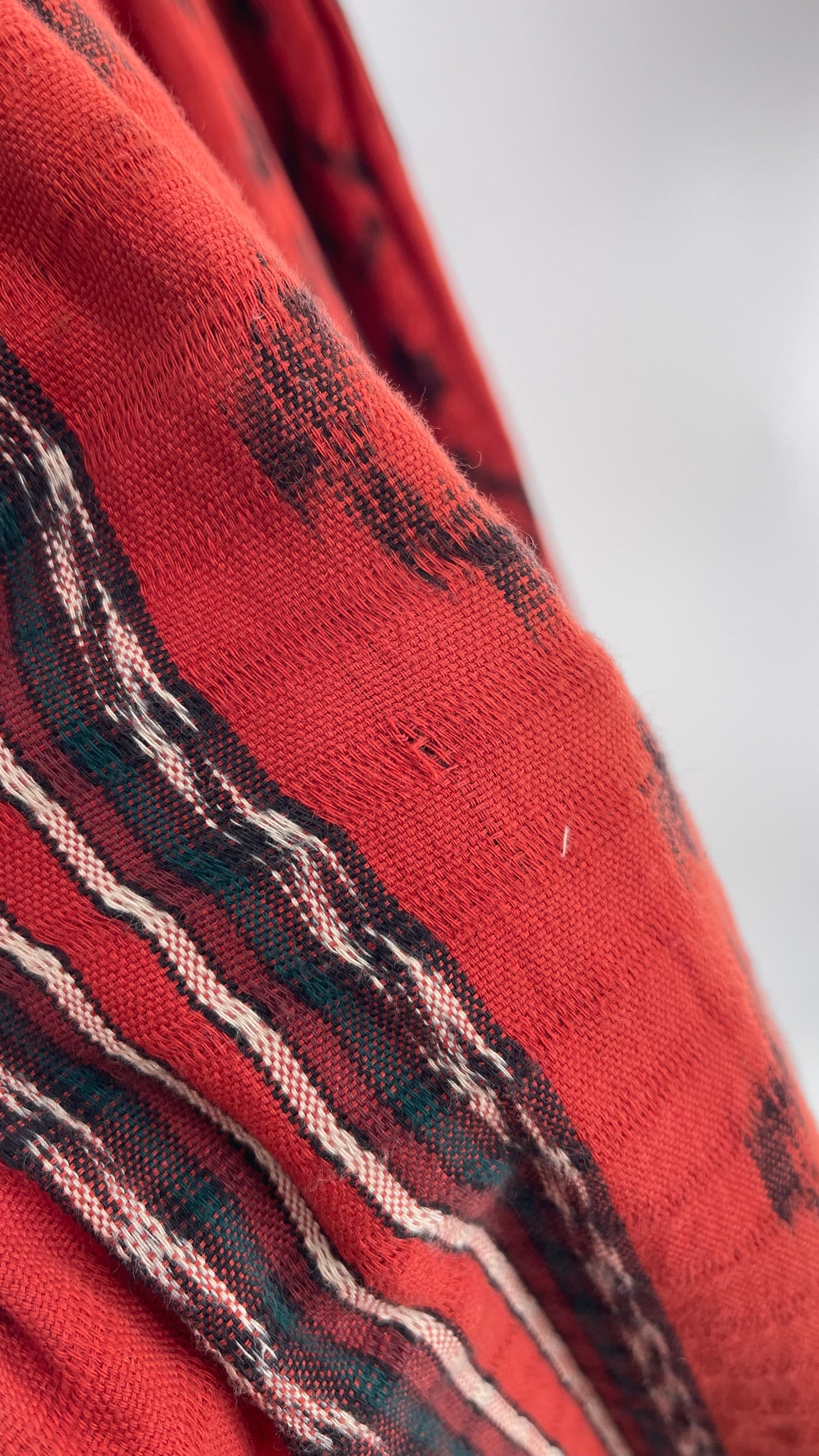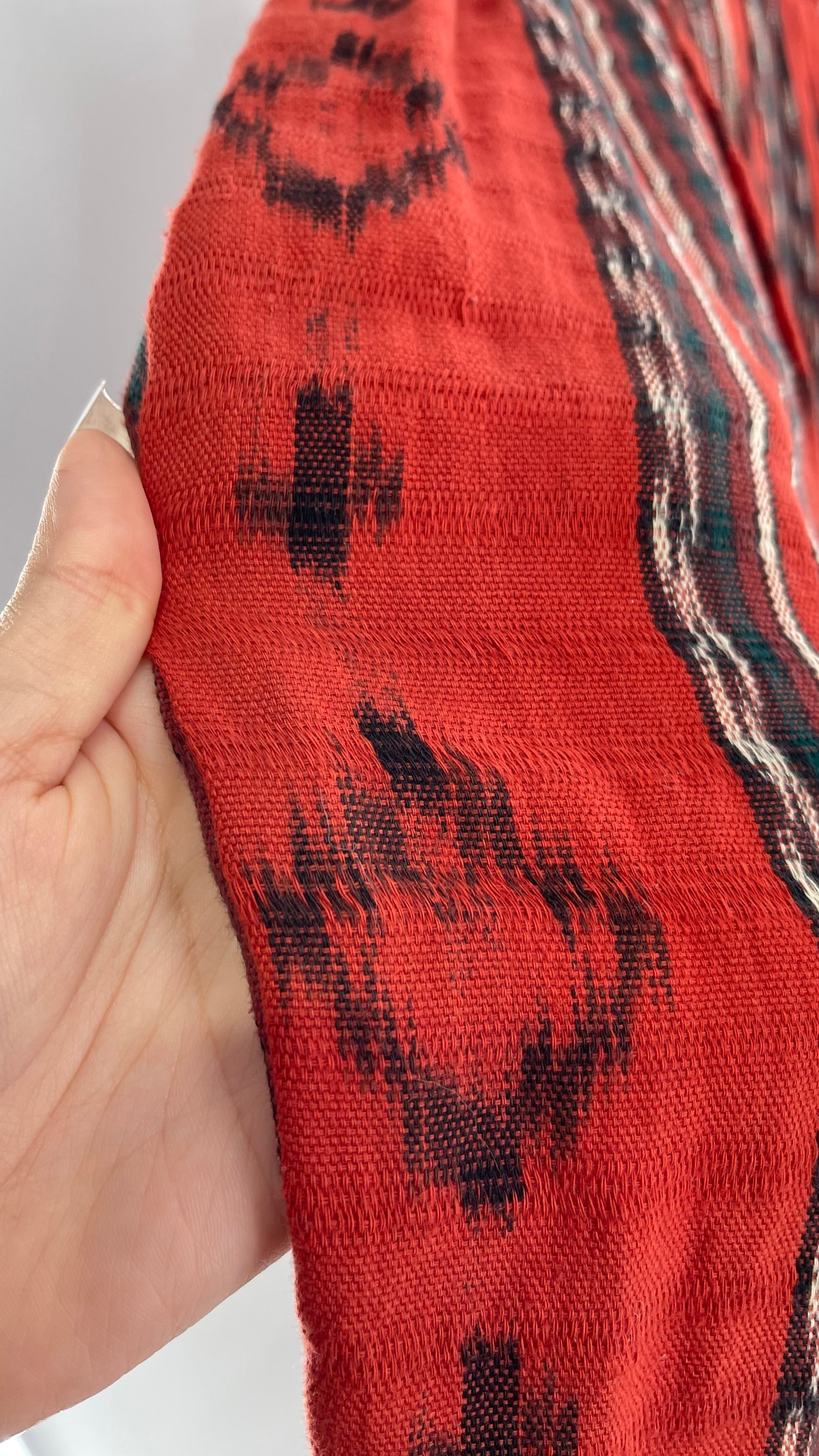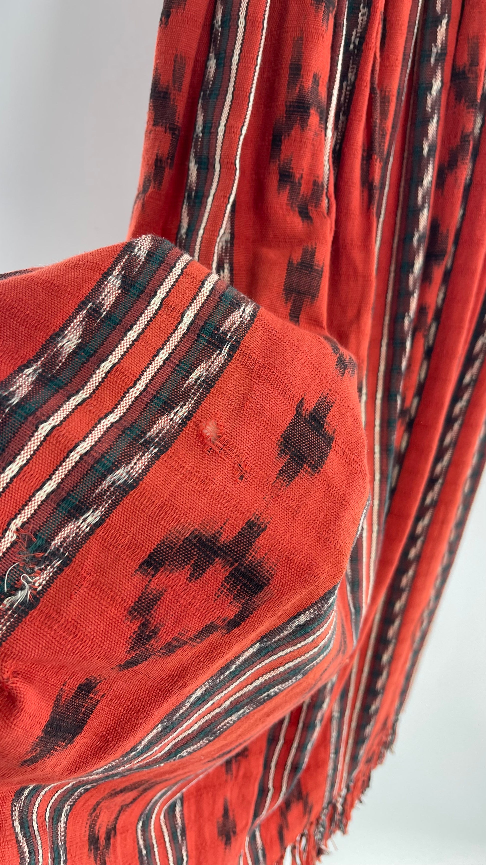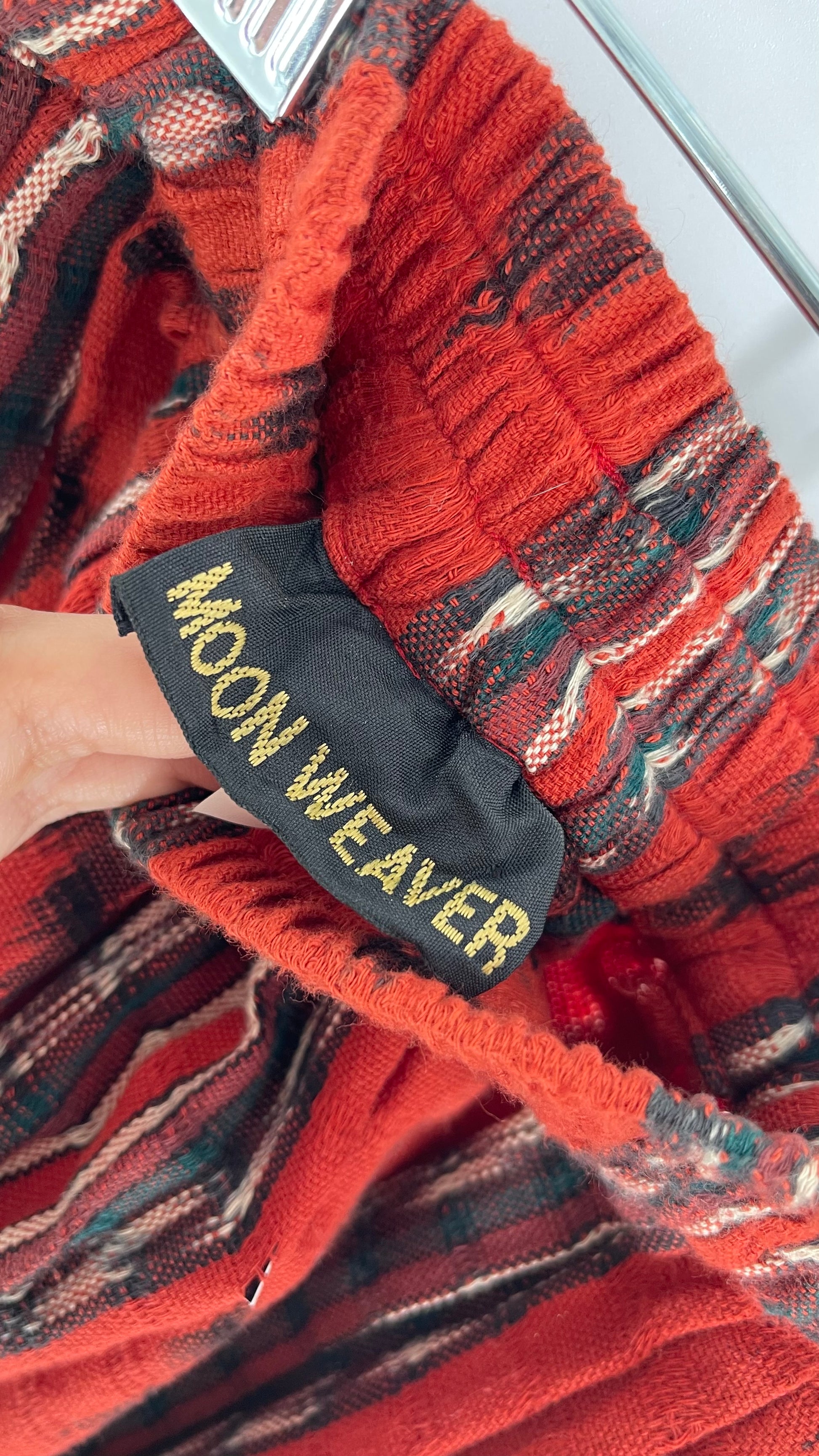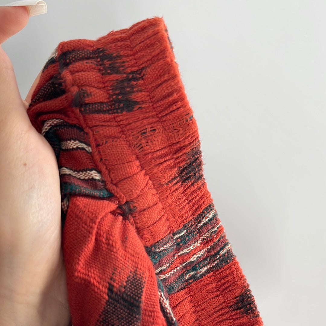 Vintage 100% Cotton Hand Woven Moon Weaver Burnt Orange Dessert Skirt with Fringe (M/L)