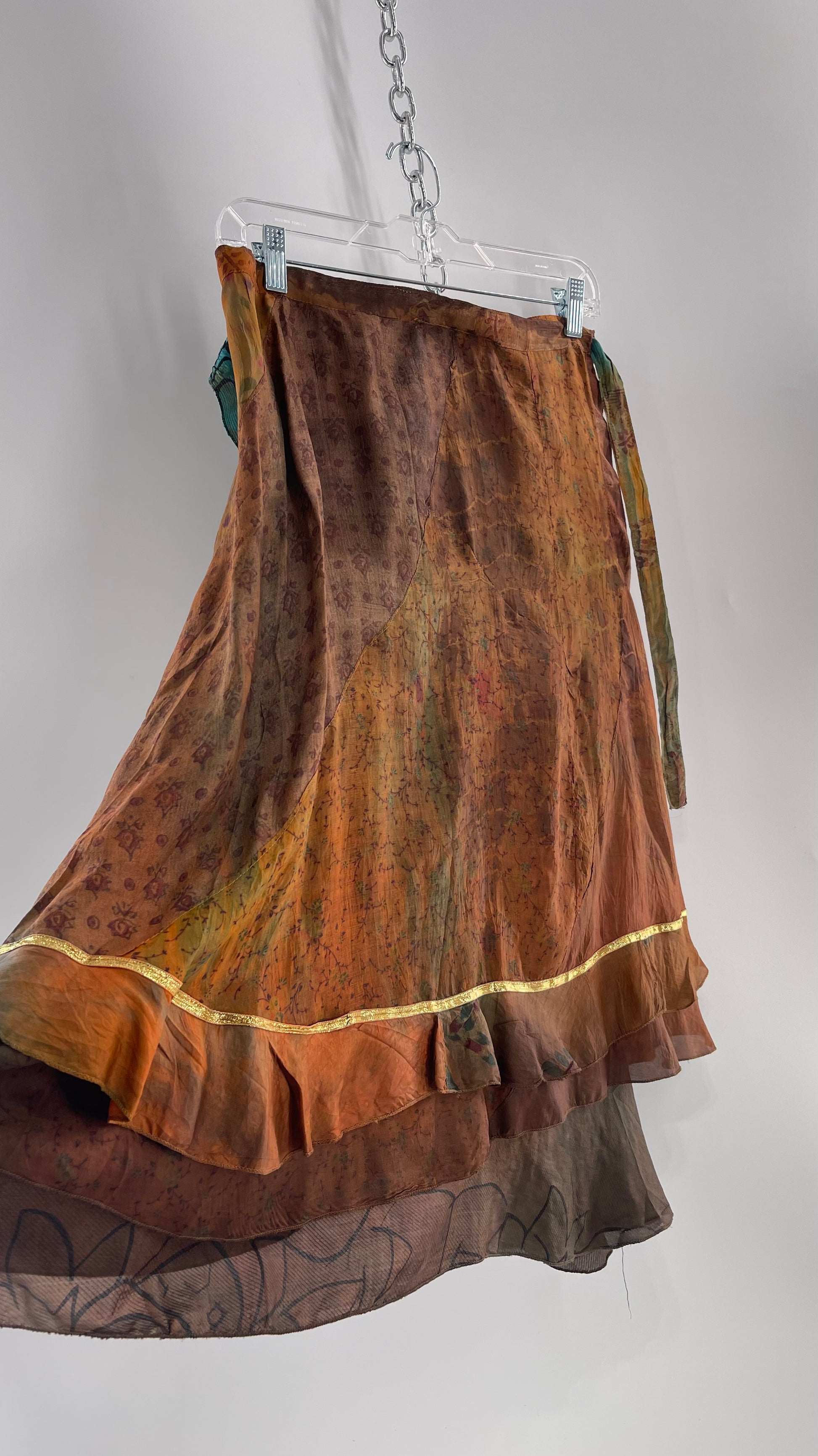 CHIC THING 100% Silk Blue/Brown Tie Dye Tie Around Skirt (S)