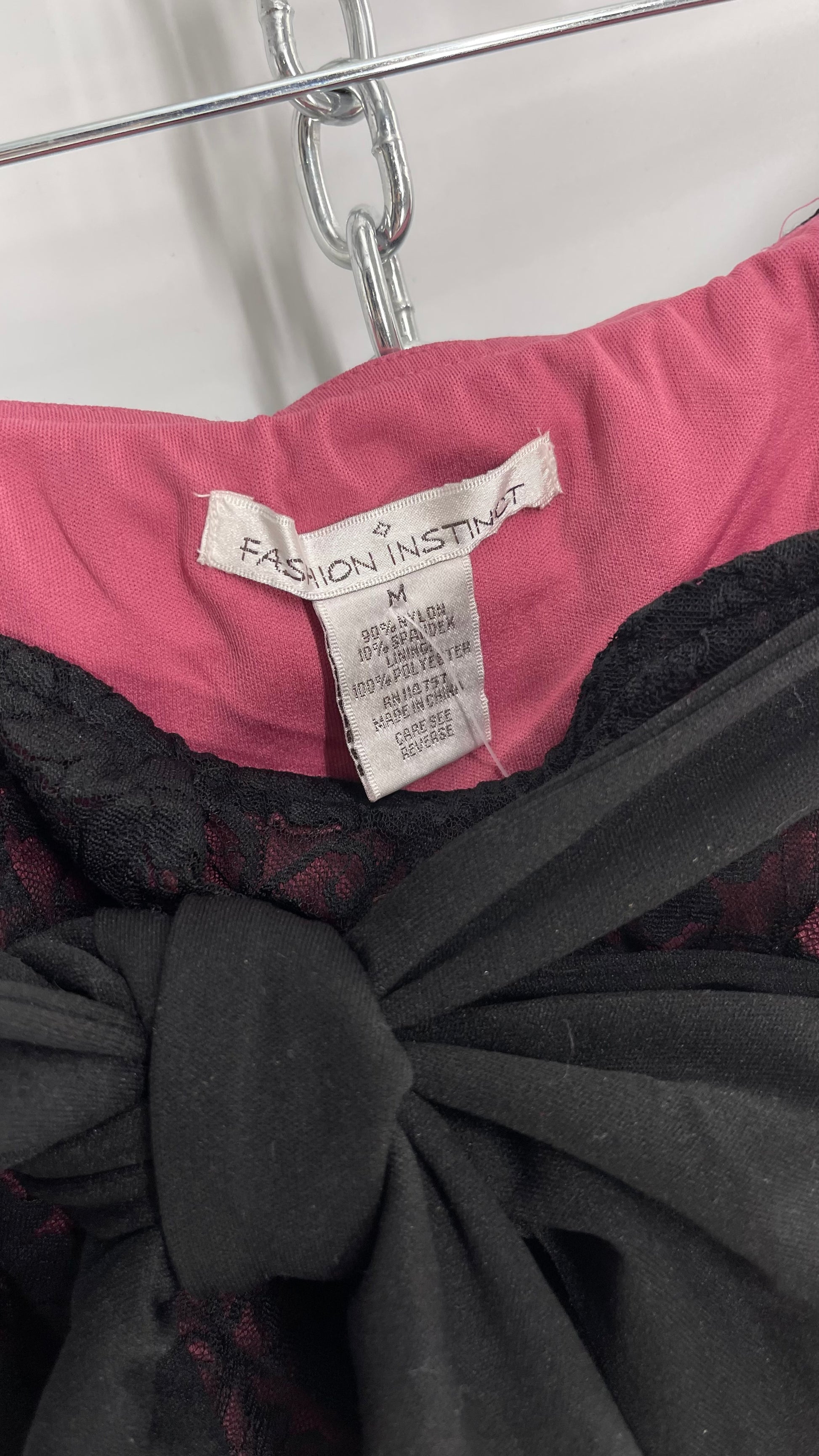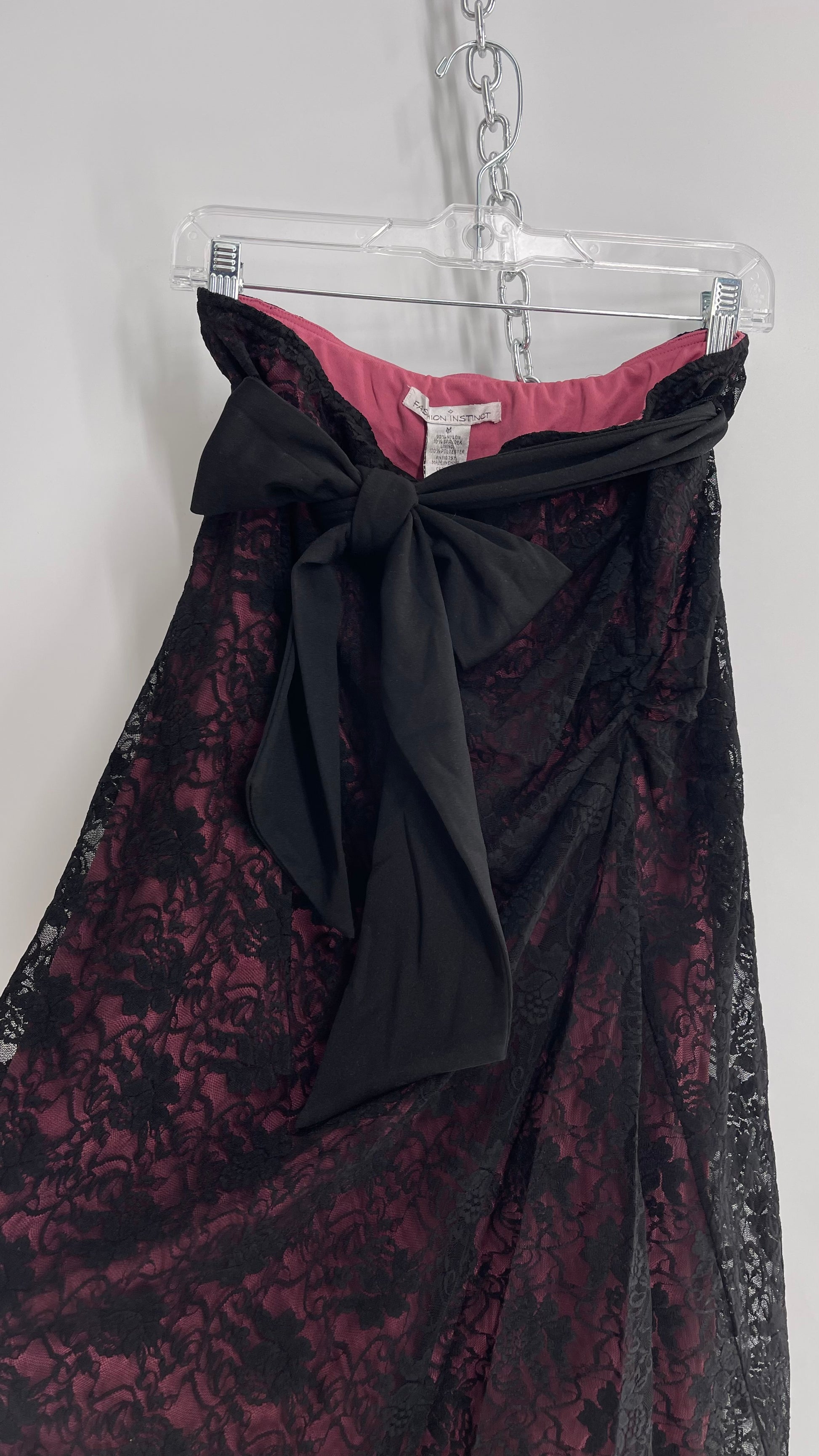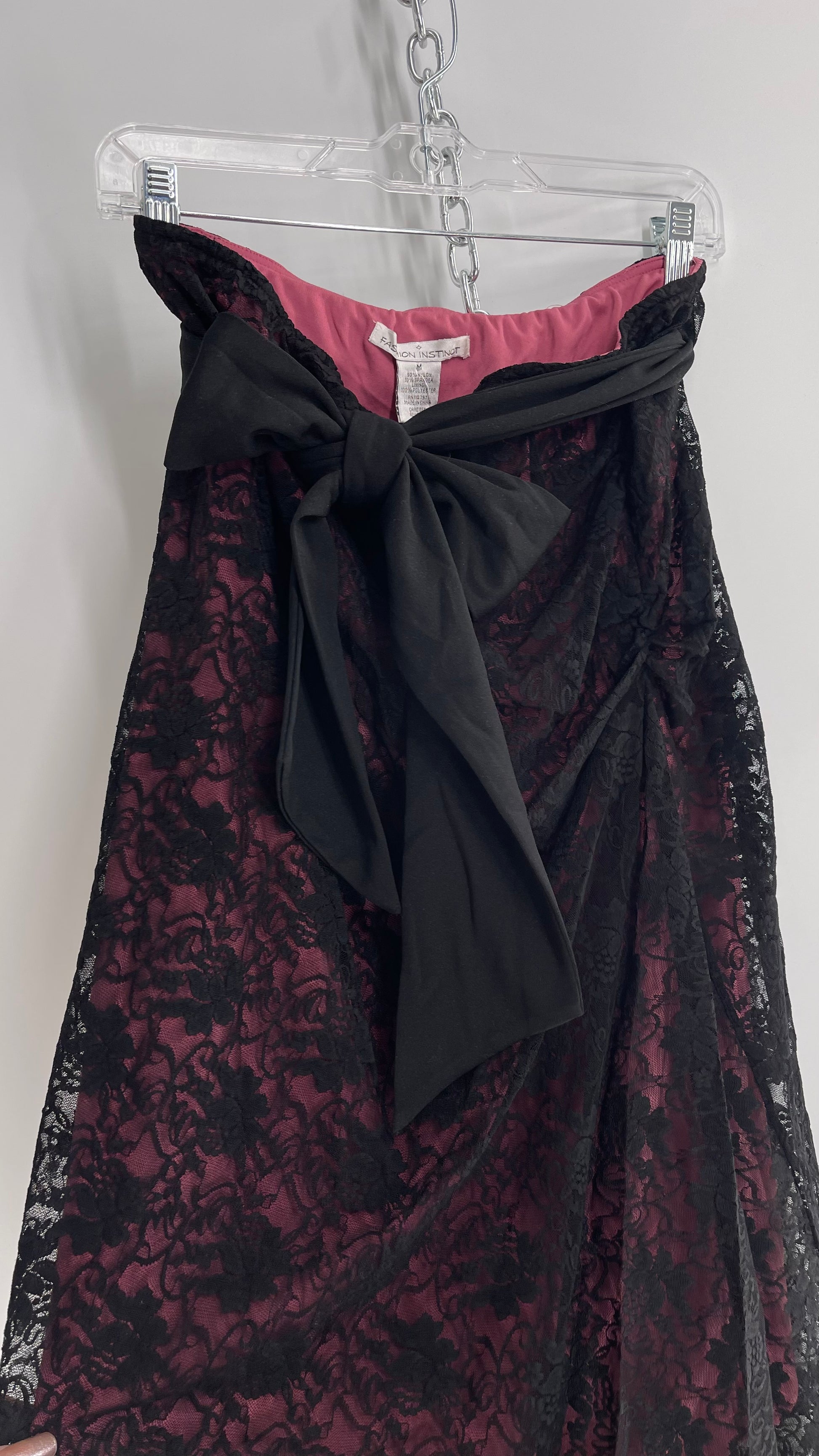 Vintage Fashion Institute Asymmetric Hem Black Lace Pink Underlay Skirt