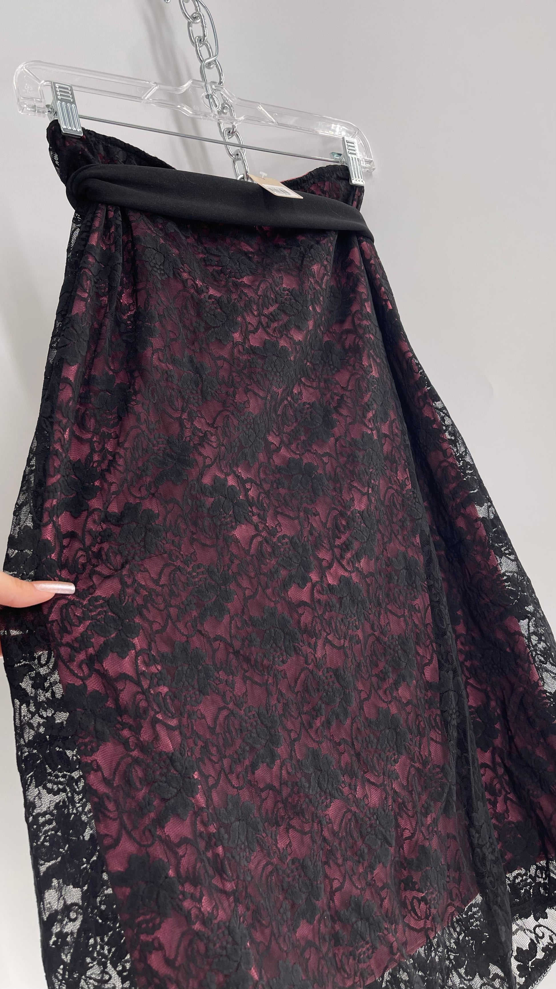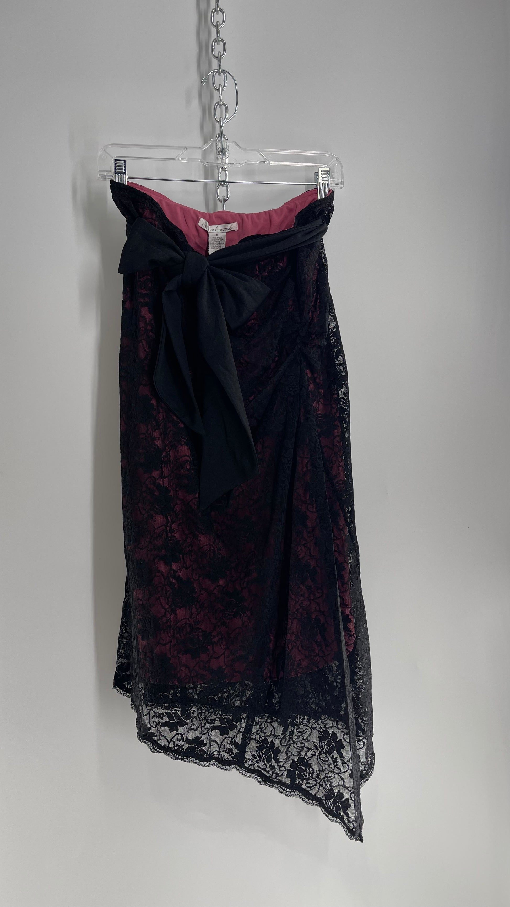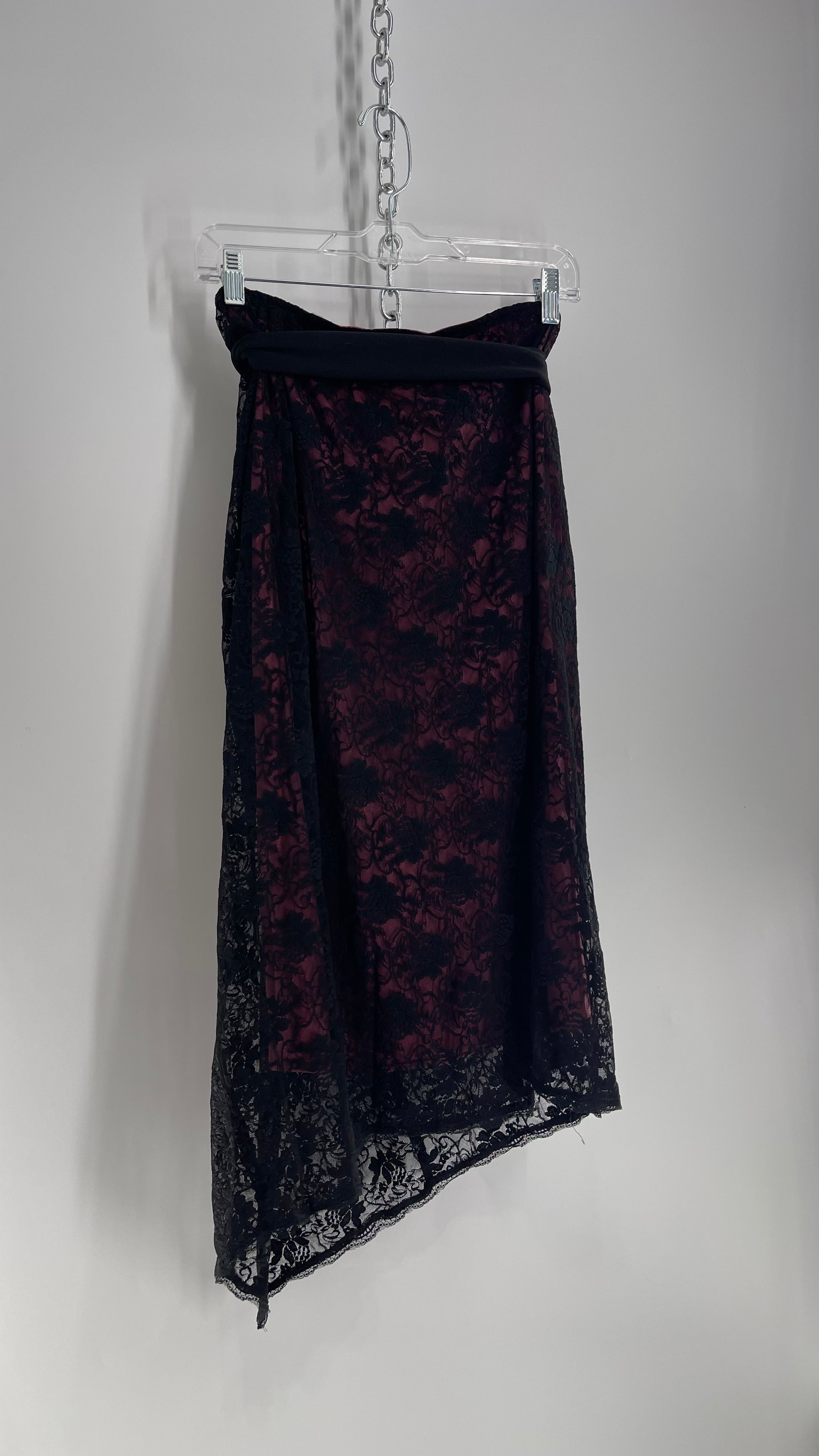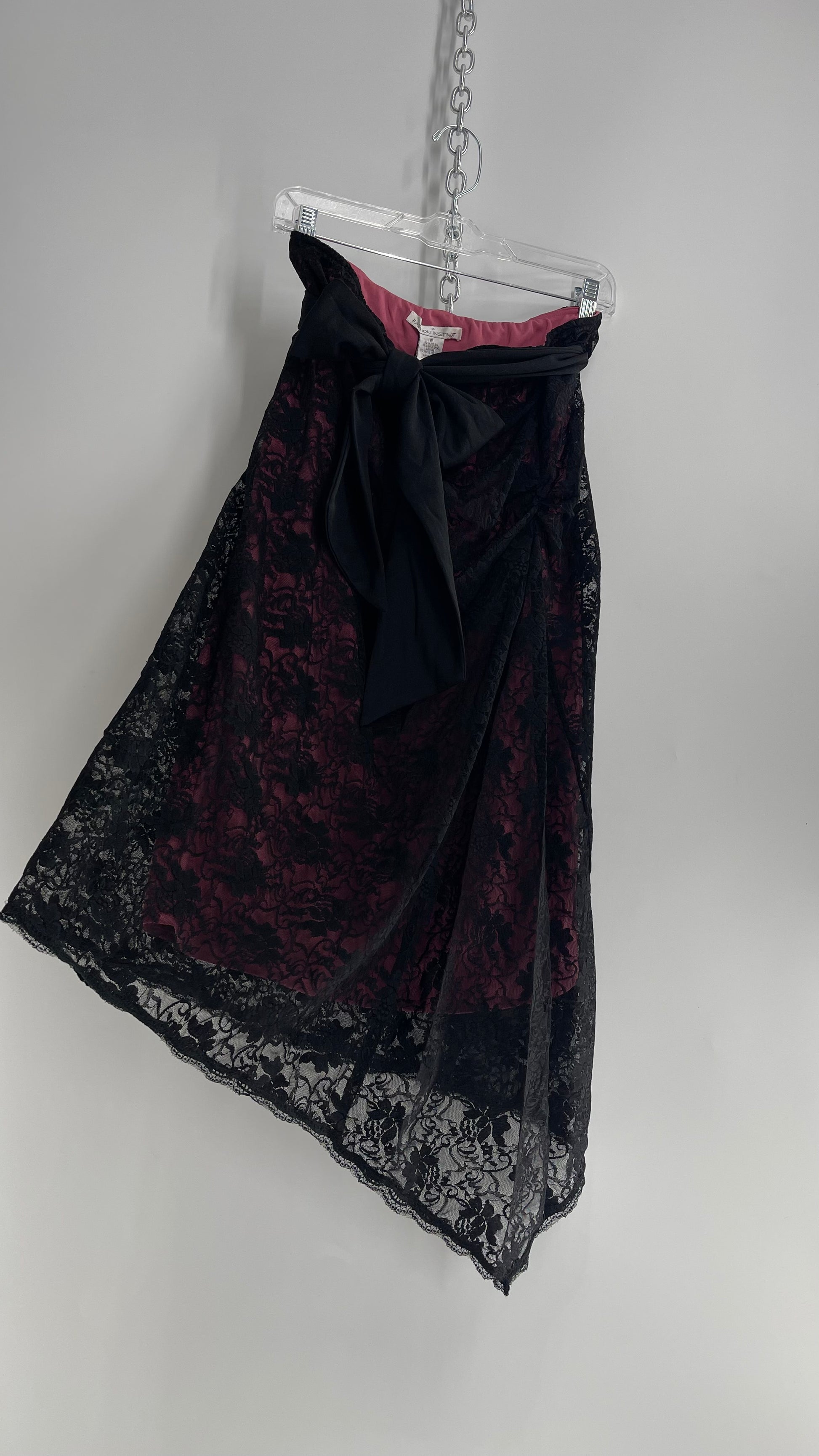 Vintage Fashion Institute Asymmetric Hem Black Lace Pink Underlay Skirt (Medium)