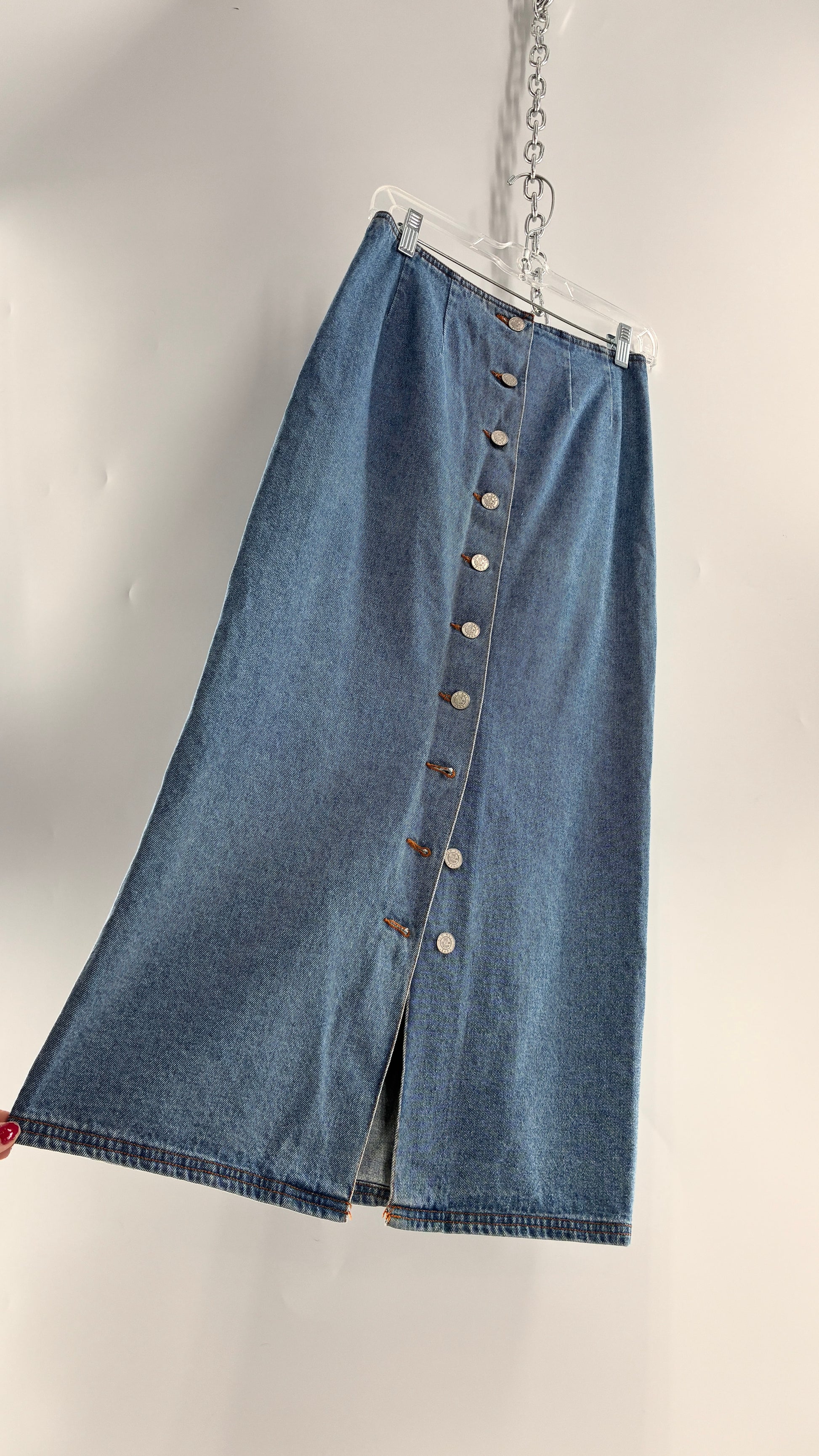 Vintage Old Navy Button Front Denim Jean Skirt (6)