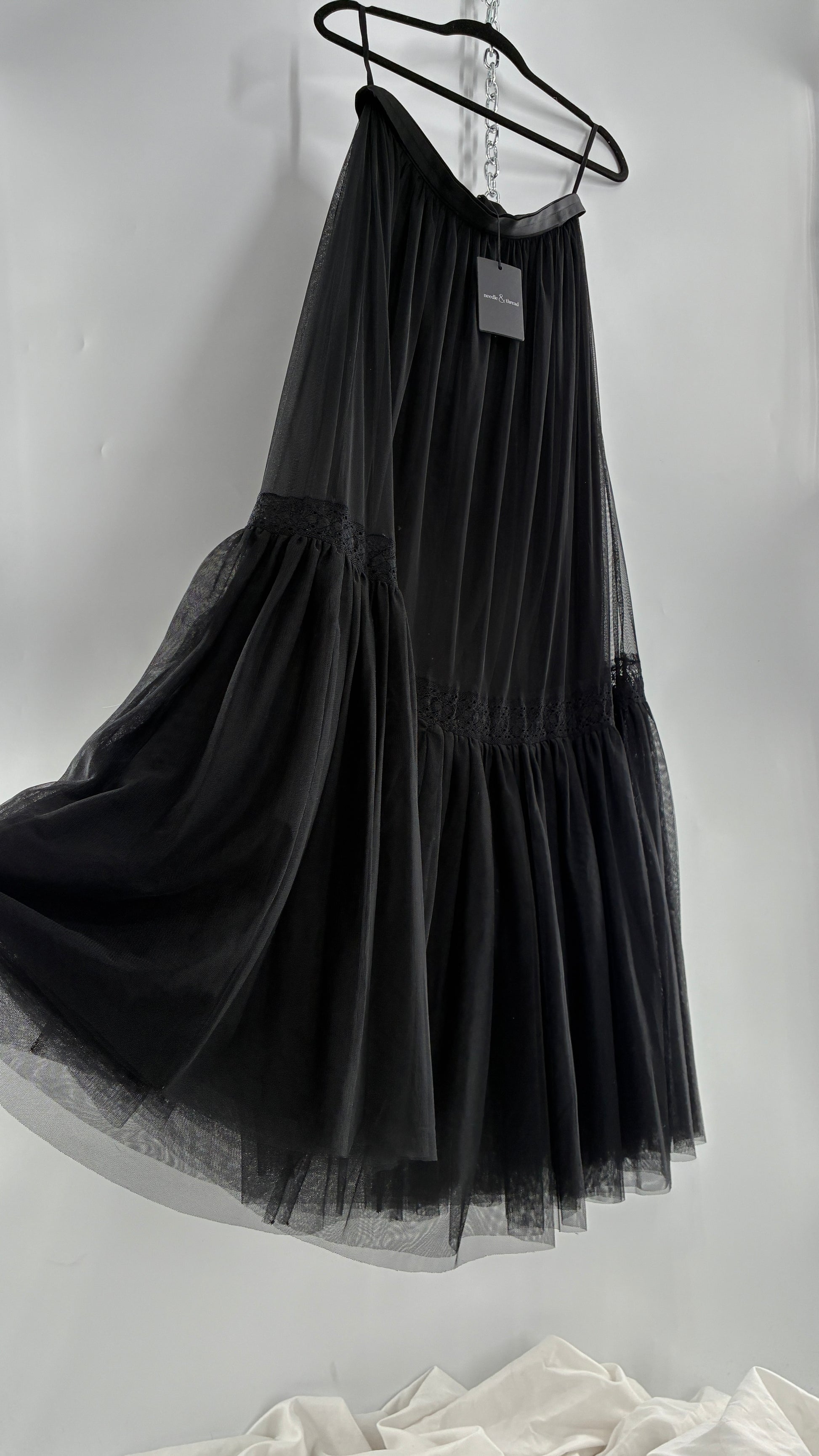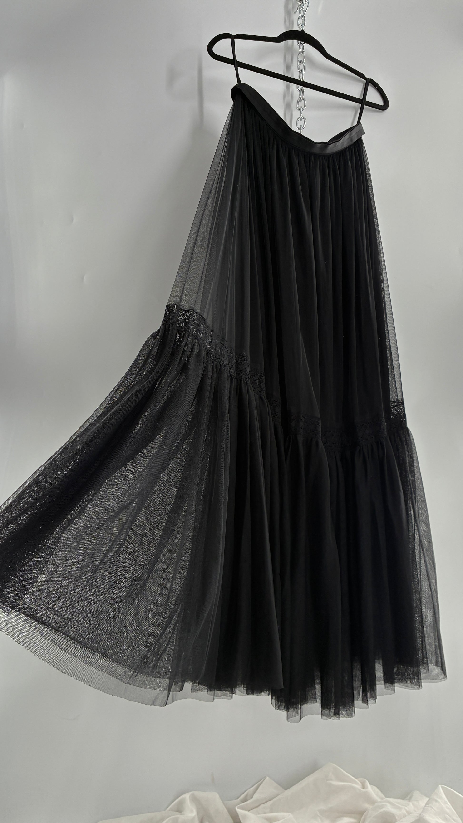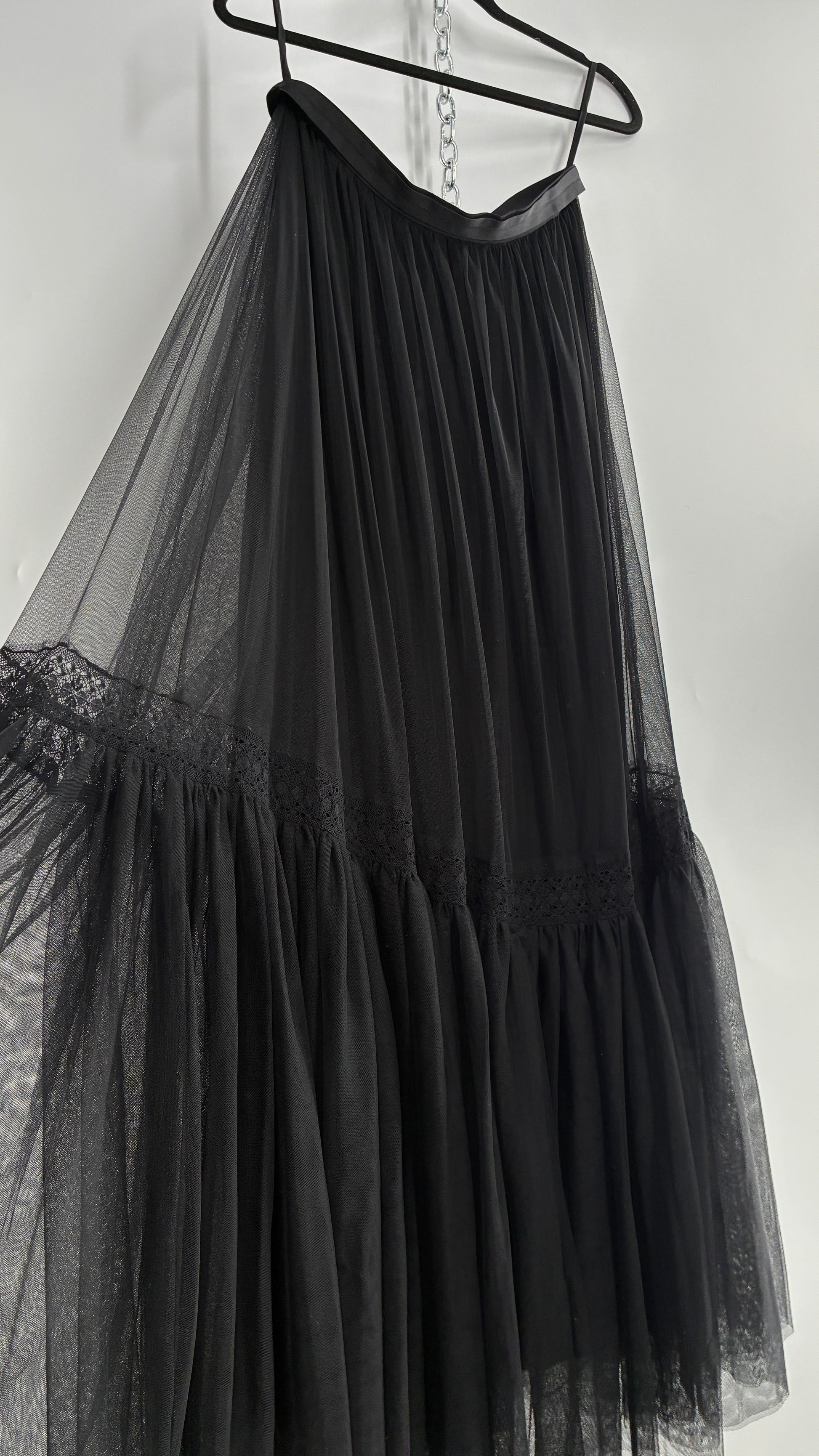Needle & Thread Voluminous Black Multi Layer Mesh Full Length Skirt with Ribbon Waistline with Tags Attached (10)