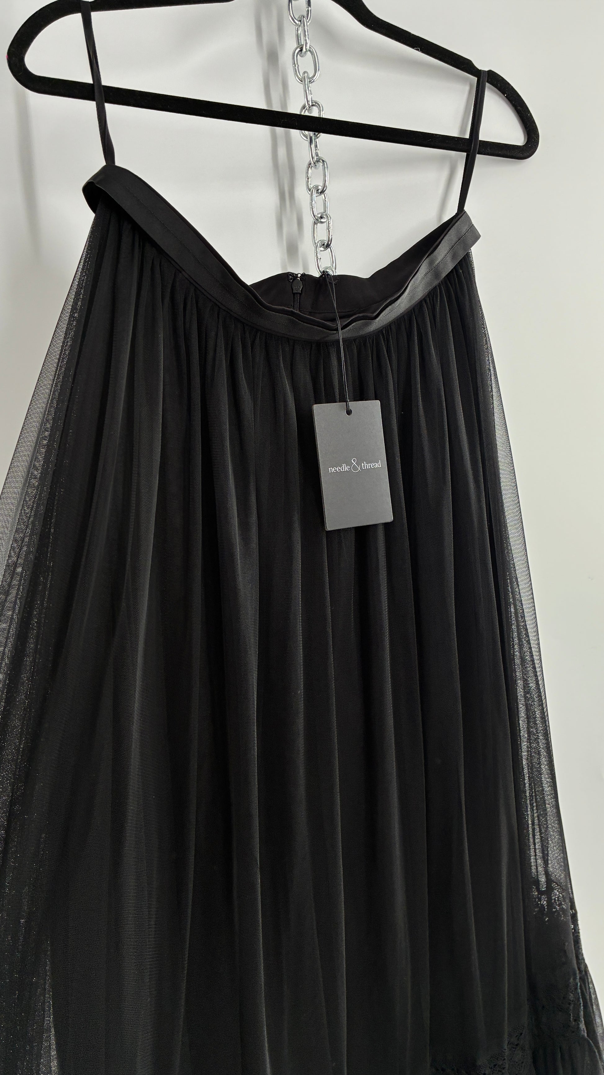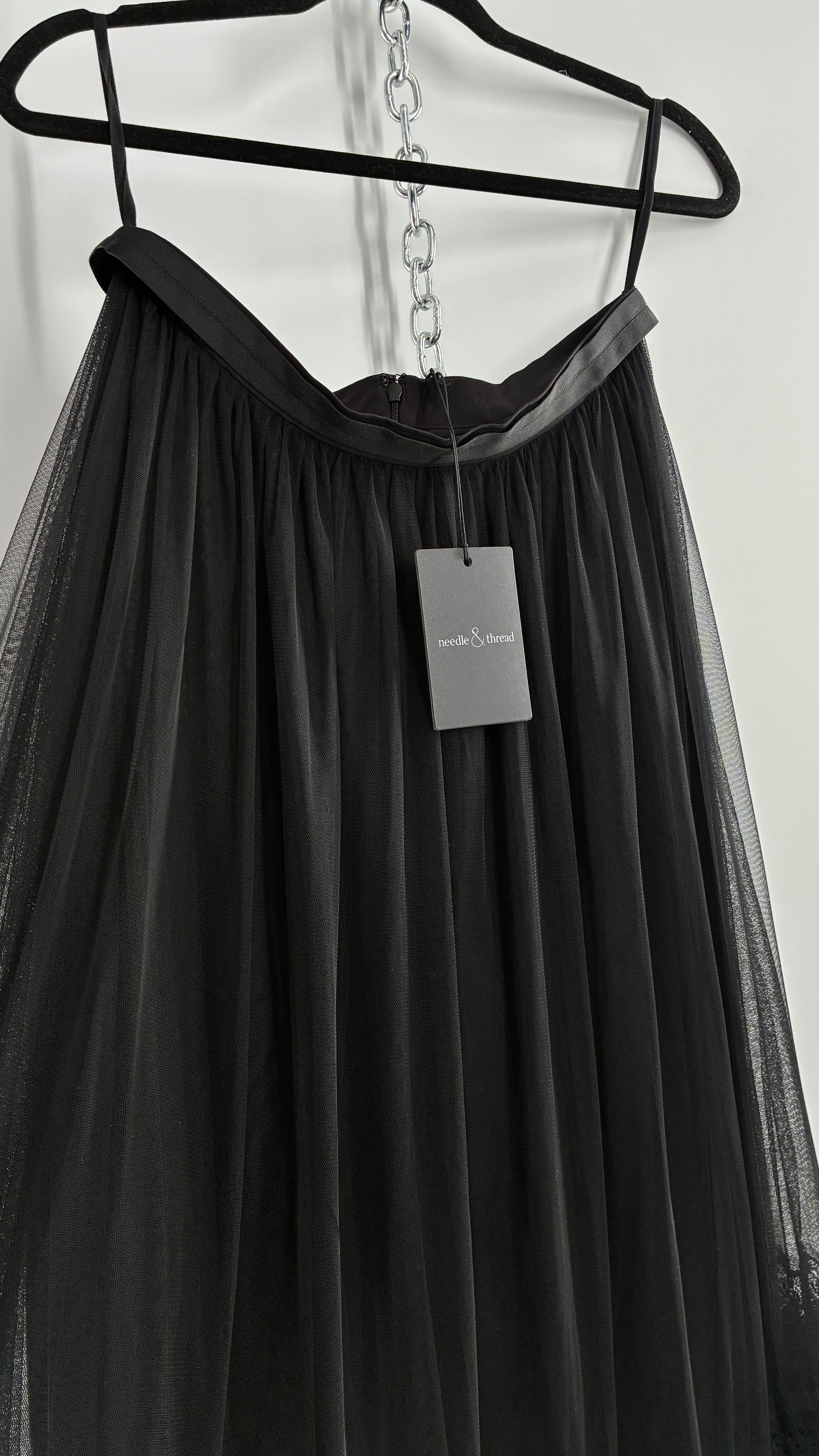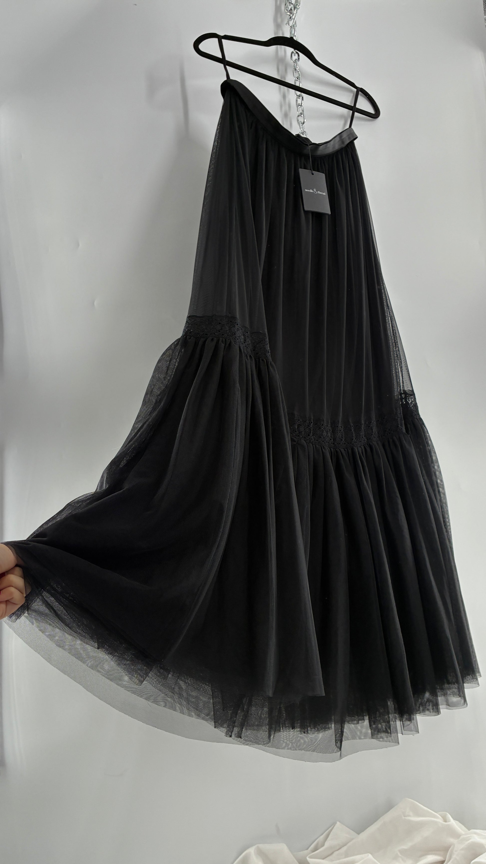 Needle & Thread Voluminous Black Multi Layer Mesh Full Length Skirt with Ribbon Waistline with Tags Attached (10)
