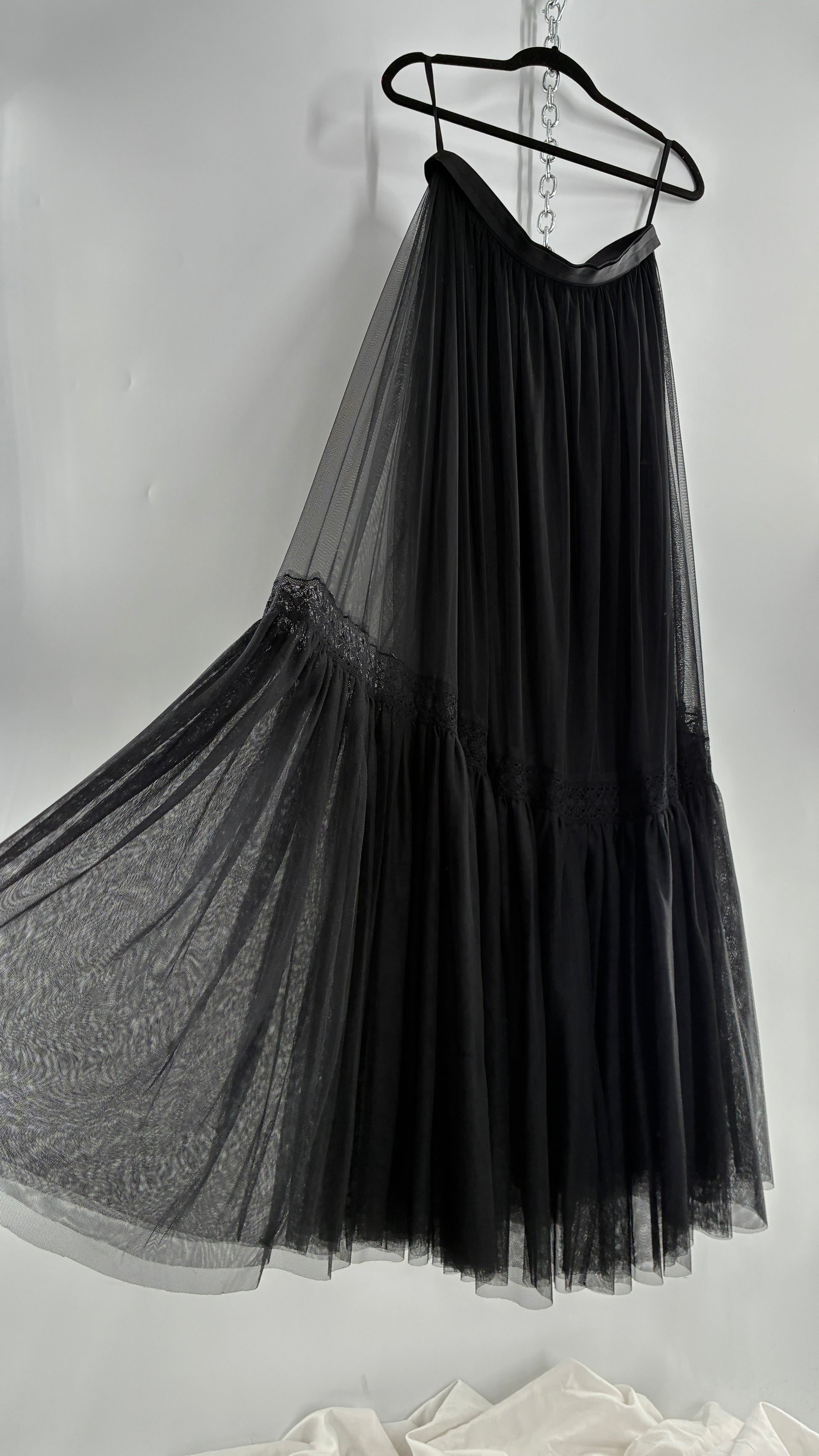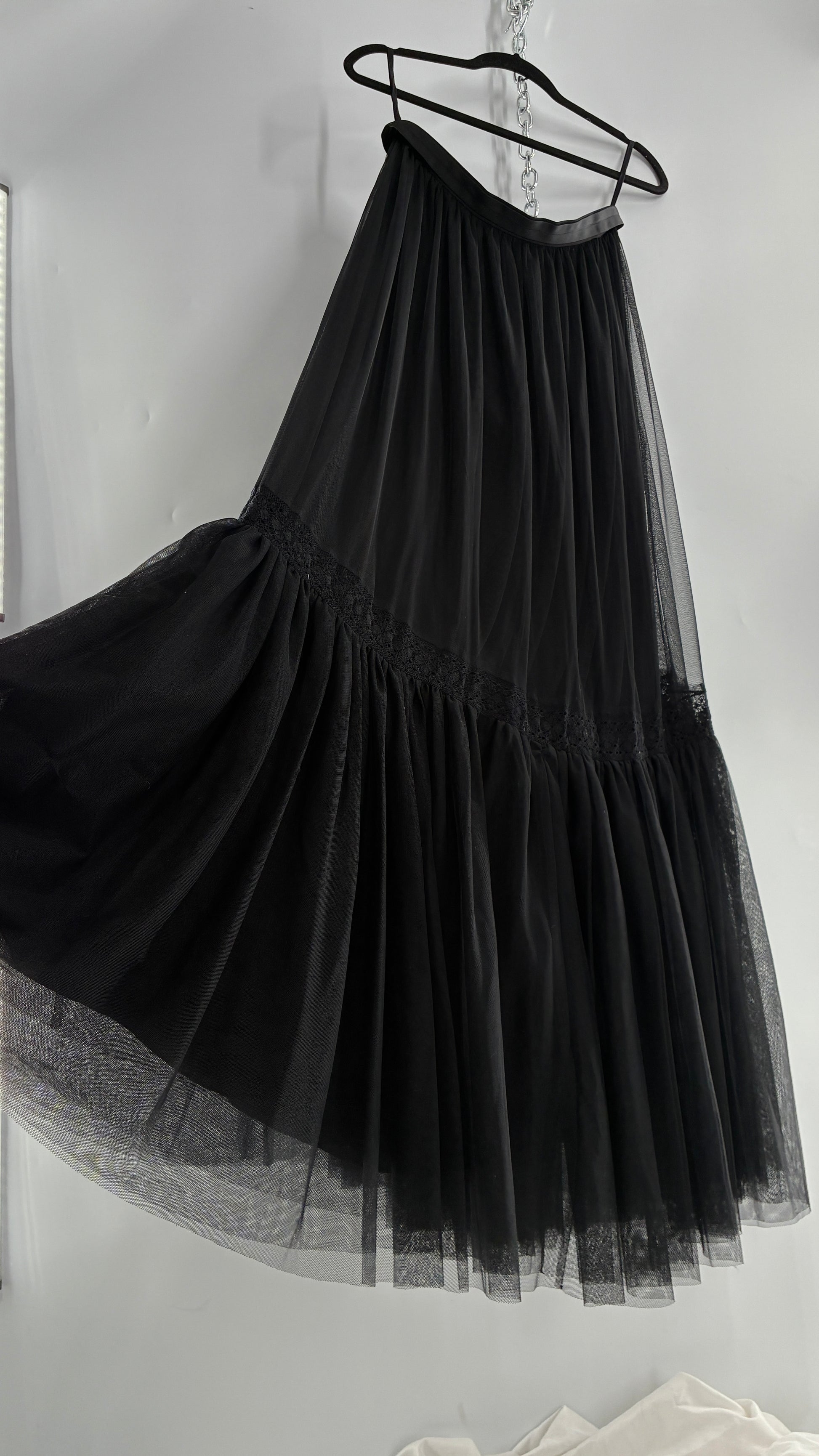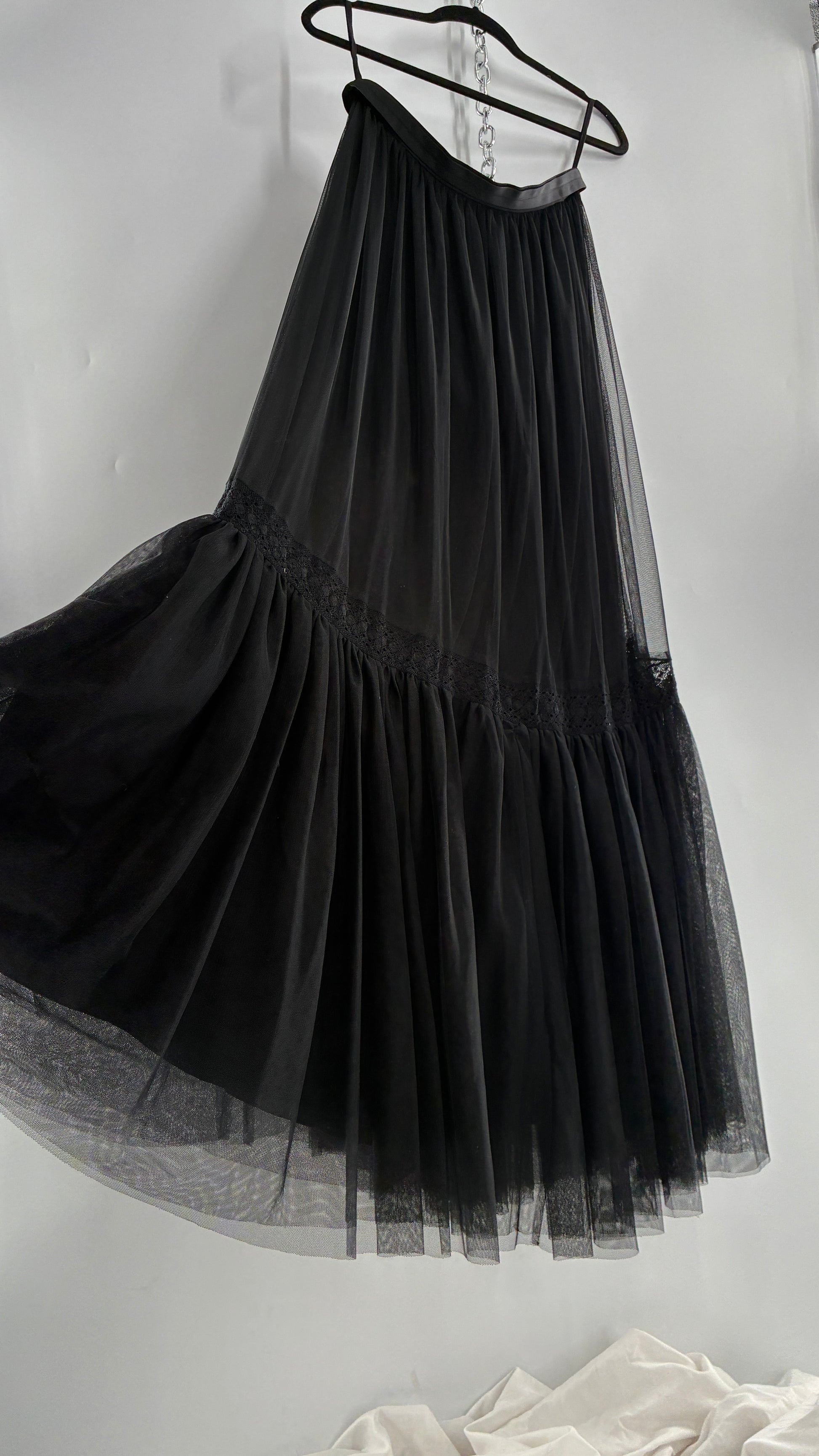 Vintage Needle & Thread Voluminous Black Multi Layer Mesh Full Length Skirt with Ribbon Waistline (10)