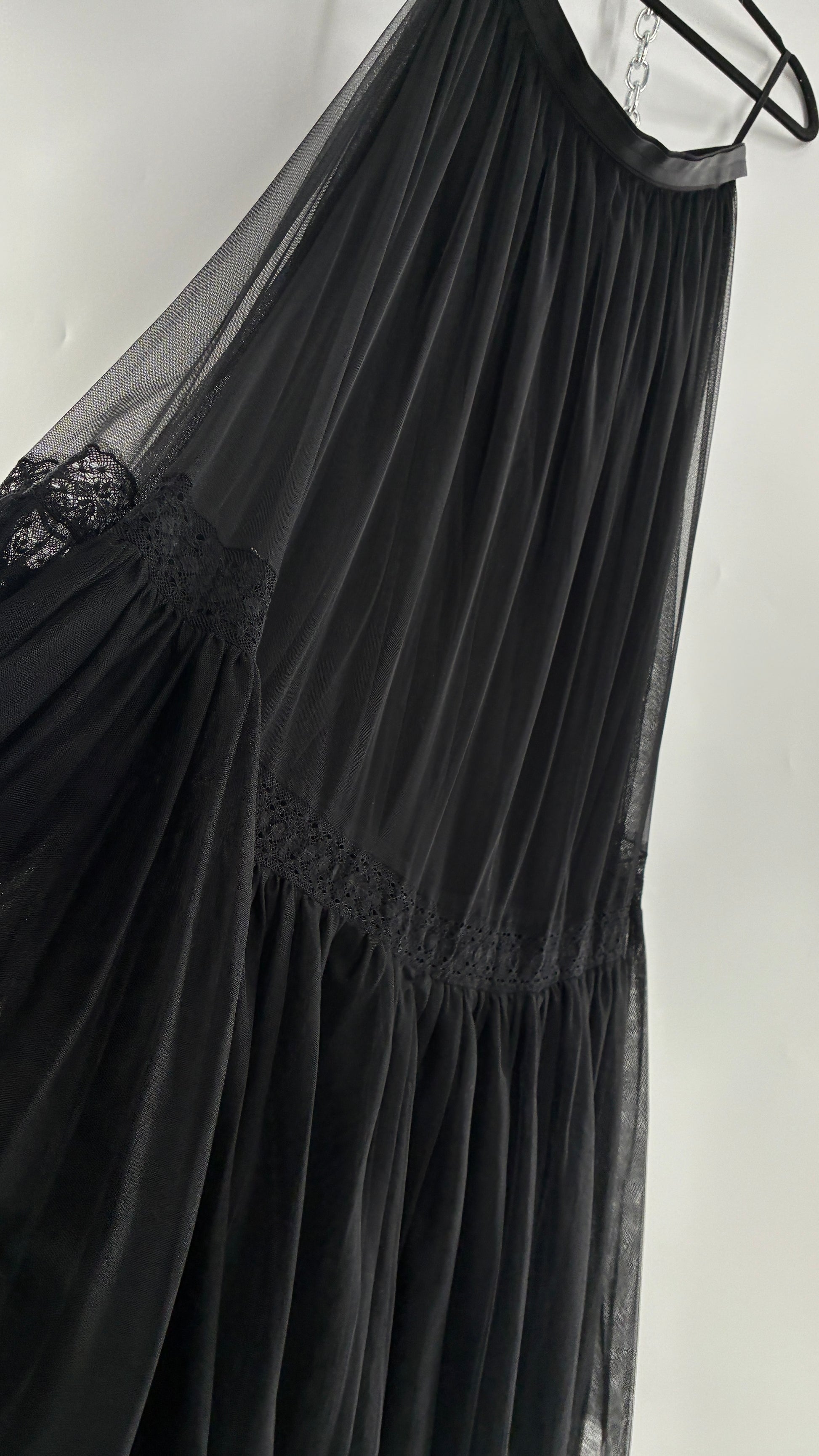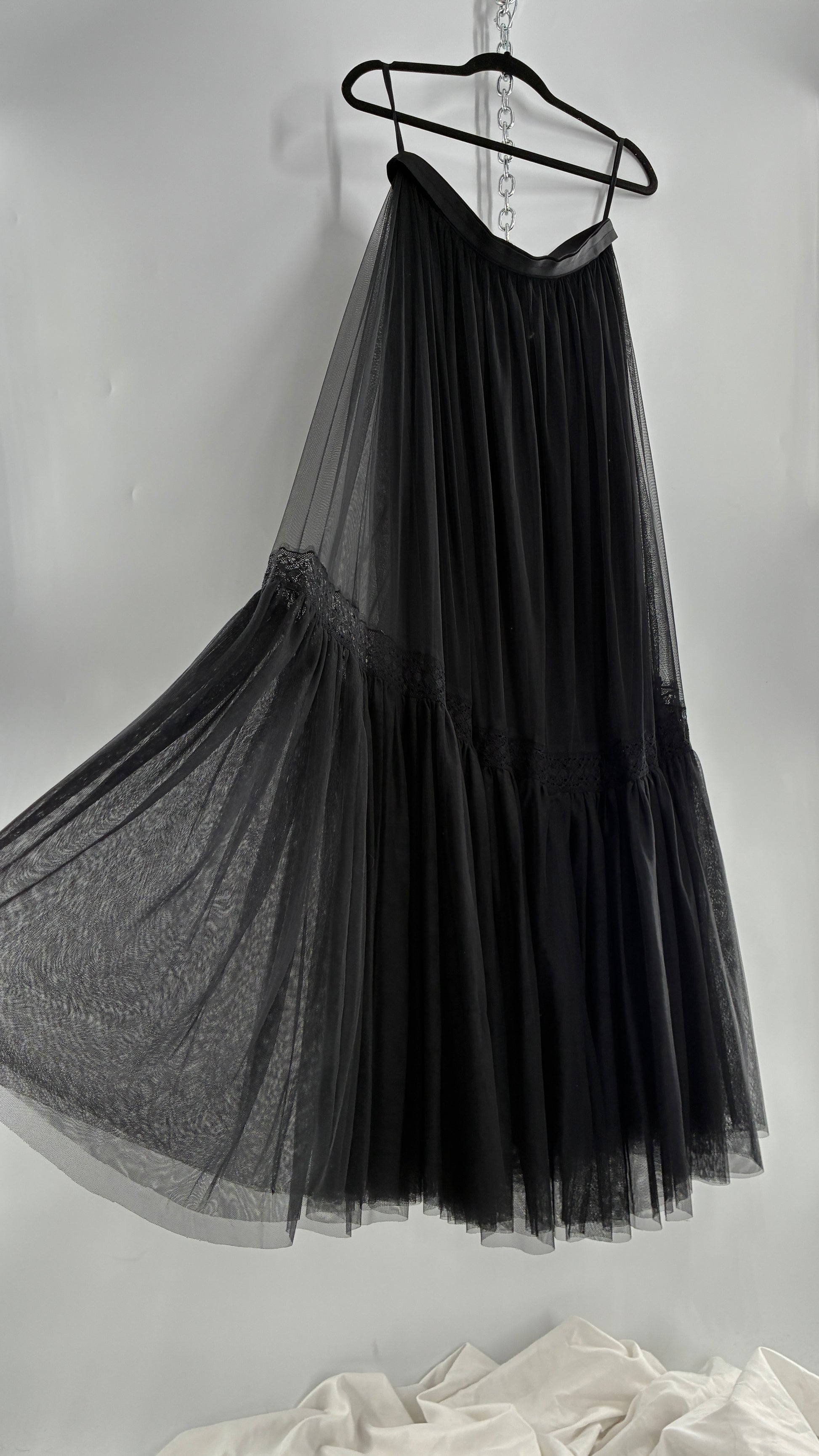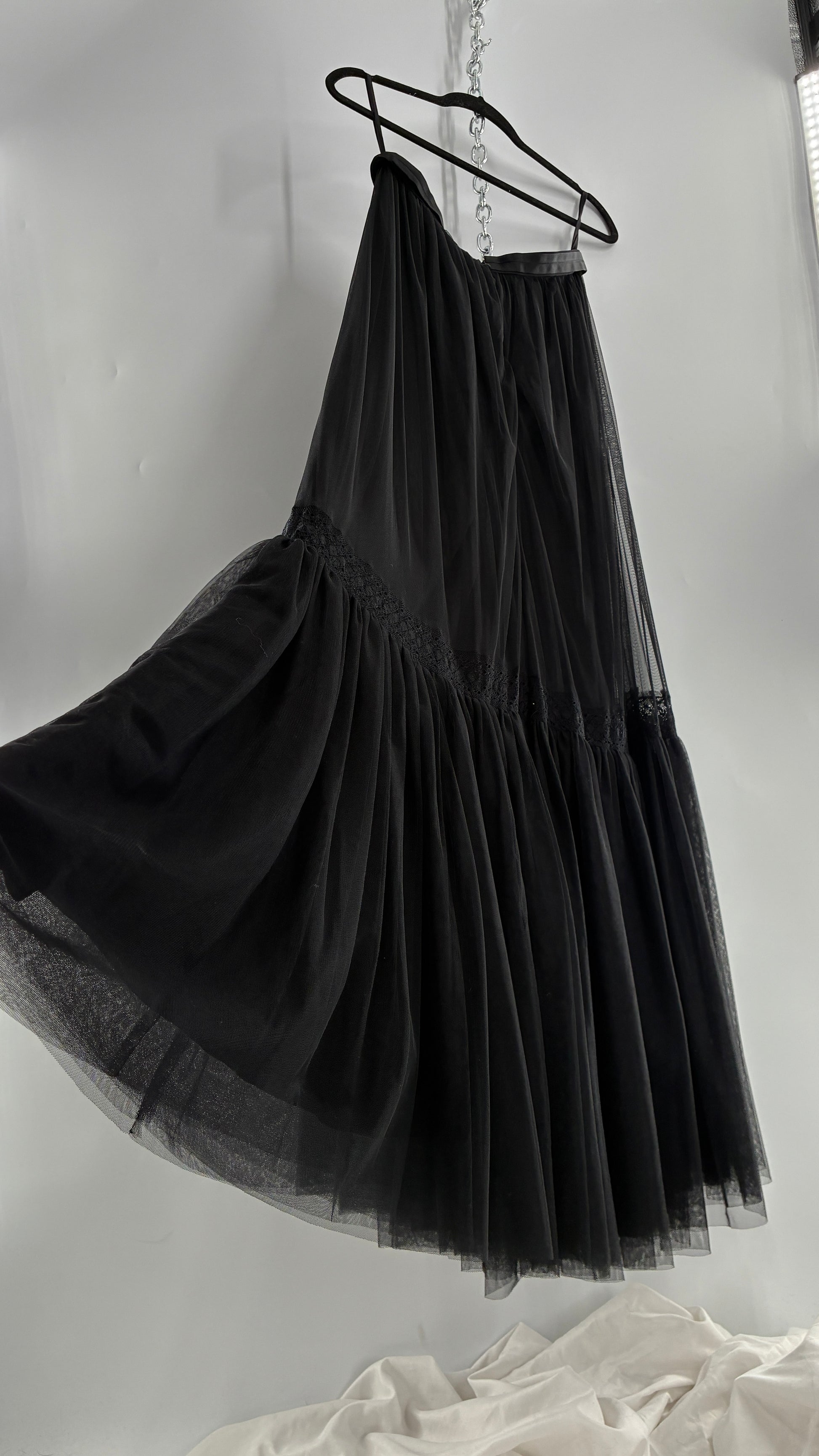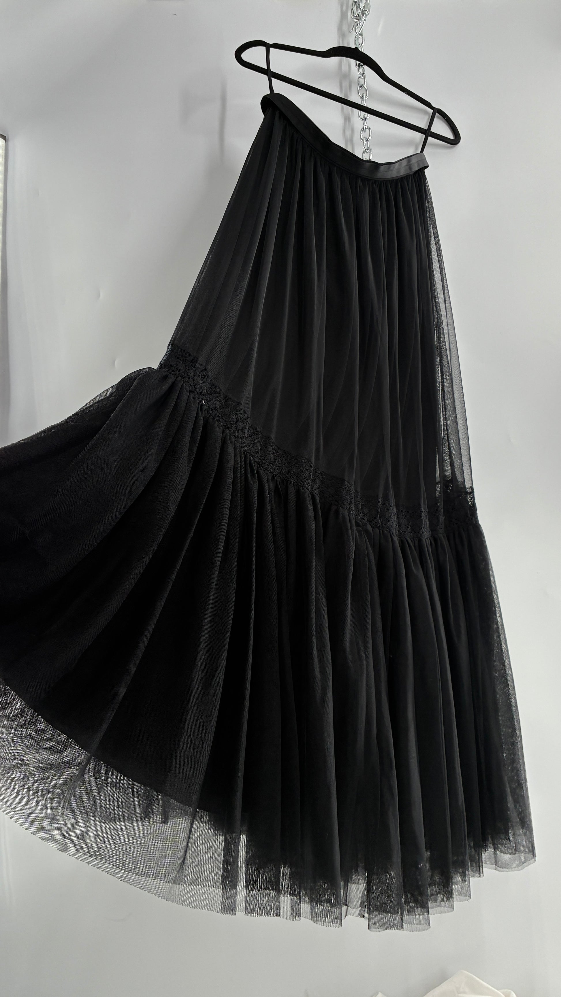 Vintage Needle & Thread Voluminous Black Multi Layer Mesh Full Length Skirt with Ribbon Waistline (10)