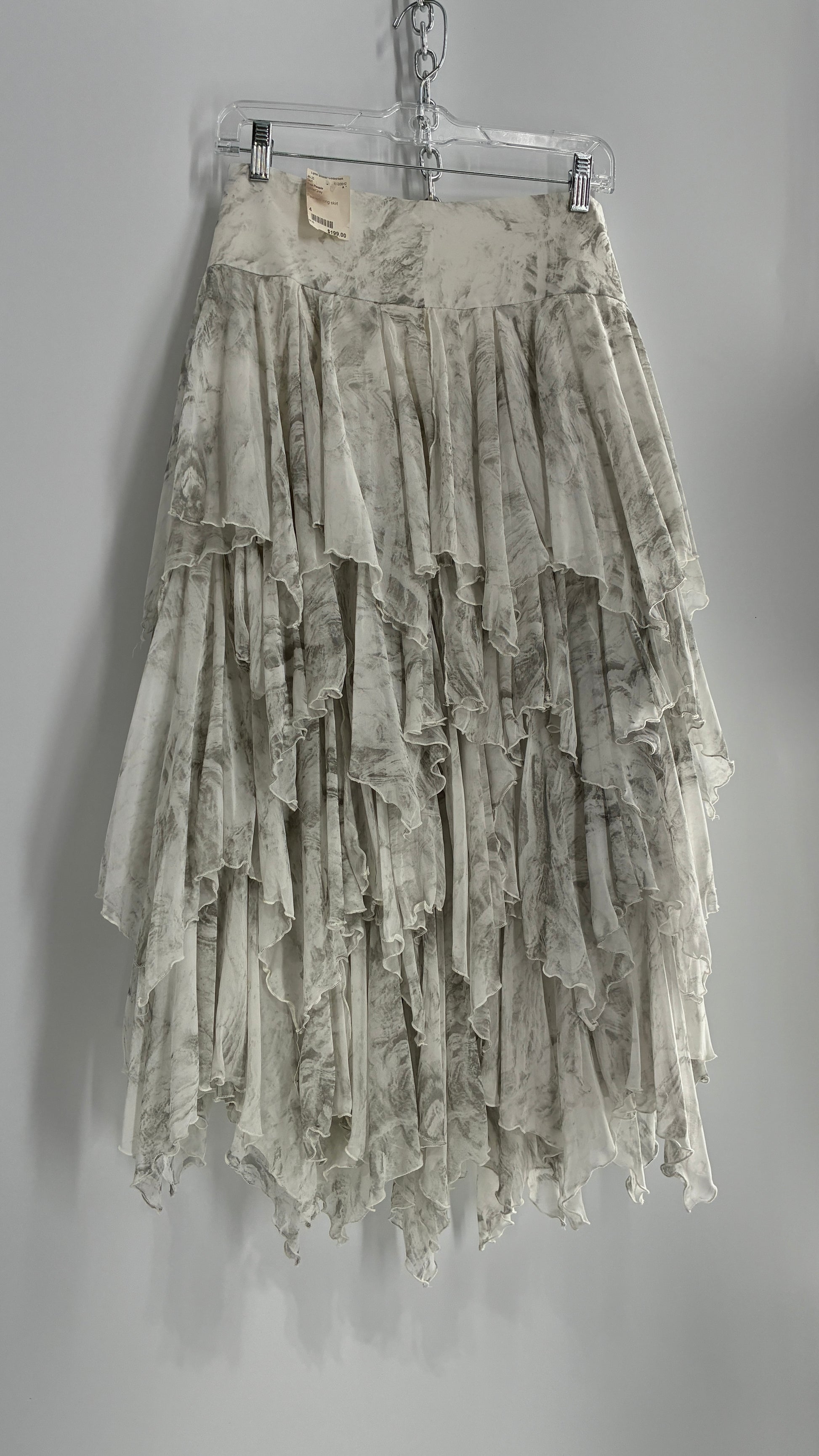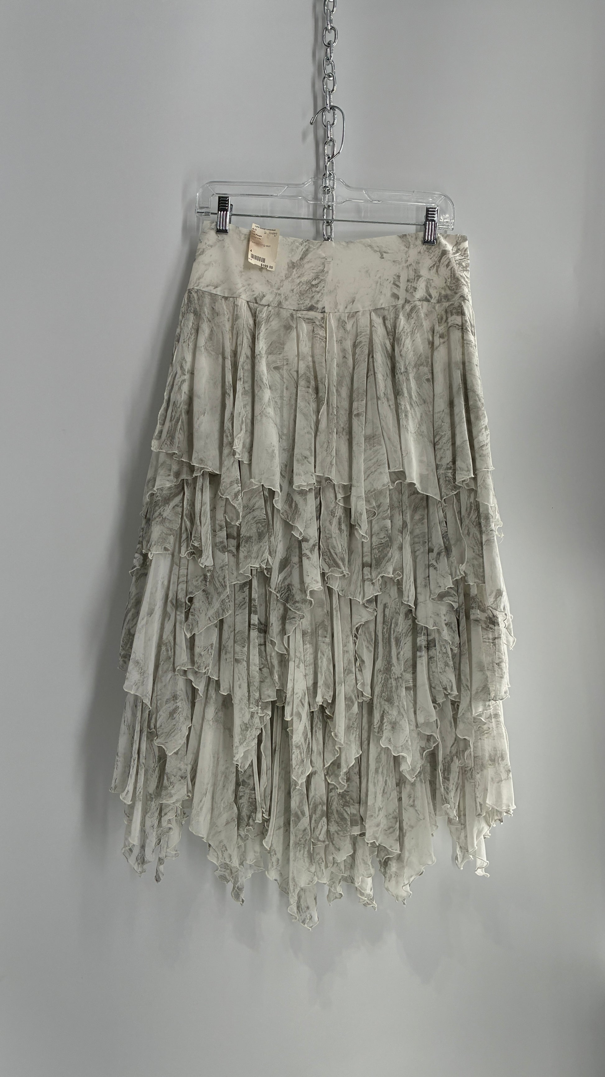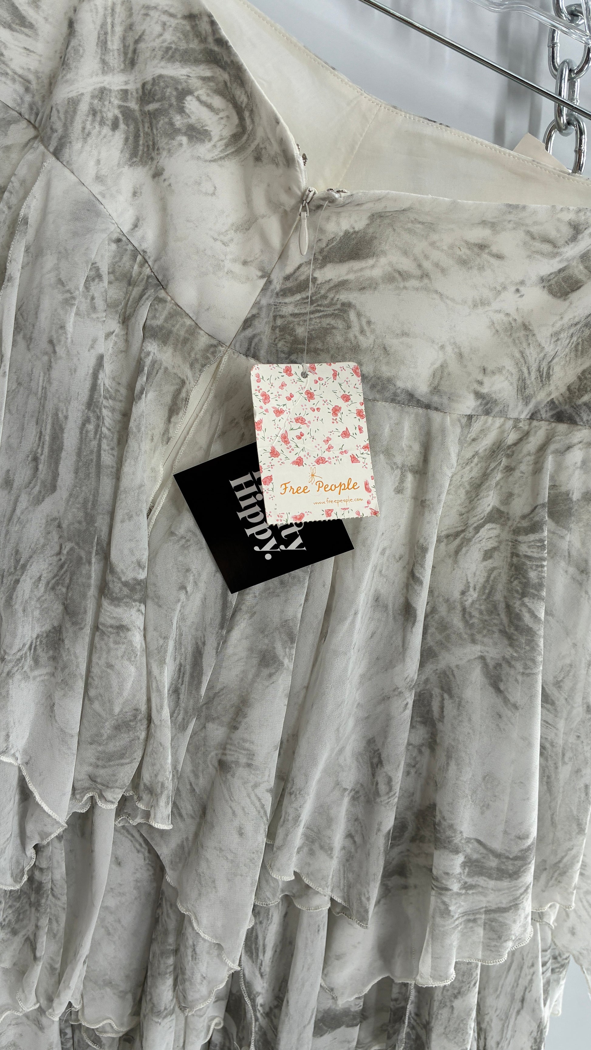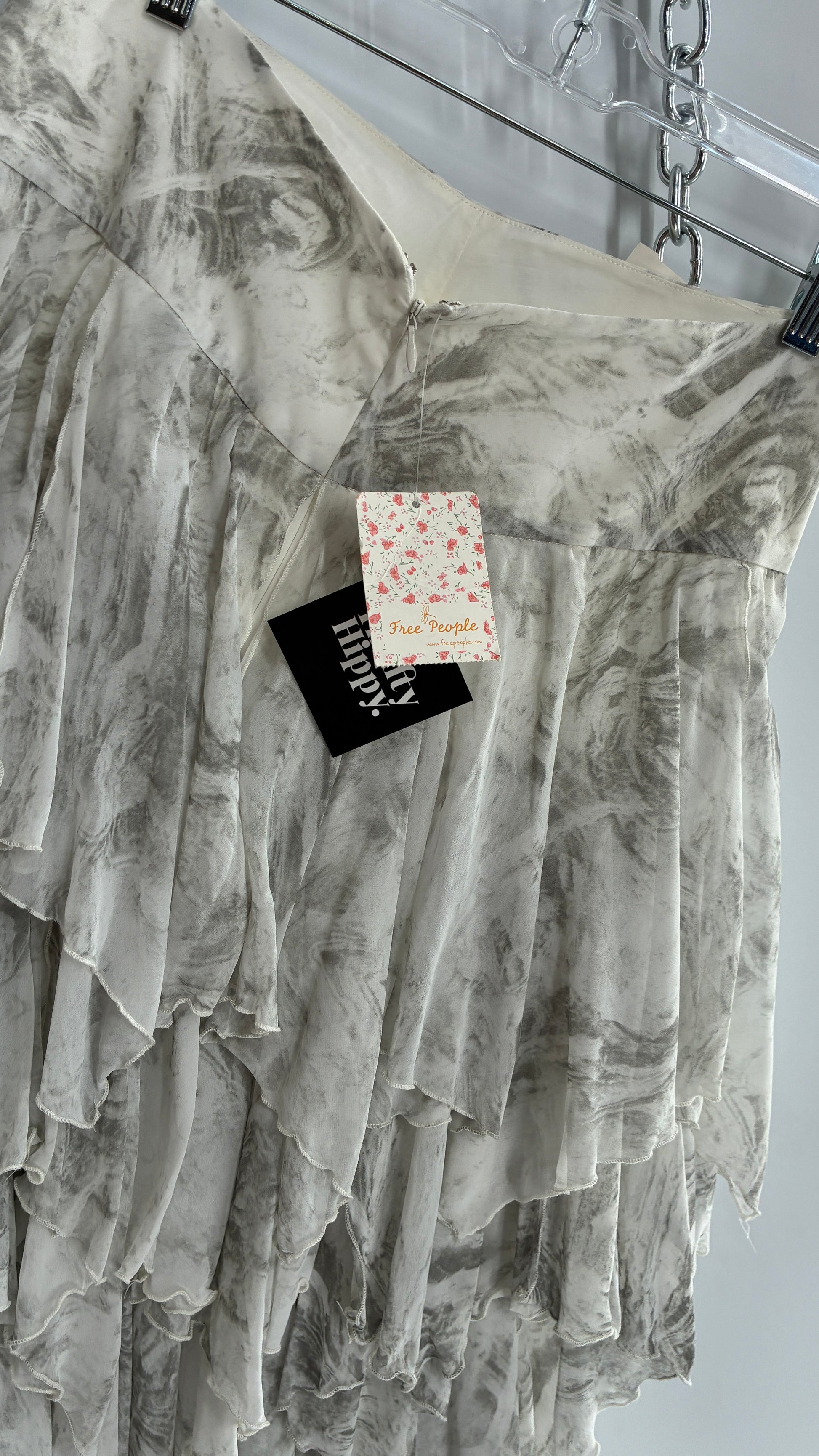 Free People Layered, Tiered Voluminous White and Grey Watercolor Full Skirt with Tags Attached