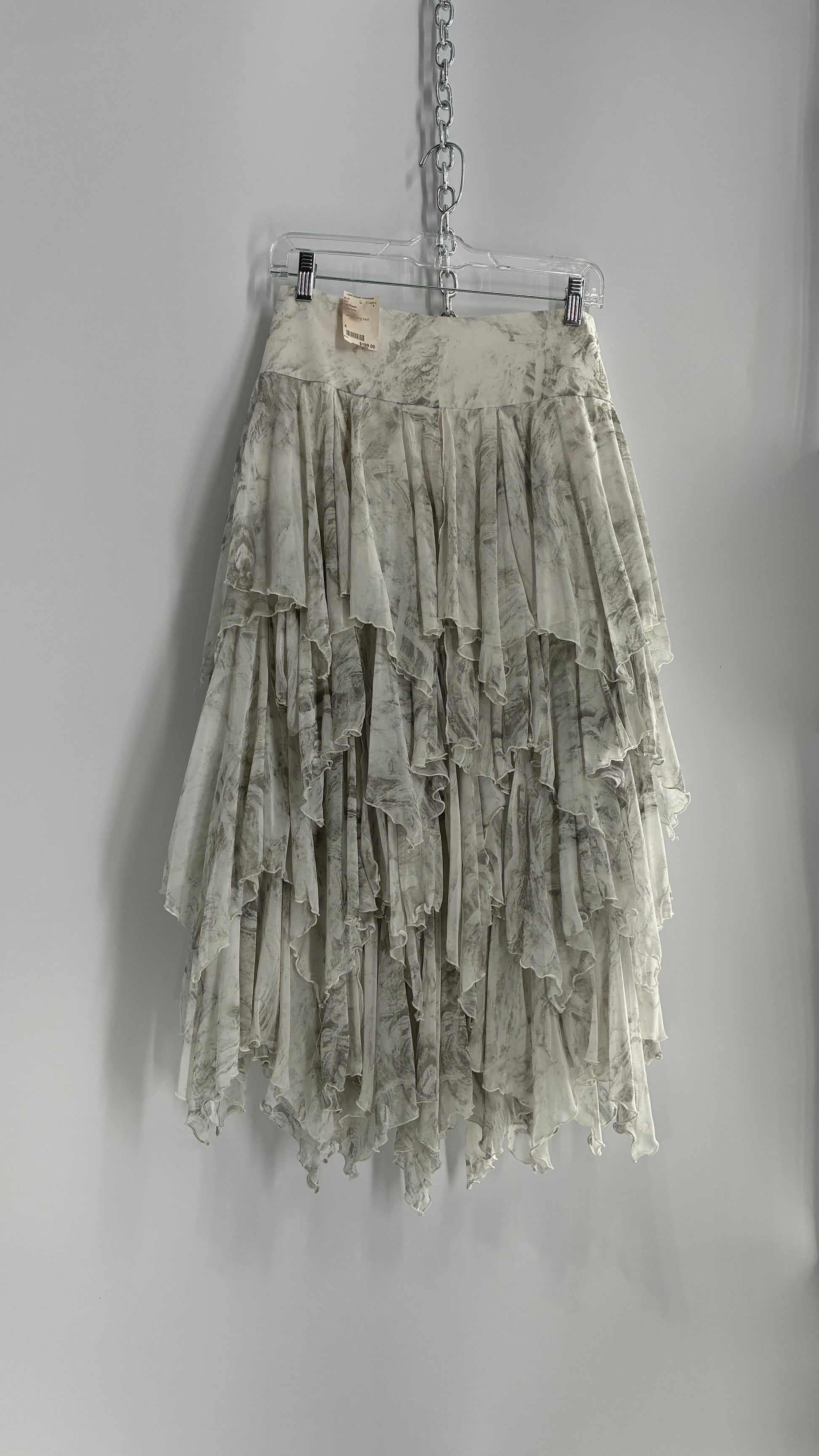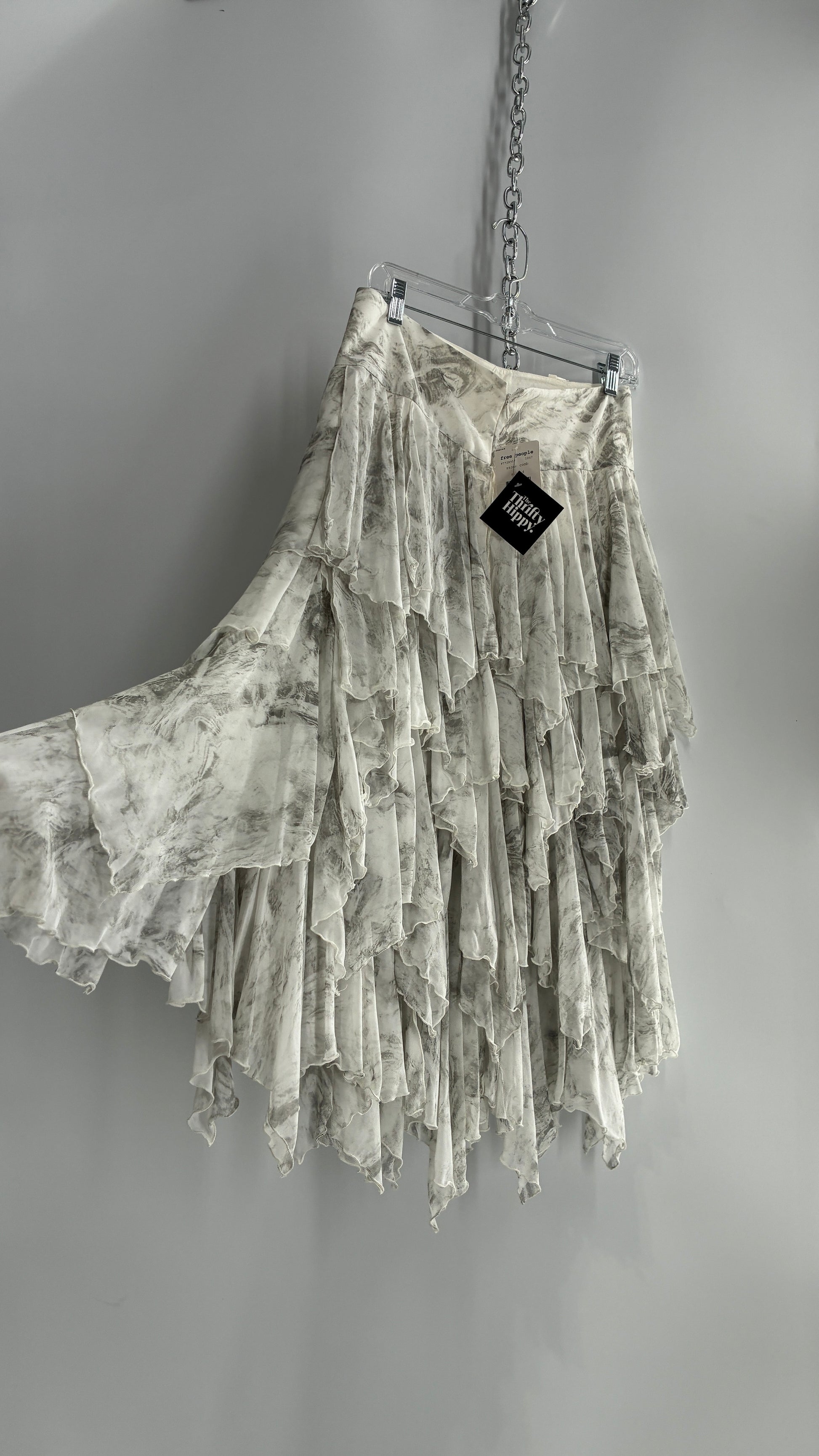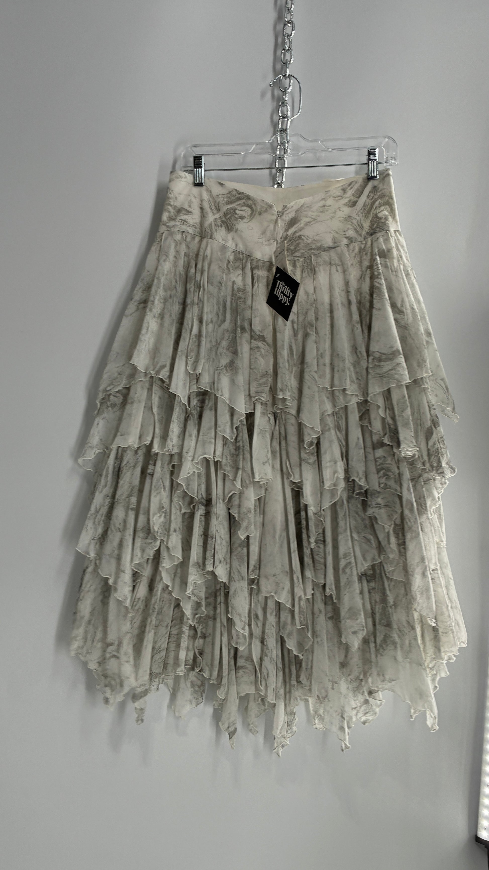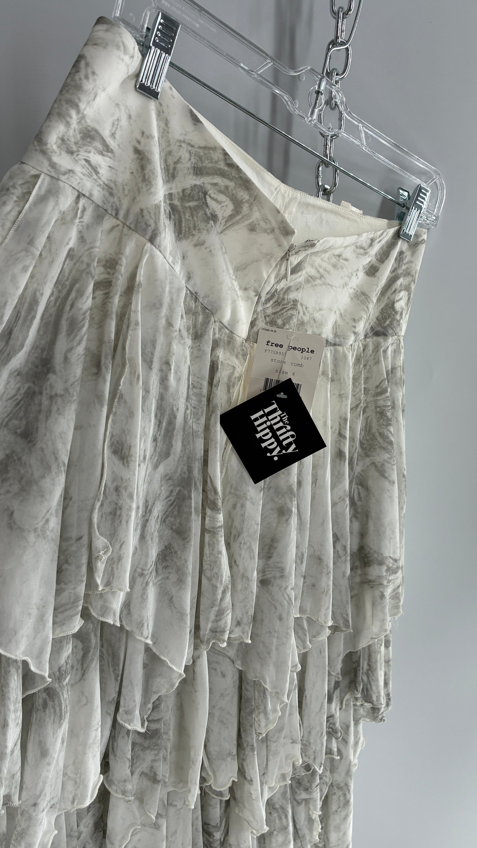Free People Layered, Tiered Voluminous White and Grey Watercolor Full Skirt with Tags Attached