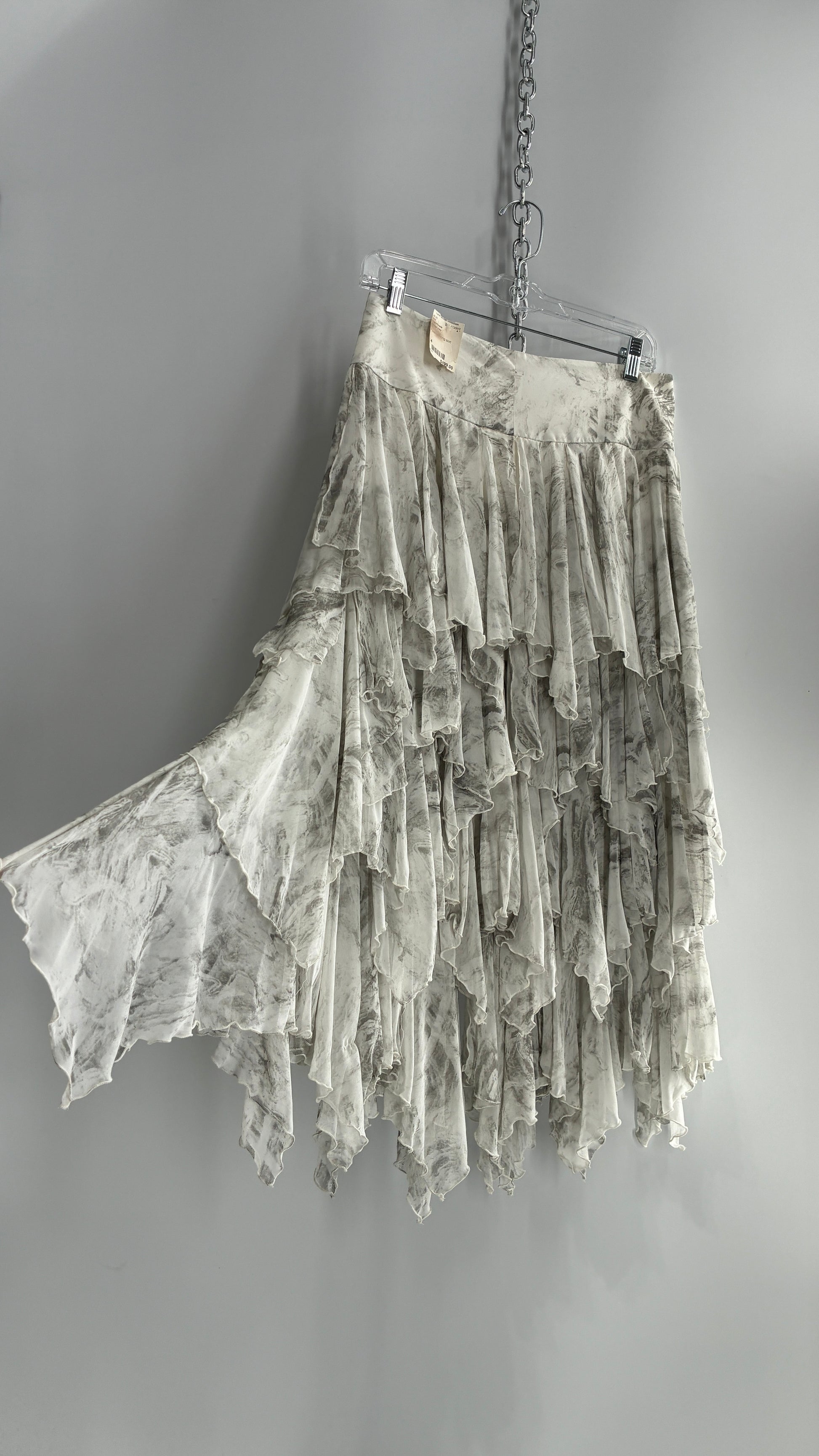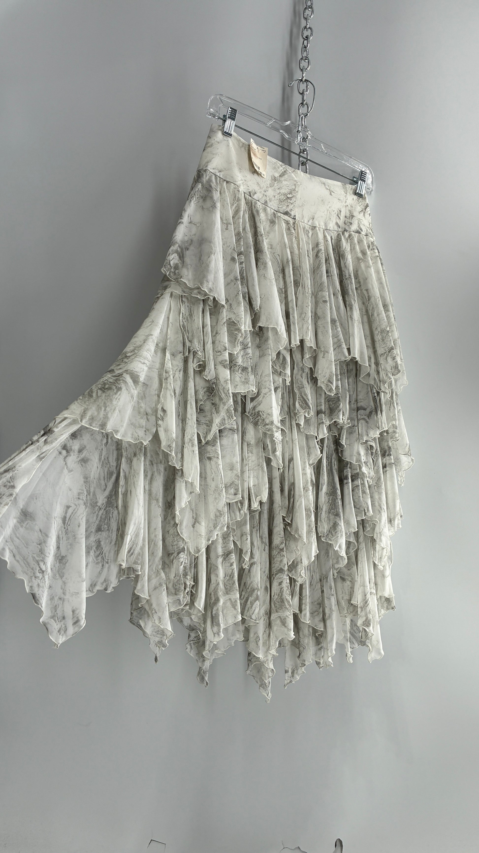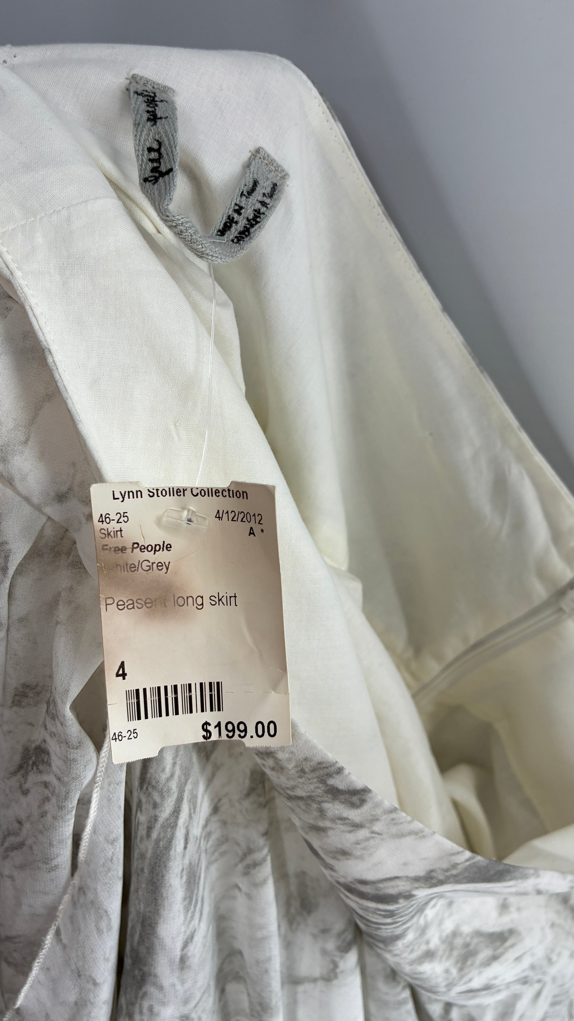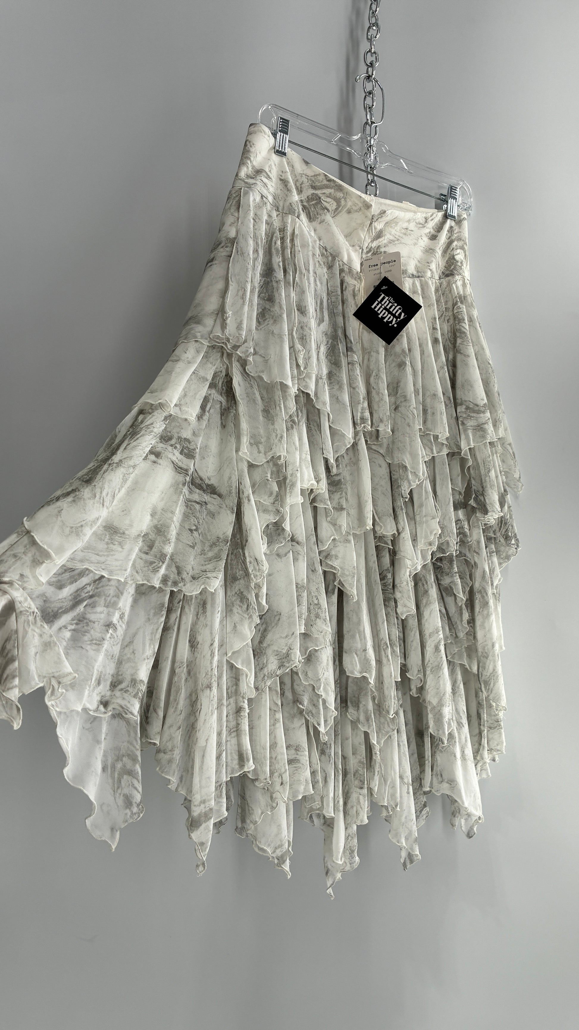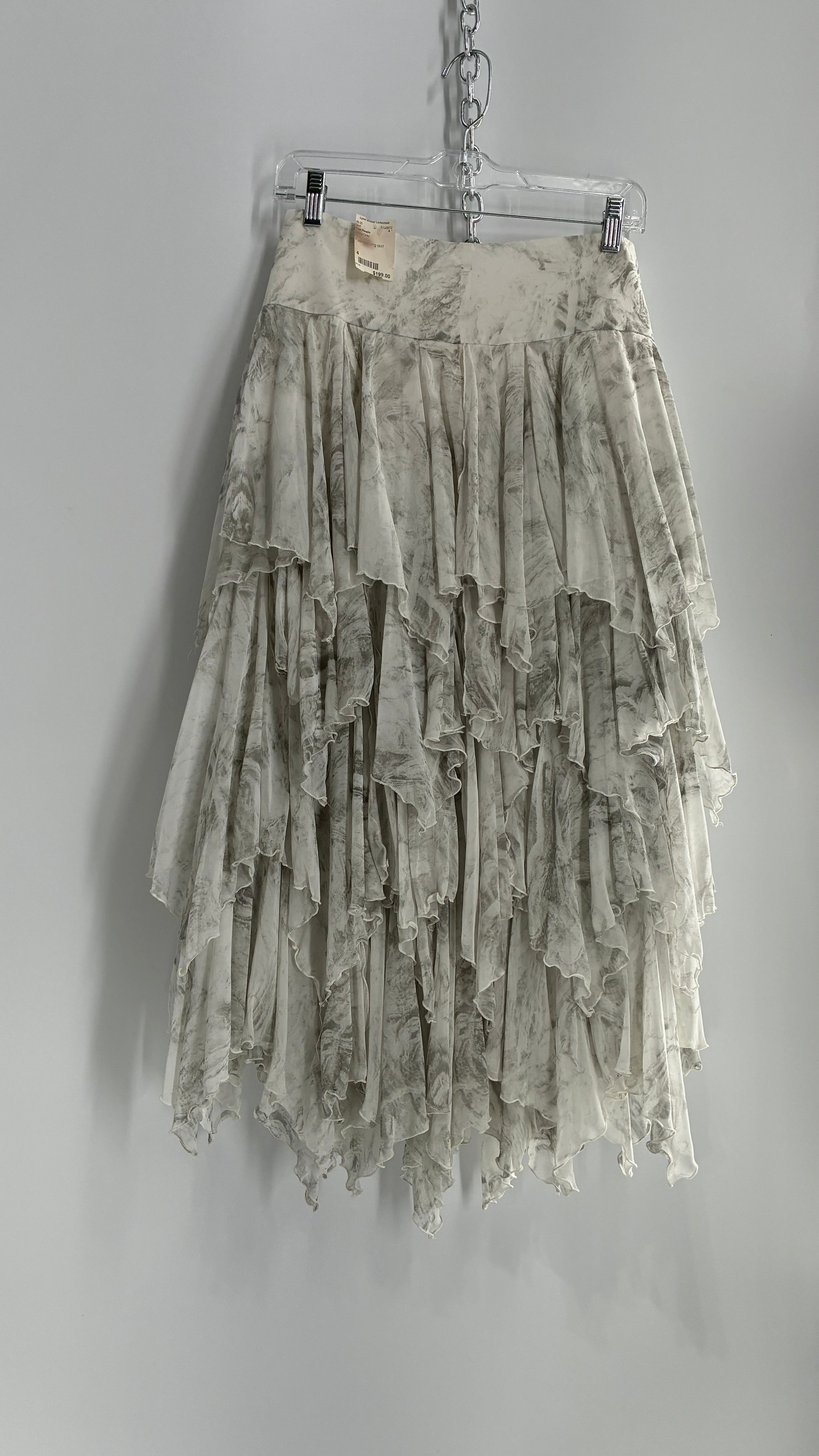 Free People Layered, Tiered Voluminous White and Grey Watercolor Full Skirt with Tags Attached
