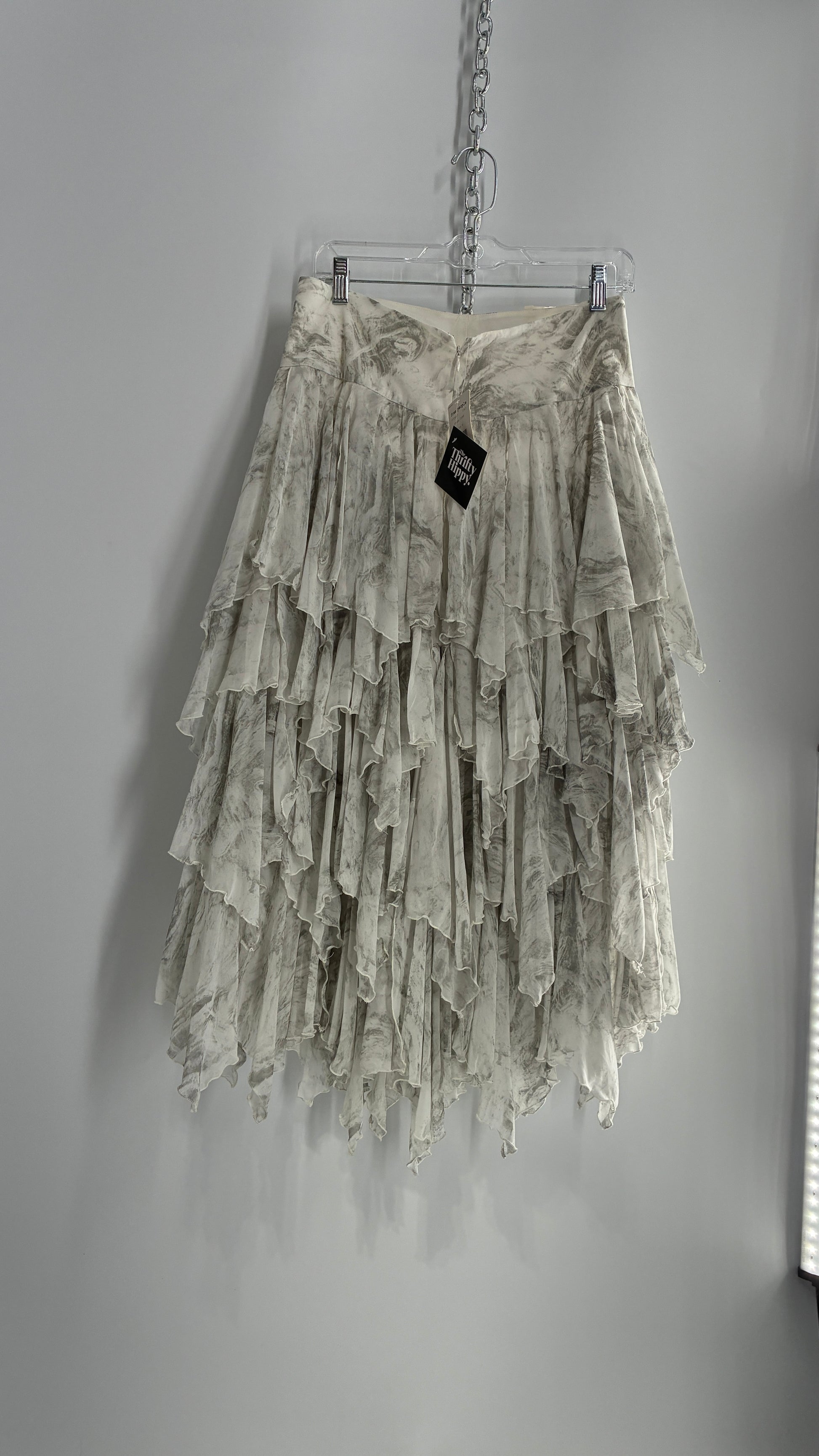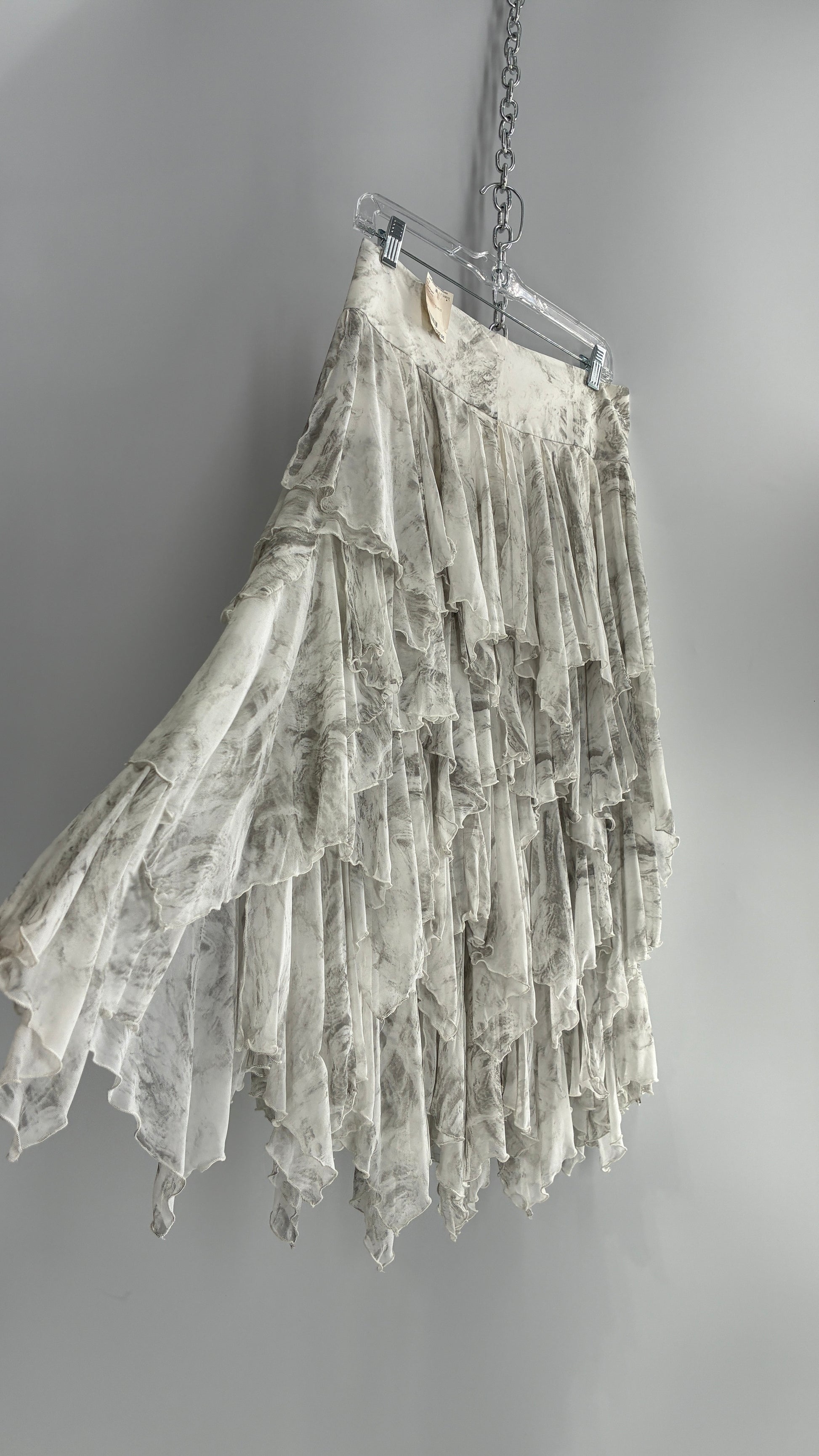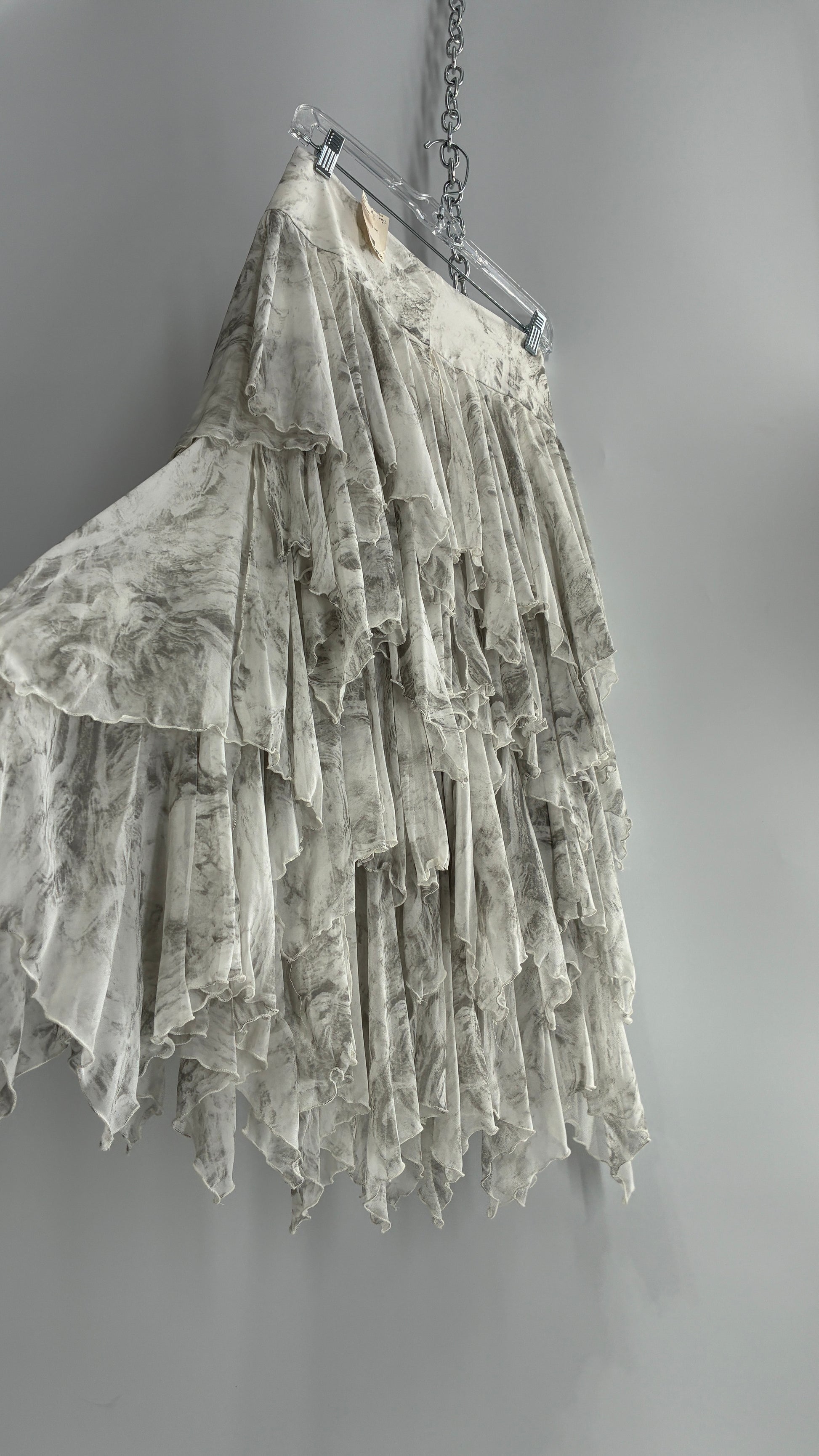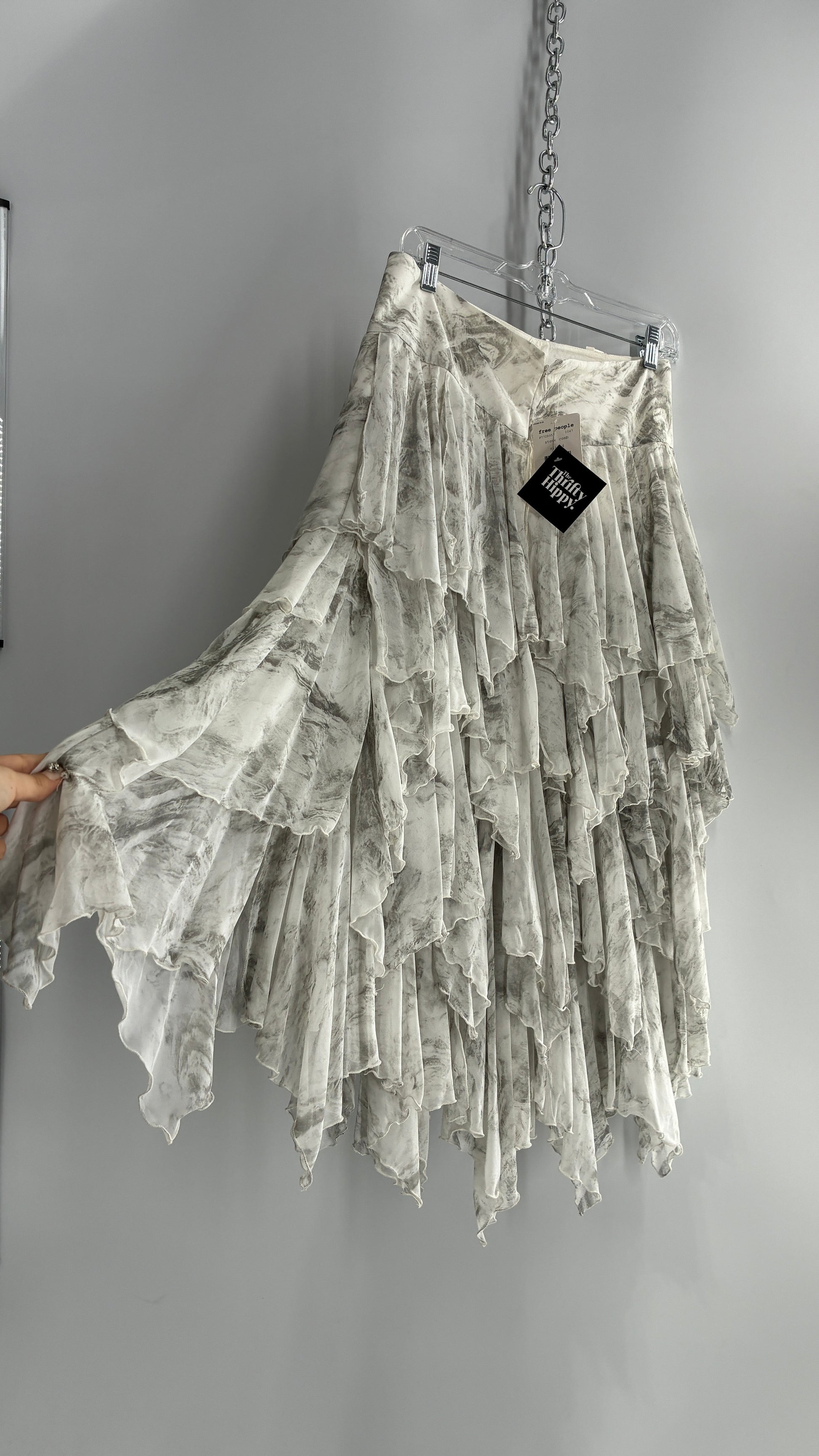 Free People Layered, Tiered Voluminous White and Grey Watercolor Full Skirt with Tags Attached