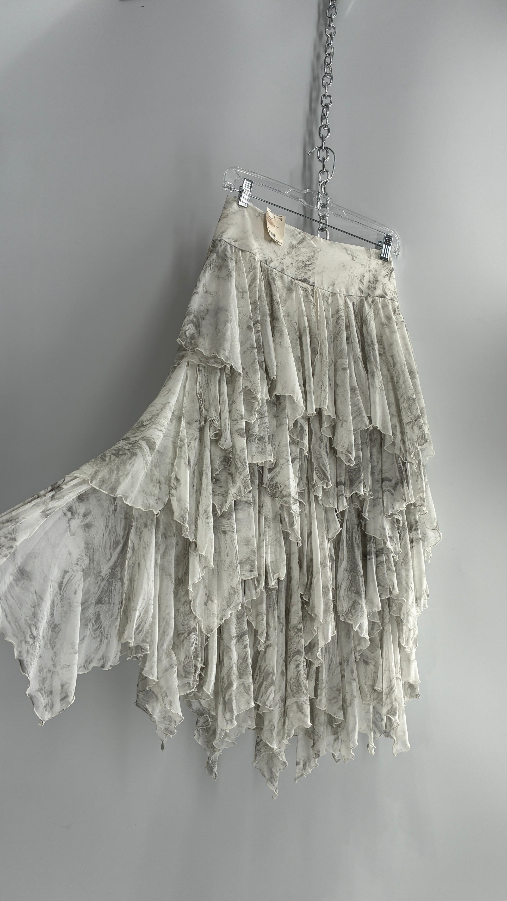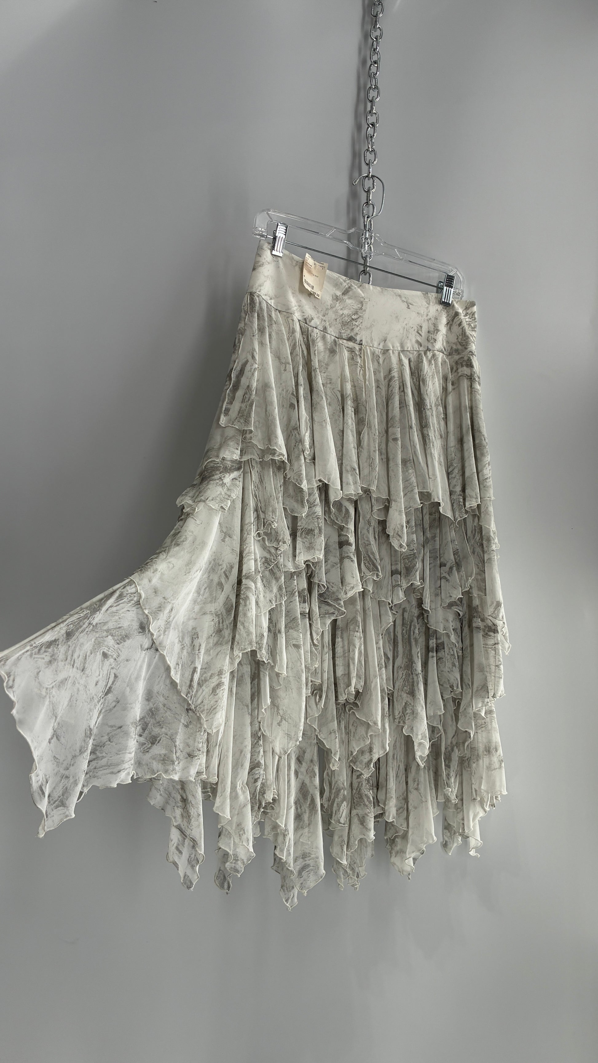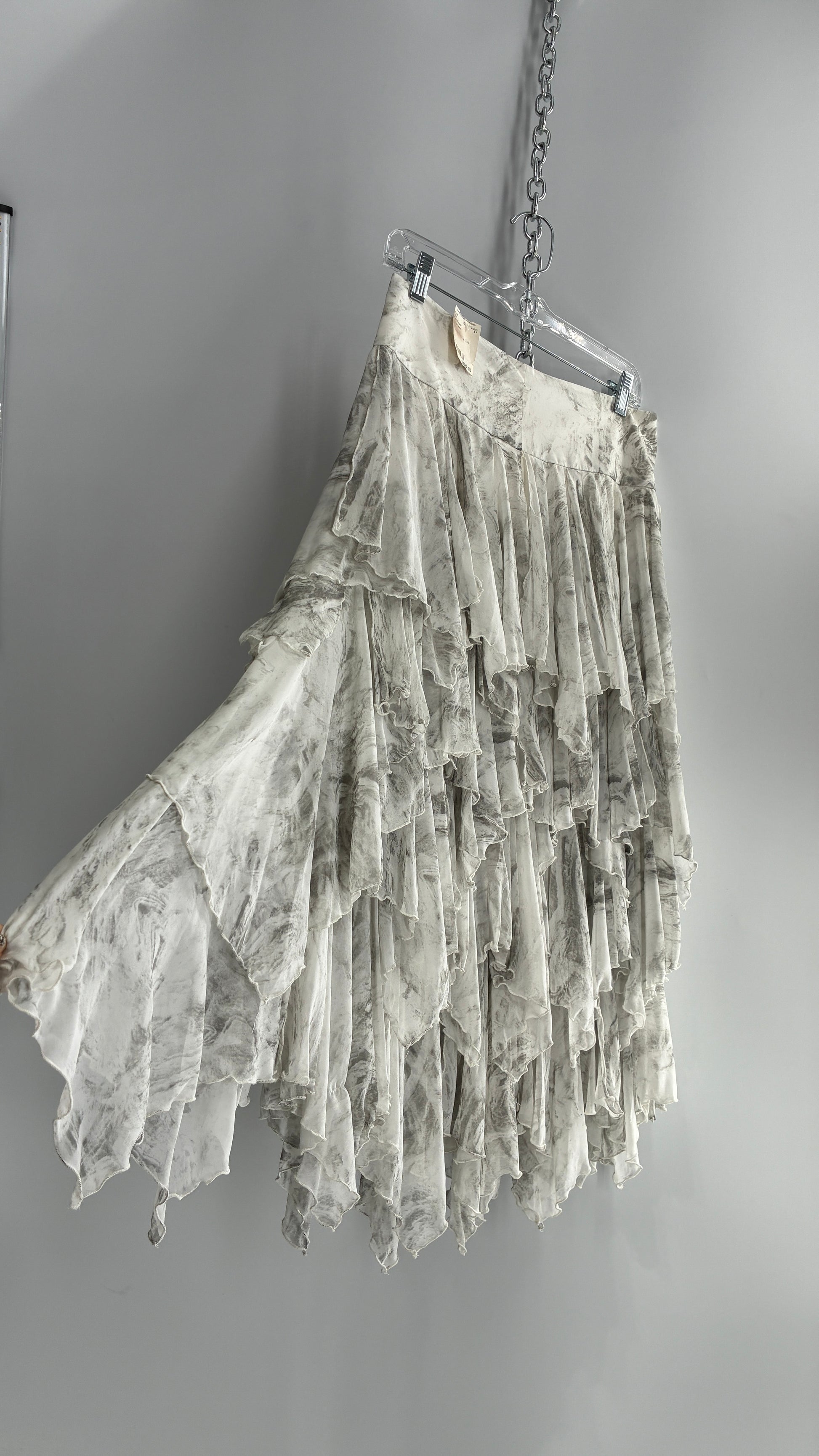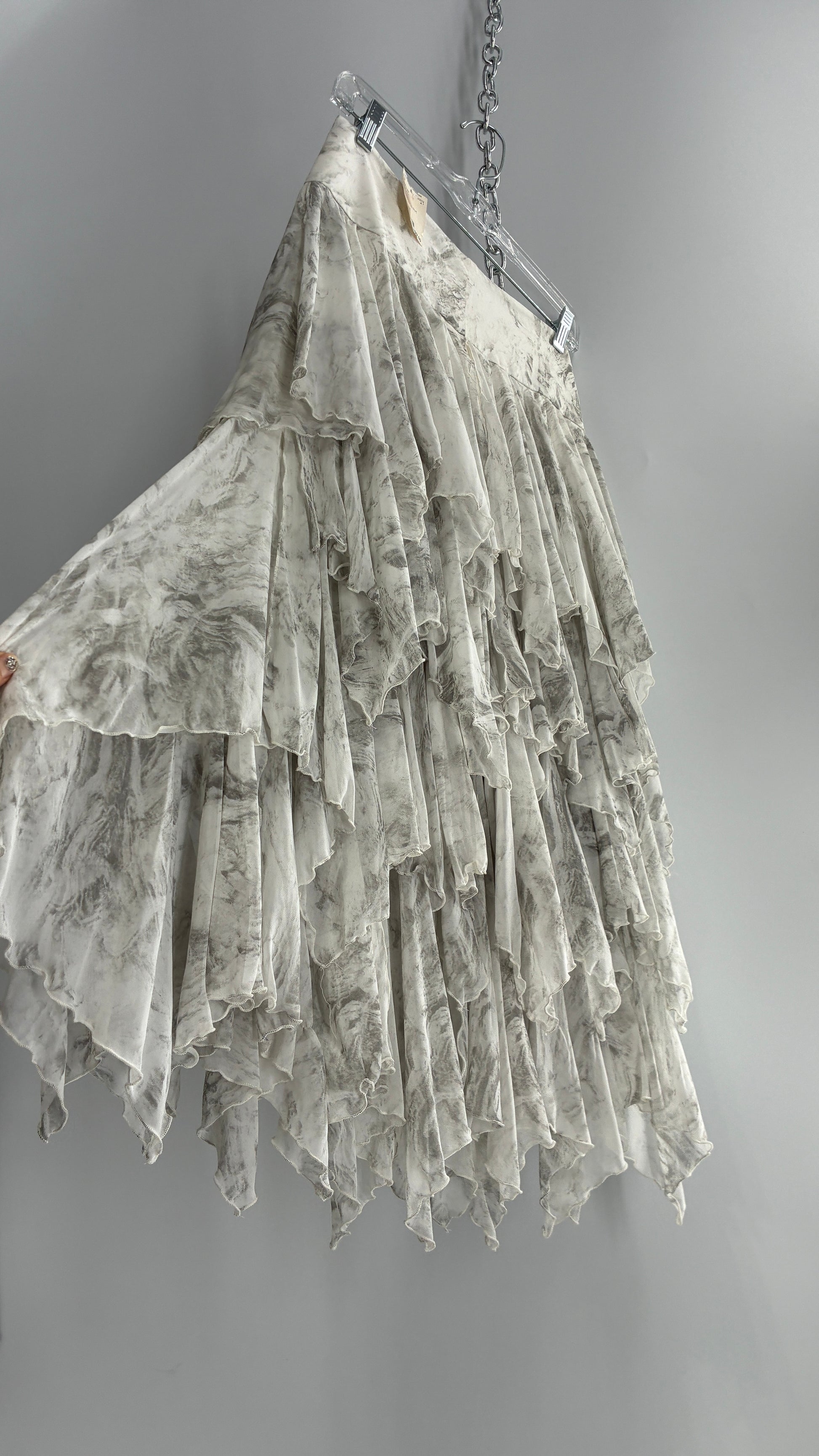 Free People Layered, Tiered Voluminous White and Grey Watercolor Full Skirt with Tags Attached
