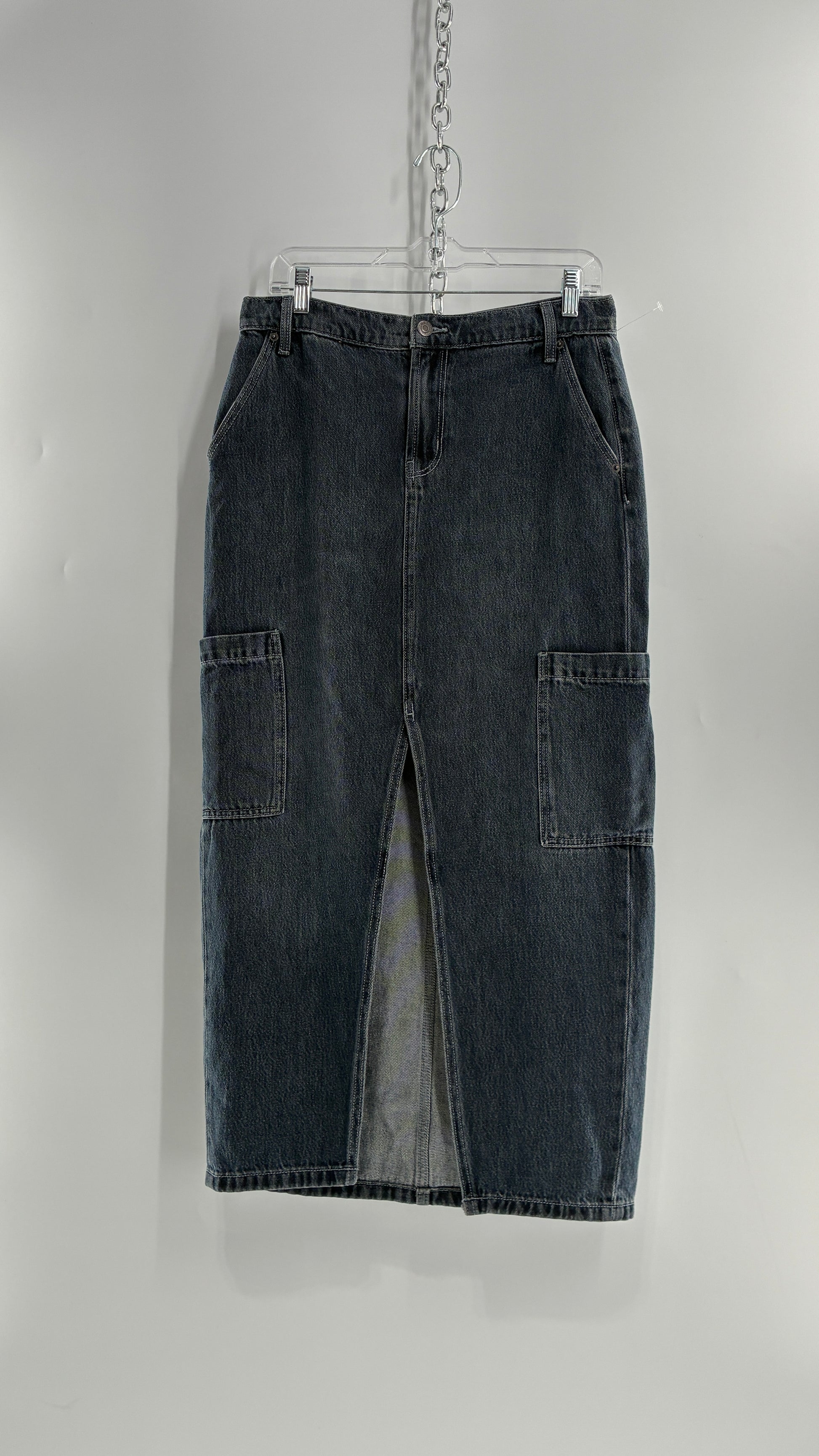 Old Navy Mid Rise Vented Denim Cargo Skirt (4)
