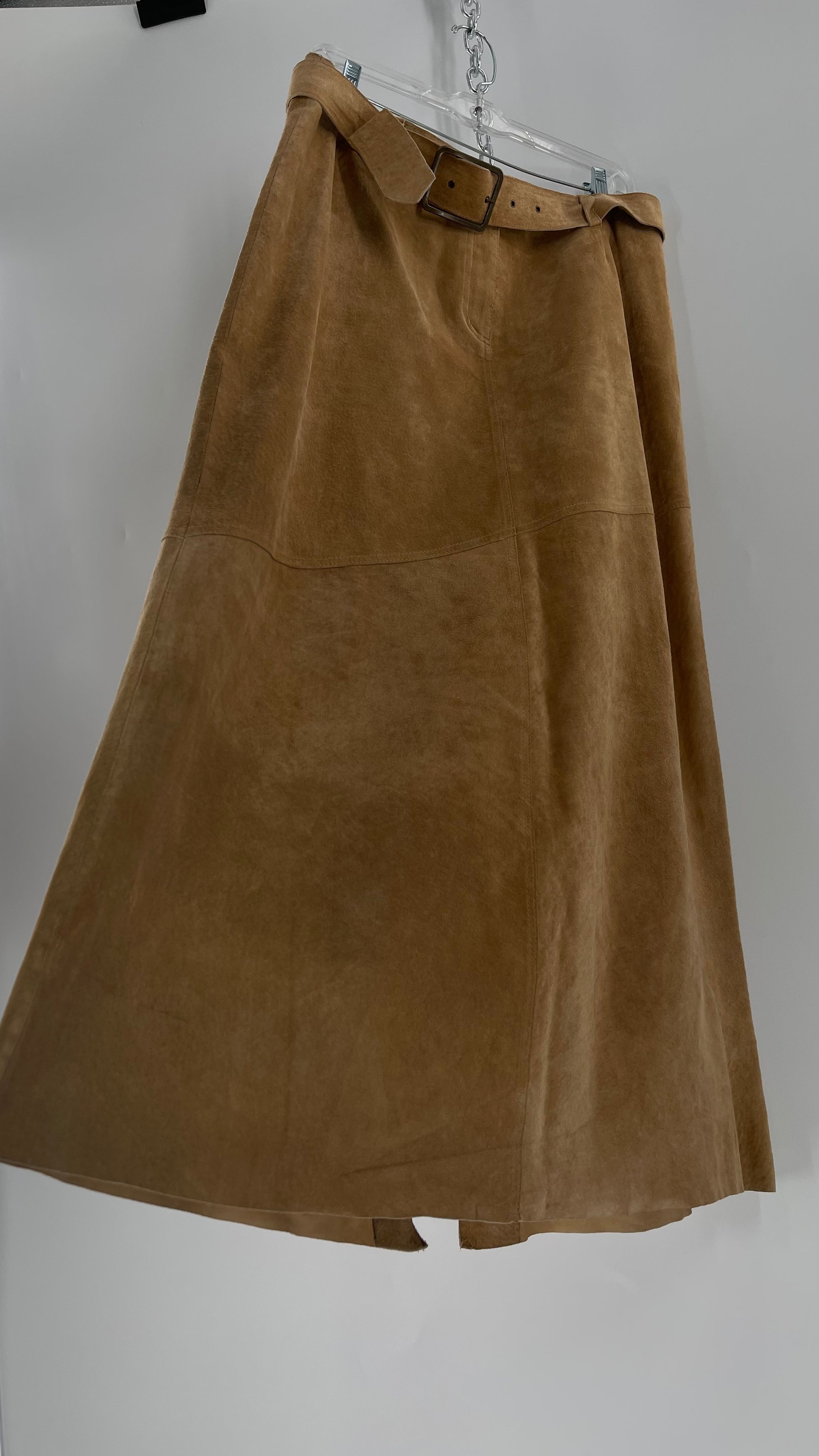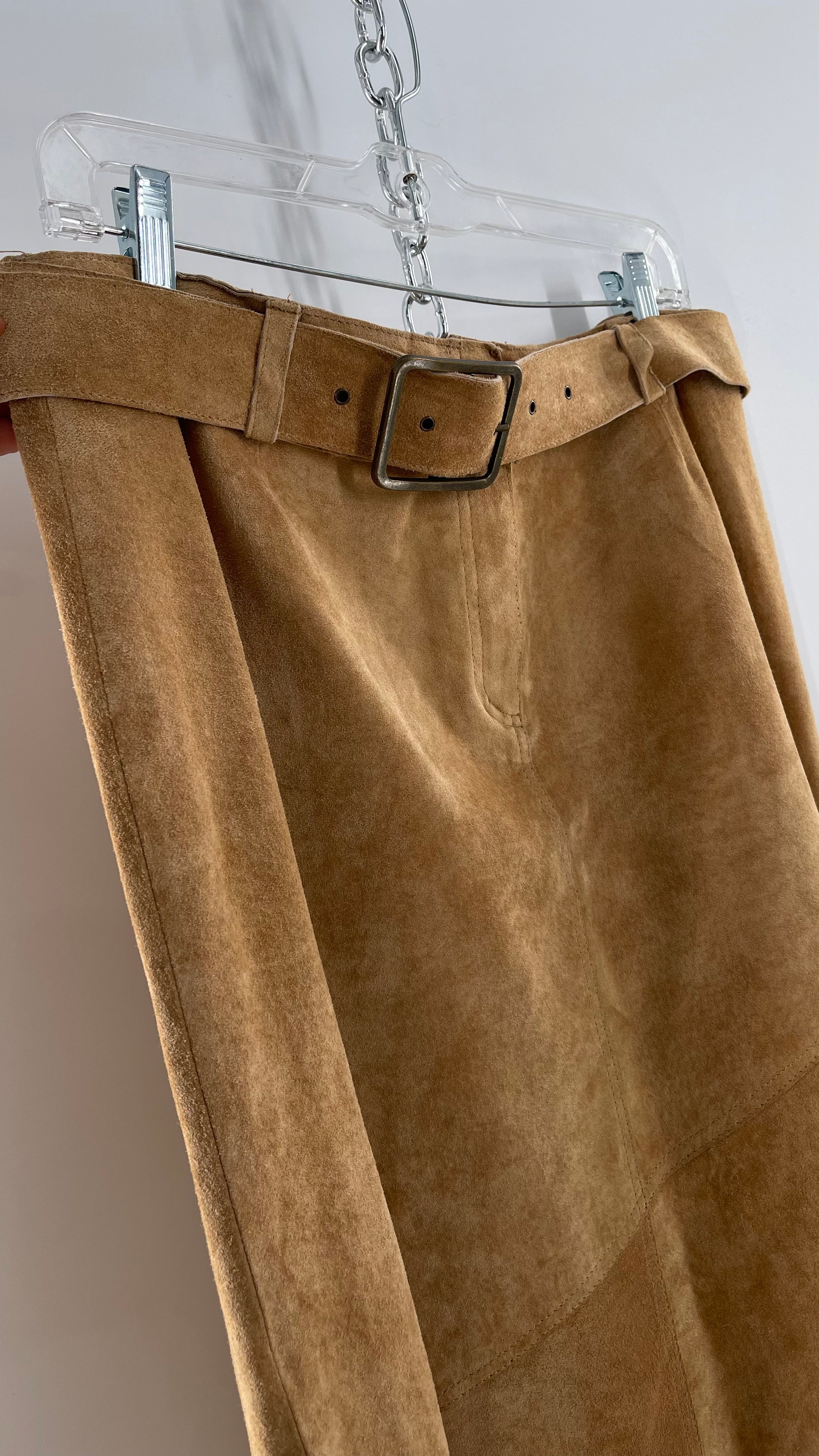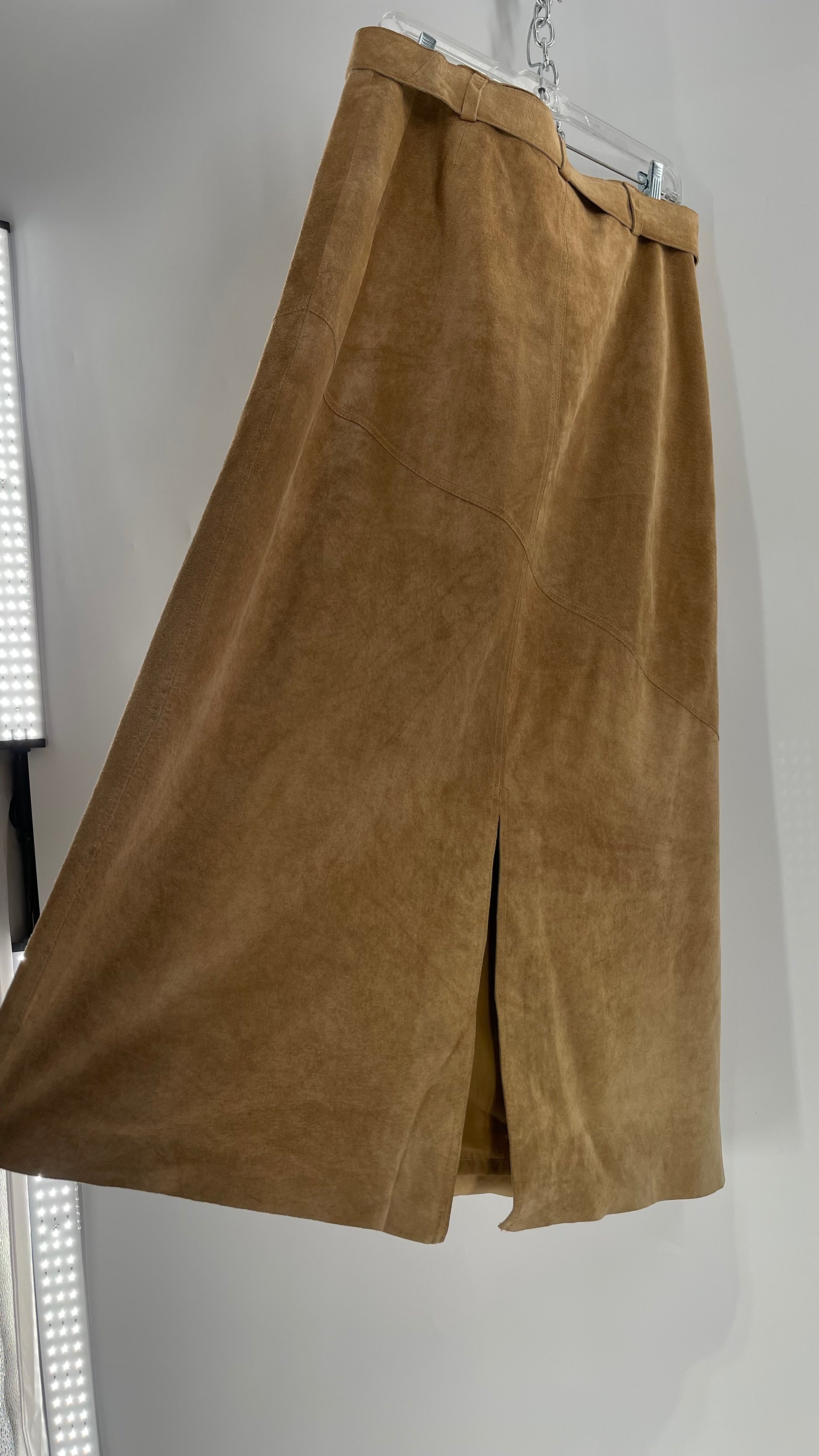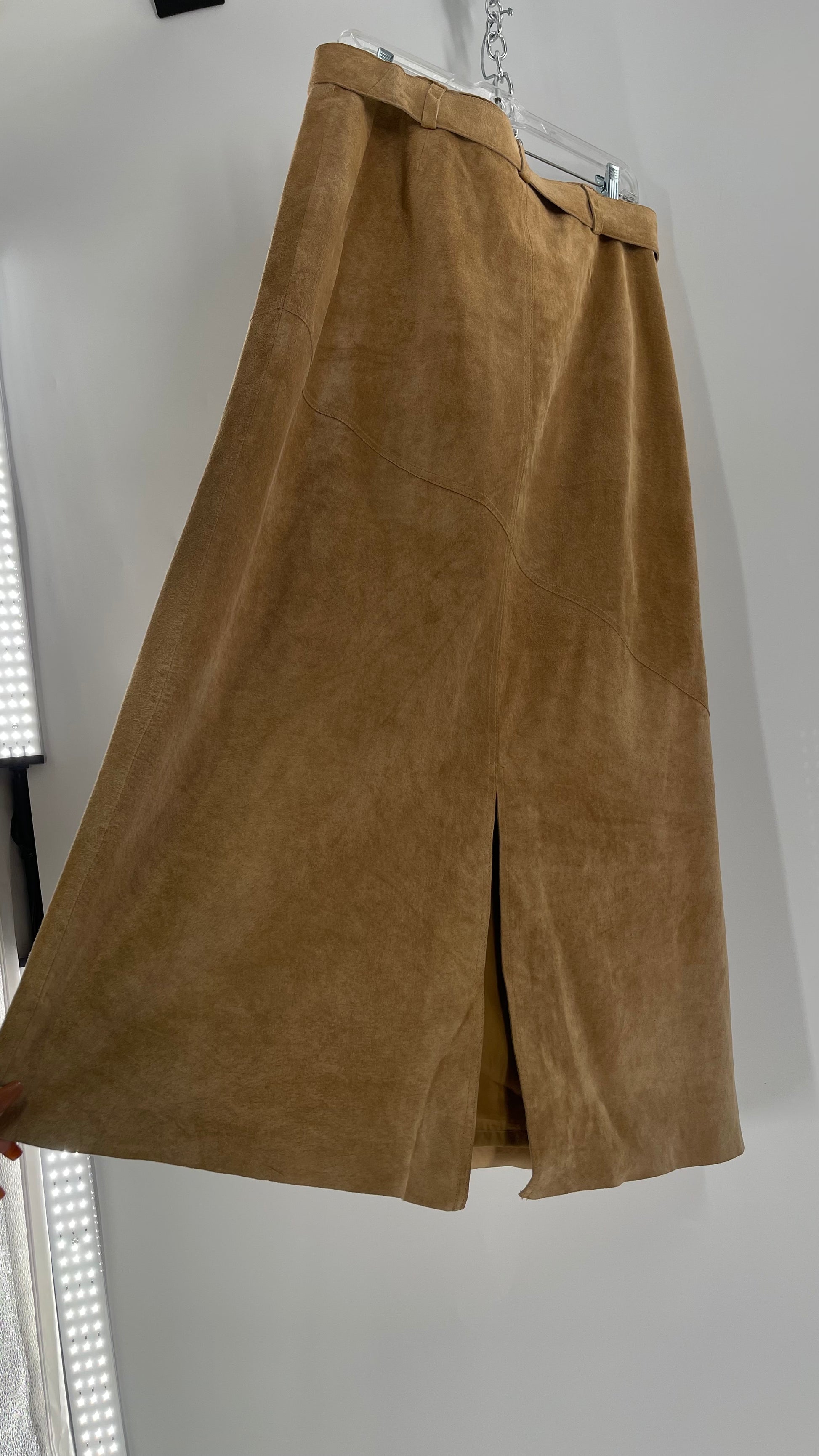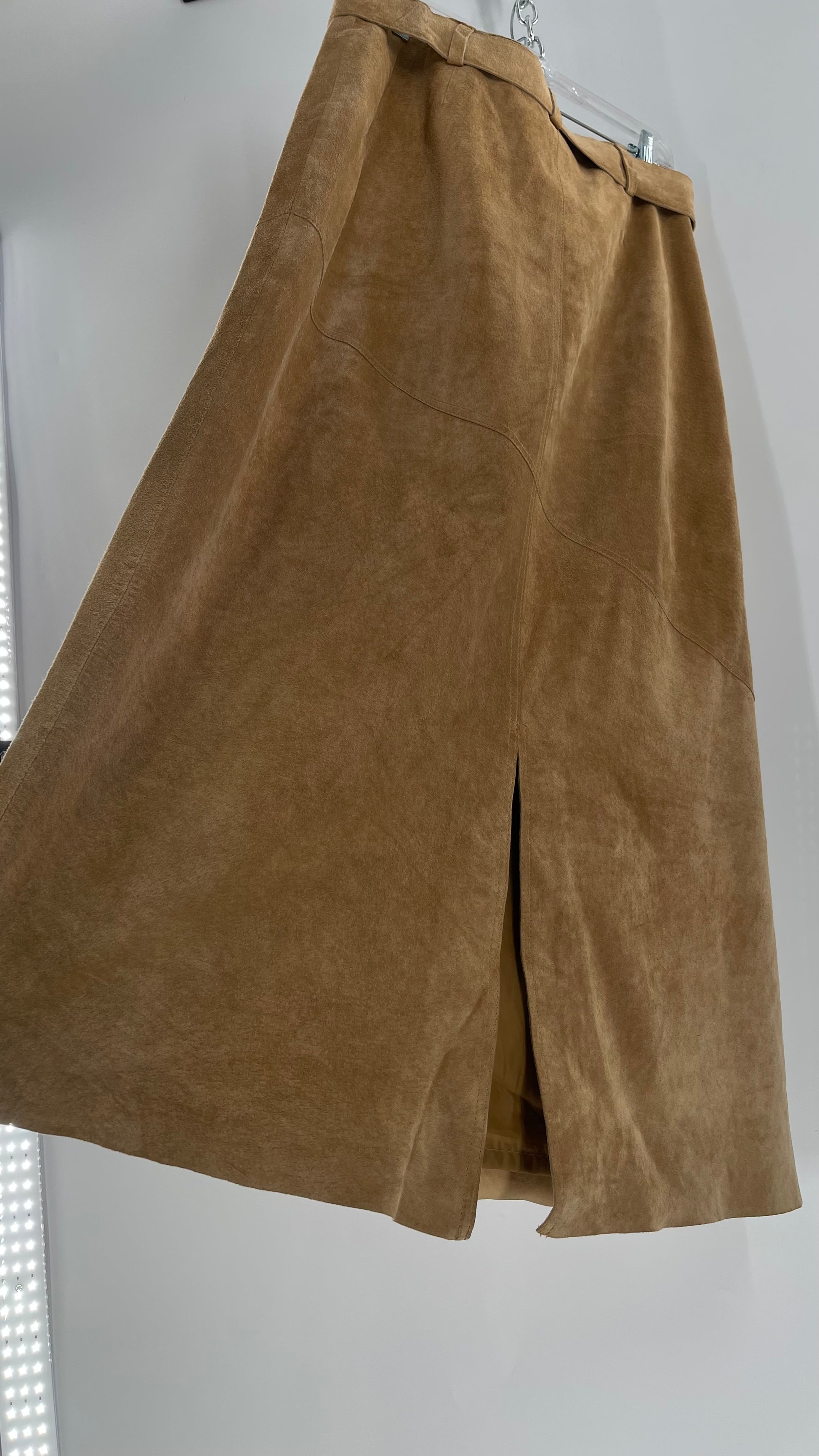 Vintage Margaret Godfrey Tan Suede Low Rise Full Length Skirt with Grommet Belt (14)