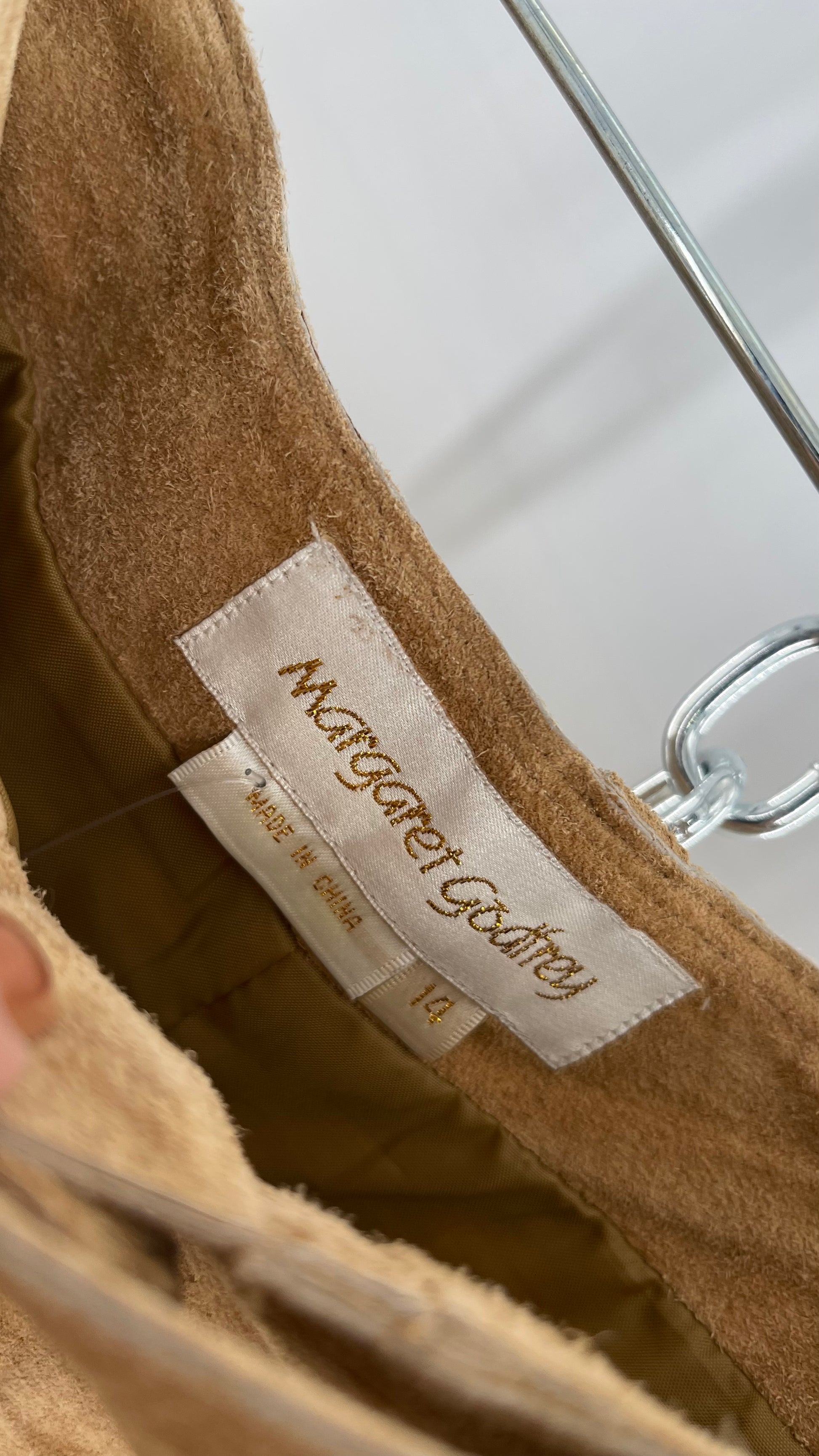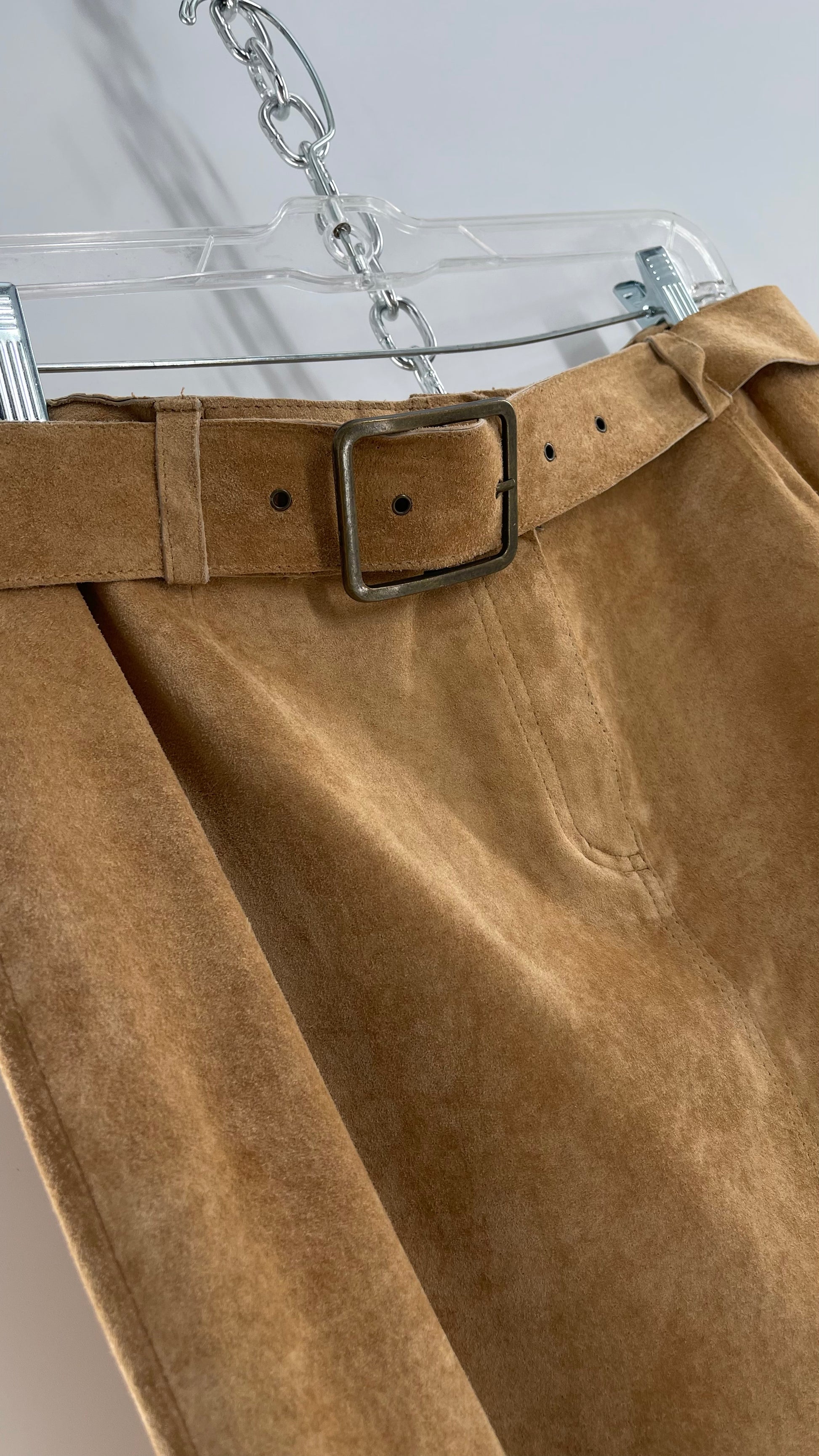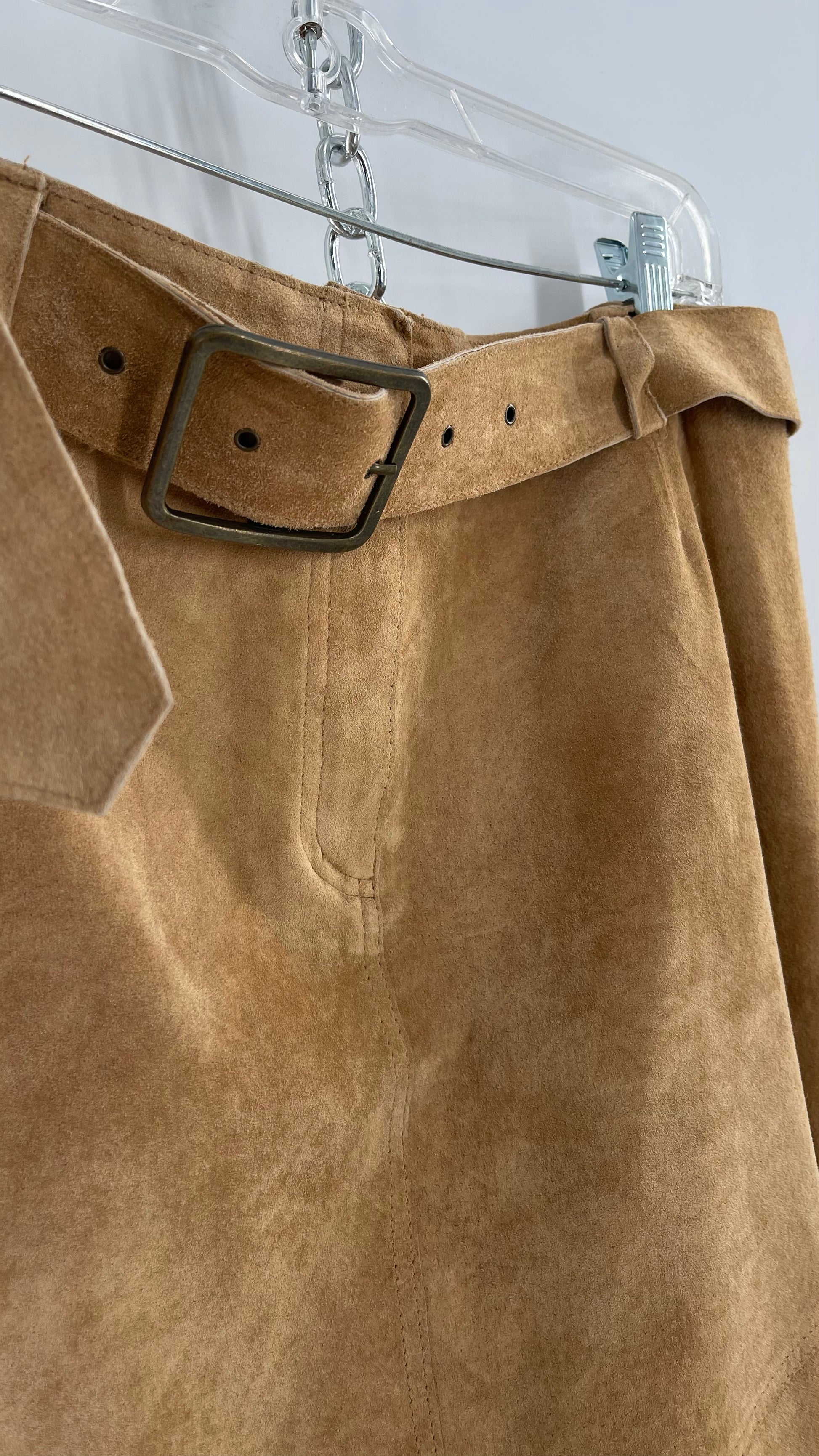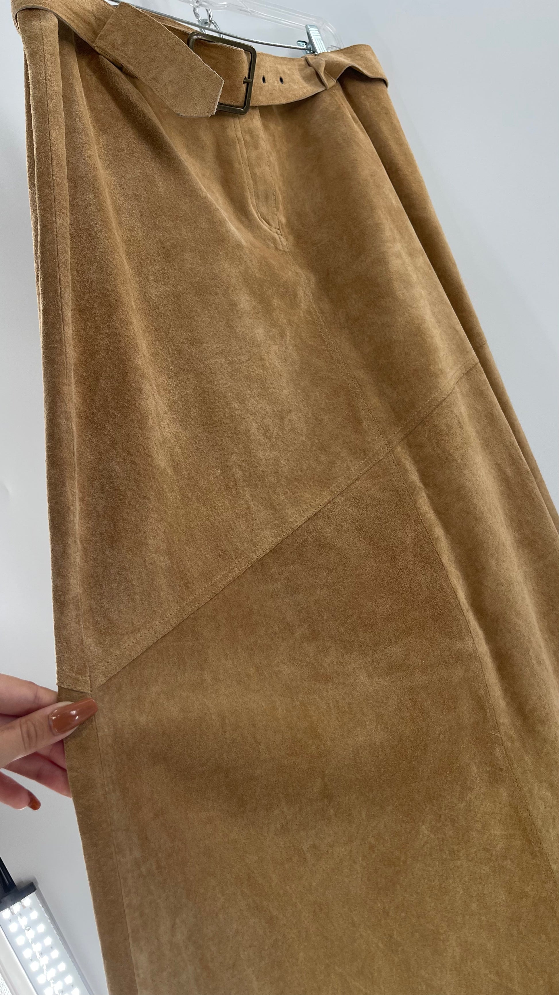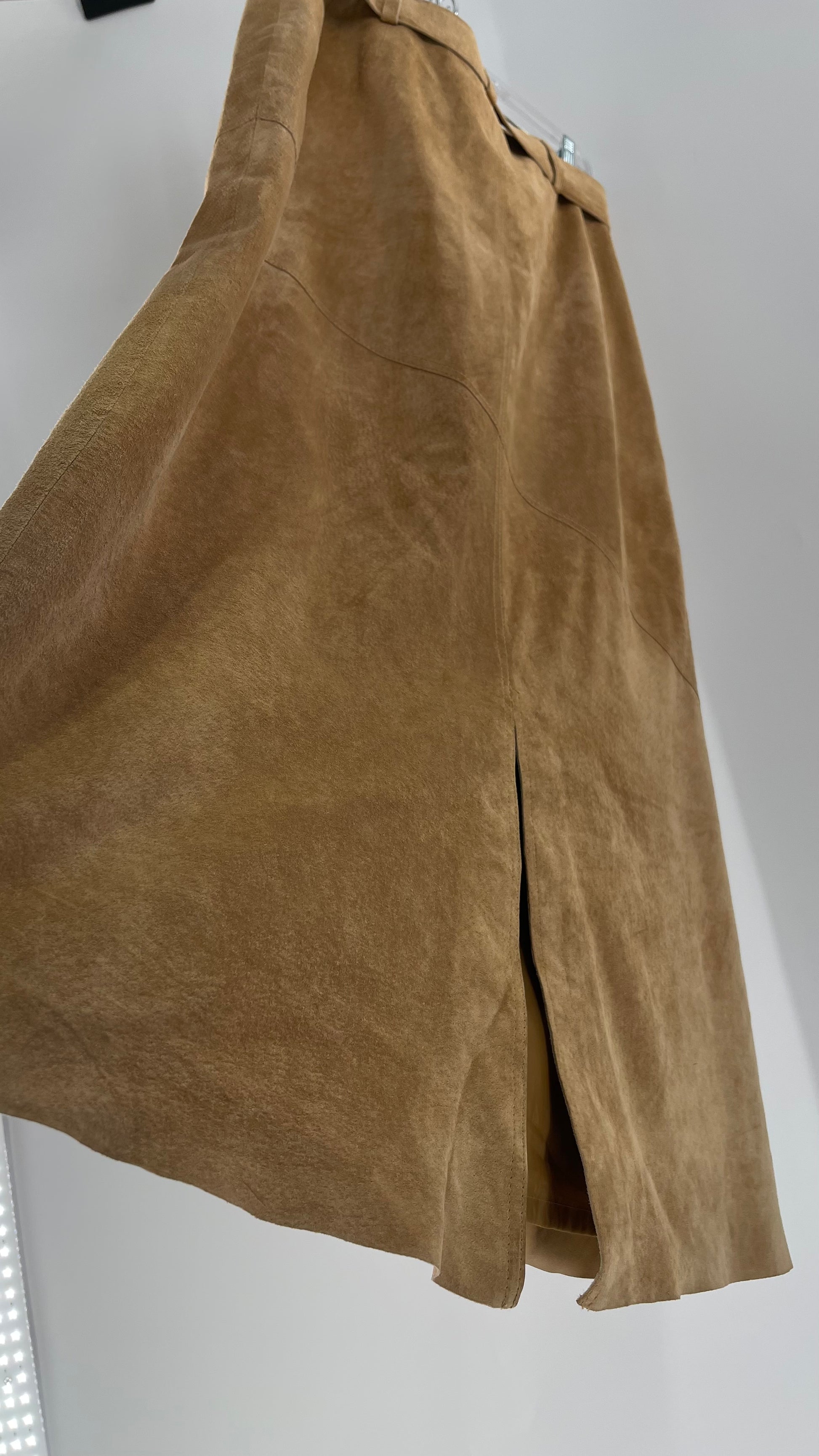 Vintage Margaret Godfrey Tan Suede Low Rise Full Length Skirt with Grommet Belt (14)