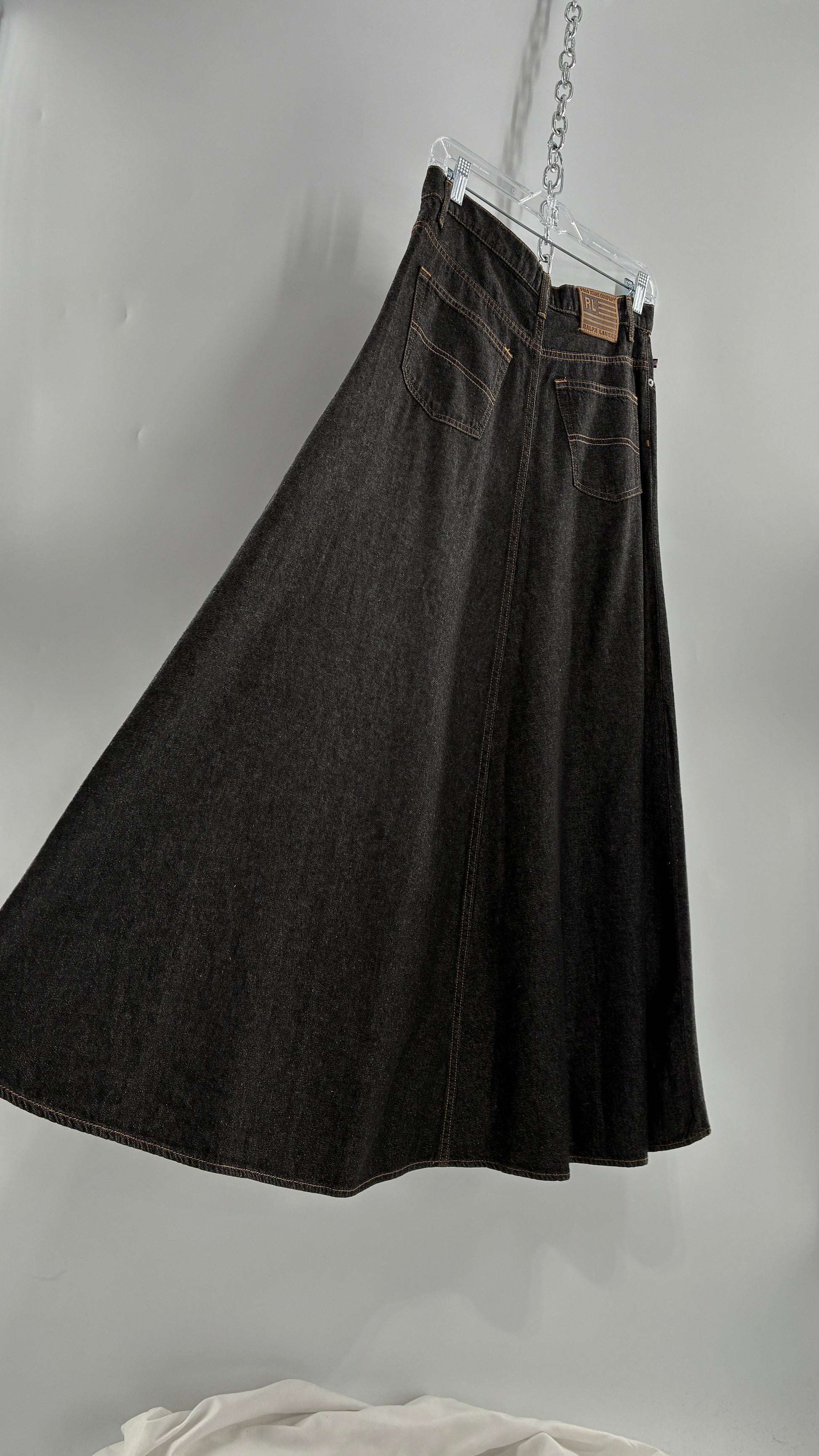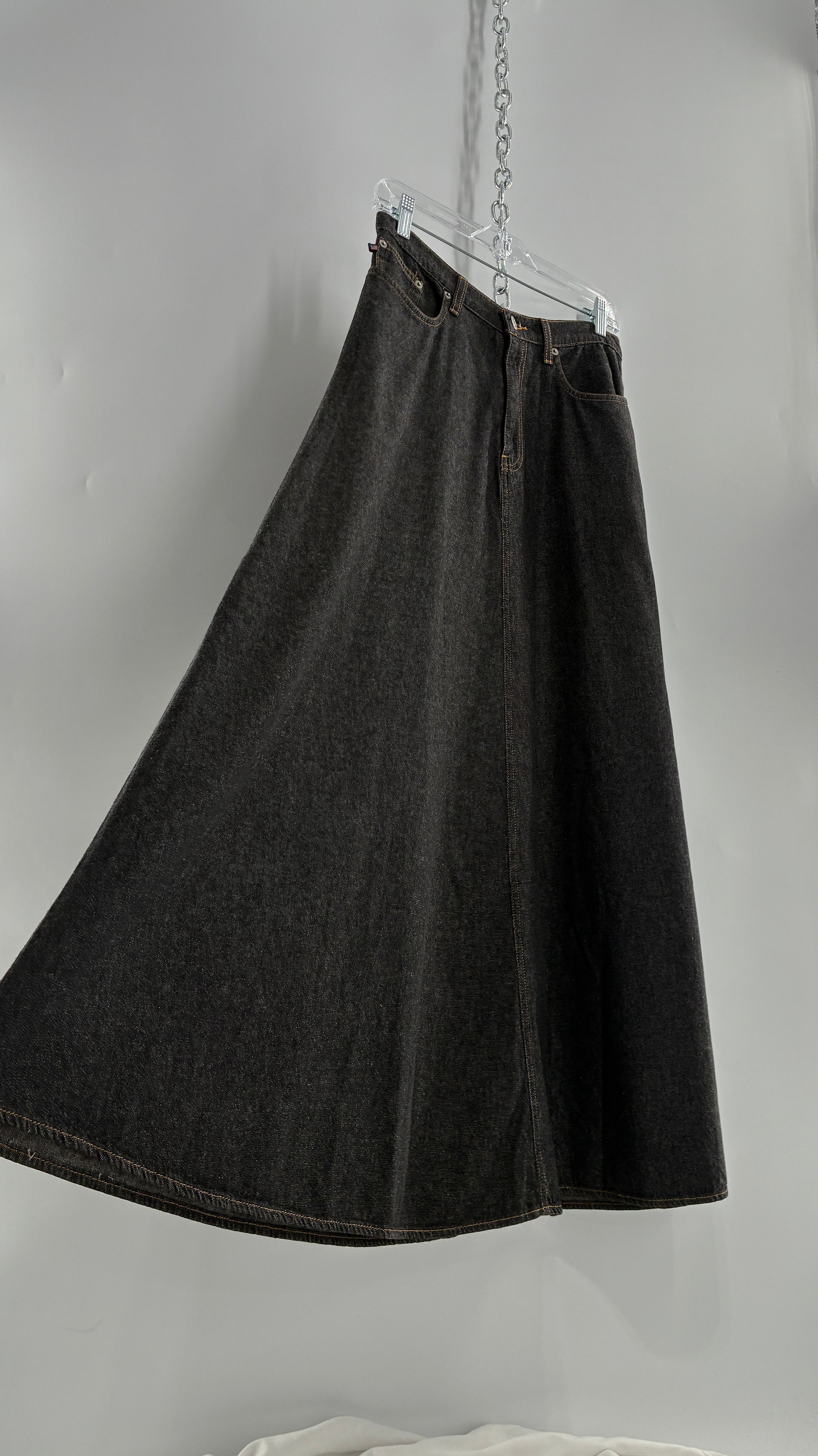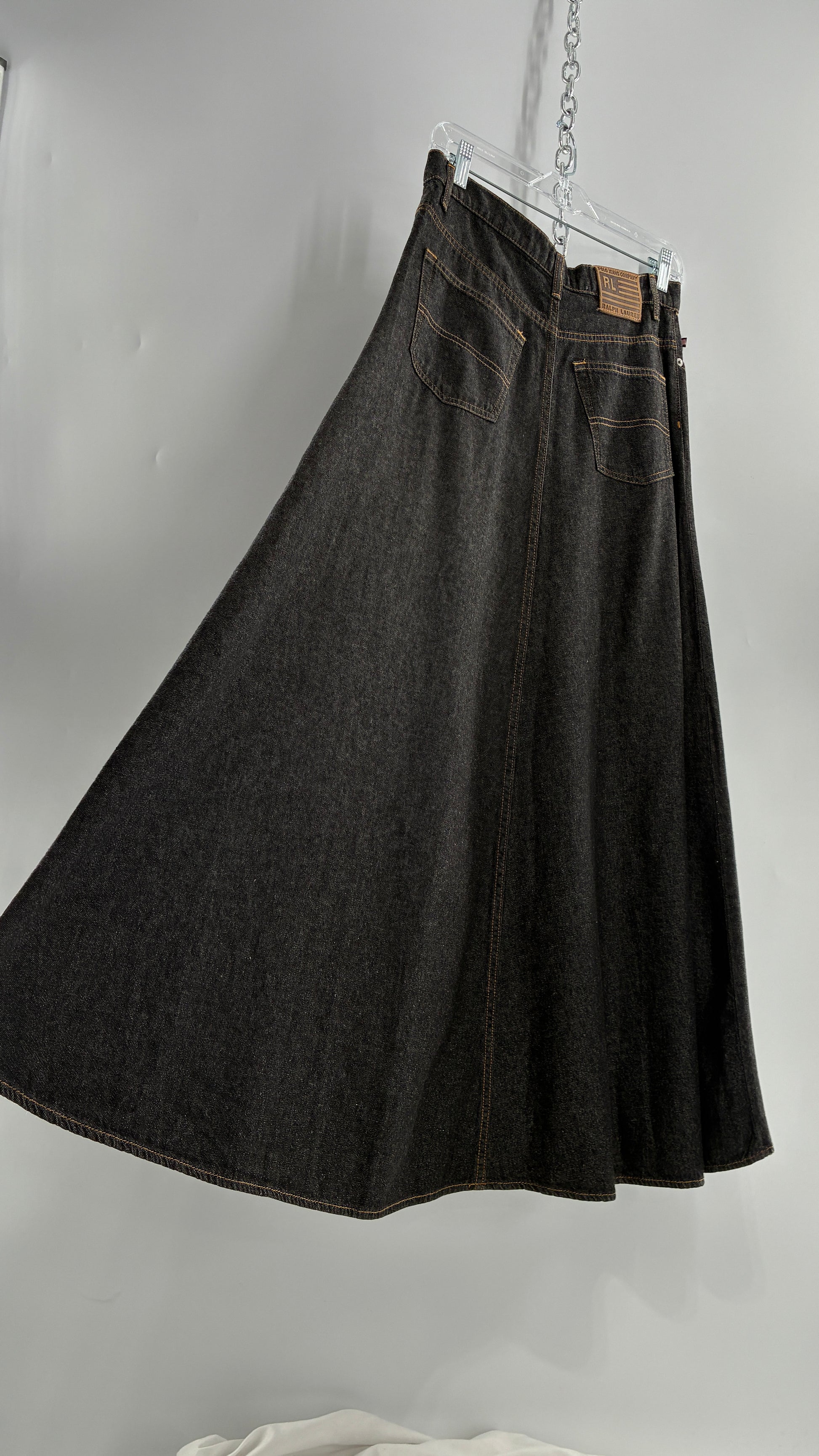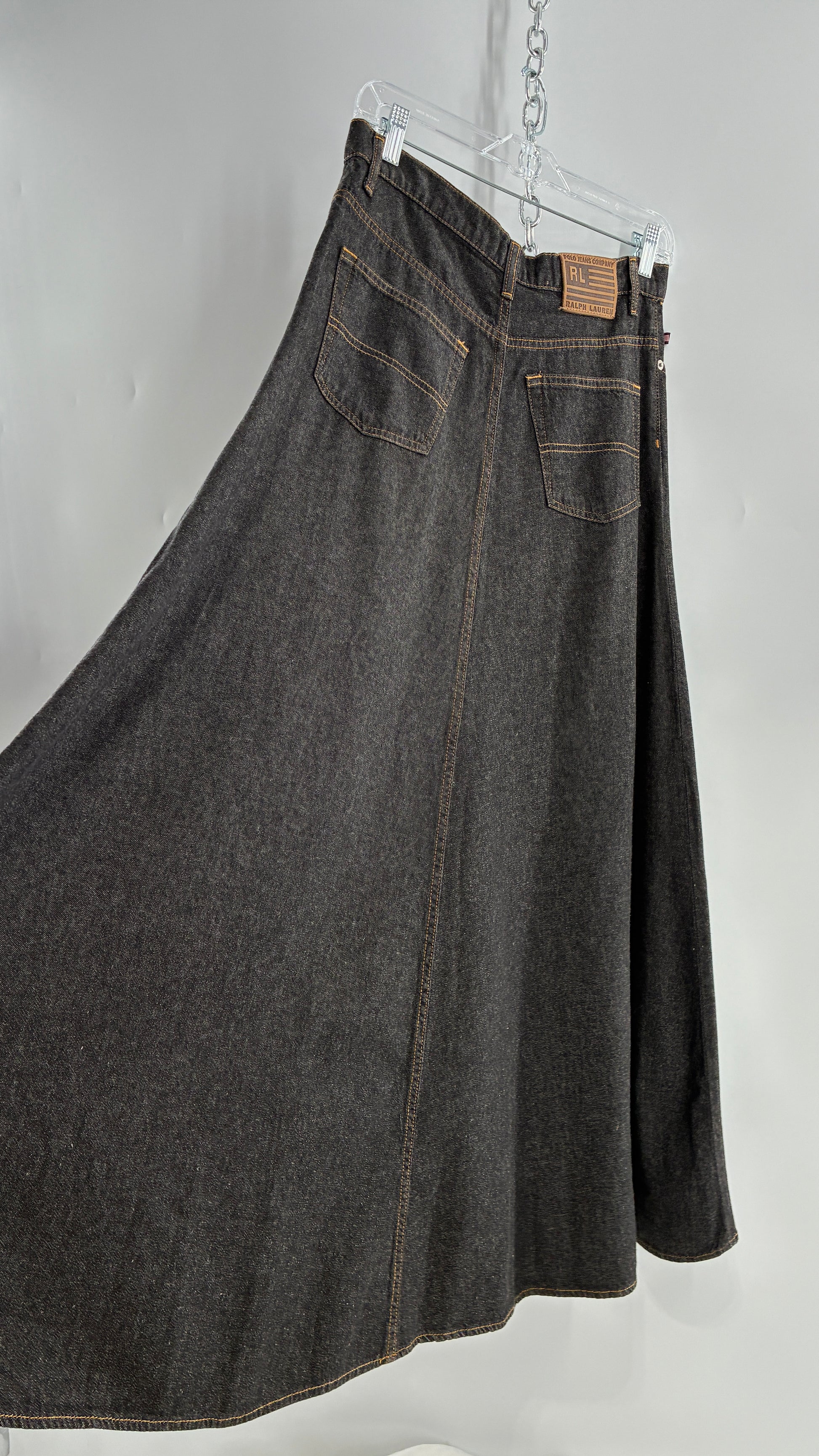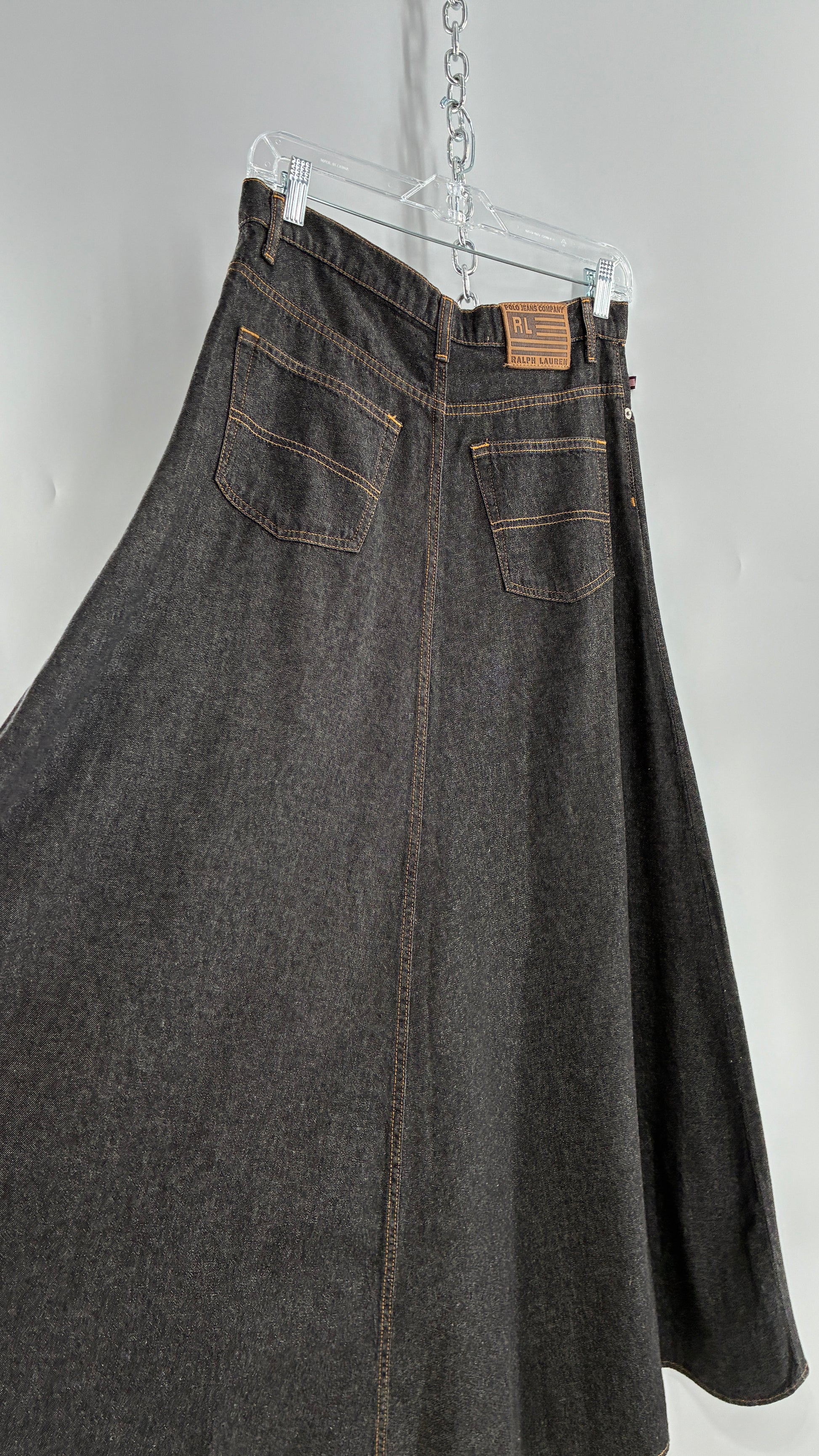 Vintage Ralph Lauren 100% Cotton Dark Wash Denim Full Length Skirt