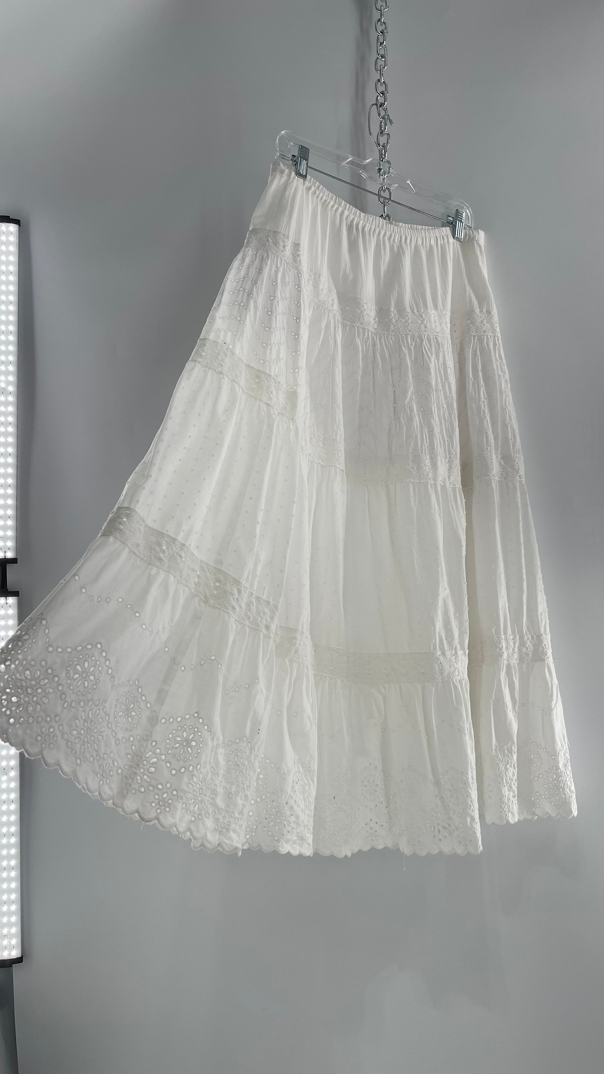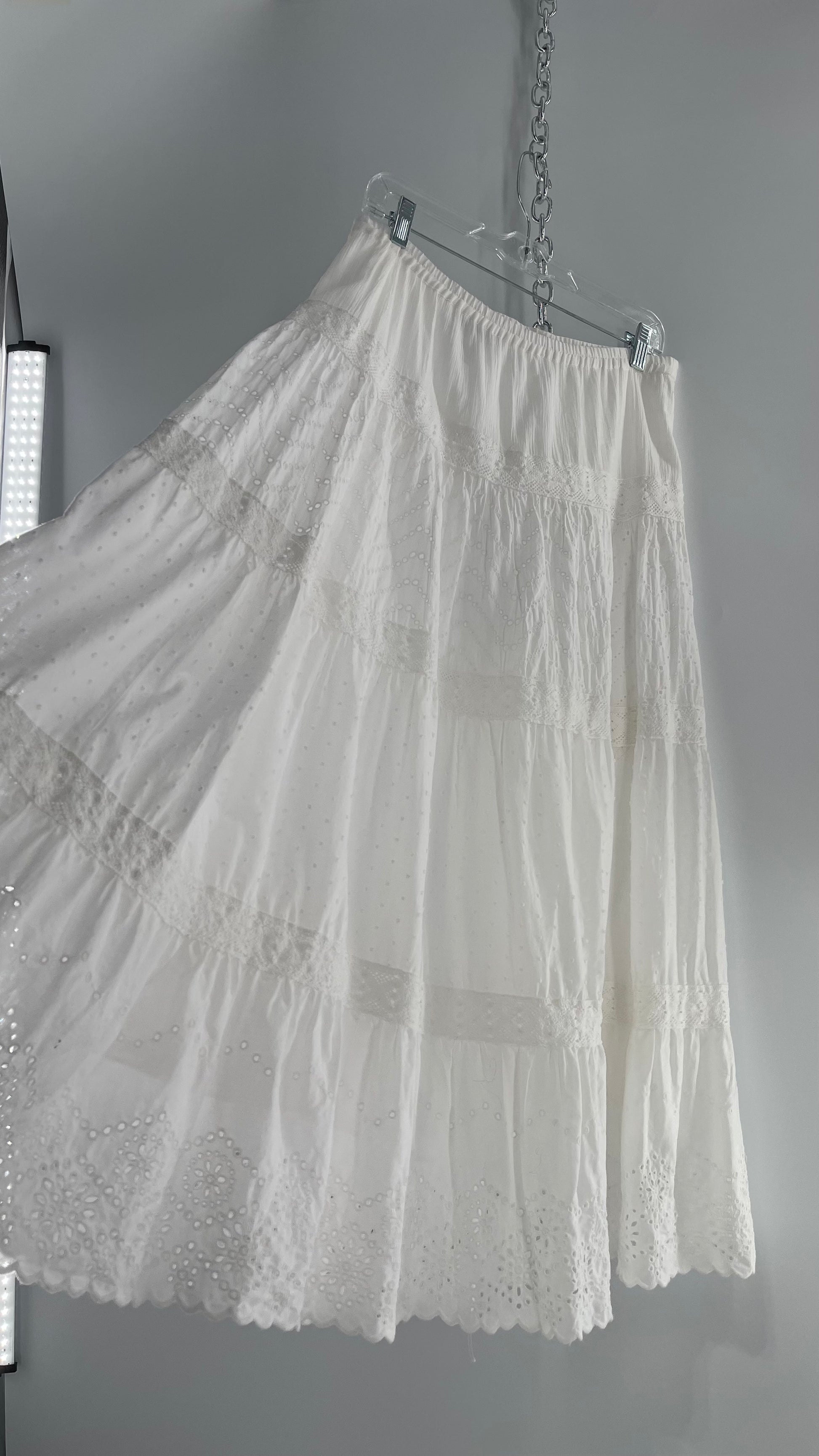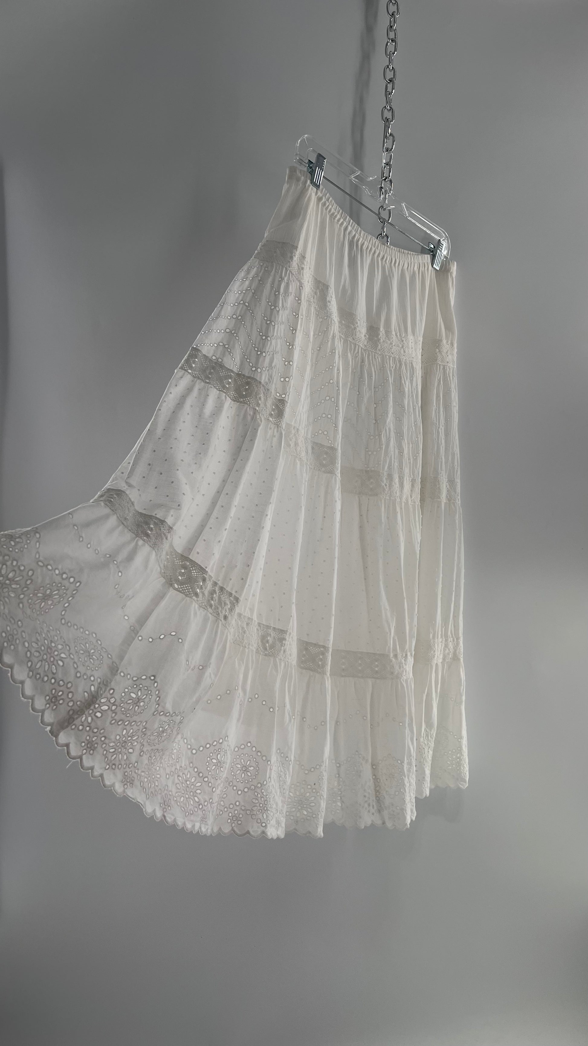 Vintage White Multi Textured Tiered Maxi Skirt (S/M)
