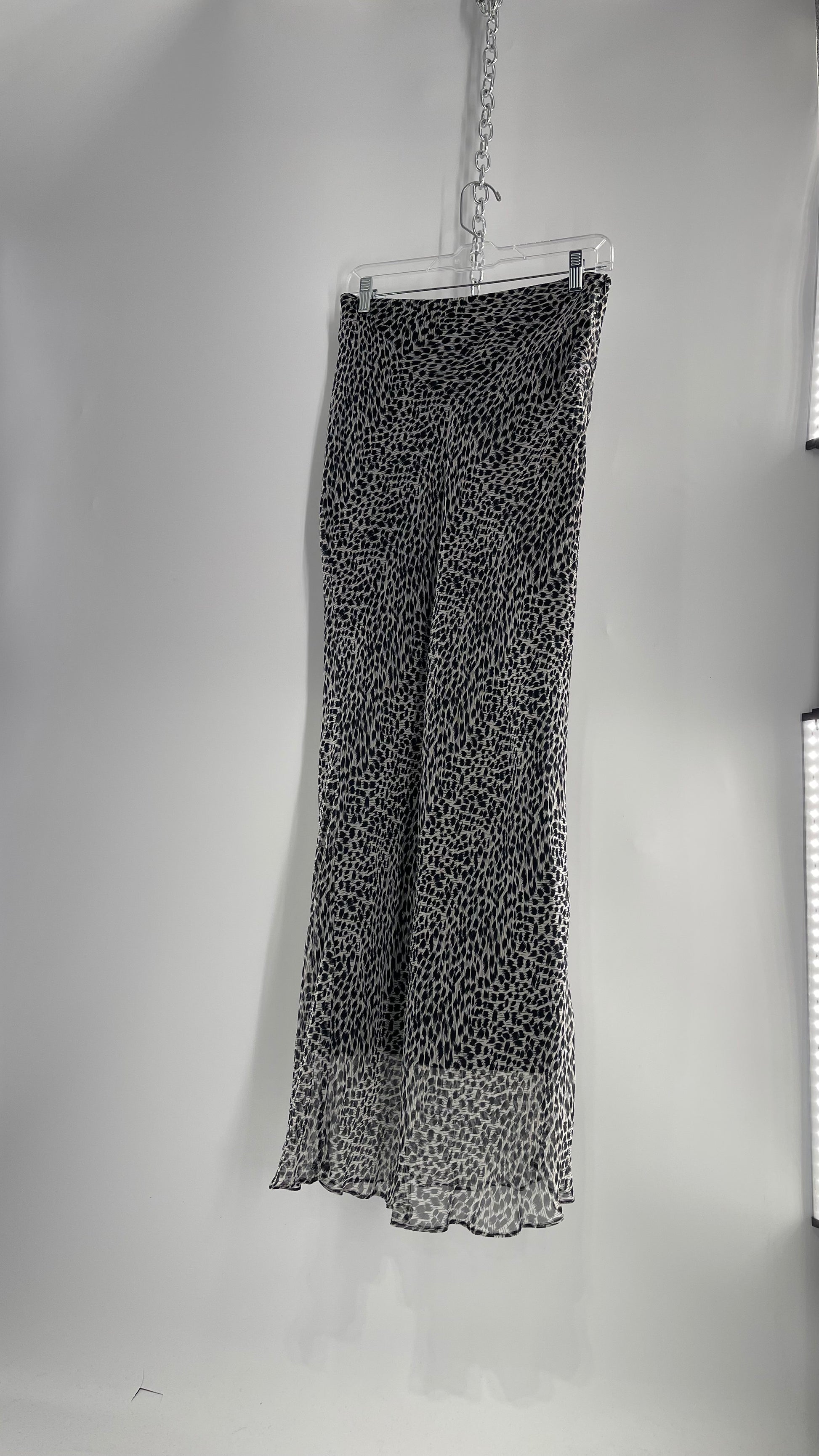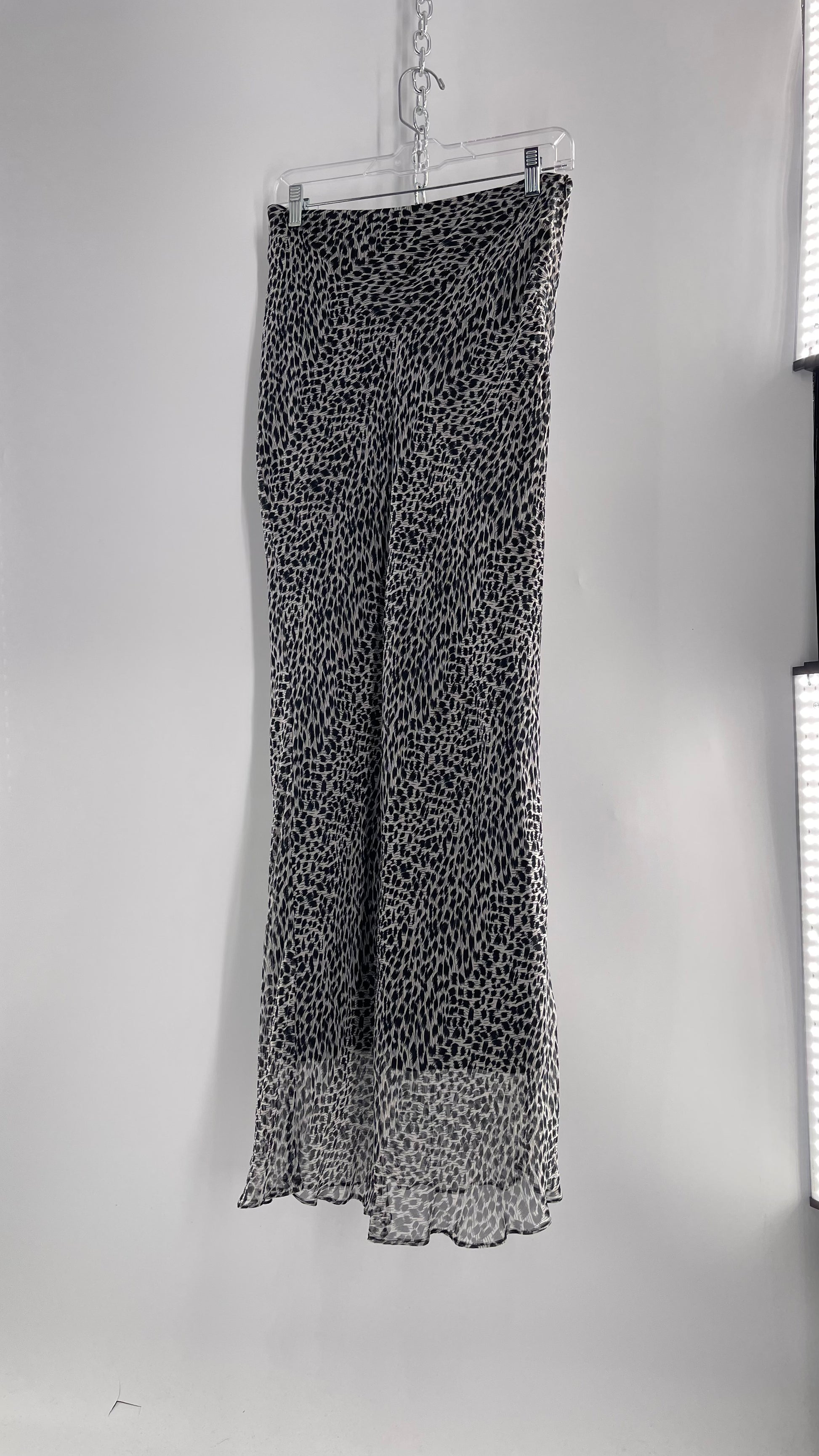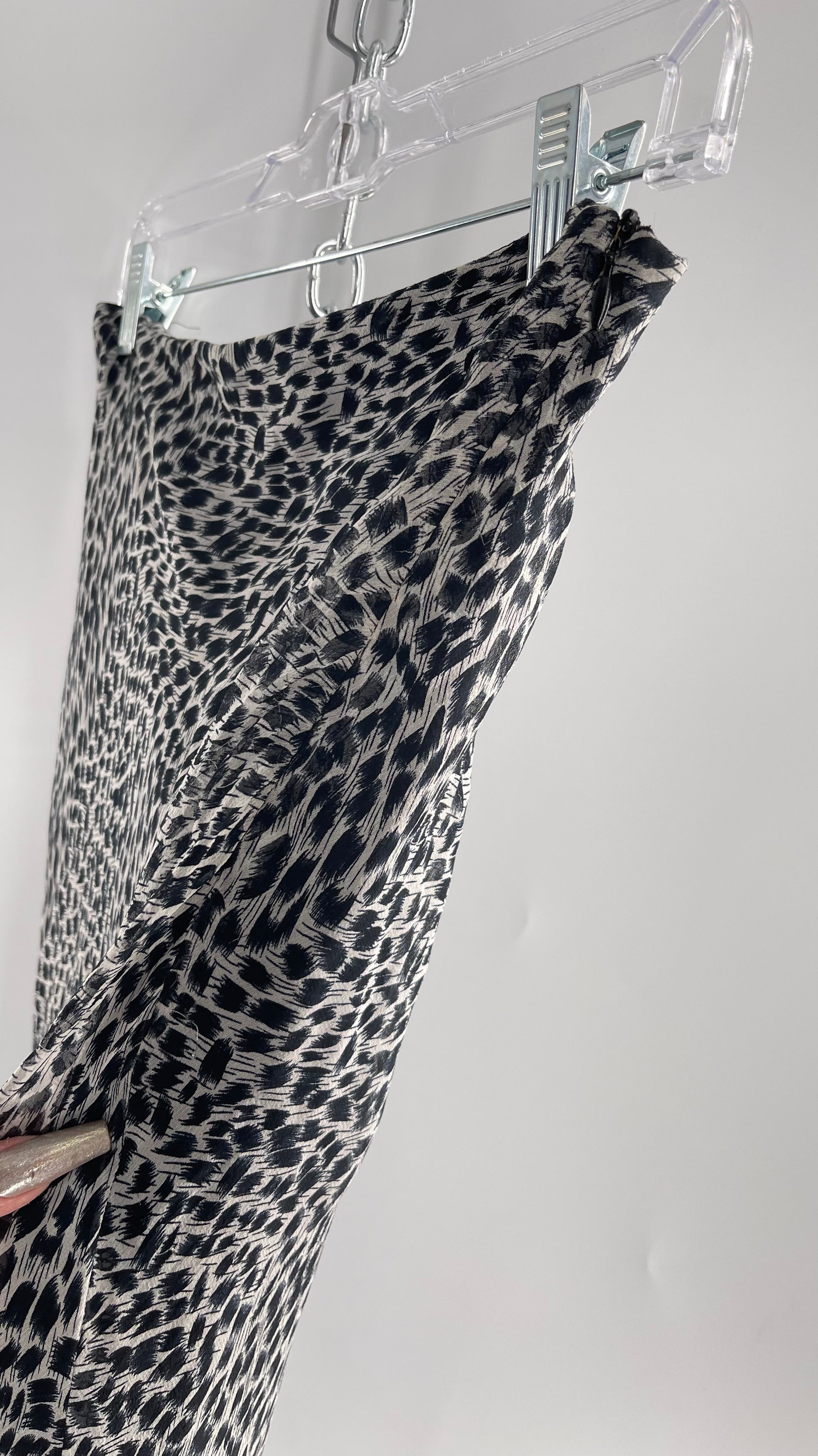 Vintage 100% Silk Leopard Print Grayish Blue Slinky Tube Maxi Skirt