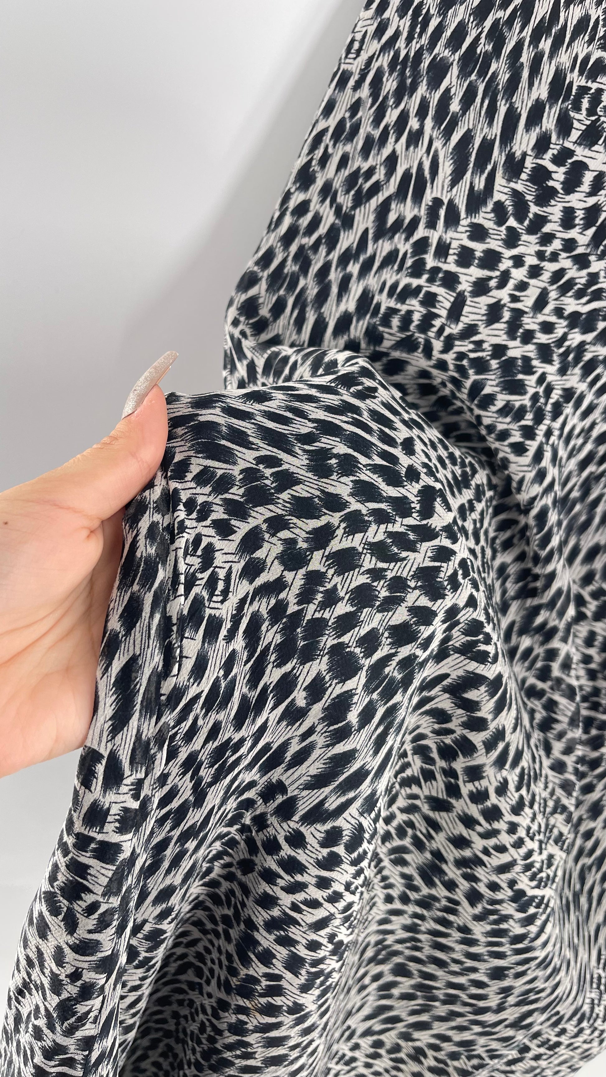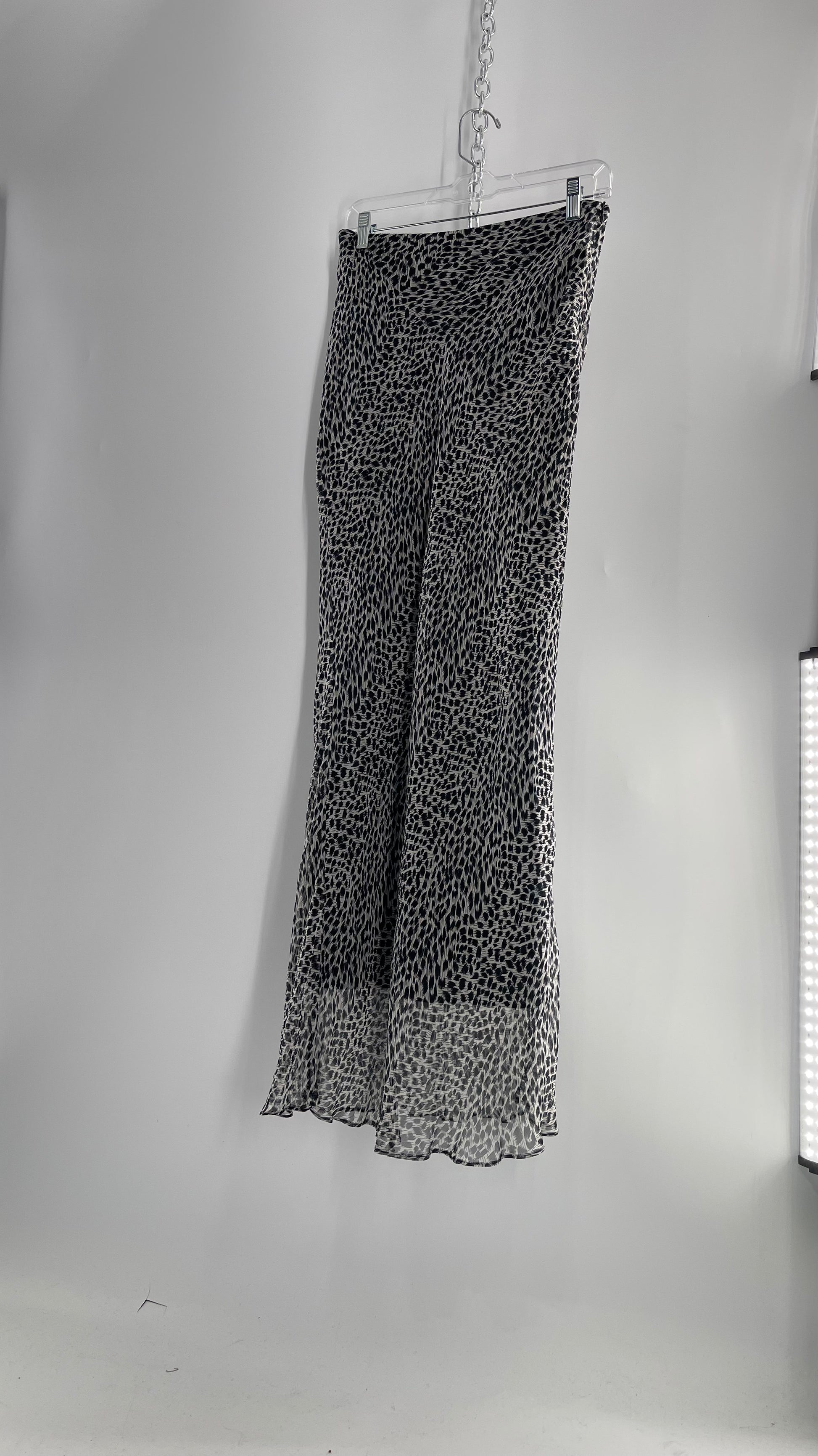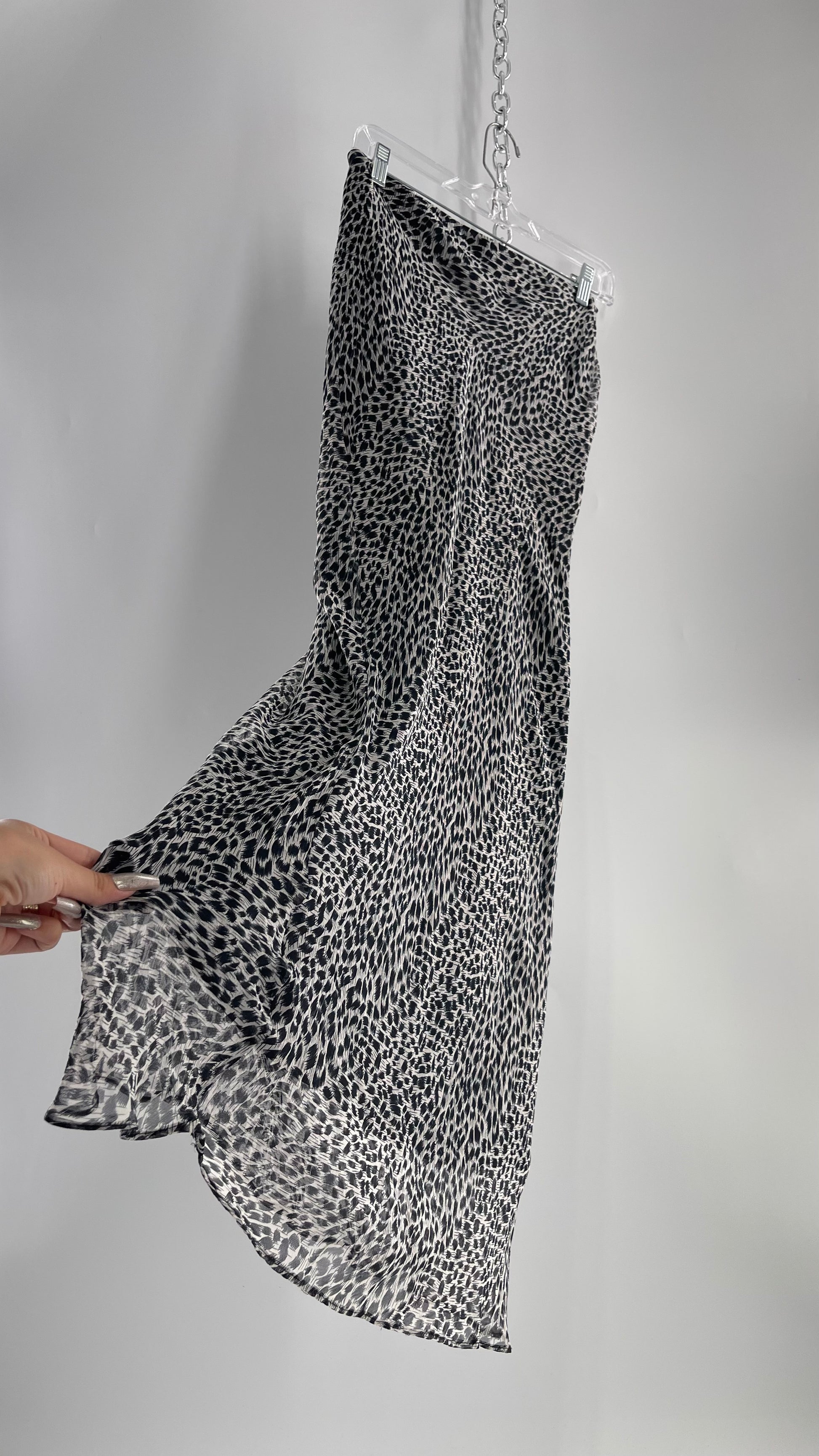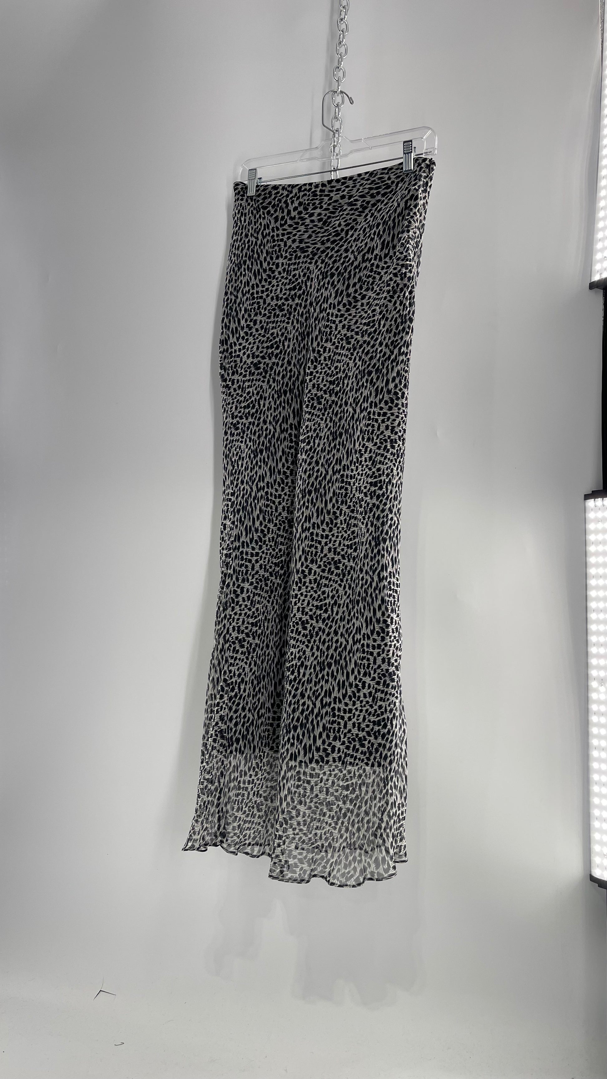 Vintage 100% Silk Leopard Print Grayish Blue Slinky Tube Maxi Skirt