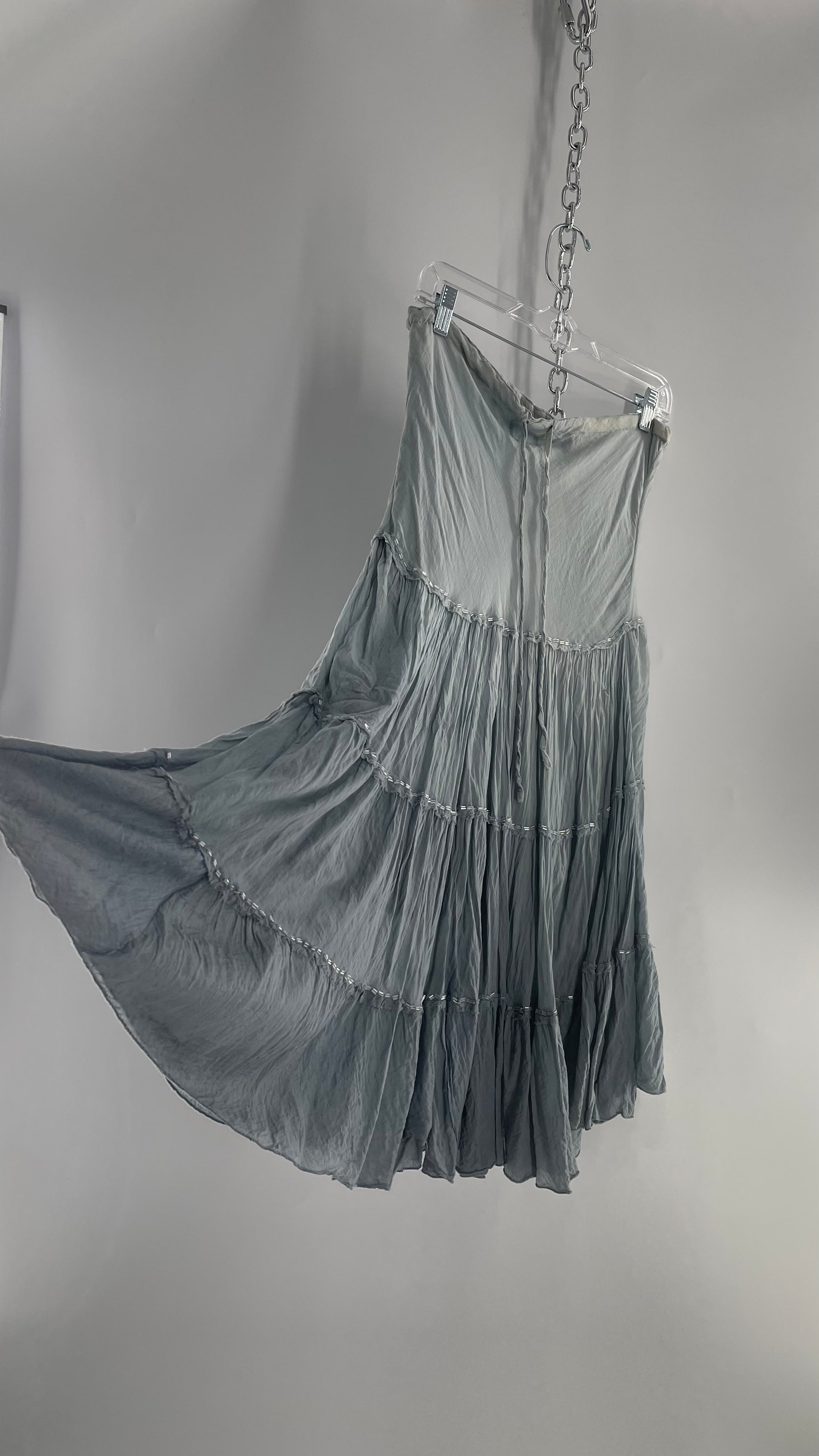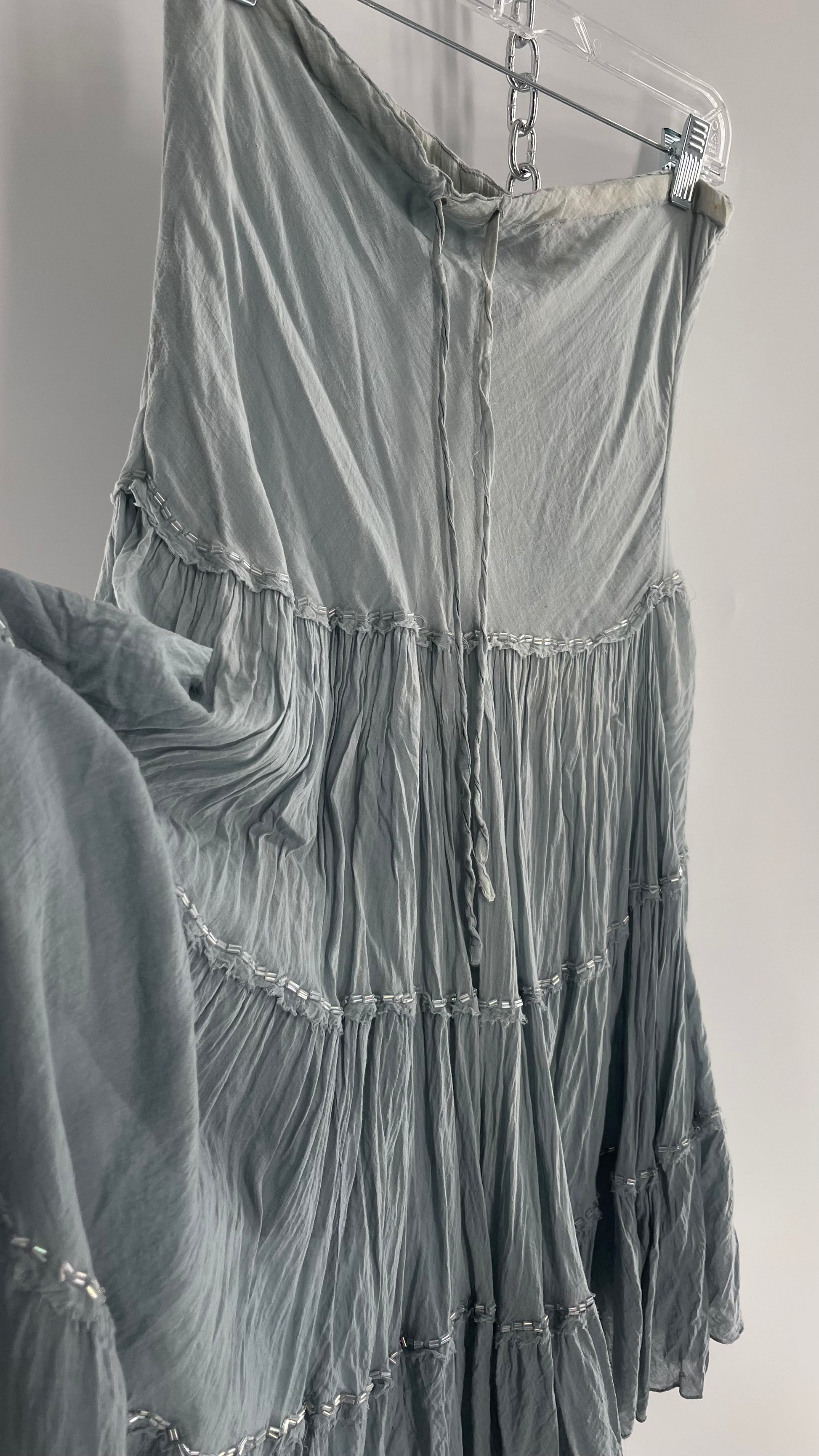 Vintage 100% Cotton Tiered Grey Blue Skirt with Beading (One Size)