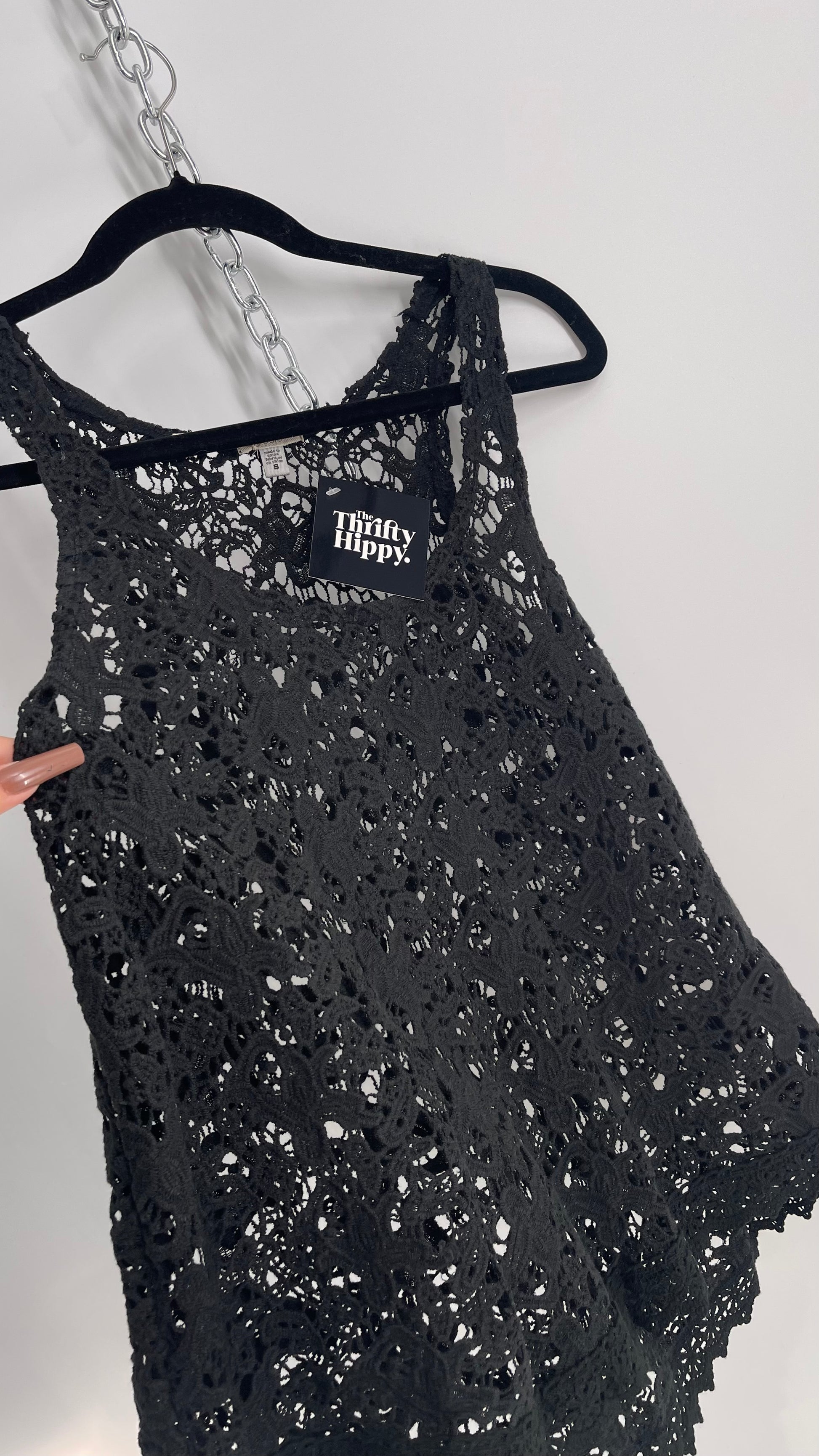 Ecote Urban Outfitters Lace Crochet Black Tank (Small)