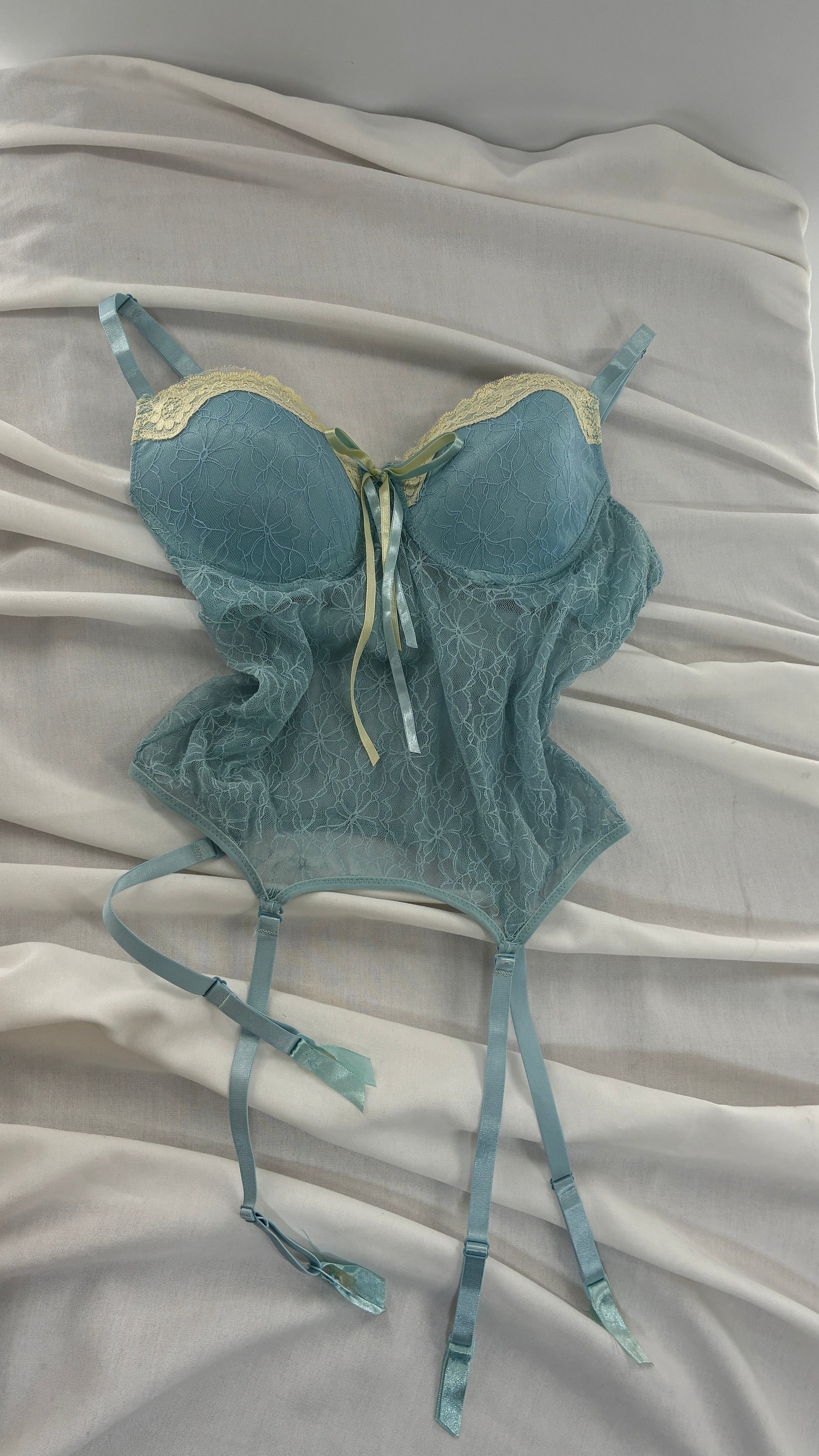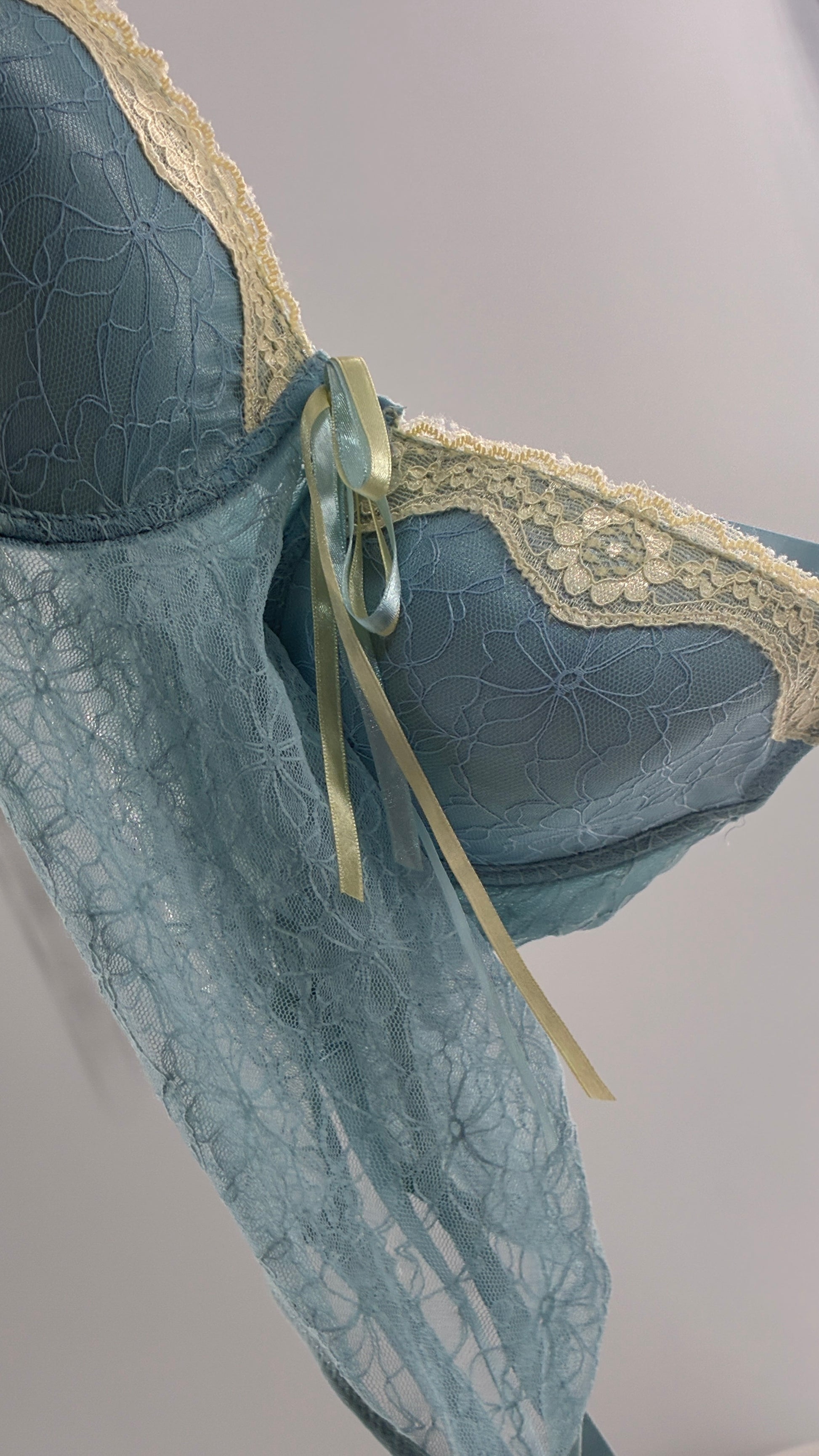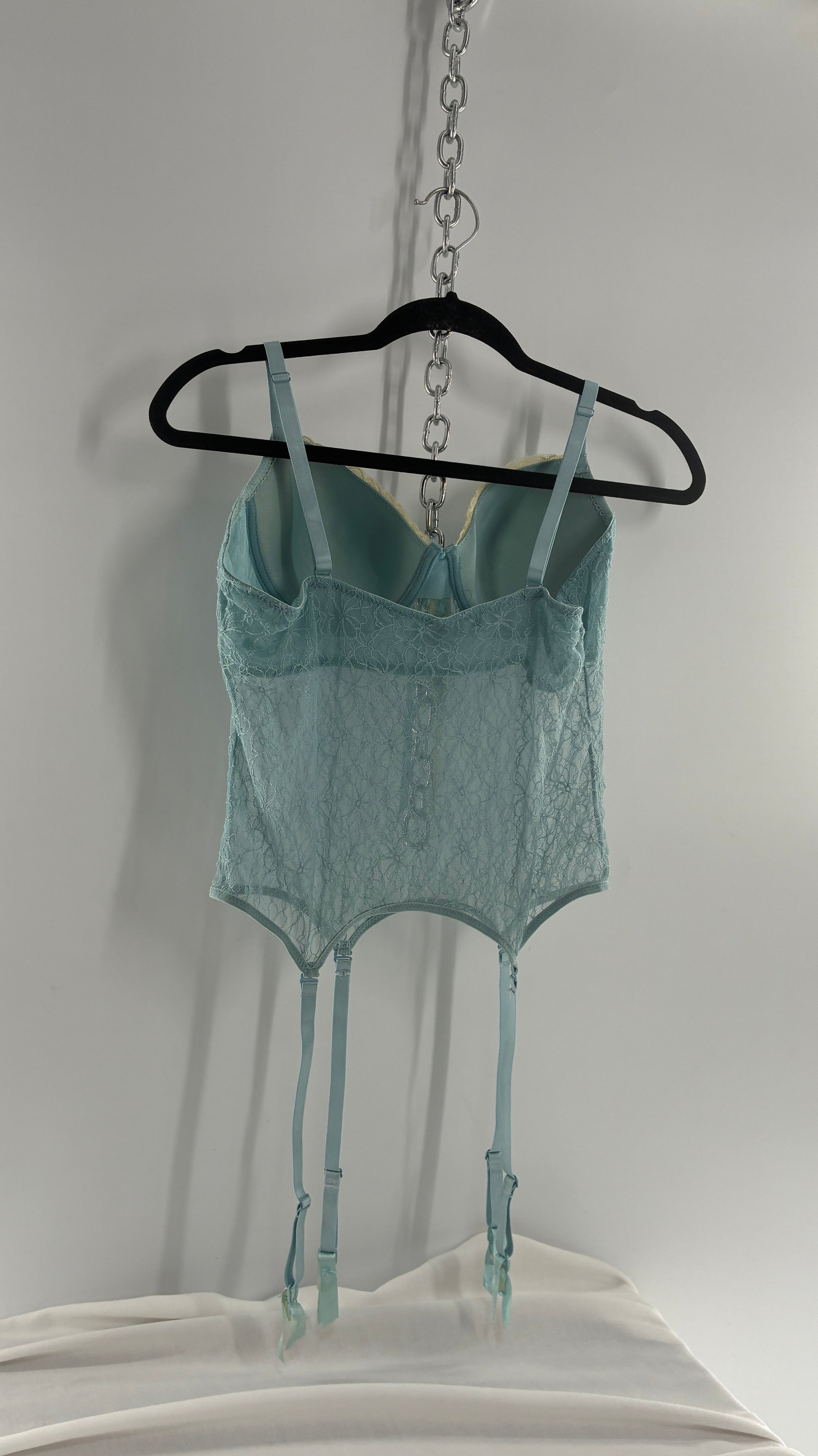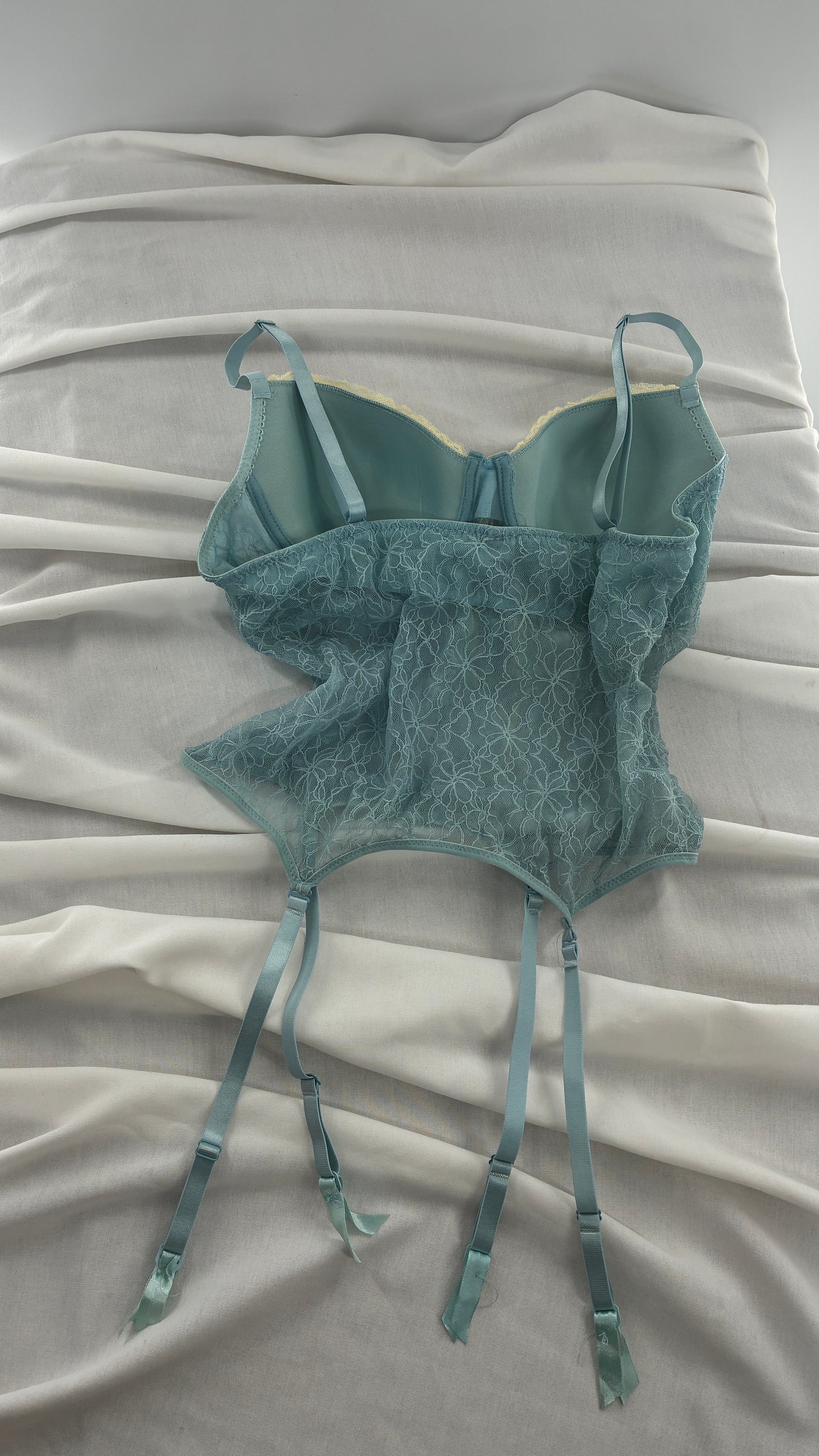 Vintage Donna L’orén Baby Blue Corset with Stretchy Lace Bodice (36B)