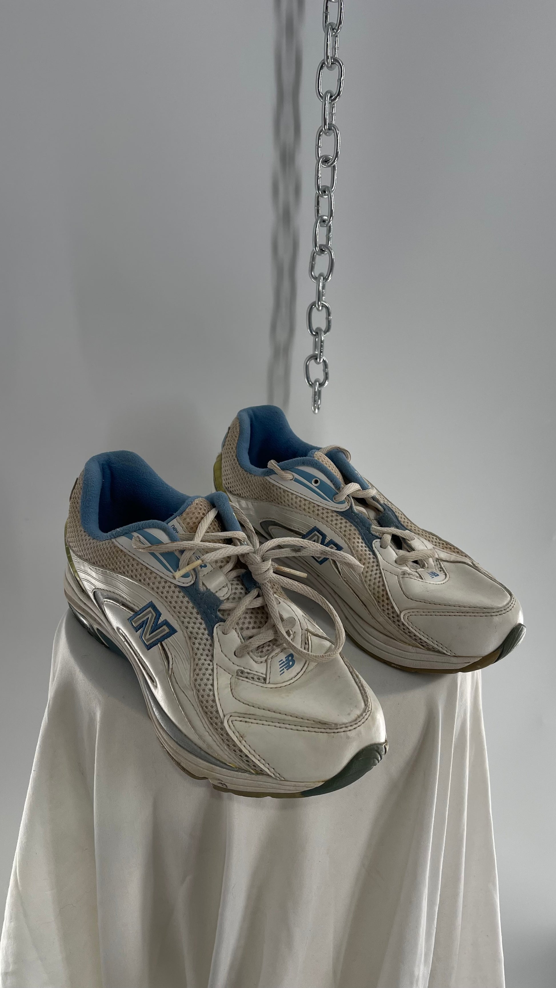 Vintage New Balance Distressed White Sneaker with Baby Blue Details