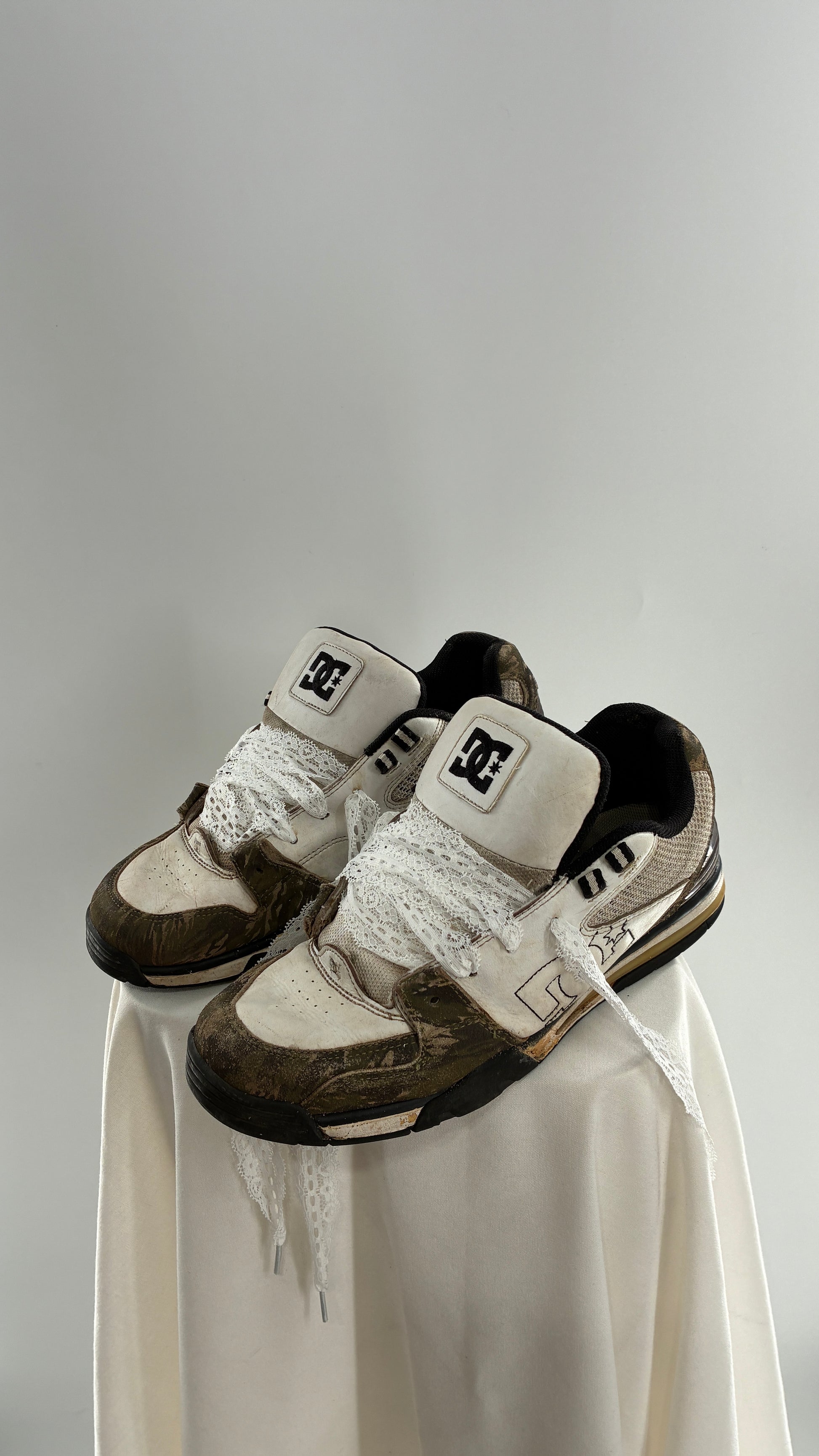 Vintage DC Camo Skating Sneakers with Lace Trim Laces